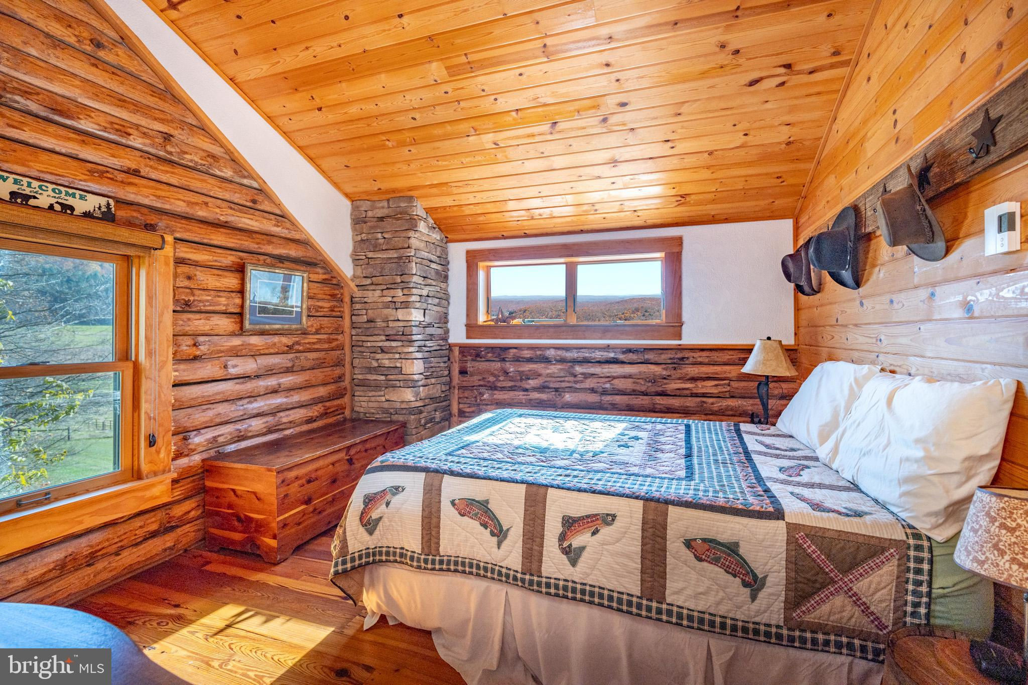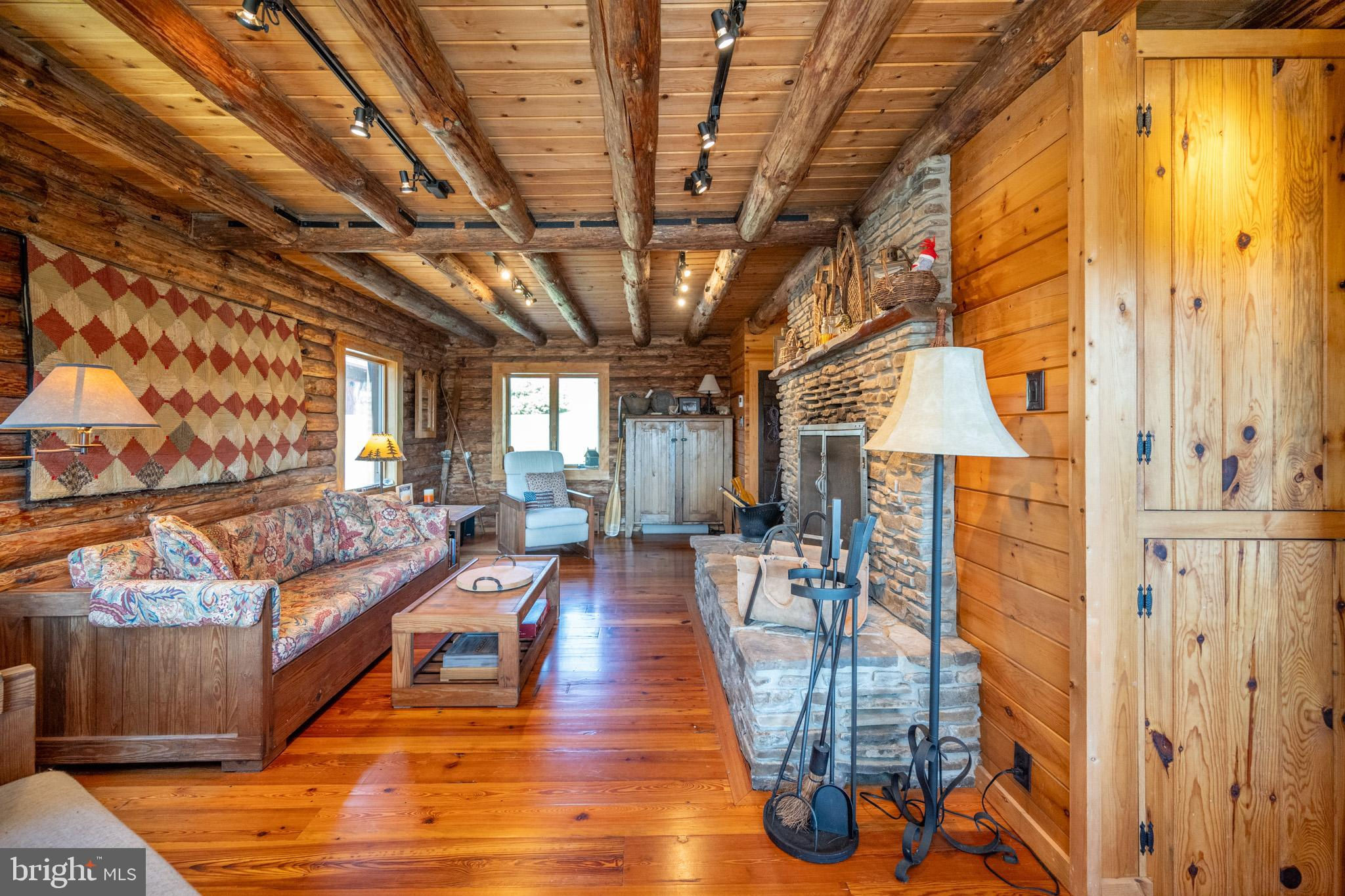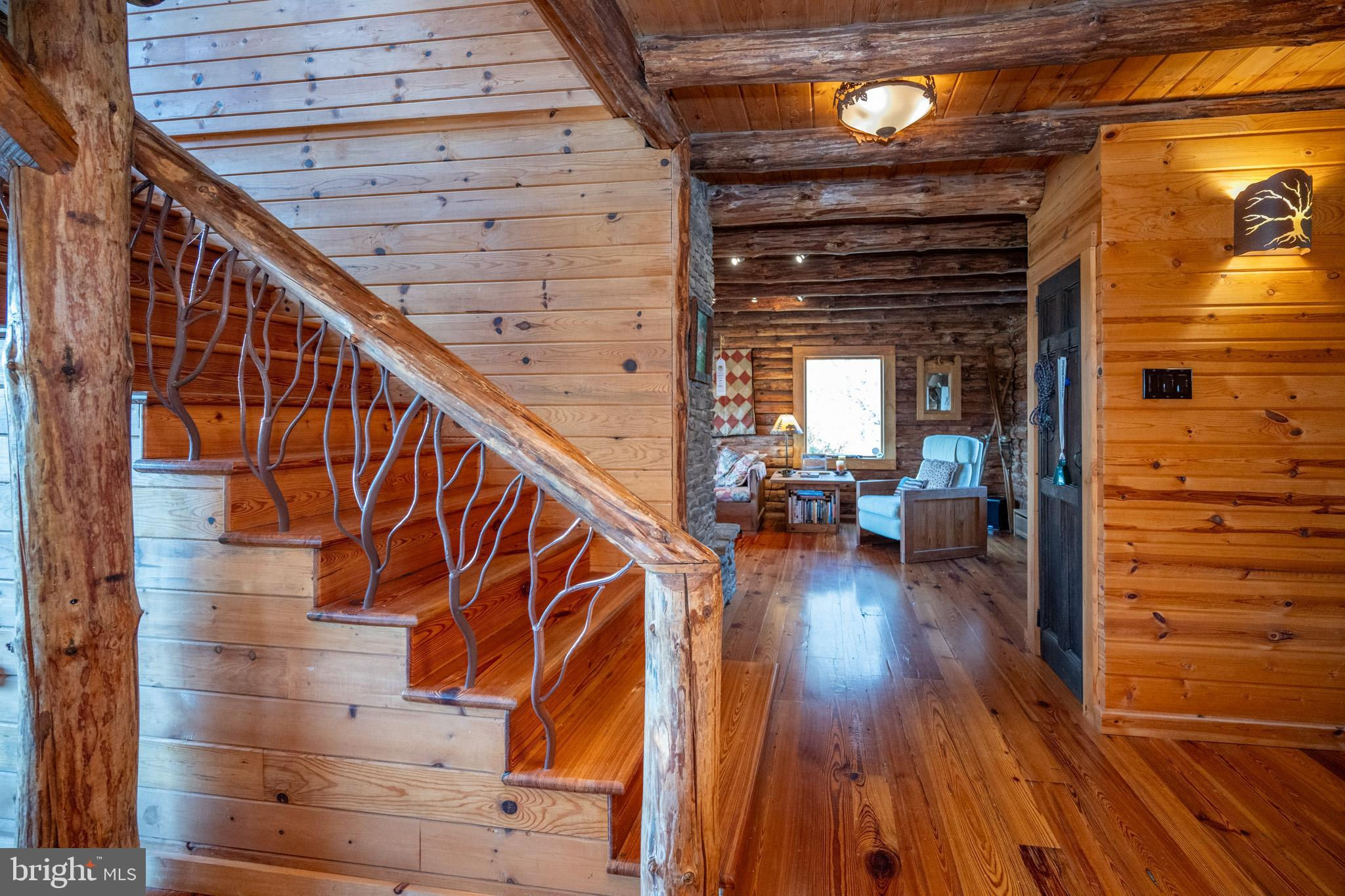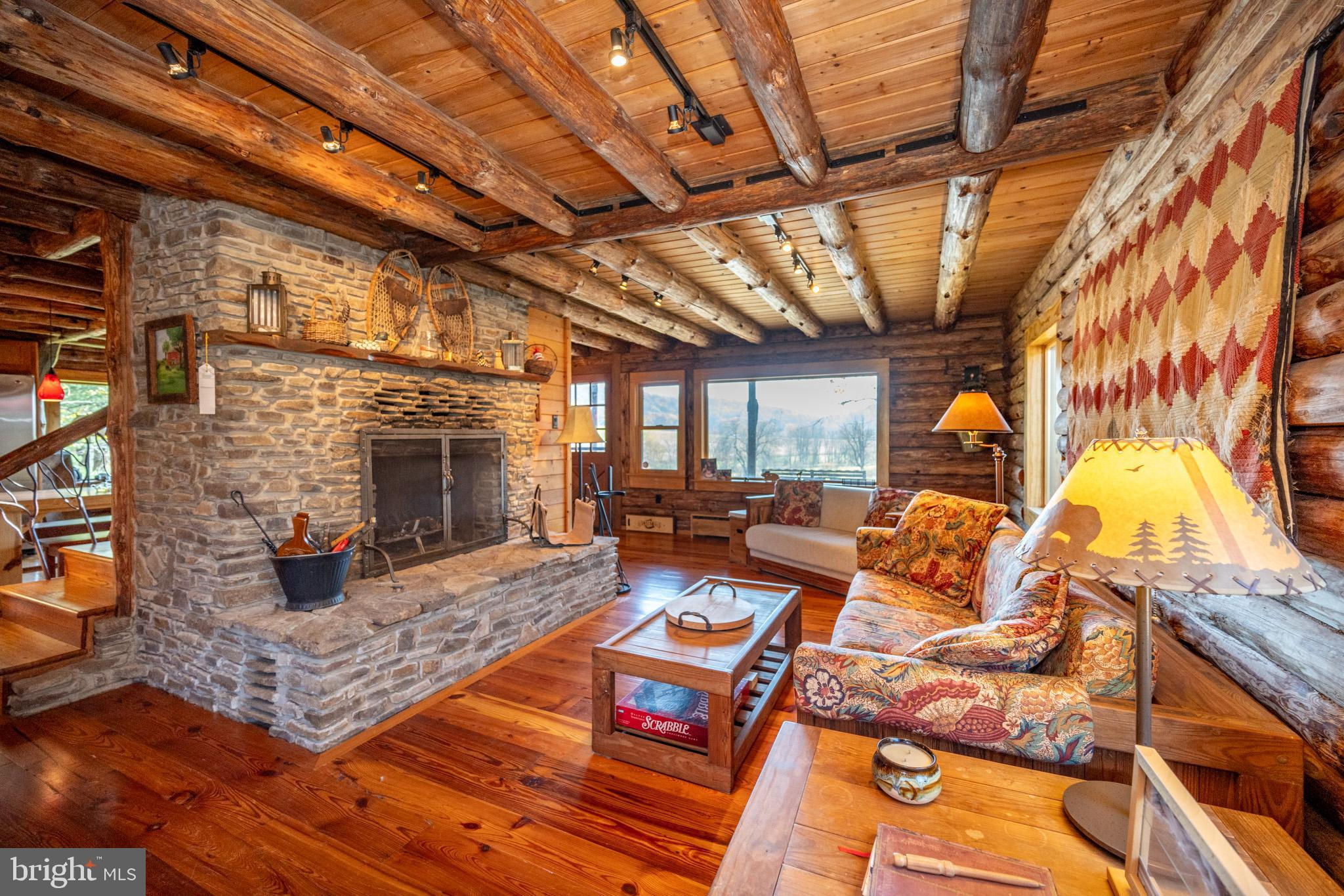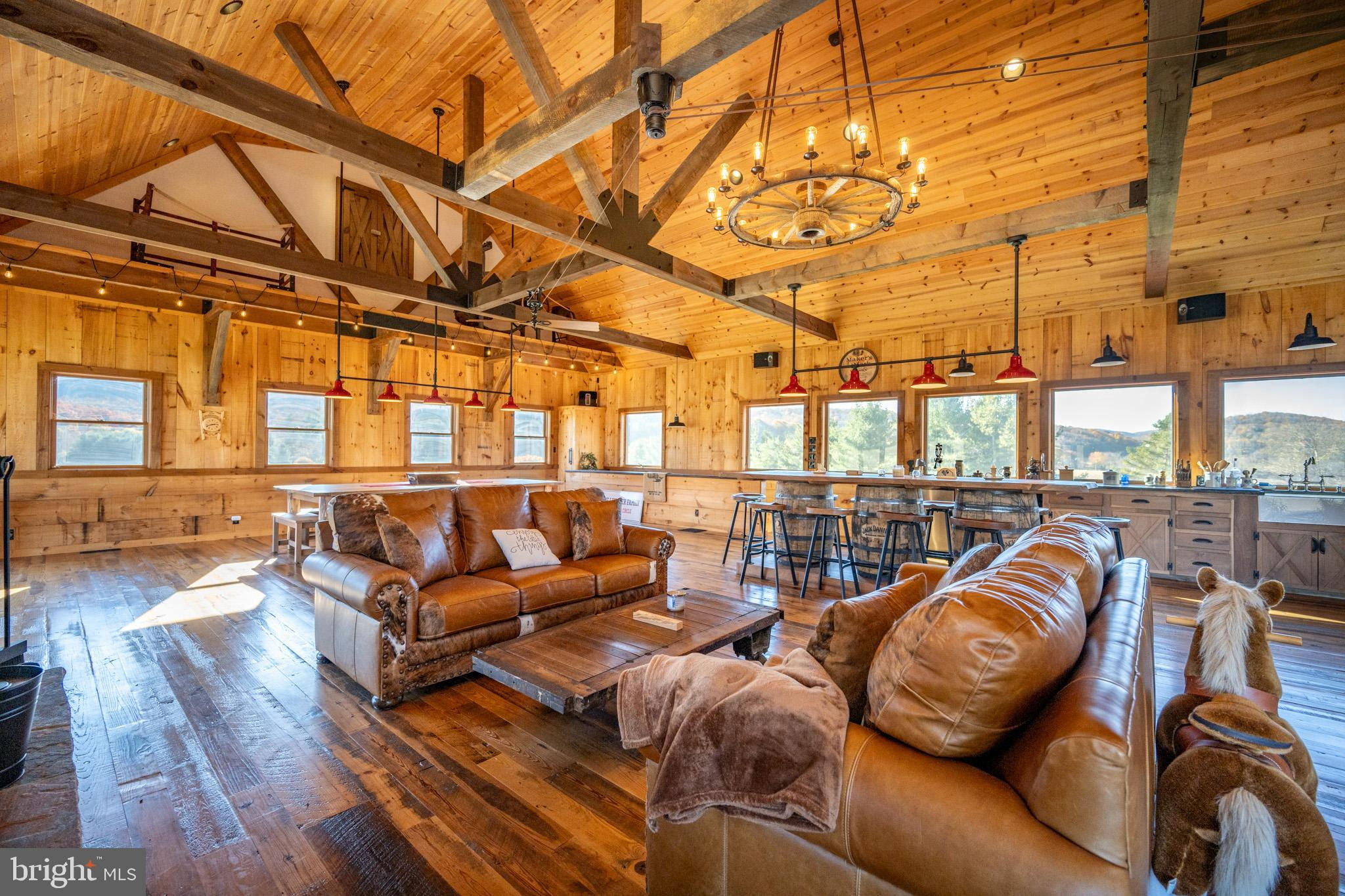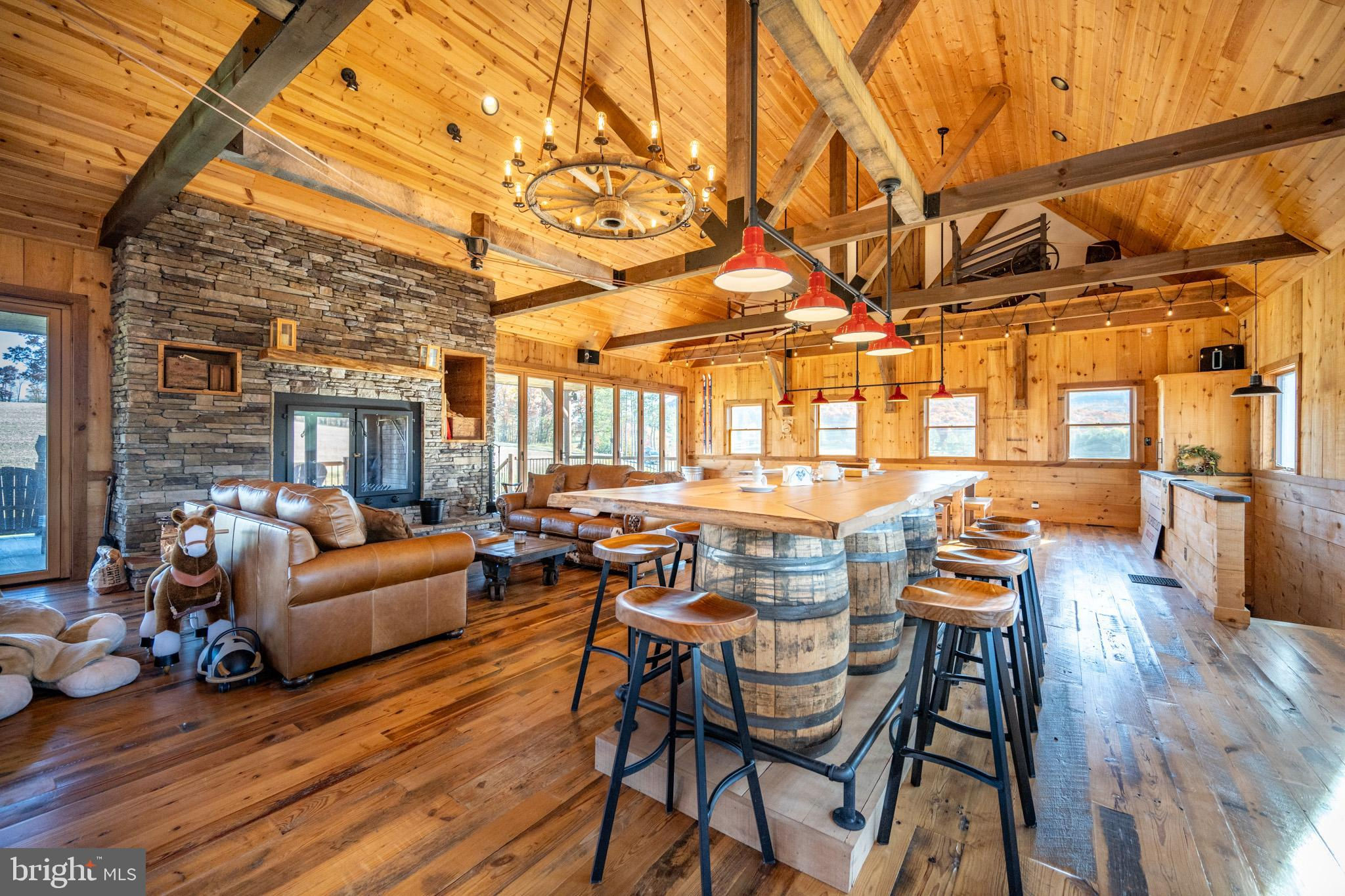 Experience your own slice of paradise in the highly desirable Pleasant Valley area of Garrett County. This scenic 3-bedroom log home overlooks a serene private pond, nestled on 22 breathtaking acres that blend open pasture with peaceful wooded areas, all with stunning mountain views. The property boasts a 2-car detached garage and an impressive, upscale barn with a spacious workshop, offering endless possibilities for your hobbies or business ventures. Above the workshop, you’ll discover a stunning entertainment area perfect for hosting gatherings. Featuring a stacked stone fireplace, a kitchen and bar area, a game room area, and a loft for additional sleeping space, plus a full bathroom, this area is built to impress. Currently operating as a small farm, including a fully fenced in pasture (electrified) to include a lean to with a spring fed trough for animals to graze in. This property offers a unique blend of luxury, functionality, and tranquility. Truly a must-see, this property has everything you’ve been searching for. Schedule your appointment today and step into the lifestyle of your dreams!