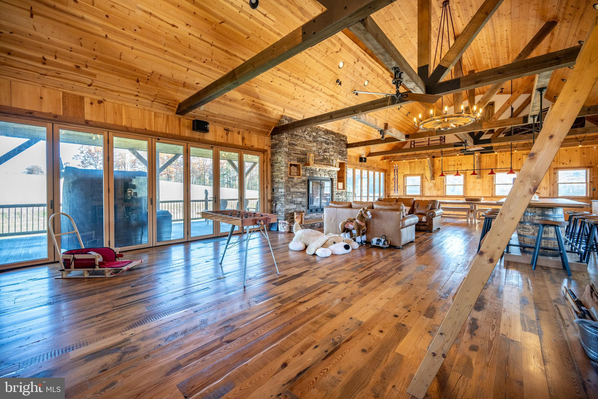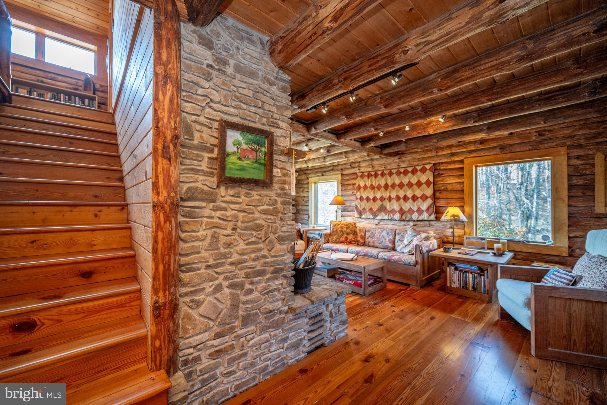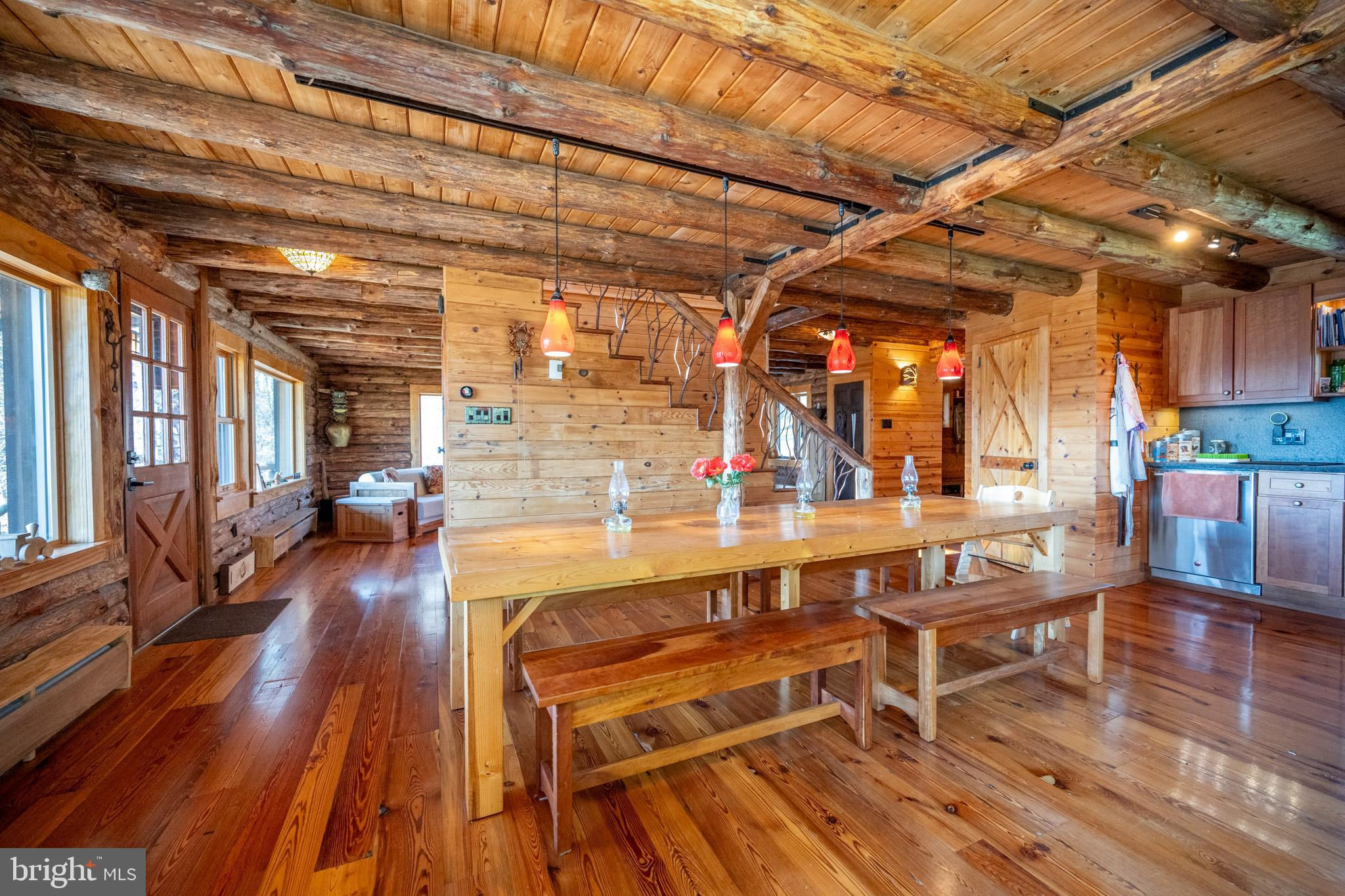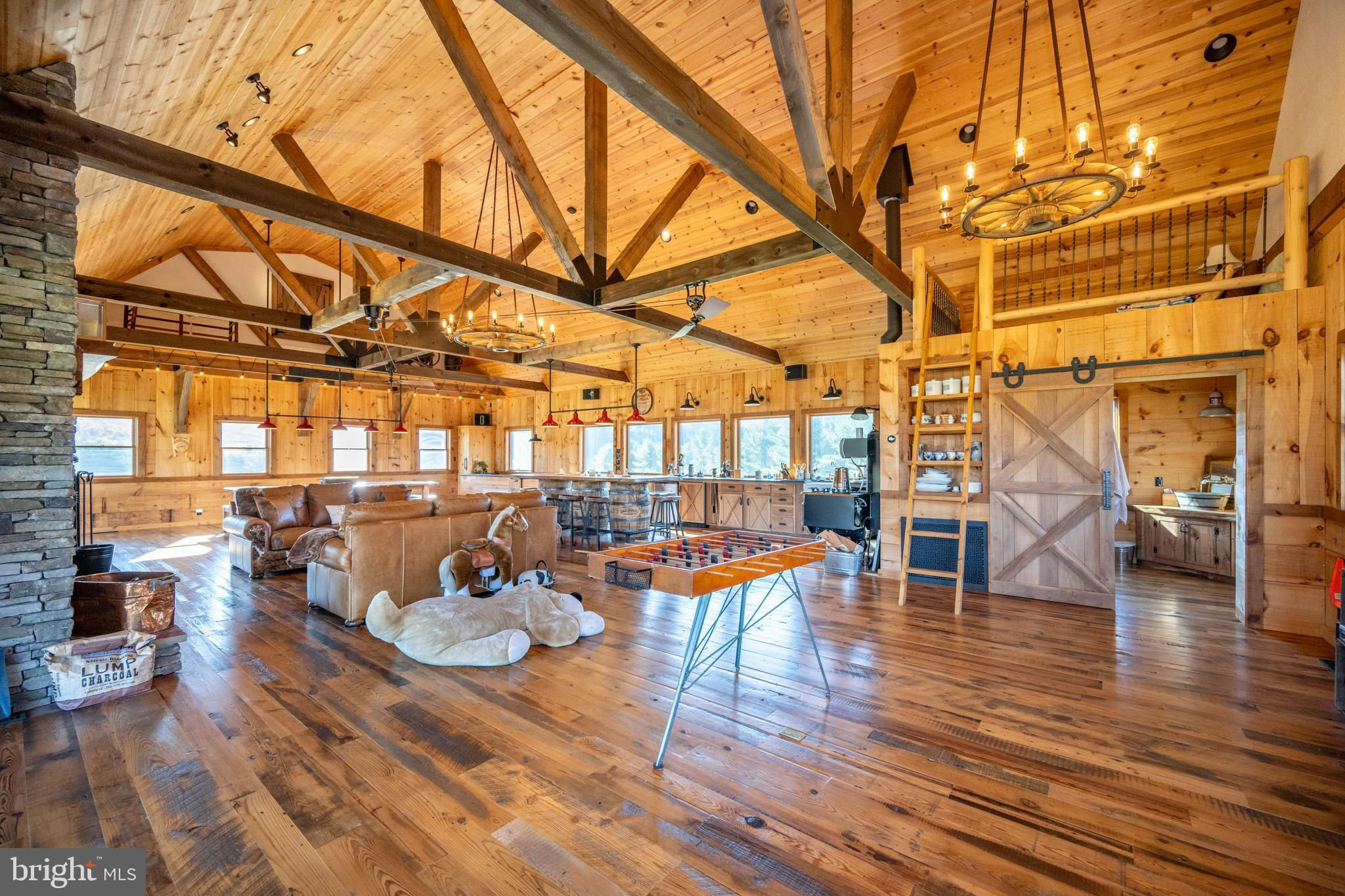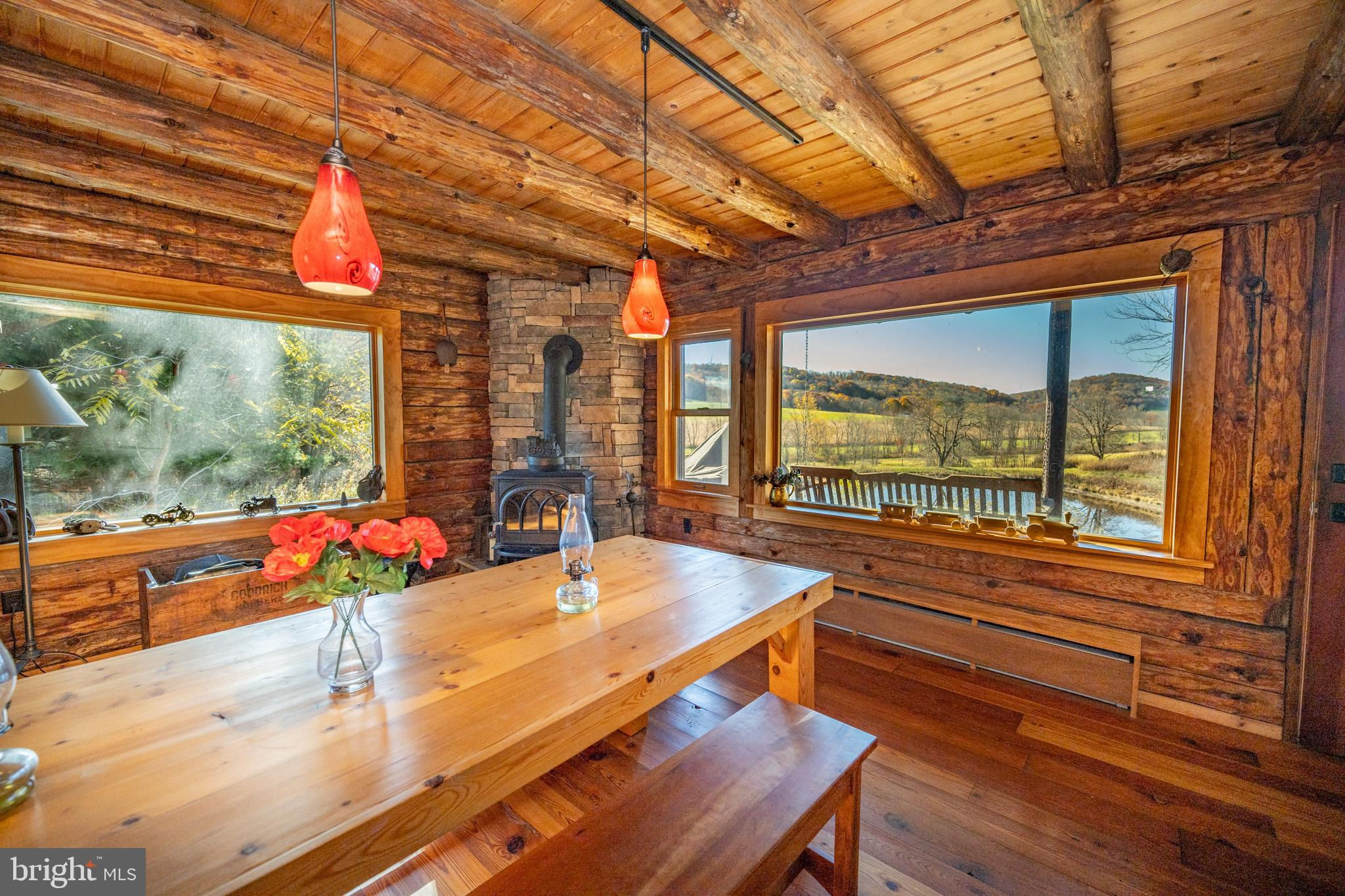 Experience your own slice of paradise in the highly desirable Pleasant Valley area of Garrett County. This scenic 3-bedroom log home overlooks a serene private pond, nestled on 22 breathtaking acres that blend open pasture with peaceful wooded areas, all with stunning mountain views. The property boasts a 2-car detached garage and an impressive, upscale barn with a spacious workshop, offering endless possibilities for your hobbies or business ventures. Above the workshop, you’ll discover a stunning entertainment area perfect for hosting gatherings. Featuring a stacked stone fireplace, a kitchen and bar area, a game room area, and a loft for additional sleeping space, plus a full bathroom, this area is built to impress. Currently operating as a small farm, including a fully fenced in pasture (electrified) to include a lean to with a spring fed trough for animals to graze in. This property offers a unique blend of luxury, functionality, and tranquility. Truly a must-see, this property has everything you’ve been searching for. Schedule your appointment today and step into the lifestyle of your dreams!