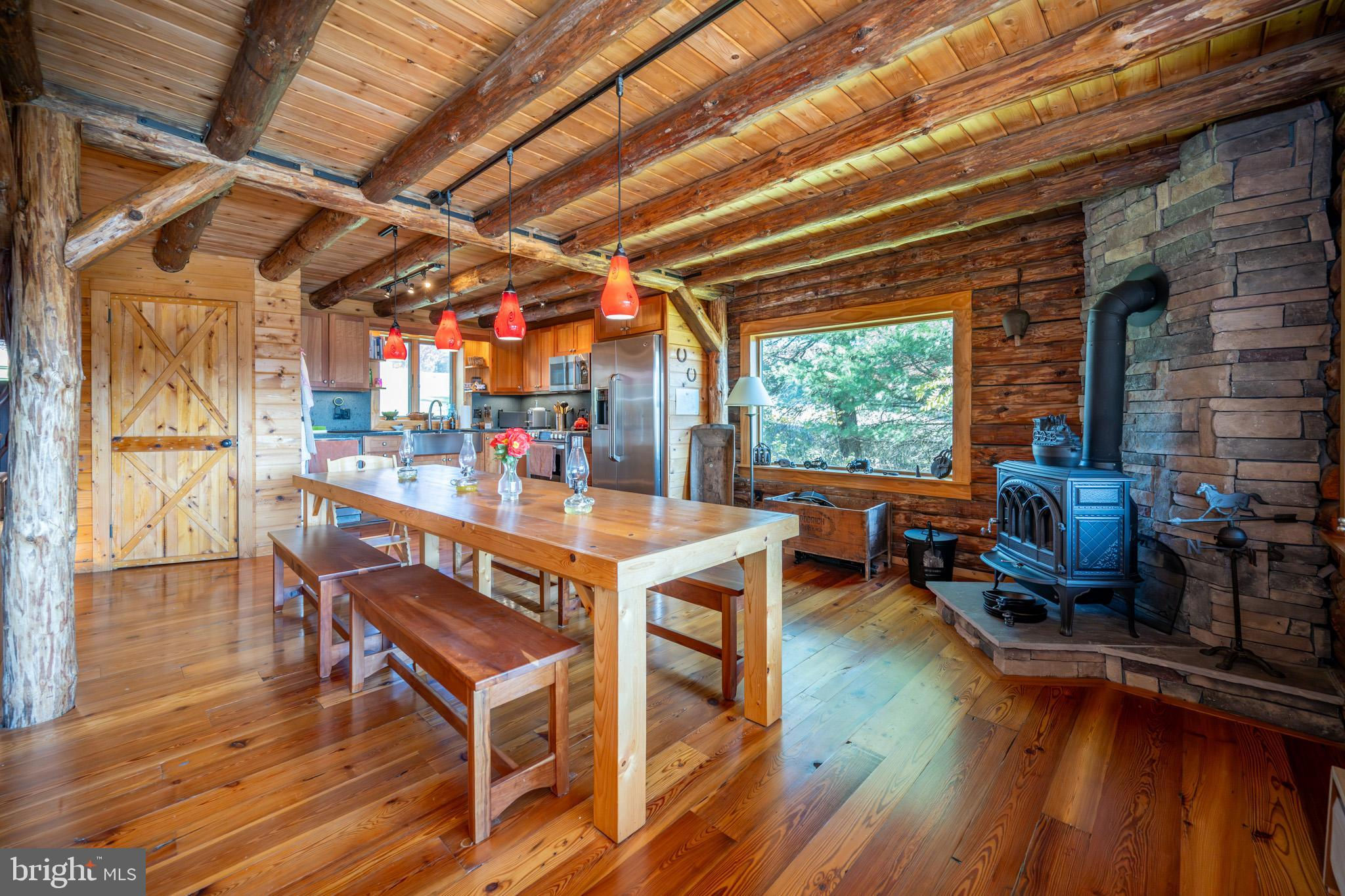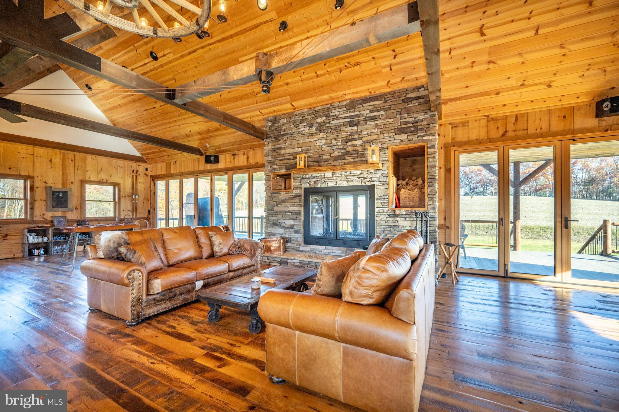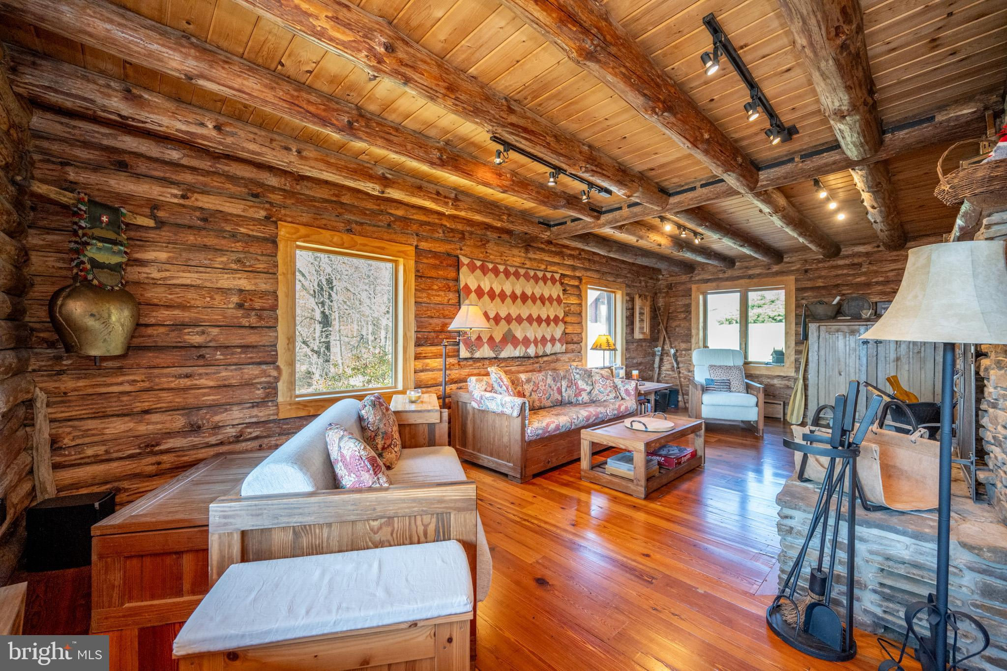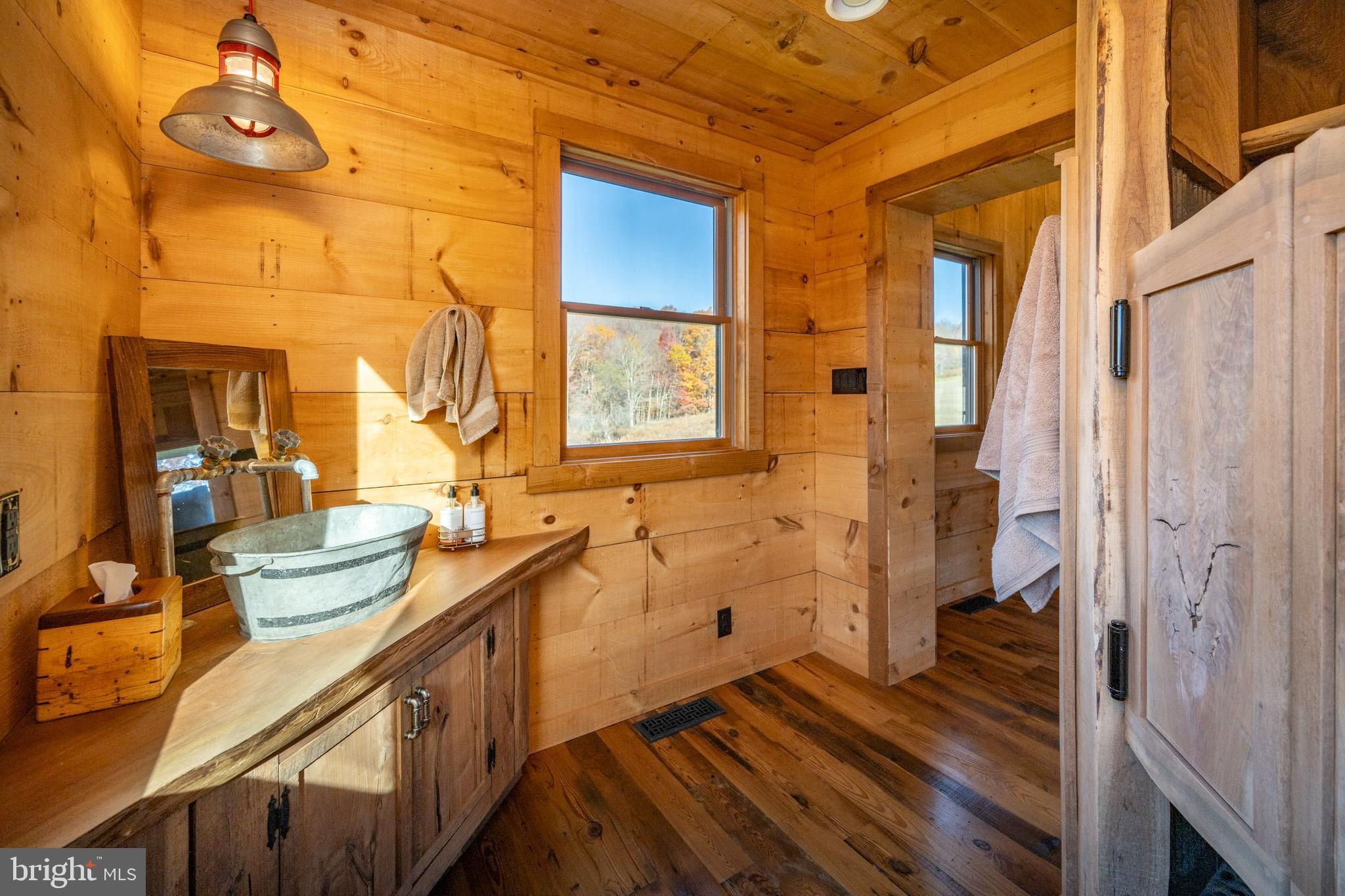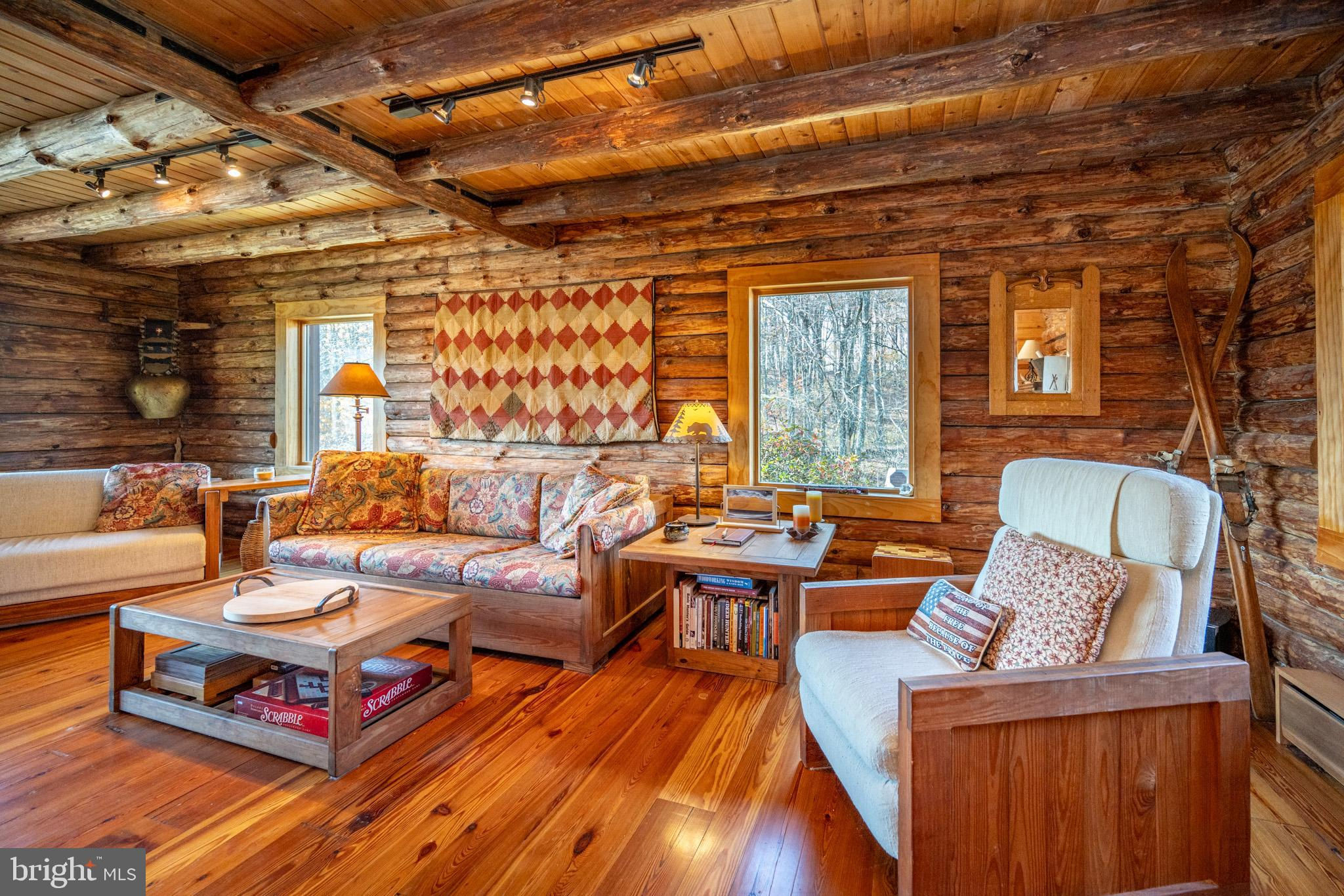 Experience your own slice of paradise in the highly desirable Pleasant Valley area of Garrett County. This scenic 3-bedroom log home overlooks a serene private pond, nestled on 22 breathtaking acres that blend open pasture with peaceful wooded areas, all with stunning mountain views. The property boasts a 2-car detached garage and an impressive, upscale barn with a spacious workshop, offering endless possibilities for your hobbies or business ventures. Above the workshop, you’ll discover a stunning entertainment area perfect for hosting gatherings. Featuring a stacked stone fireplace, a kitchen and bar area, a game room area, and a loft for additional sleeping space, plus a full bathroom, this area is built to impress. Currently operating as a small farm, including a fully fenced in pasture (electrified) to include a lean to with a spring fed trough for animals to graze in. This property offers a unique blend of luxury, functionality, and tranquility. Truly a must-see, this property has everything you’ve been searching for. Schedule your appointment today and step into the lifestyle of your dreams!