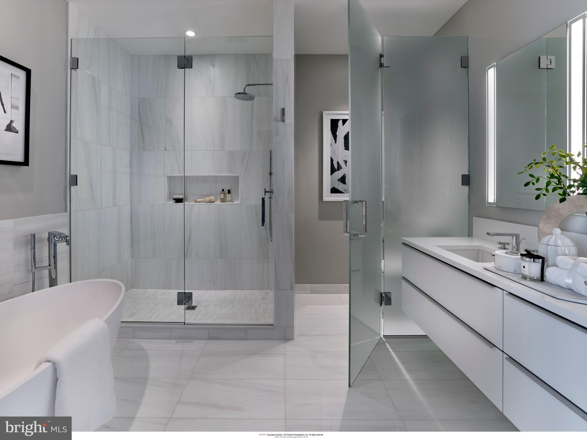 Arthaus, a commanding new residential high-rise in Philadelphia’s performing arts district, presents Unit 801: A stunning 3-bed, 2.5-bath, 2,030 SF single-level residence with City Hall and skyline views priced at $1,985,000. This maintenance-free, move-in ready, home offers high-end interior design, resort amenities and white gloves services. Tax abatement is available. Whether you’re a busy professional, retiree or globe trotter, 801 is a MUST SEE! Arthaus impresses from the moment you enter. The tall solid wood door with elegant hardware sets the stage, leading to a spacious, light-filled foyer with two large closets and convenient powder room and laundry facilities. The great room offers panoramic views of the city featuring a blended kitchen, living and dining space with soaring ceilings, floor to ceiling windows, wide-plank Havwood flooring and a weather-protected walk out balcony. Drenched in natural light this space is bright, airy, and feels twice its size on paper. The chef’s kitchen is everything you need for hosting, with a large center island that seats four. The upper and lower cabinets are polar white matte by Poggenpohl and the countertops Golden Gate quartz with matching backsplash. The high-end, stainless appliance package includes: Wolf, Bosch, Sub-Zero and Asko appliances and door fronts have been fully integrated into the cabinet design for a seamless look. The primary suite and two guest bedrooms are on the north side of the condominium. Hardwood flooring from the great room continues into the first bedroom; perfect for an optional home office. The second bedroom is a quiet retreat for visiting guests with gorgeous skyline view and walk-in closet. The full bath in the hallway is shared by the two secondary bedrooms and is finished with porcelain Calacatta tile floors, super white quartz countertops, and polar white matte Poggenpohl cabinets. The spacious Owner’s suite is wrapped in 10' floor-to-ceiling windows and features an oversized walk-in closet. A Badeloft soak-in tub, double vanity with Robern mirrors and super white quartz marble, Contempo white marble floors and shower tile, and a Kohler toilet closet complete the best-in-class bathroom package. Arthaus is a modern masterpiece crafted by renowned developer Carl Dranoff, designed by Kohn Pedersen Fox and built by Intech Construction. Its architecture and amenities prioritize wellness and well-being, from the stunning Monet-inspired mosaic in the lobby to the private resort on the 6th and 7th floors, featuring a pool, fitness facilities, spa, salon, pet park, outdoor terraces, lawns, gardens and more. White glove services include 24-doorman, concierge, chauffeured town car and car valet. This home comes with 1 parking license. With the 10-year tax abatement annual real estate taxes are approximately $3,367.