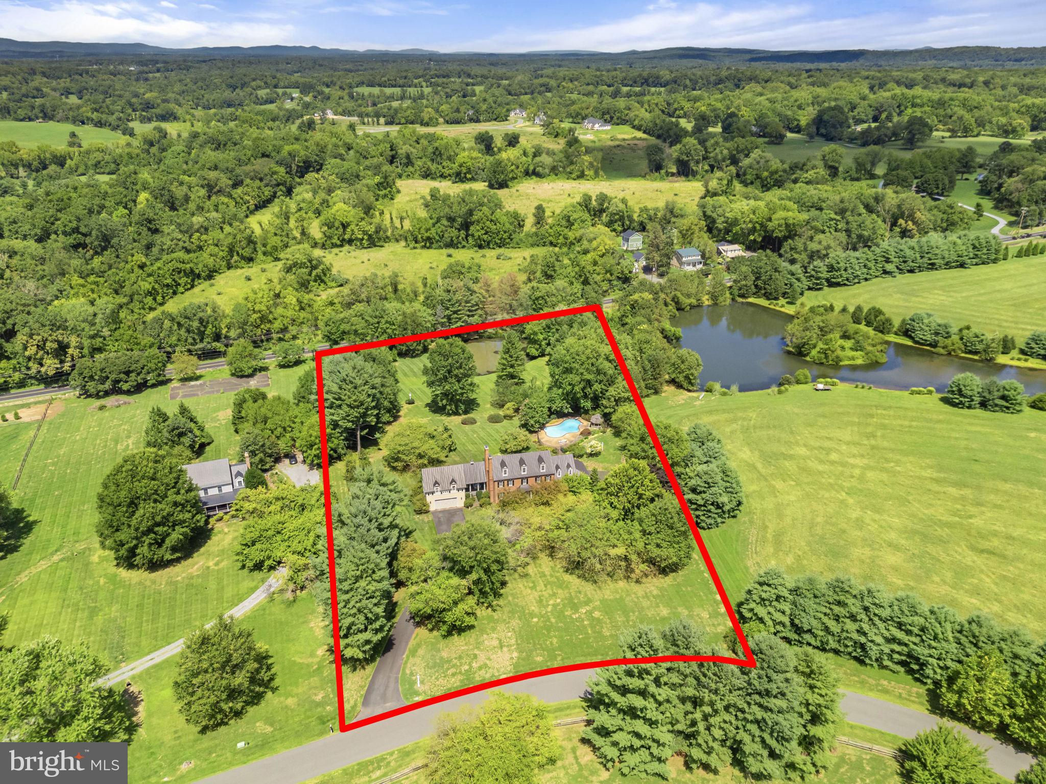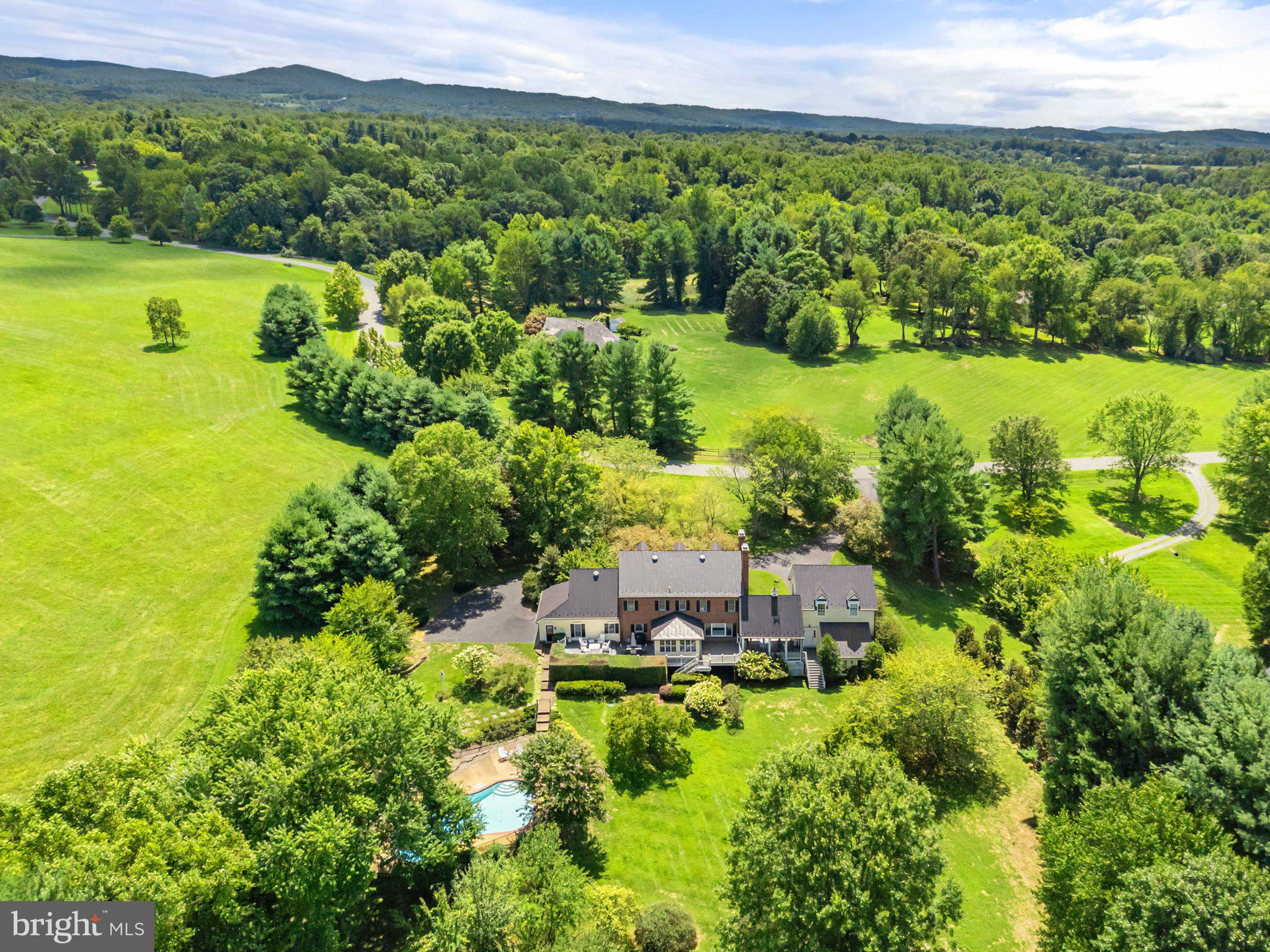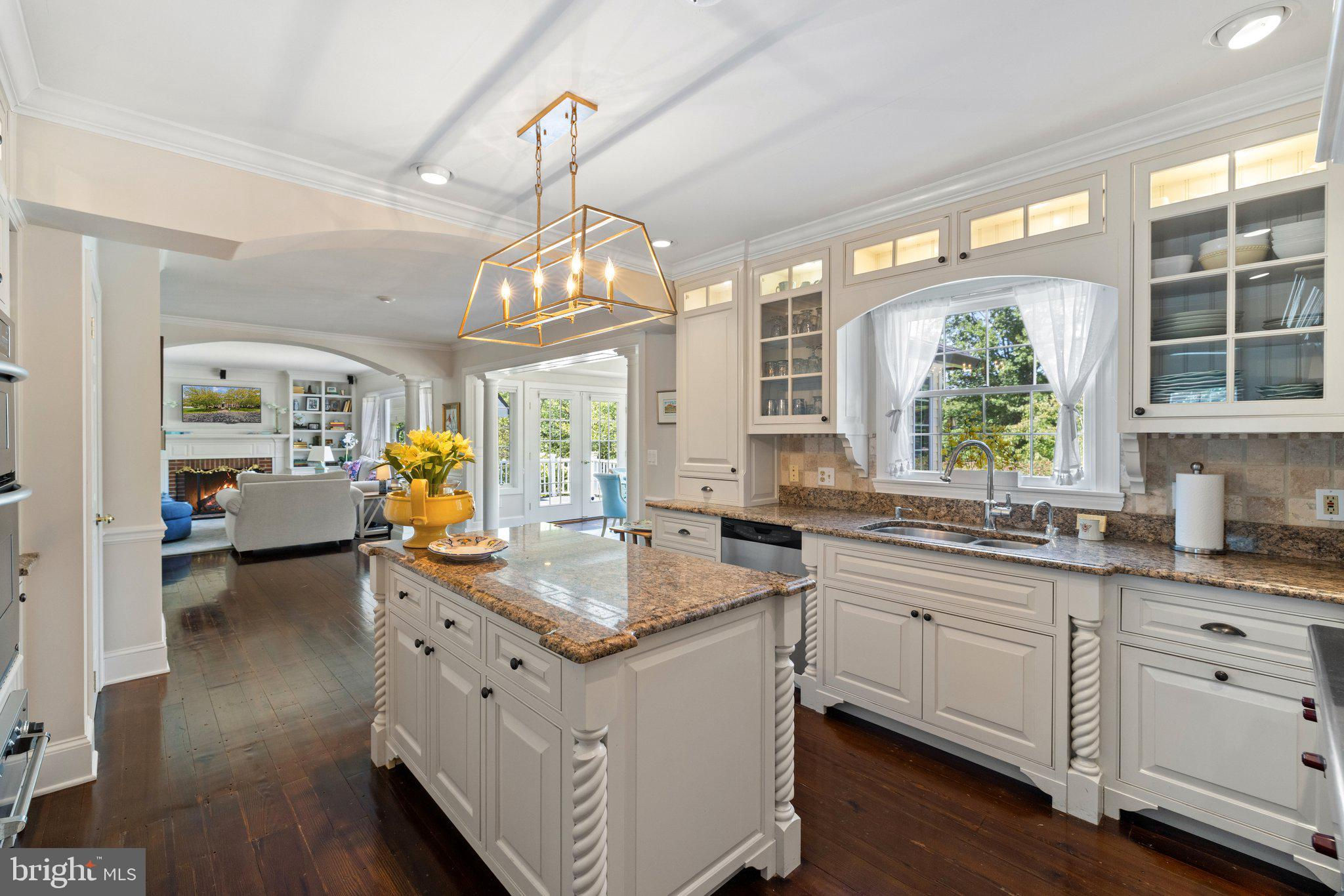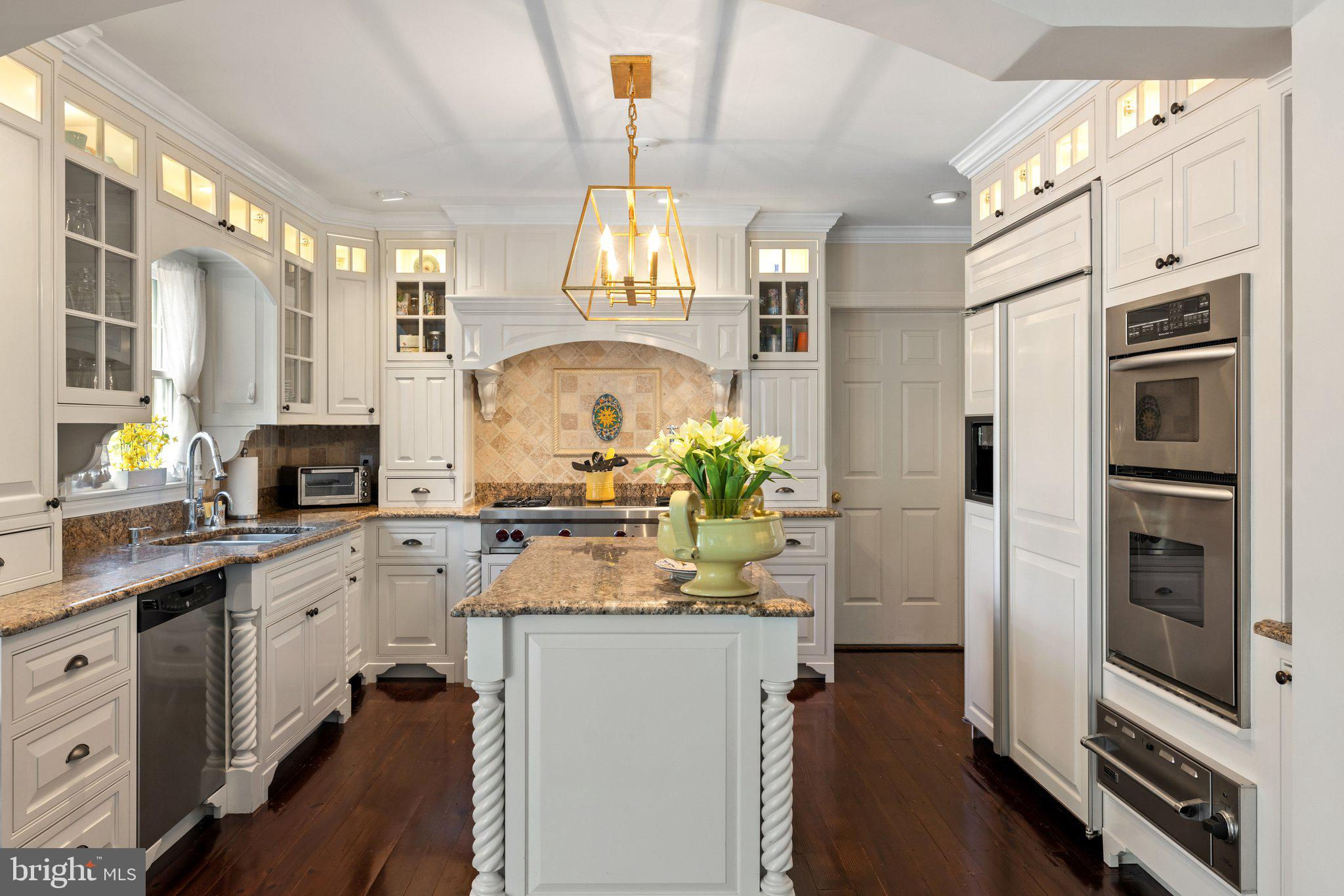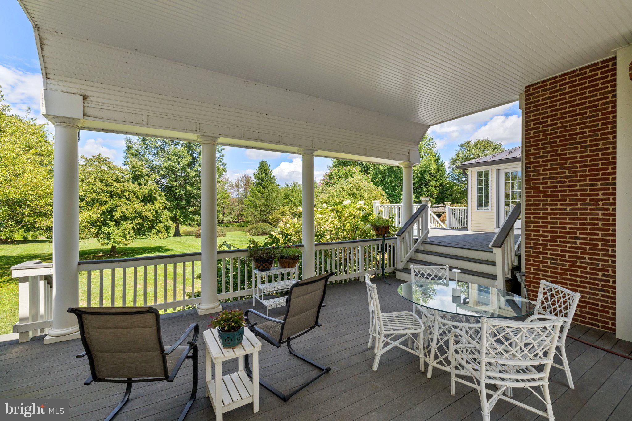 This stunning residence boasts 4 bedrooms , 3 1/2 baths and 3 fireplaces. Open floor plan, high ceilings and an abundance of natural light. Gourmet kitchen, top of the line appliances and custom cabinetry. Fully finished basement and a partially covered rear deck that spans the entire back of the house. There is a large 2-car attached garage, a detached carriage house with 2 garage spaces. Fenced in pool with gazebo, mature plantings, fruit trees and a spring fed pond.