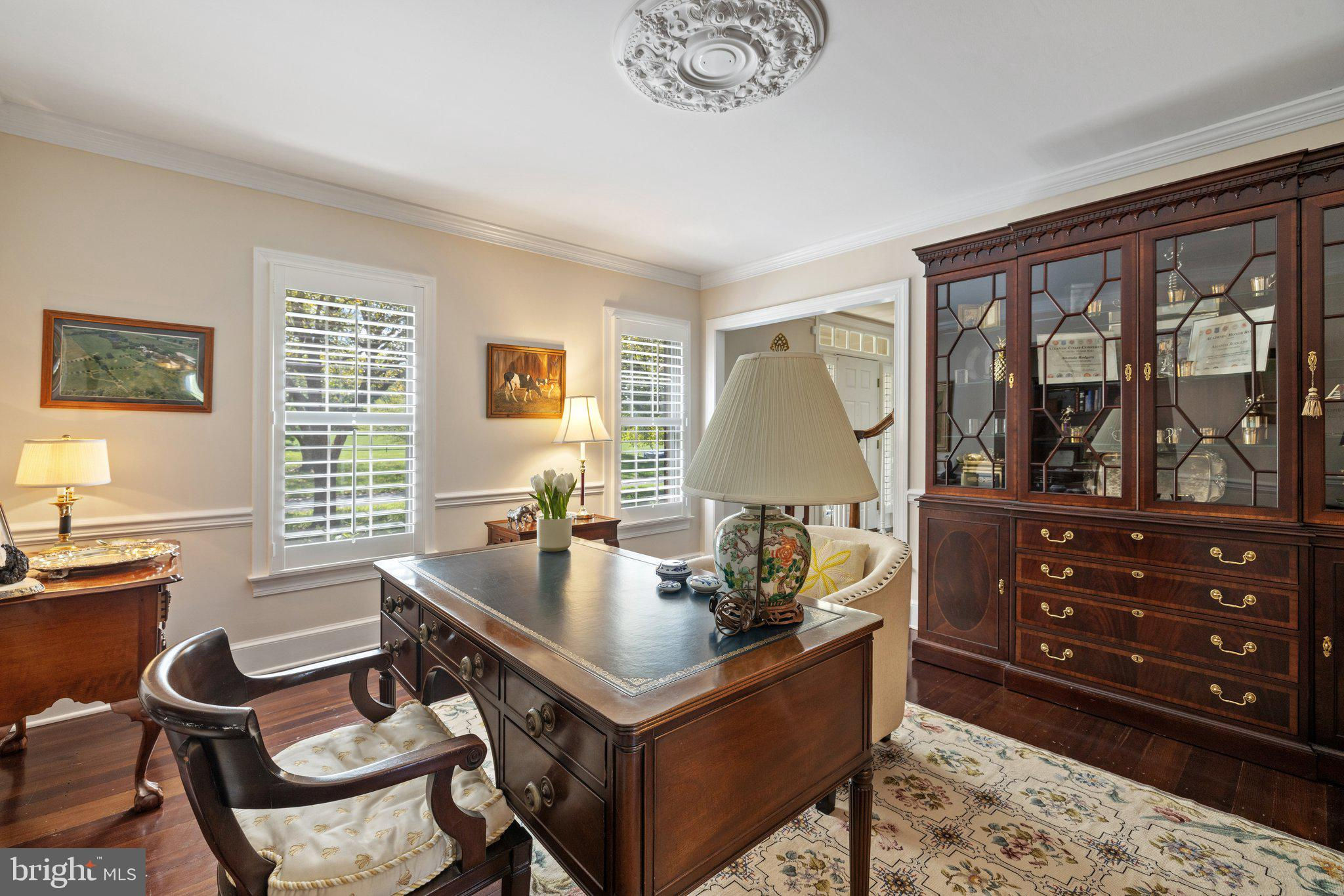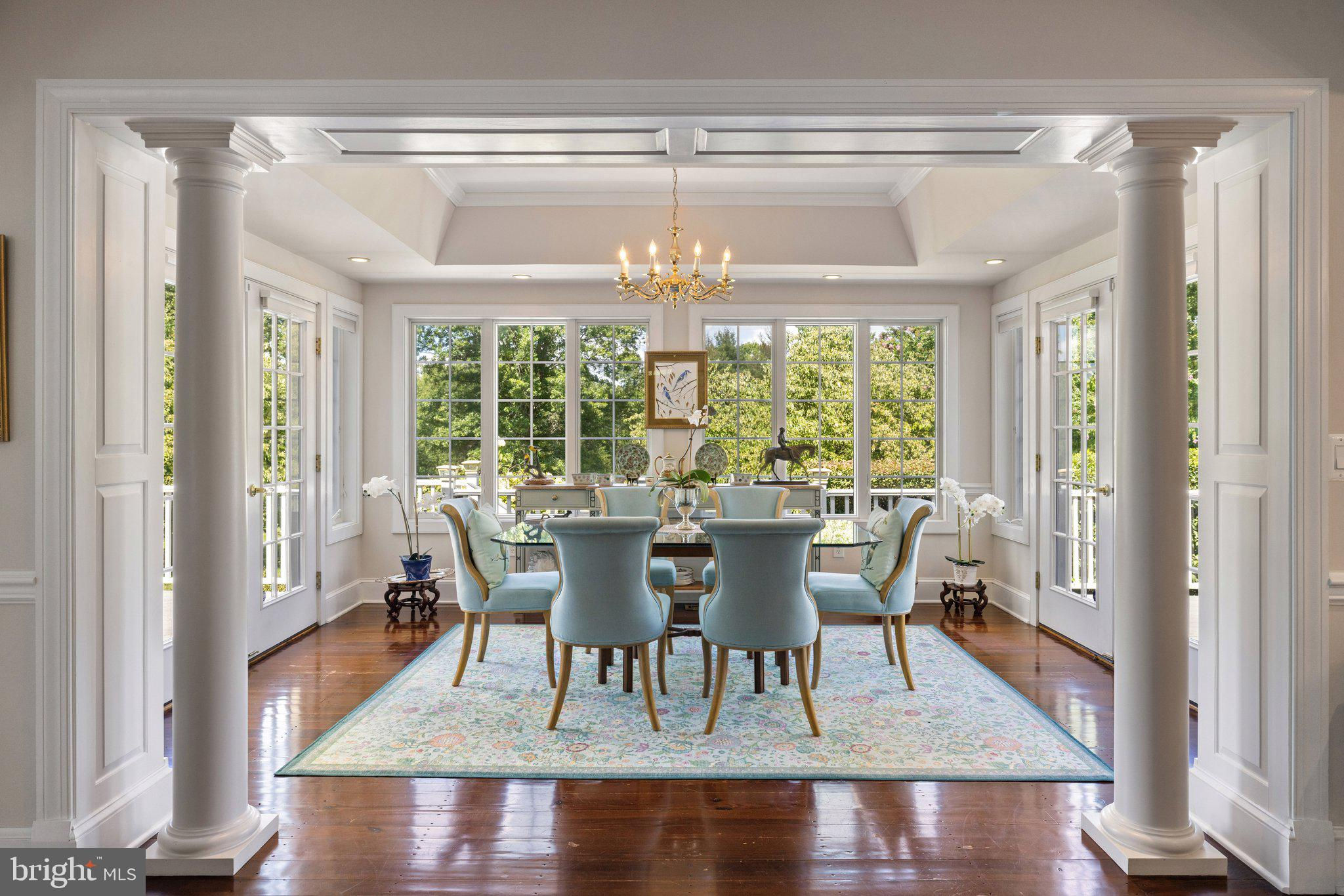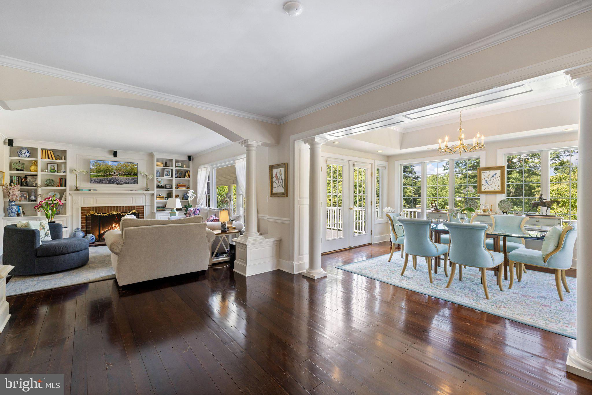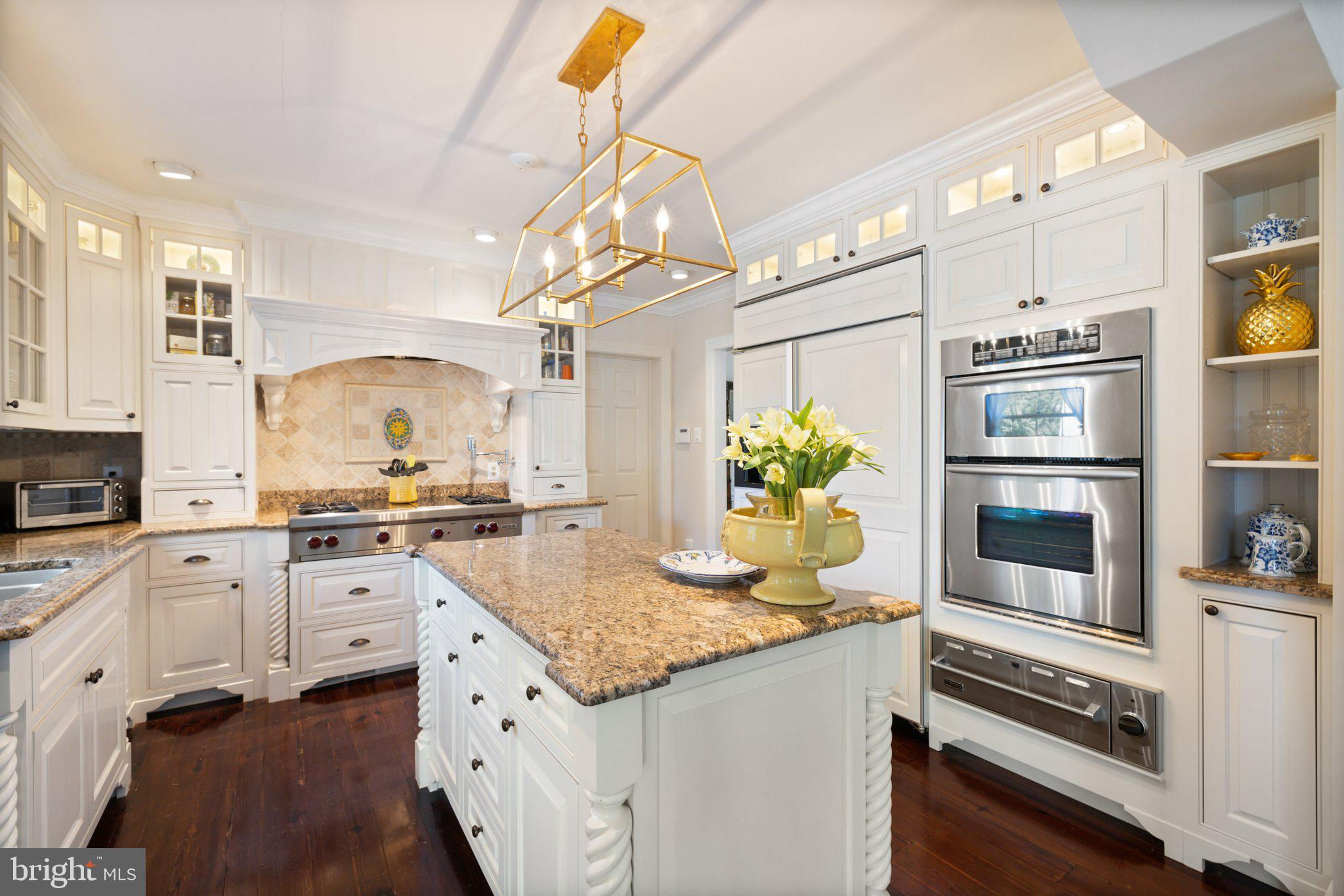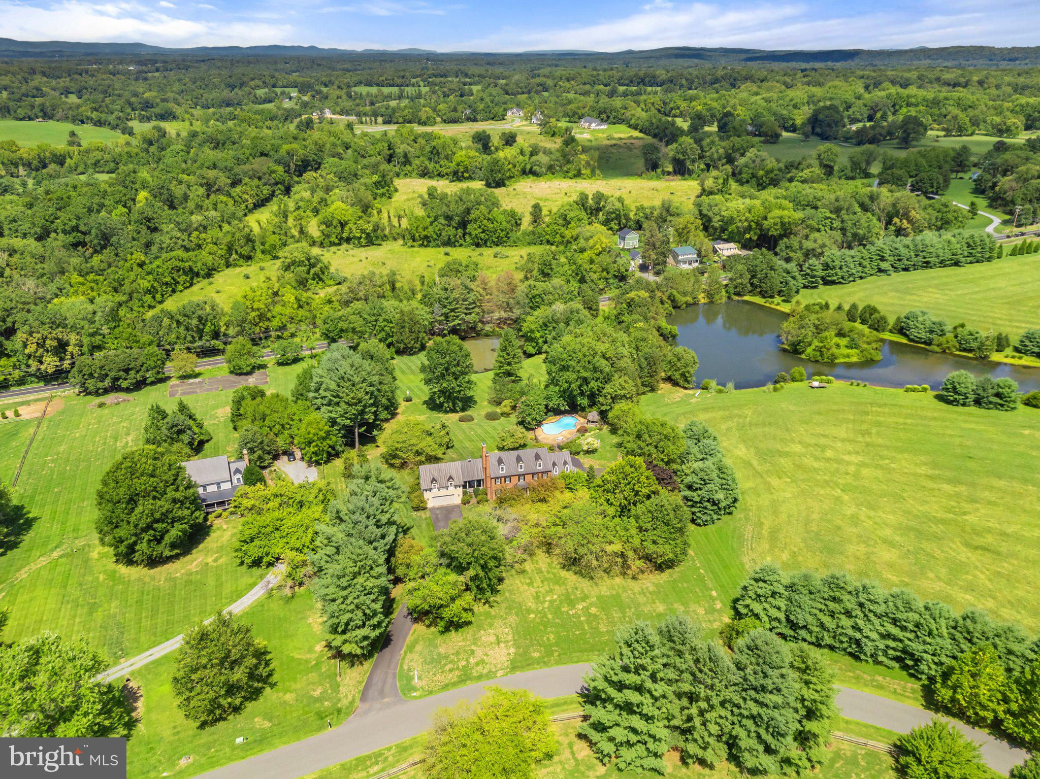 This stunning residence boasts 4 bedrooms , 3 1/2 baths and 3 fireplaces. Open floor plan, high ceilings and an abundance of natural light. Gourmet kitchen, top of the line appliances and custom cabinetry. Fully finished basement and a partially covered rear deck that spans the entire back of the house. There is a large 2-car attached garage, a detached carriage house with 2 garage spaces. Fenced in pool with gazebo, mature plantings, fruit trees and a spring fed pond.