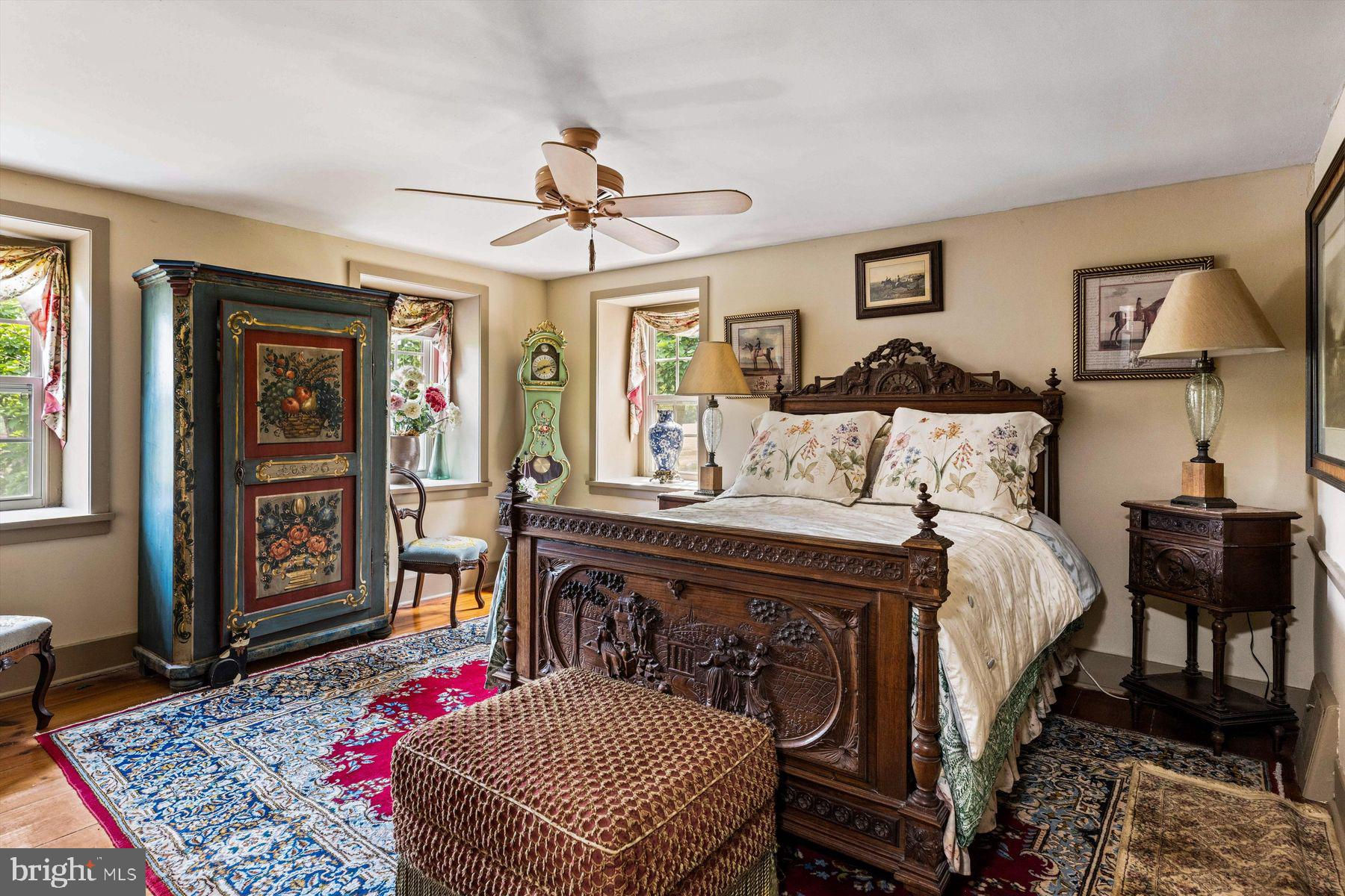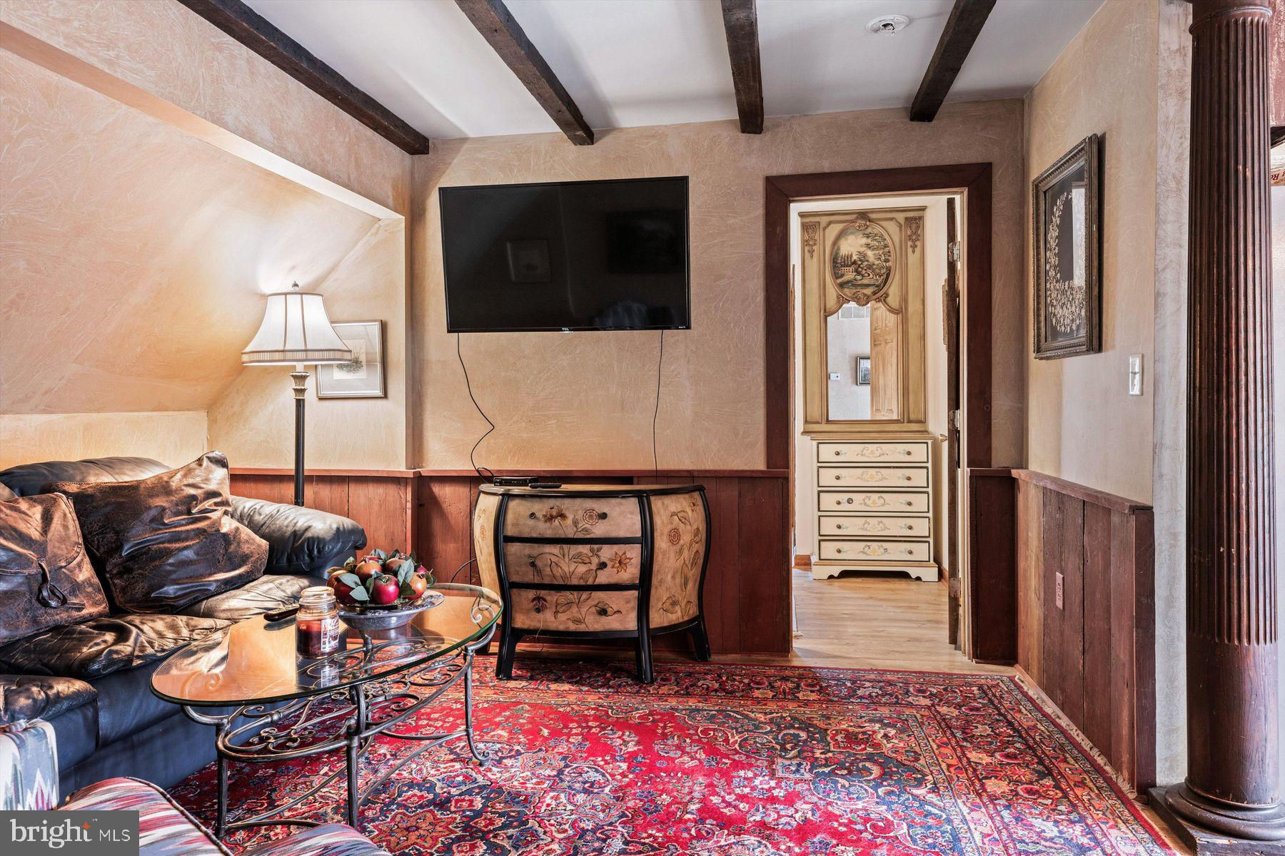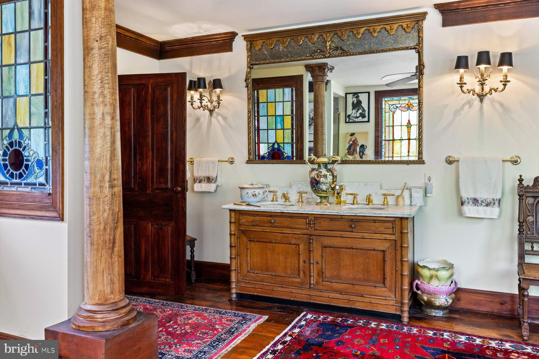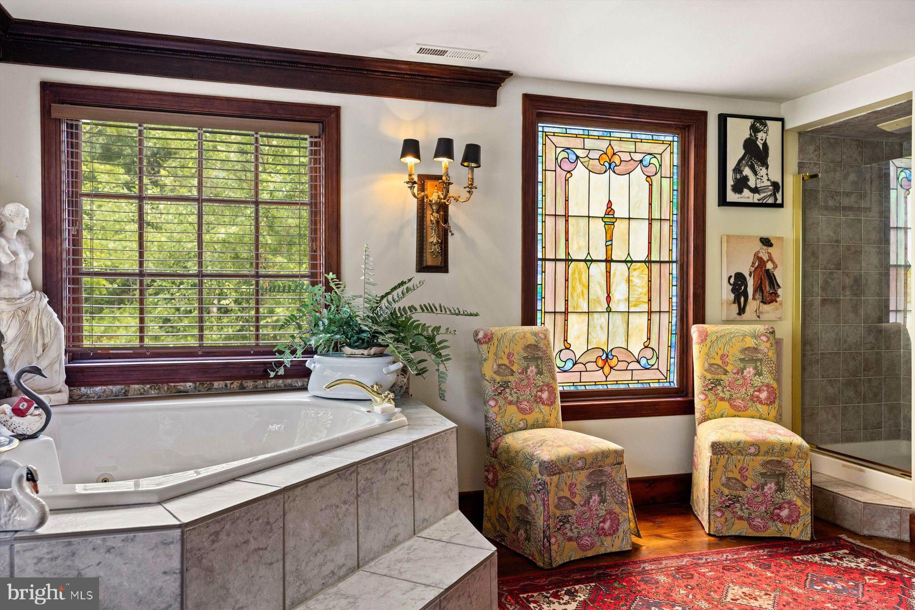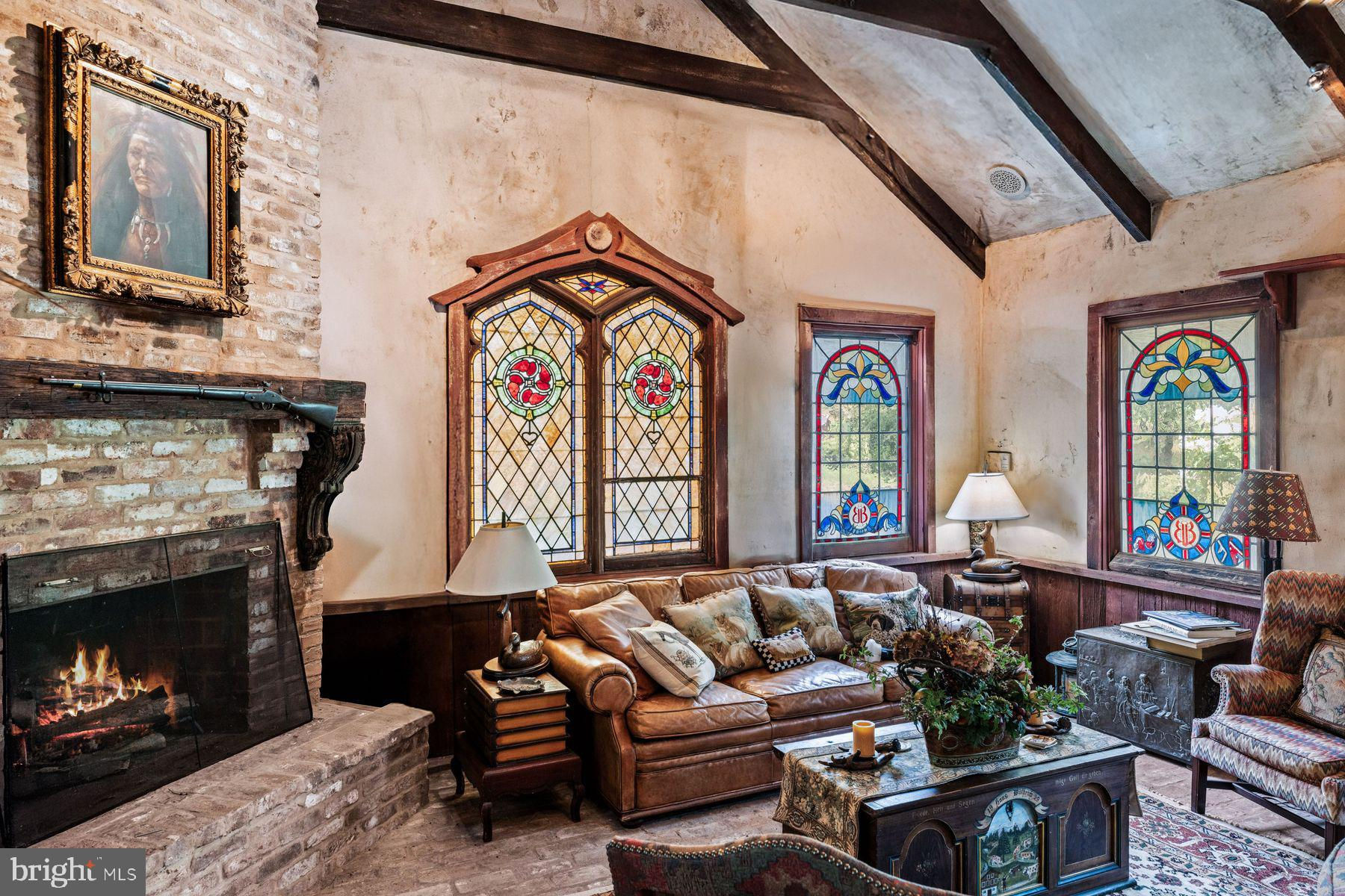Drifting Dell Farm is an idyllic sanctuary epitomizing the charm and tranquility of Upper Bucks County. As you enter through the long, gated drive, you’ll find yourself in a world of breathtaking beauty, where 21 meticulously maintained acres unfold before you. This classic country retreat is adorned with lush perennial gardens, elegant stone walls, fenced pastures, and pristine Gallows Run stream that adds to the serene atmosphere. The centerpiece of the property is the c.1784 stone farmhouse, offering four bedrooms and 3 baths. This home is a showcase of timeless craftsmanship, with original period details such as wide plank floors, exposed beams, deep-sill windows, high ceilings, and four stately fireplaces that provide warmth and character. The heart of the home is a chef’s dream, commercial-grade kitchen open to the large dining room featuring a striking floor-to-ceiling stone fireplace with a grand wood mantel. The adjoining family room, with its arched windows, offers picturesque views of a cascading waterfall and spring-fed creek, creating a perfect blend of indoor comfort and outdoor beauty. Every aspect of Drifting Dell Farm exudes charm and meticulous care, extending to the property’s outbuildings. The old-world pub and pool house features an antique bar, brick flooring, dramatic floor-to-ceiling brick fireplace, cathedral ceiling with exposed beams, and stained-glass windows that enhance the ambiance. Just steps away, the refreshing in-ground pool invites relaxation. The estate includes a carriage house built on the stone foundation of an original barn featuring three-bay garage and guest or caretaker quarters above with two bedrooms and one full plus one half bat. Equestrians will appreciate the the picturesque red barn with stalls, two two turnout sheds, and acres of open grassy pasture. A whimsical aviary adds to the charm of this remarkable property. Drifting Dell Farm is more than just a home; it’s a private retreat where history, nature, and luxury converge.