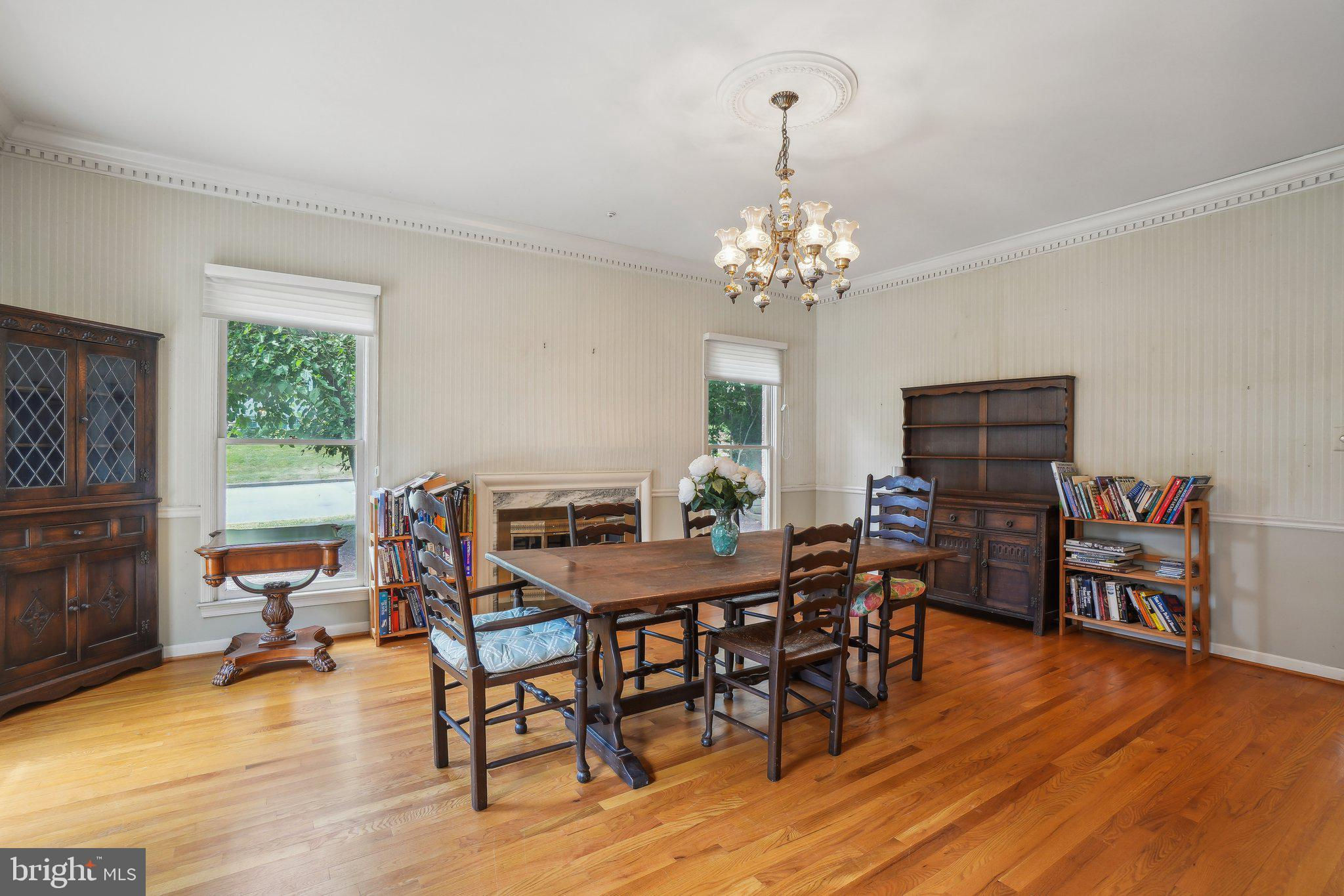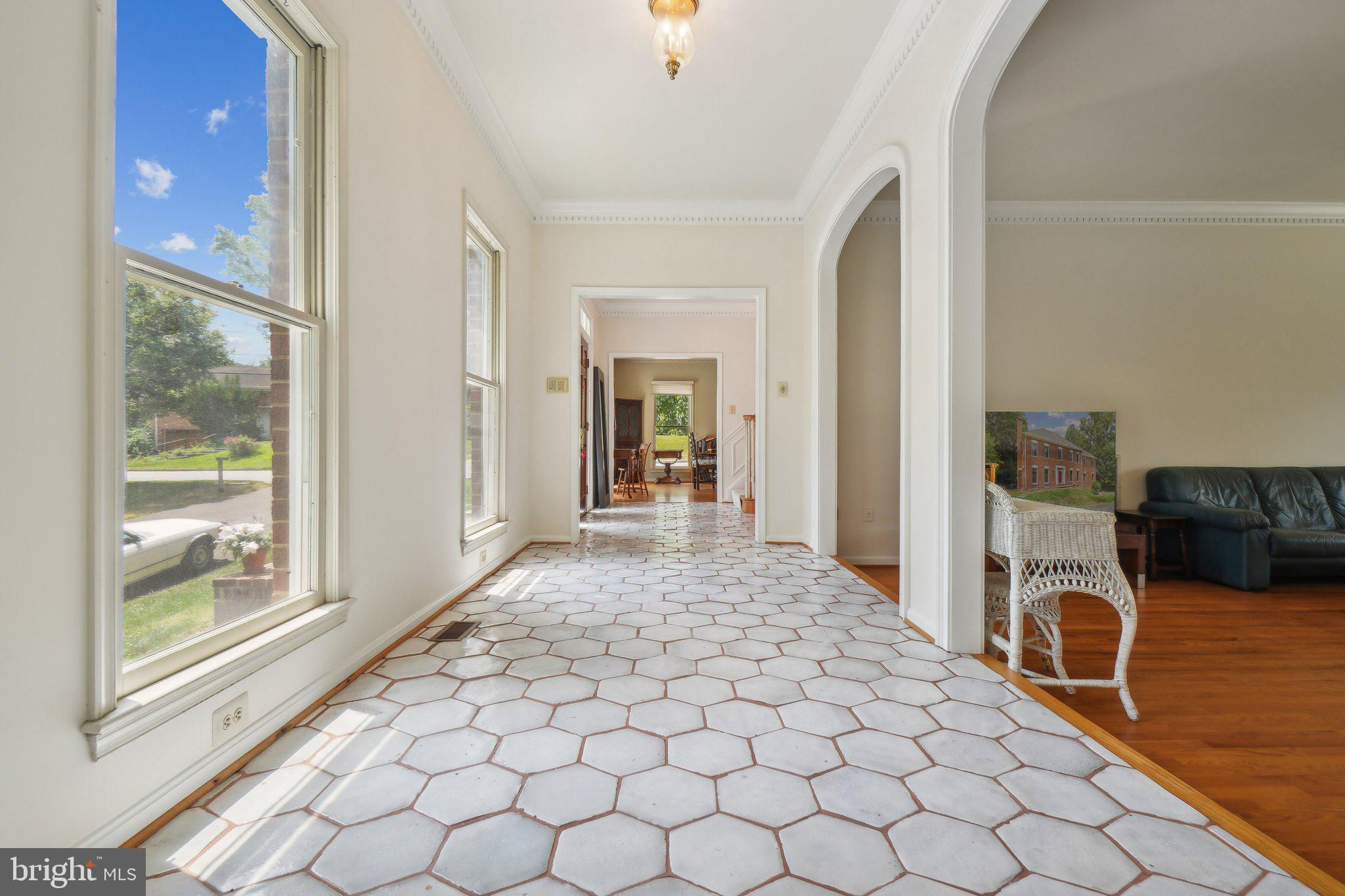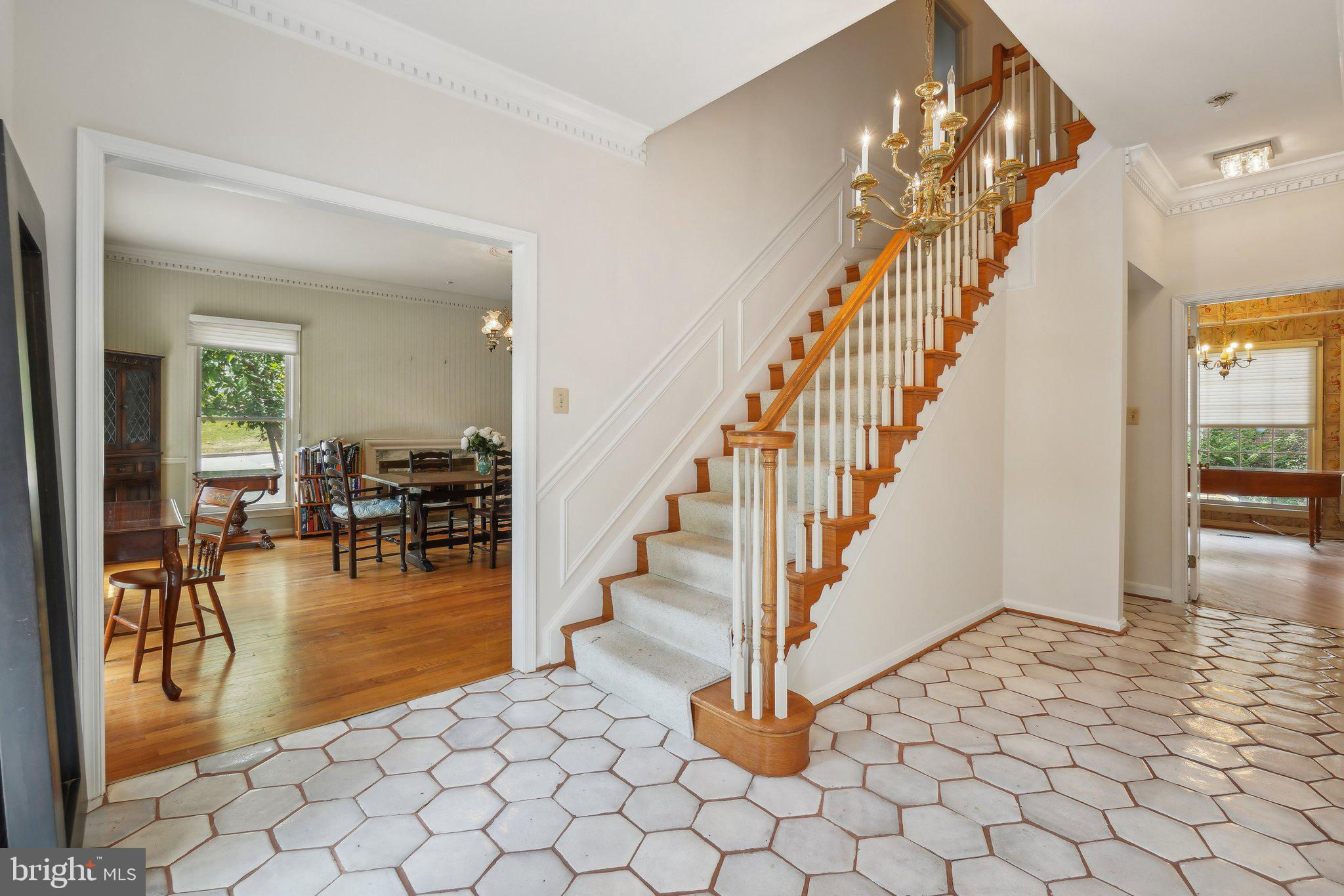 Nestled majestically in the heart of one of Arlington's most esteemed neighborhoods, this classic brick Georgian Colonial residence has 6000+ finished square feet over three floors, exuding high-end finishes and spaces that have timeless charm and subtle sophistication. Discover a grand gallery adorned with five pairs of French doors, beckoning in streams of natural light that dance across the hardwood floors and hand-made American ceramic tile, simultaneously curating intimate spaces and grand entertaining. Begin with a step down living room with 10 ft ceilings, full length windows, crown and dentil molding, and fireplace with a marble hearth. Next, there’s a step down library, also with 10 ft ceilings and crown & dentil molding, with an exceptional Birch Livery bar made from 19th c. french moldings. Library shelving custom made from a 200 year old red oak tree felled on the property. The first floor layout continues with a formal dining room with a second fireplace and White Mariposa marble surround. The grandeur of the central gallery leads directly to the gourmet kitchen with center island, Corian countertops, a suite of stainless steel appliances, two chef prep sinks, gas stove and oven, a breakfast area, butler’s serving pantry, bay window and seamless access to the large rear deck so that the entertainment slips easily into the night air. Upstairs are not one but two Primary Suites. The largest bedroom has a sitting room that is expansive enough to accommodate an eat-in area or home gym, an Azul Baia Brazilian blue marble hearth fireplace, kitchenette with sink/fridge and cabinetry, plus a cantilevered Juliet balcony for taking your morning coffee with the sunrise and birdsong. Luxury continues through glass french doors into the master dressing room with built-in wardrobe and shelving, and the day calmly ends with a refreshing soak in the whirlpool tub, his/her vanities, a second toilet and bidet, double shower heads and skylight above. The upstairs is complete with three additional spacious bedrooms, ample closet storage, and its own electric hot water heater. The lower level is not to be outdone, with a huge gathering space centered around yet another fireplace, a Virginia Pine raised platform ideal for an eating area or burgeoning busker musician, a third wet bar and kitchenette, full bath, bay window and fifth fireplace. The wine cellar is swoon-worthy with racks made from the same 200 year old red oak tree that was felled on the property. A majority of the lower level is above ground, making this as sun filled as the upper two stories; walkout to the rear patio and deck. Brand new Basement flooring has been updated to a light oak luxury vinyl plank! Utility room provides a brand new GE washer/dryer, roughed in wiring for potential spa, two-zoned heat pump system, two-zoned hot water system (one gas, one electric) and upgraded 400 amp electrical panel. Side-loading garage and expansive driveway provides 5-6 parking spaces and boat, ensuring convenience and ease for all occasions. The enviable lot has a mature, varied landscaping with edible fruit and vegetable trees and raised gardens, plus extensive outdoor-feature lighting. Of further interest, the property’s western property line divides Arlington and McLean and would have, historically, been part of George Washington’s survey and Civil War memorabilia has been found on the Lot! Less than a mile from Washington Golf and Country Club and Marymount University, just down the street to the highly-sought Jamestown Elementary school, a mecca of coffee shops and dining areas nearby, this location is undeniably Central to so many choices and offers a stress-free commute in multiple directions!