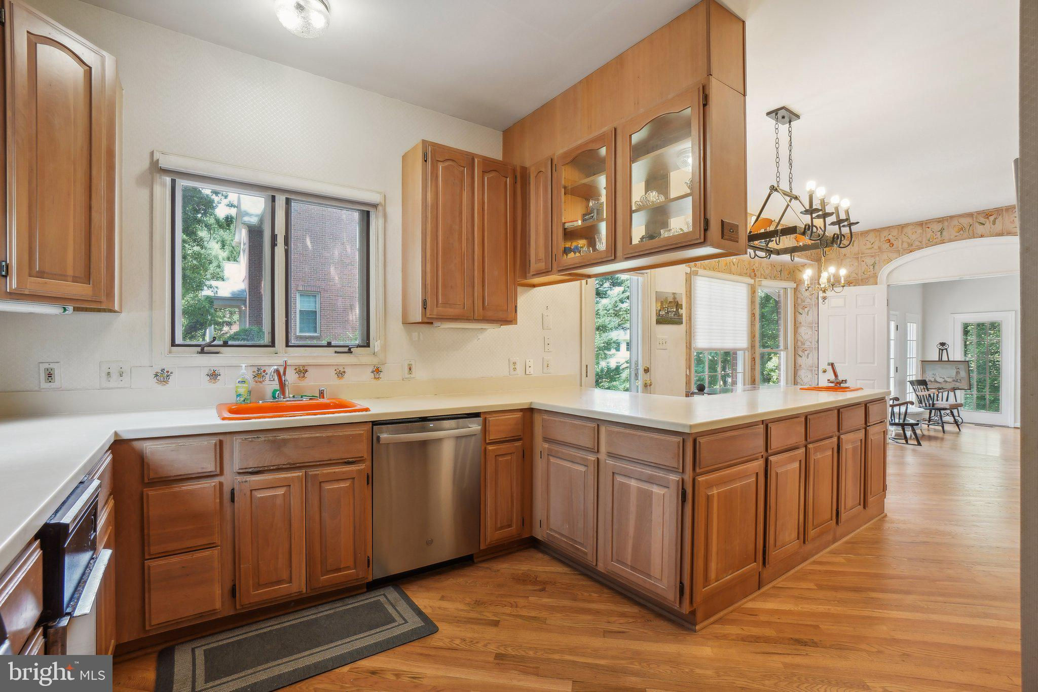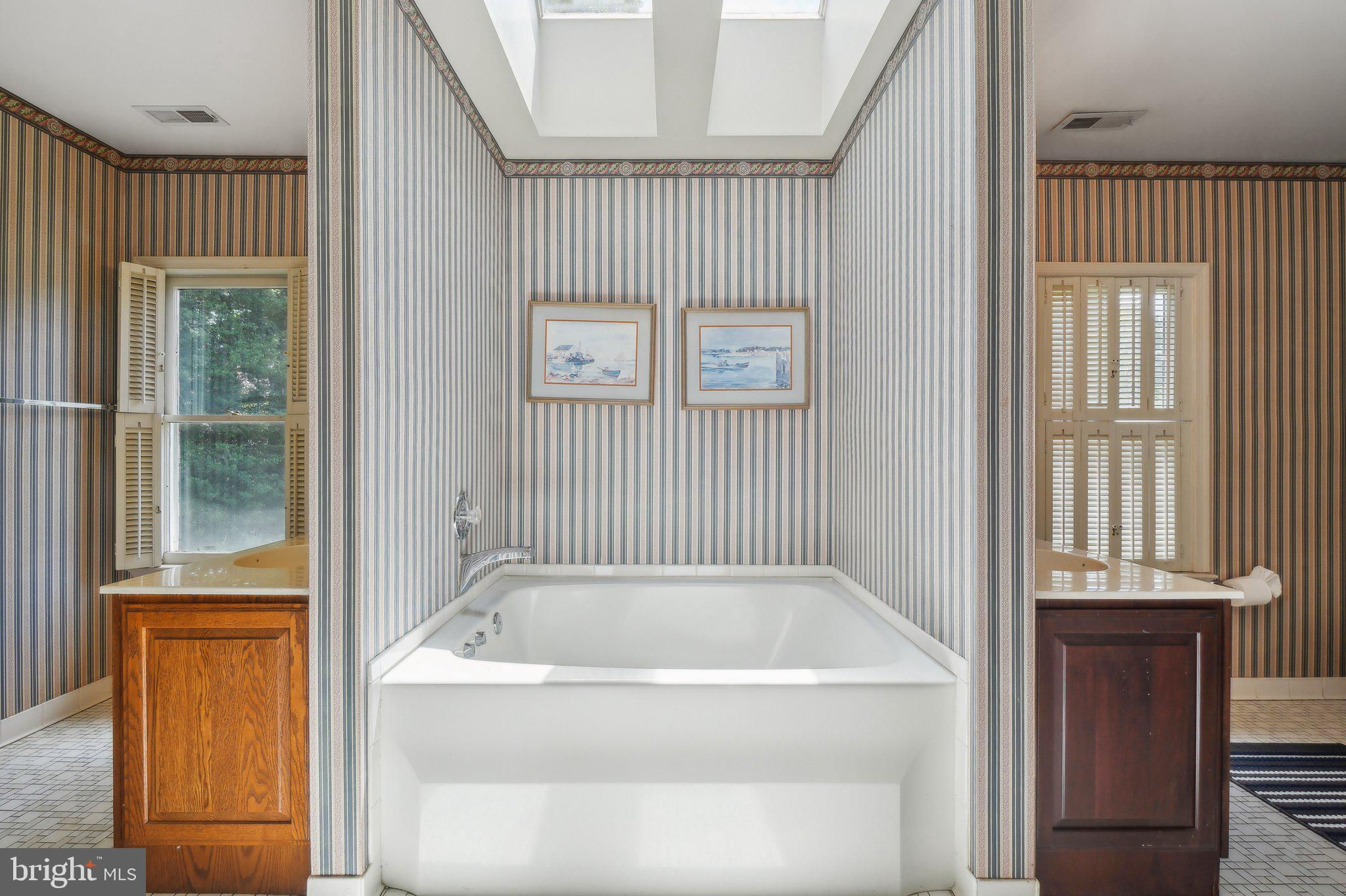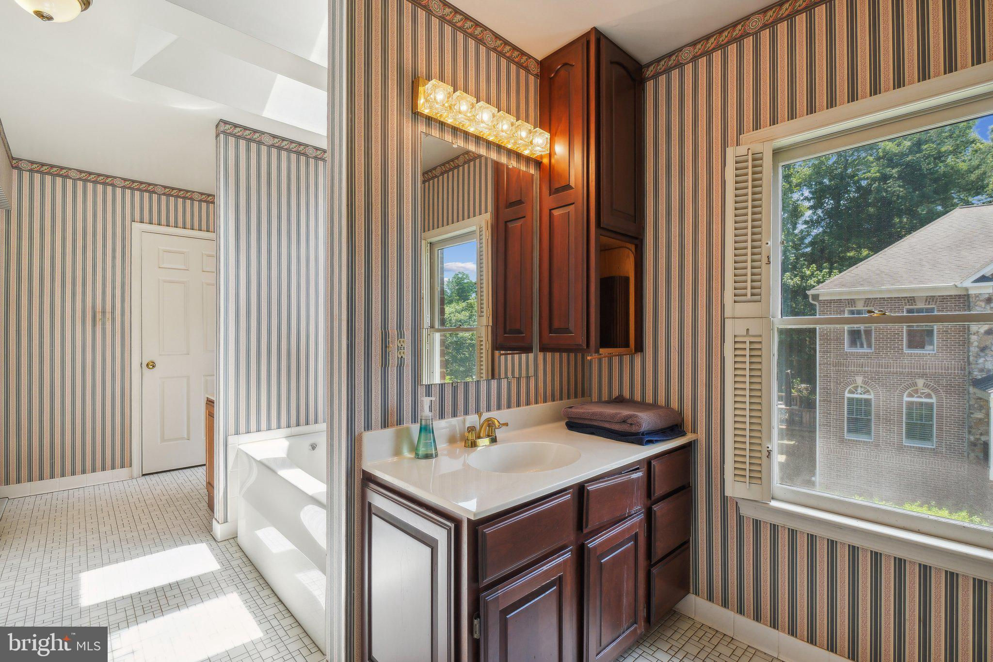 Nestled majestically in the heart of one of Arlington's most esteemed neighborhoods, this classic brick Georgian Colonial residence has 6000+ finished square feet over three floors, exuding high-end finishes and spaces that have timeless charm and subtle sophistication. Discover a grand gallery adorned with five pairs of French doors, beckoning in streams of natural light that dance across the hardwood floors and hand-made American ceramic tile, simultaneously curating intimate spaces and grand entertaining. Begin with a step down living room with 10 ft ceilings, full length windows, crown and dentil molding, and fireplace with a marble hearth. Next, there’s a step down library, also with 10 ft ceilings and crown & dentil molding, with an exceptional Birch Livery bar made from 19th c. french moldings. Library shelving custom made from a 200 year old red oak tree felled on the property. The first floor layout continues with a formal dining room with a second fireplace and White Mariposa marble surround. The grandeur of the central gallery leads directly to the gourmet kitchen with center island, Corian countertops, a suite of stainless steel appliances, two chef prep sinks, gas stove and oven, a breakfast area, butler’s serving pantry, bay window and seamless access to the large rear deck so that the entertainment slips easily into the night air. Upstairs are not one but two Primary Suites. The largest bedroom has a sitting room that is expansive enough to accommodate an eat-in area or home gym, an Azul Baia Brazilian blue marble hearth fireplace, kitchenette with sink/fridge and cabinetry, plus a cantilevered Juliet balcony for taking your morning coffee with the sunrise and birdsong. Luxury continues through glass french doors into the master dressing room with built-in wardrobe and shelving, and the day calmly ends with a refreshing soak in the whirlpool tub, his/her vanities, a second toilet and bidet, double shower heads and skylight above. The upstairs is complete with three additional spacious bedrooms, ample closet storage, and its own electric hot water heater. The lower level is not to be outdone, with a huge gathering space centered around yet another fireplace, a Virginia Pine raised platform ideal for an eating area or burgeoning busker musician, a third wet bar and kitchenette, full bath, bay window and fifth fireplace. The wine cellar is swoon-worthy with racks made from the same 200 year old red oak tree that was felled on the property. A majority of the lower level is above ground, making this as sun filled as the upper two stories; walkout to the rear patio and deck. Brand new Basement flooring has been updated to a light oak luxury vinyl plank! Utility room provides a brand new GE washer/dryer, roughed in wiring for potential spa, two-zoned heat pump system, two-zoned hot water system (one gas, one electric) and upgraded 400 amp electrical panel. Side-loading garage and expansive driveway provides 5-6 parking spaces and boat, ensuring convenience and ease for all occasions. The enviable lot has a mature, varied landscaping with edible fruit and vegetable trees and raised gardens, plus extensive outdoor-feature lighting. Of further interest, the property’s western property line divides Arlington and McLean and would have, historically, been part of George Washington’s survey and Civil War memorabilia has been found on the Lot! Less than a mile from Washington Golf and Country Club and Marymount University, just down the street to the highly-sought Jamestown Elementary school, a mecca of coffee shops and dining areas nearby, this location is undeniably Central to so many choices and offers a stress-free commute in multiple directions!