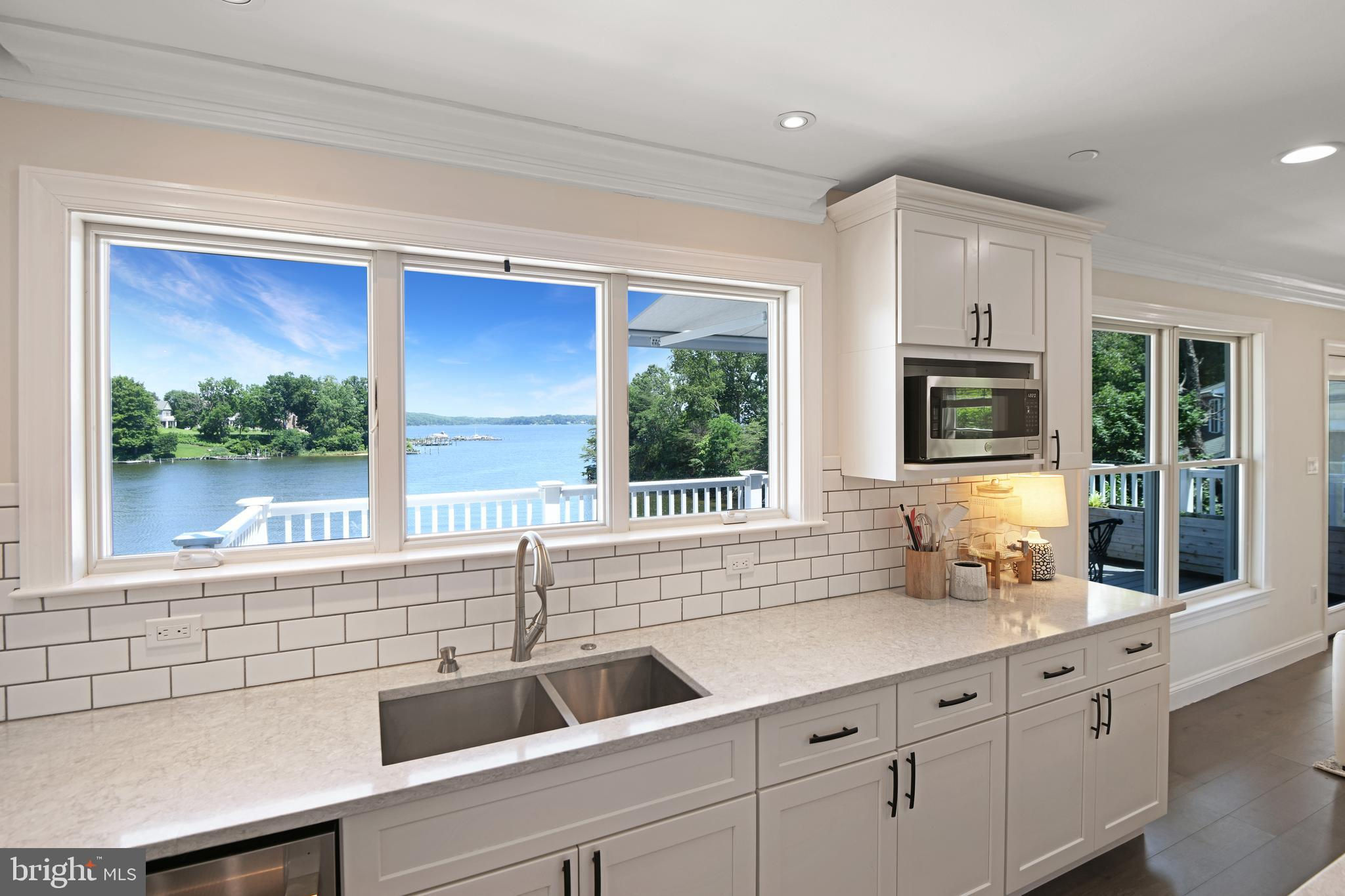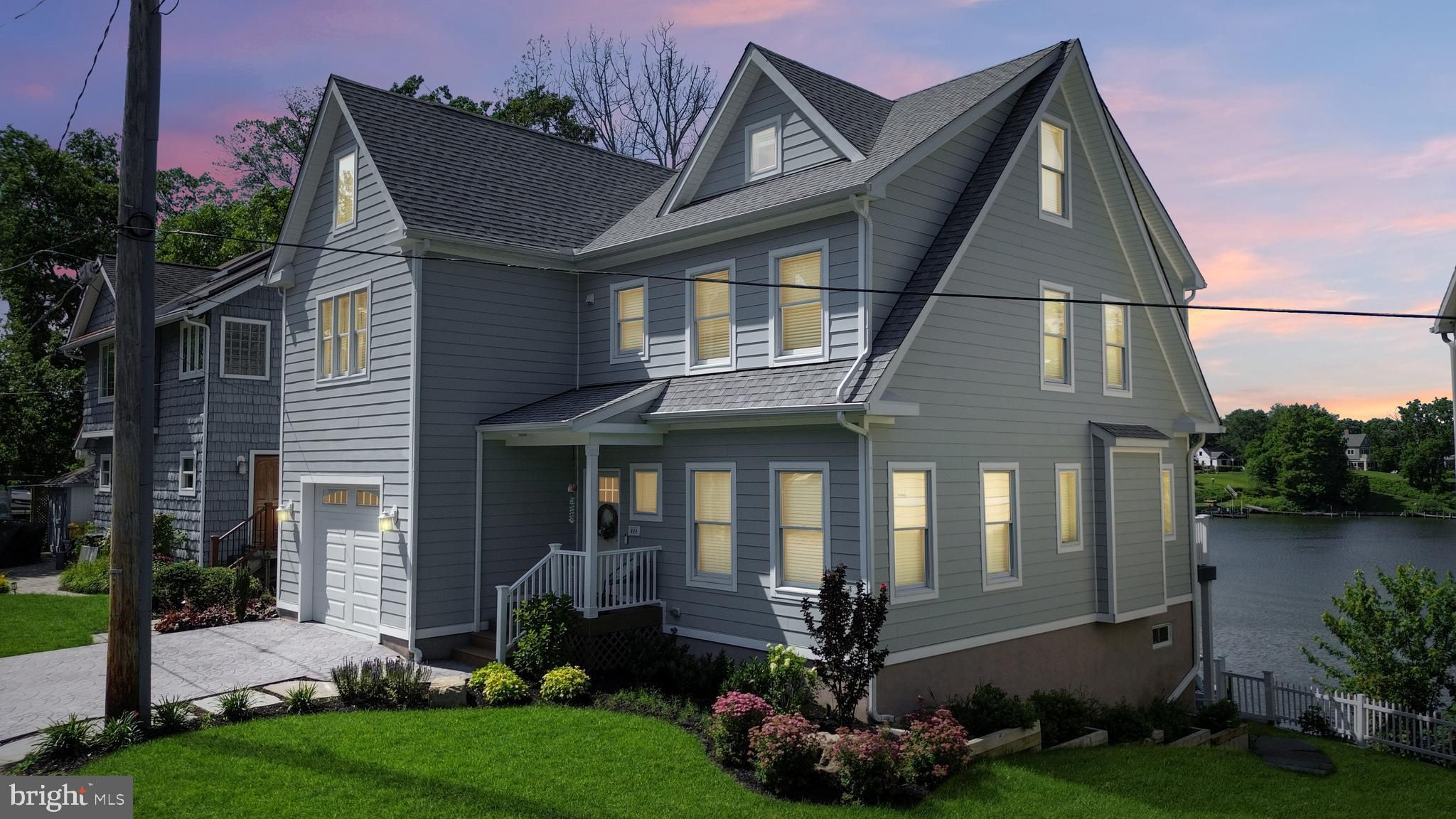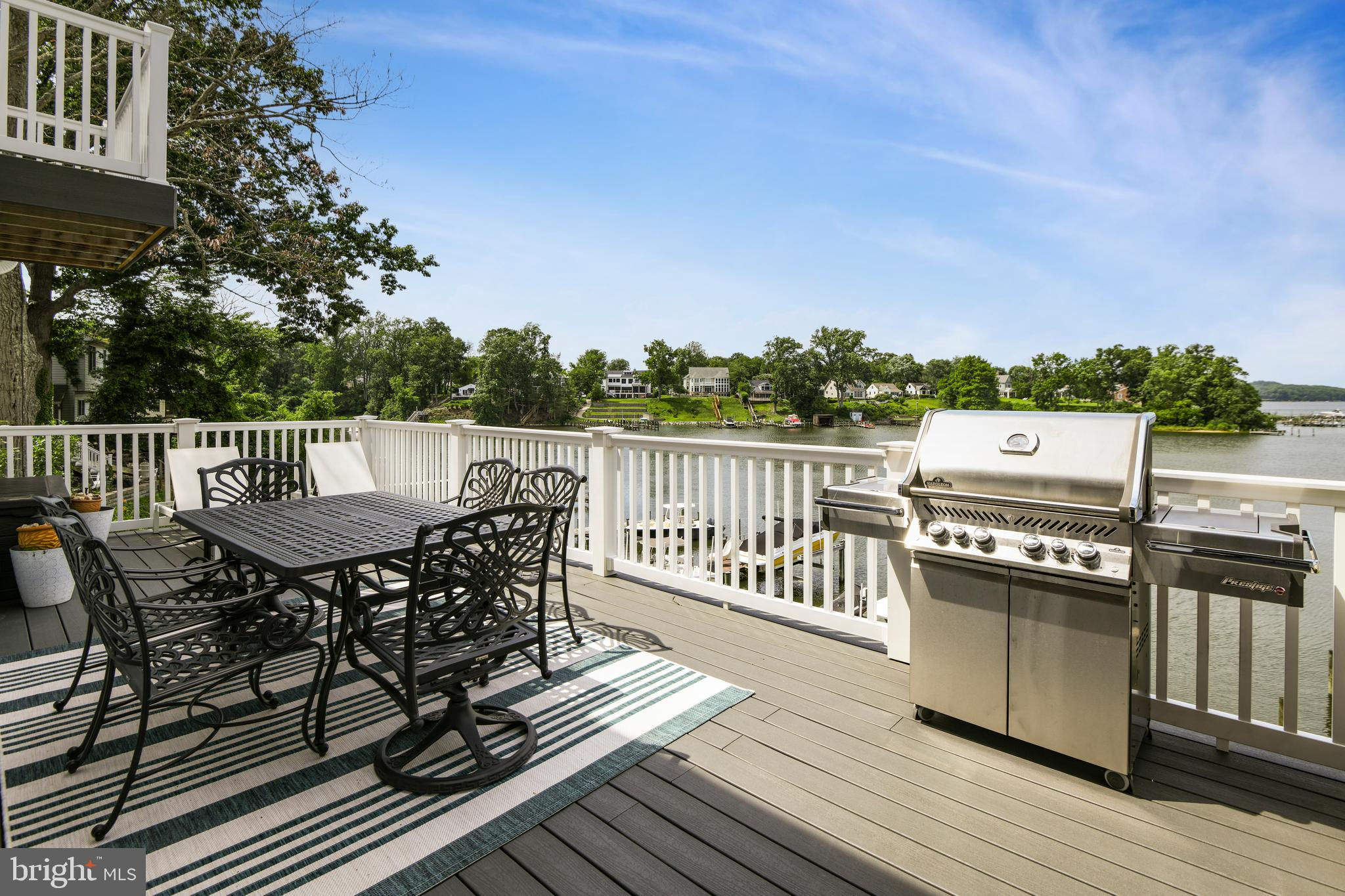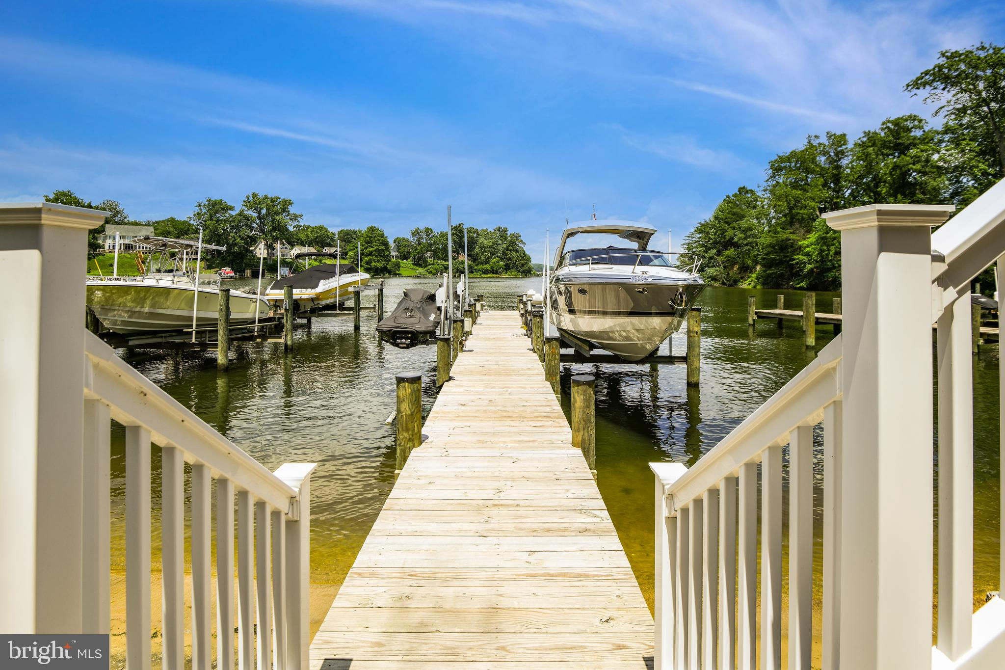 Welcome to your private waterfront oasis! Only 3 years young and meticulously maintained, this stunning residence offers the feel of a luxury model home—inside and out. Nestled along over 50 feet of private beachfront, this four-level property spans approximately 4,000 square feet of finished living space, thoughtfully designed to showcase breathtaking water views from nearly every window. As you enter, you're greeted by a beautifully upgraded foyer and a remodeled powder room. The open-concept main level features an expansive dining room that flows seamlessly into a spacious family room with an electric fireplace, creating the perfect ambiance for gatherings. The gourmet kitchen is a showstopper, boasting custom quartz countertops, a dramatic quartz waterfall island with seating space, white cabinetry, stainless steel appliances, upgraded hood, custom backsplash, and a large picture window that frames stunning views of Cool Spring Cove and the Magothy River. Step outside from the main level to one of four composite decks, complete with an electric retractable awning for shaded comfort. Upstairs, the luxurious primary suite offers a spacious bedroom, private balcony, massive walk-in closet, and a spa-like bathroom with soaking tub and walk-in shower. Two additional large bedrooms, a full hall bath, and a convenient laundry room complete this level. The top level features a bright and airy loft, a third full bathroom, and an expansive fourth bedroom with panoramic water views. The finished lower level continues to impress with a second family room, a full wet bar with quartz countertops, refrigerator, dishwasher, Ice maker, 2 tap kegerator and seating—ideal for entertaining. Movie nights are unforgettable in the custom home theater, and guests will love the elegant fourth full bath, featuring dual rainfall shower heads, a bench, and dual vanities. Step out from the lower level to the deck with a strategically placed hot tub, offering unobstructed views and glass panel railings to maximize the scenery. Enjoy a cozy fire on the patio, or follow the beautifully crafted hardscaped steps with custom lighting down to your private beach. Launch a kayak, go crabbing off the private dock, or take your boat out—just five minutes from the mouth of the Chesapeake Bay! The dock is fully equipped with 2 rotating jet ski lifts, a 12,000lb boat lift, water, electricity, shore power and bumpers. Additionally, there is ample space for guests to pull up and dock. Conveniently located near Donnelly’s Dockside and The Point—easily accessible by boat or car. All of this, plus an oversized one-car garage makes this home a must-see. Don't miss this amazing opportunity to call this unbelievable property your home!