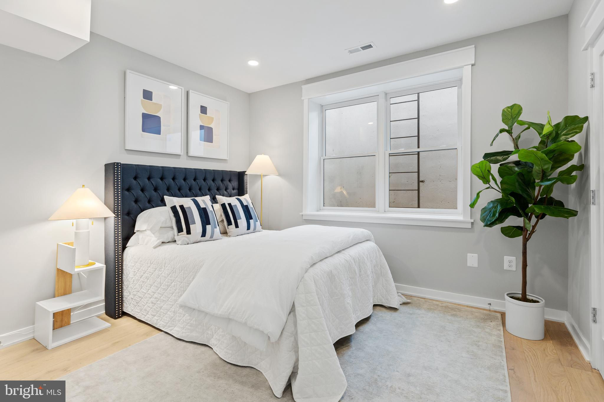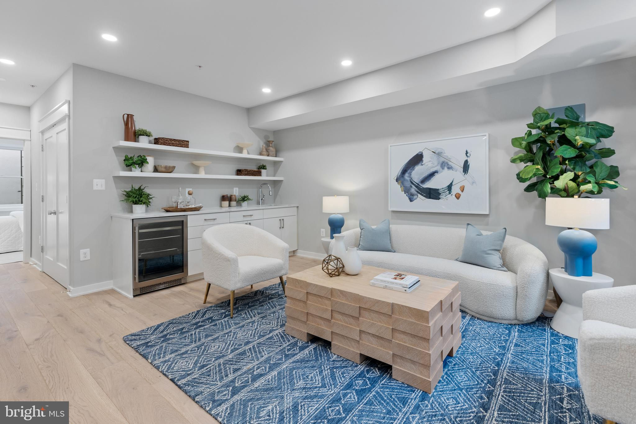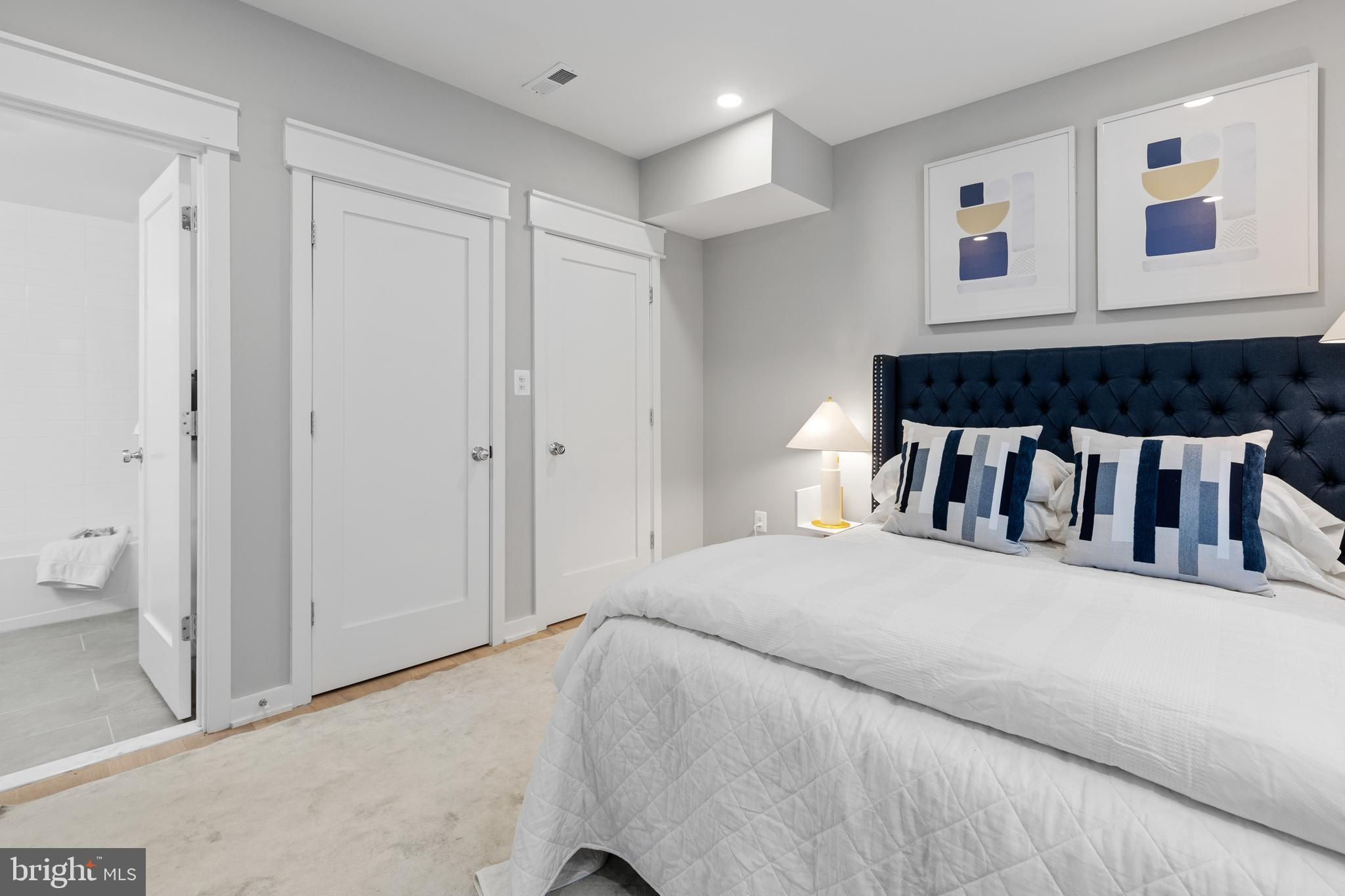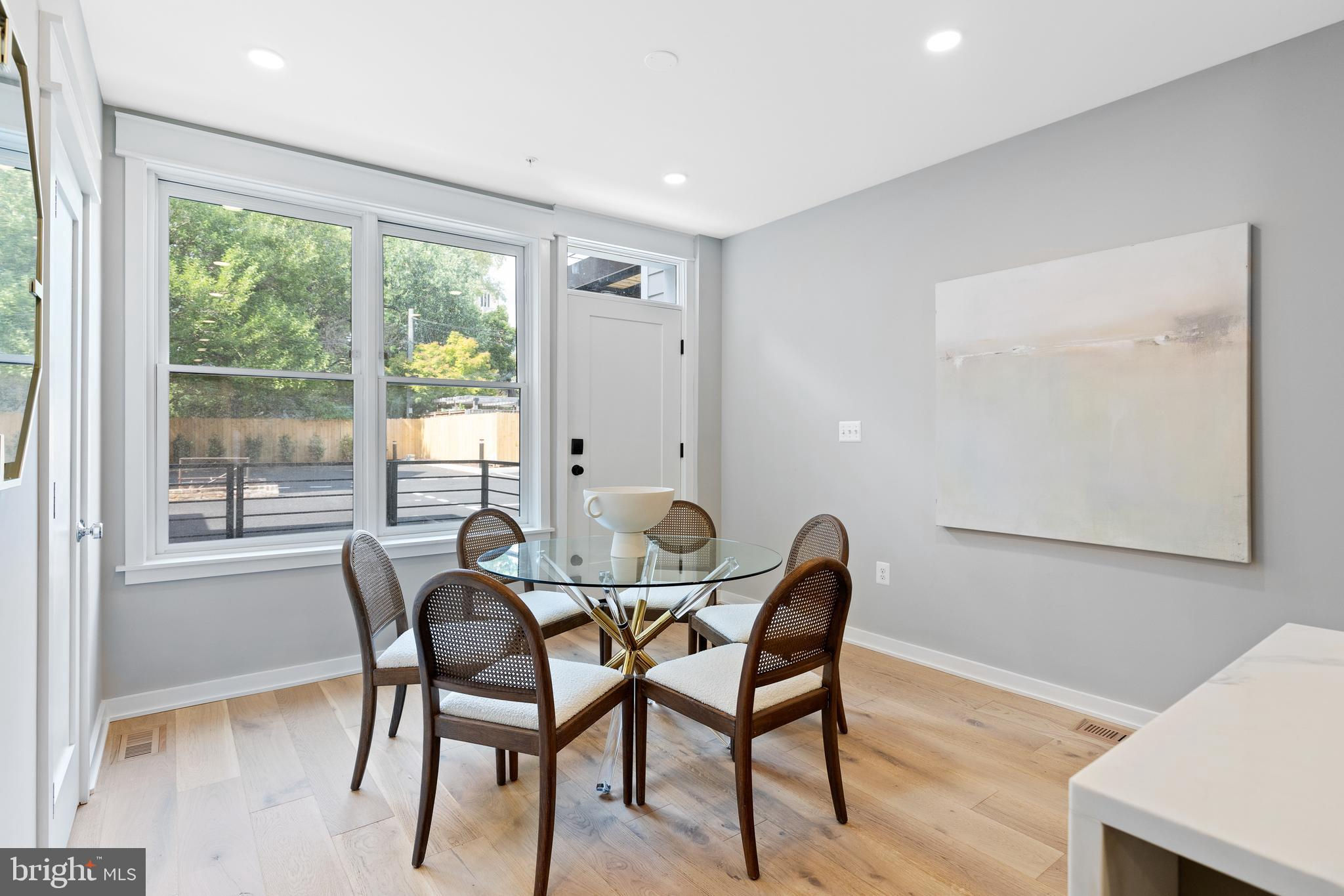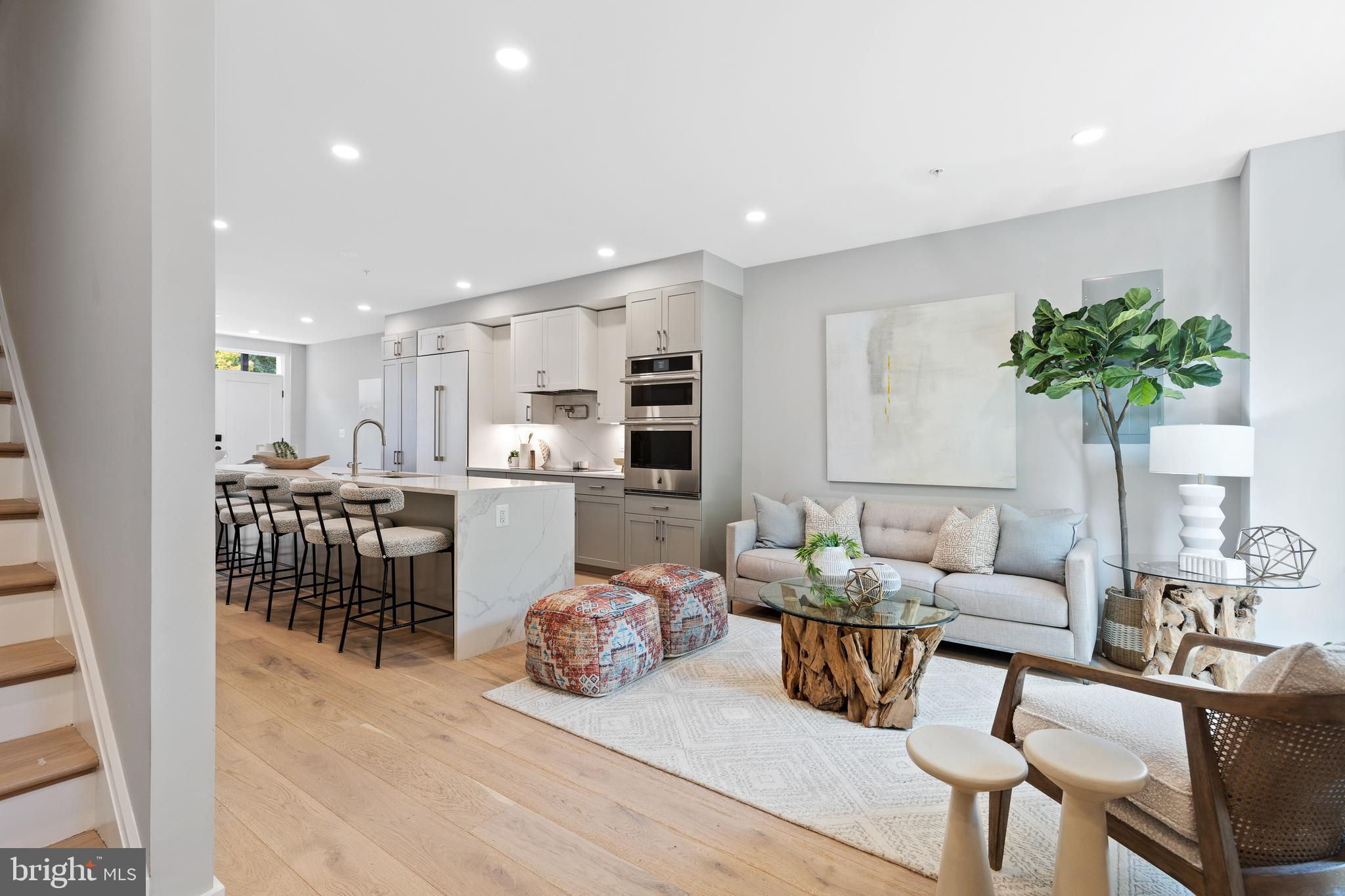 Welcome Home to Ebenezer Row, located at 406 D Street, this exquisite new construction spans an impressive 2,500 square feet across four levels, providing a perfect blend of privacy and spaciousness. The home features a modern layout with 5 bedrooms and 5.5 bathrooms, each thoughtfully designed with an en-suite bathrooms in all bedrooms, making it ideal for families or for hosting guests. This property offers dual-car parking—a notable convenience in its vibrant neighborhood. The architectural design is cutting-edge, equipped with state-of-the-art amenities and finishes, setting a new standard for luxurious urban living. Inside, the residence showcases top-tier Jenn Air appliances, including an induction cooktop that complements the culinary experience. The kitchen is a work of art, featuring bespoke J Suss cabinetry and a striking waterfall island at the heart of an open-plan layout, seamlessly integrating living and dining areas—perfect for both entertaining and relaxation. Comfort meets style in the spacious bedrooms, each fitted with elfa closet systems for maximum organization. The primary bathroom offers a tranquil retreat with a frameless shower and dual vanity, while the guest suites boast large tubs with mosaic tile finishes, providing a spa-like atmosphere. The lower level enhances living space with a large family room, a fully equipped wet bar, an additional laundry room, and a generously-sized bedroom with an en-suite bathroom. Every detail in this home is meticulously crafted, from the 9-foot ceilings that invite natural light, to the wide plank oak flooring with a matte finish, adding a touch of understated elegance. This property is not just a home, but a lifestyle choice, offering an unparalleled living experience in the heart of Washington, D.C., just moments away from Barracks Row, Eastern Market, and the Ballpark District. This is where modern amenities meet luxurious comfort, creating the ultimate urban sanctuary.