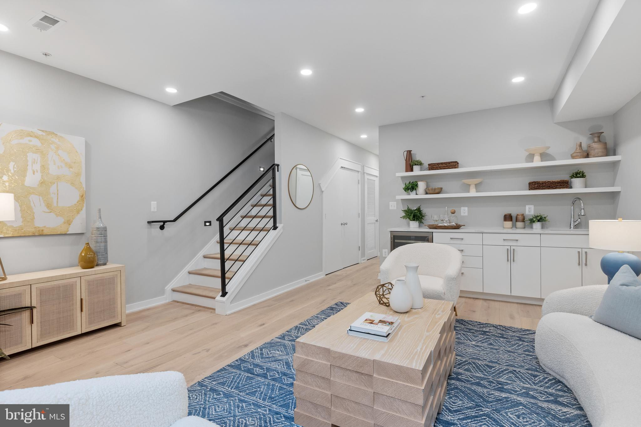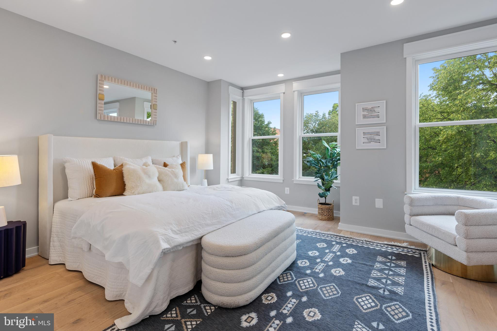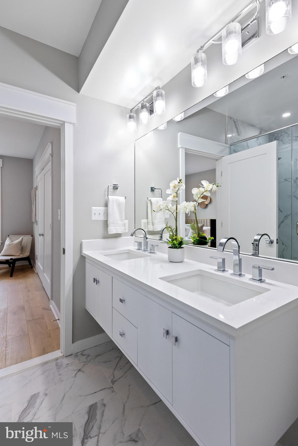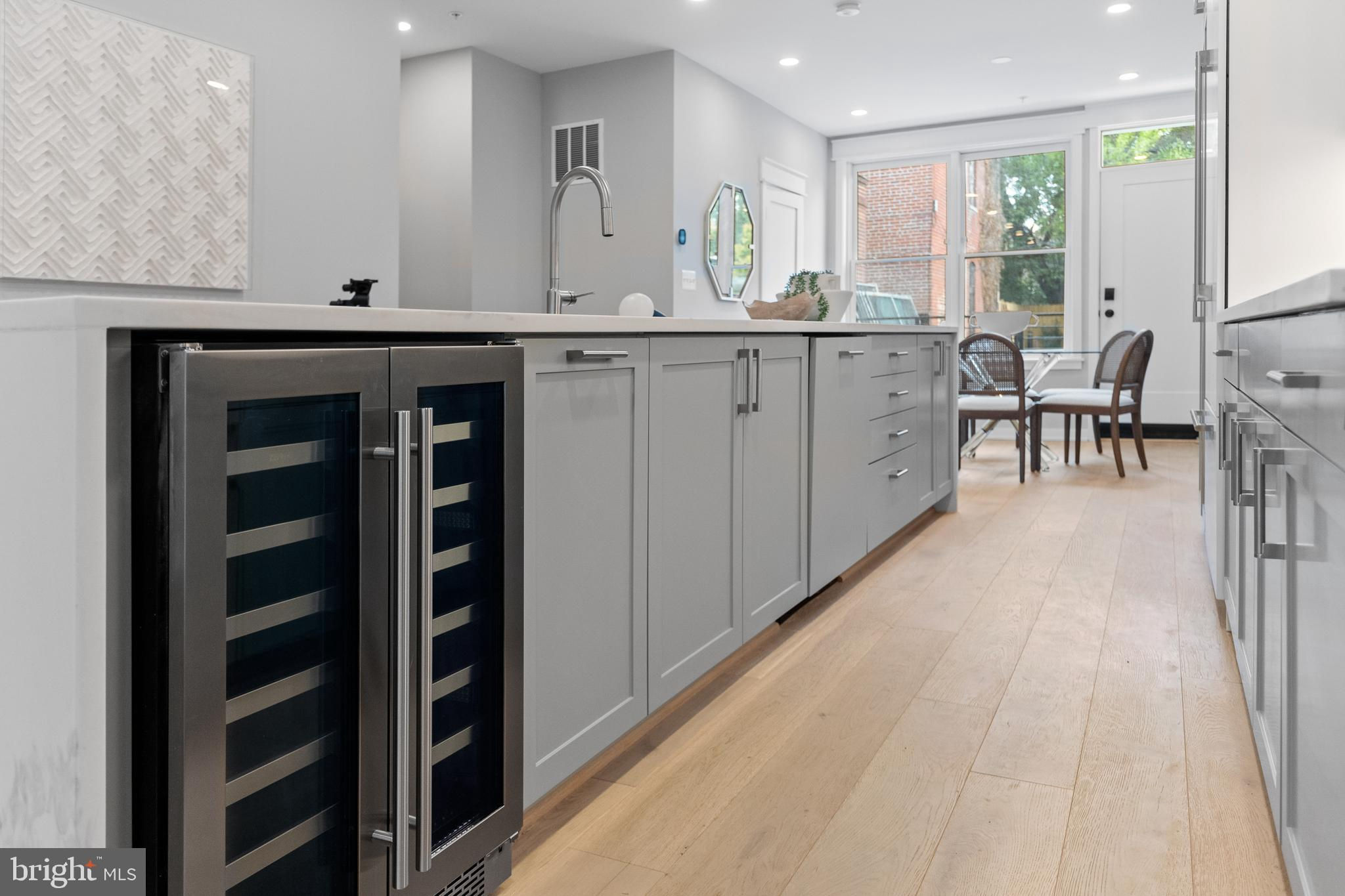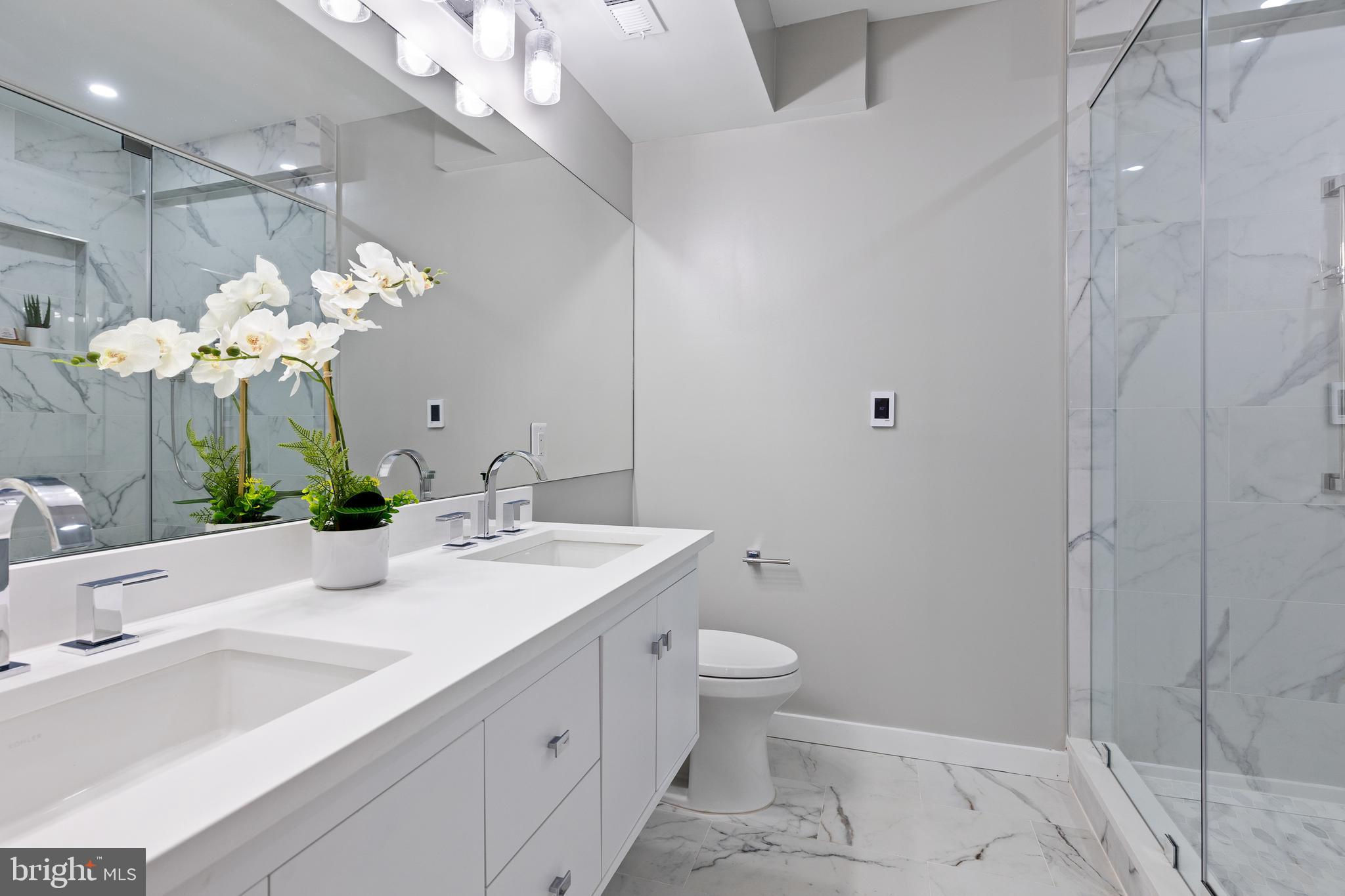 Welcome Home to Ebenezer Row, located at 406 D Street, this exquisite new construction spans an impressive 2,500 square feet across four levels, providing a perfect blend of privacy and spaciousness. The home features a modern layout with 5 bedrooms and 5.5 bathrooms, each thoughtfully designed with an en-suite bathrooms in all bedrooms, making it ideal for families or for hosting guests. This property offers dual-car parking—a notable convenience in its vibrant neighborhood. The architectural design is cutting-edge, equipped with state-of-the-art amenities and finishes, setting a new standard for luxurious urban living. Inside, the residence showcases top-tier Jenn Air appliances, including an induction cooktop that complements the culinary experience. The kitchen is a work of art, featuring bespoke J Suss cabinetry and a striking waterfall island at the heart of an open-plan layout, seamlessly integrating living and dining areas—perfect for both entertaining and relaxation. Comfort meets style in the spacious bedrooms, each fitted with elfa closet systems for maximum organization. The primary bathroom offers a tranquil retreat with a frameless shower and dual vanity, while the guest suites boast large tubs with mosaic tile finishes, providing a spa-like atmosphere. The lower level enhances living space with a large family room, a fully equipped wet bar, an additional laundry room, and a generously-sized bedroom with an en-suite bathroom. Every detail in this home is meticulously crafted, from the 9-foot ceilings that invite natural light, to the wide plank oak flooring with a matte finish, adding a touch of understated elegance. This property is not just a home, but a lifestyle choice, offering an unparalleled living experience in the heart of Washington, D.C., just moments away from Barracks Row, Eastern Market, and the Ballpark District. This is where modern amenities meet luxurious comfort, creating the ultimate urban sanctuary.