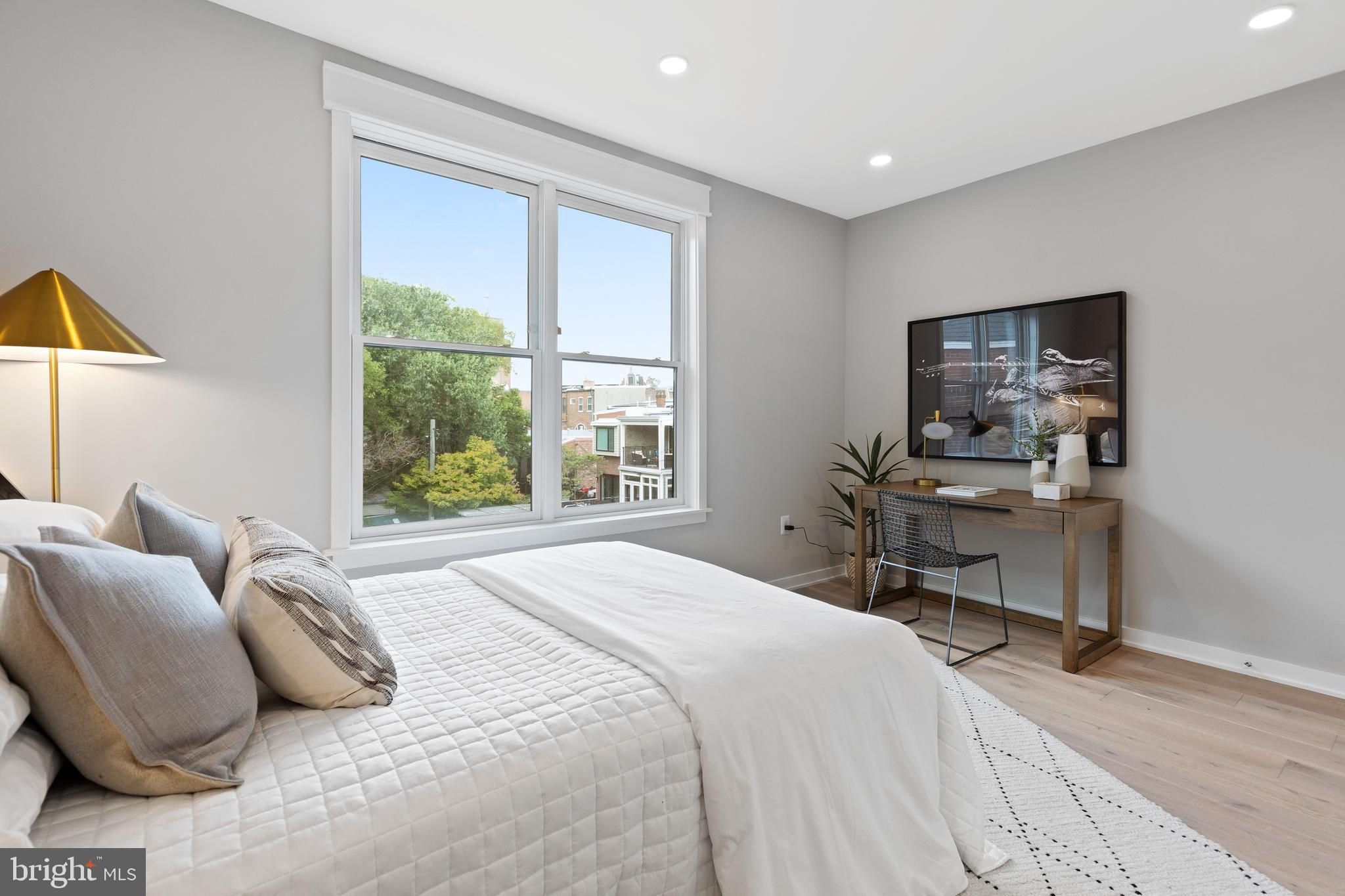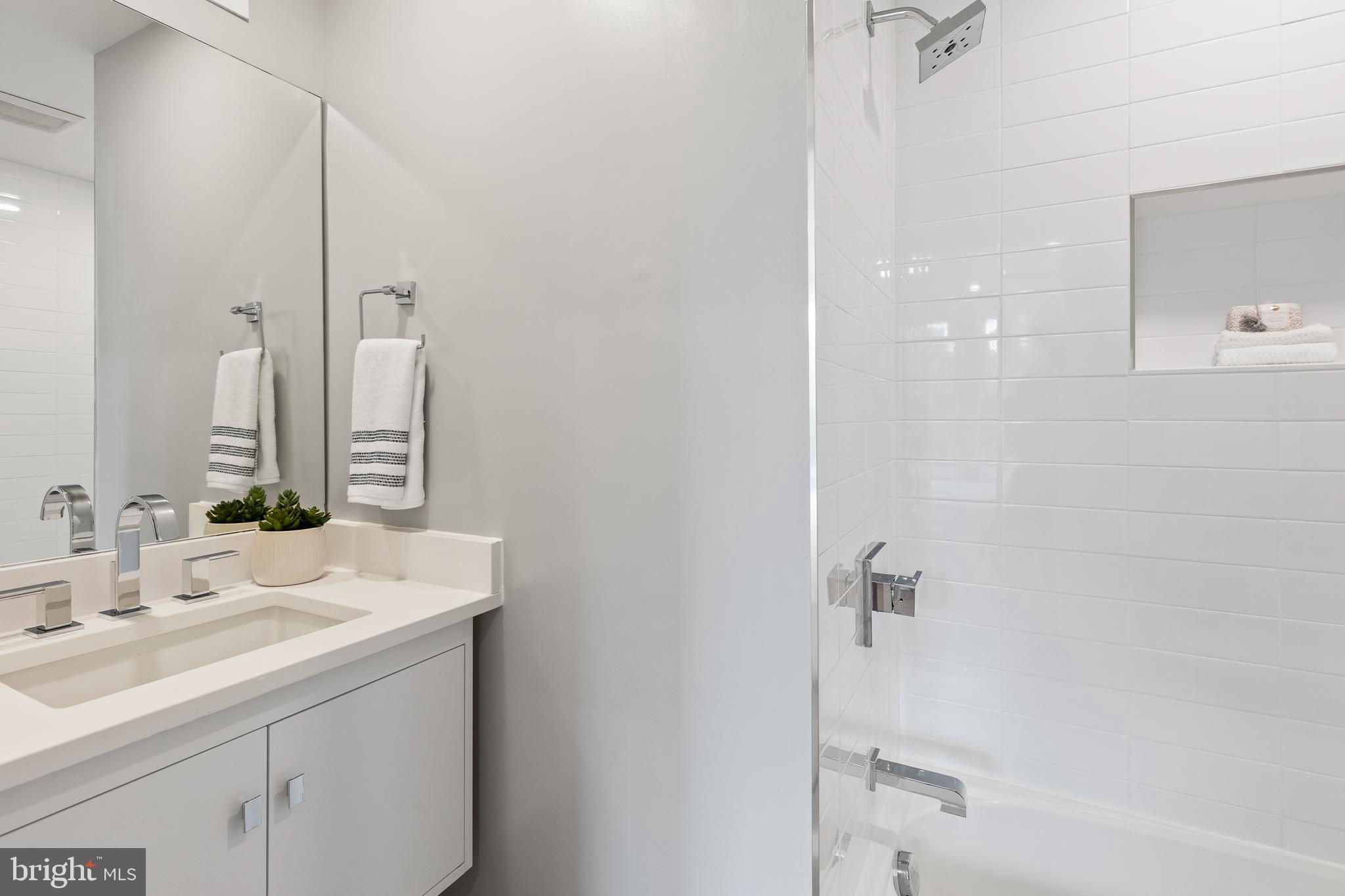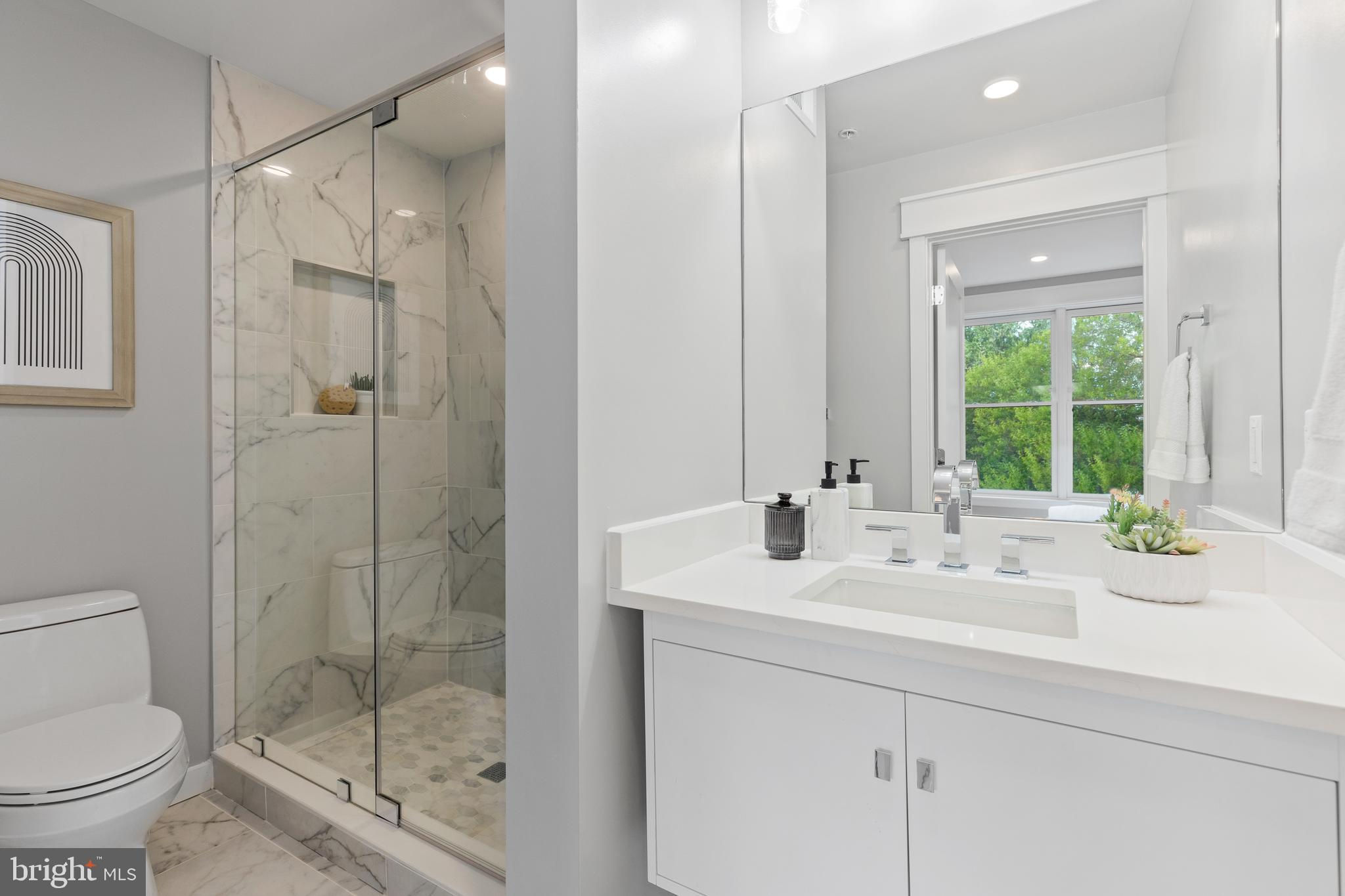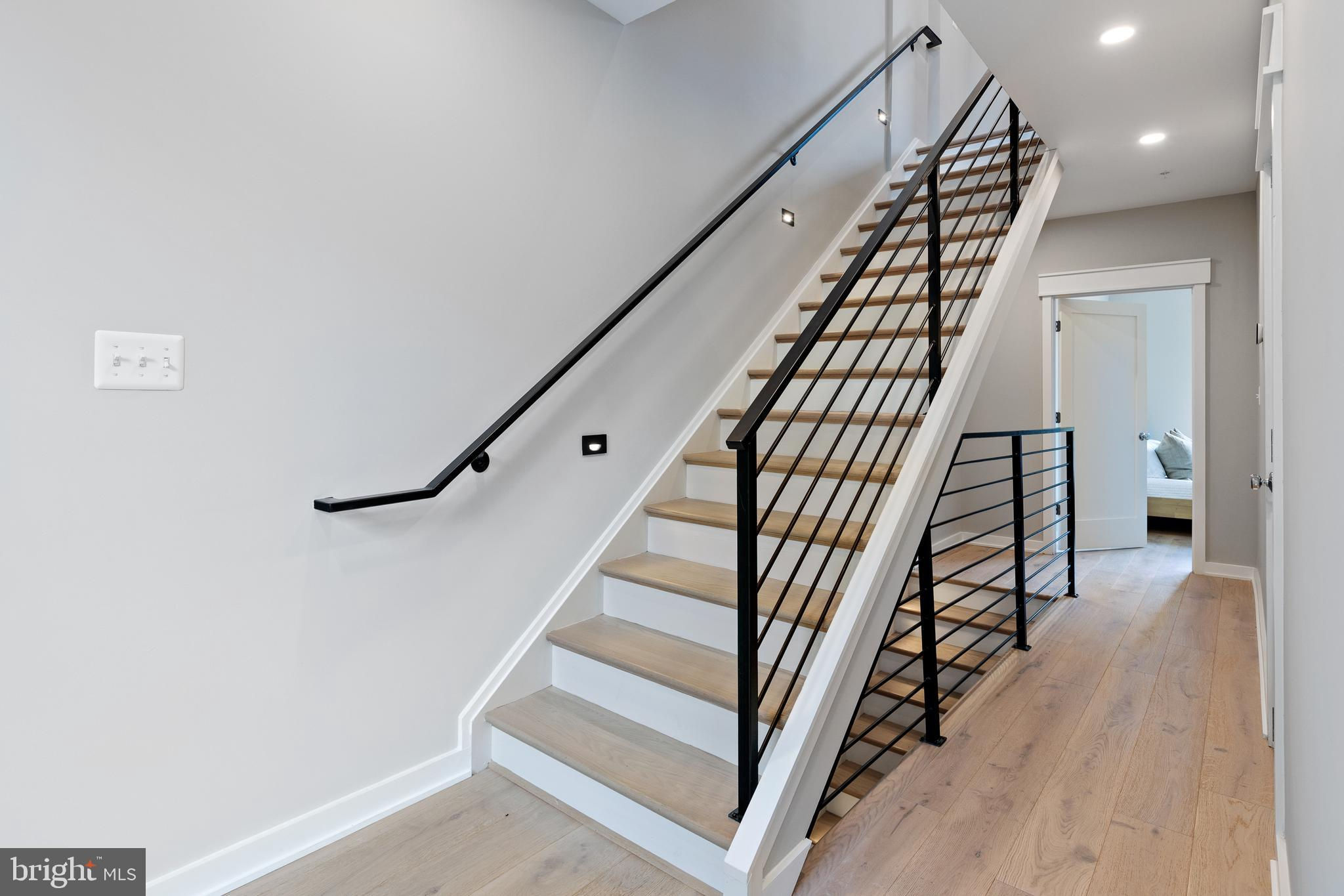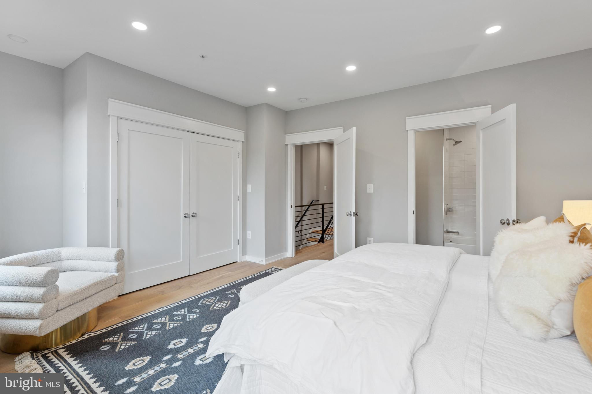 Welcome Home to Ebenezer Row, located at 406 D Street, this exquisite new construction spans an impressive 2,500 square feet across four levels, providing a perfect blend of privacy and spaciousness. The home features a modern layout with 5 bedrooms and 5.5 bathrooms, each thoughtfully designed with an en-suite bathrooms in all bedrooms, making it ideal for families or for hosting guests. This property offers dual-car parking—a notable convenience in its vibrant neighborhood. The architectural design is cutting-edge, equipped with state-of-the-art amenities and finishes, setting a new standard for luxurious urban living. Inside, the residence showcases top-tier Jenn Air appliances, including an induction cooktop that complements the culinary experience. The kitchen is a work of art, featuring bespoke J Suss cabinetry and a striking waterfall island at the heart of an open-plan layout, seamlessly integrating living and dining areas—perfect for both entertaining and relaxation. Comfort meets style in the spacious bedrooms, each fitted with elfa closet systems for maximum organization. The primary bathroom offers a tranquil retreat with a frameless shower and dual vanity, while the guest suites boast large tubs with mosaic tile finishes, providing a spa-like atmosphere. The lower level enhances living space with a large family room, a fully equipped wet bar, an additional laundry room, and a generously-sized bedroom with an en-suite bathroom. Every detail in this home is meticulously crafted, from the 9-foot ceilings that invite natural light, to the wide plank oak flooring with a matte finish, adding a touch of understated elegance. This property is not just a home, but a lifestyle choice, offering an unparalleled living experience in the heart of Washington, D.C., just moments away from Barracks Row, Eastern Market, and the Ballpark District. This is where modern amenities meet luxurious comfort, creating the ultimate urban sanctuary.