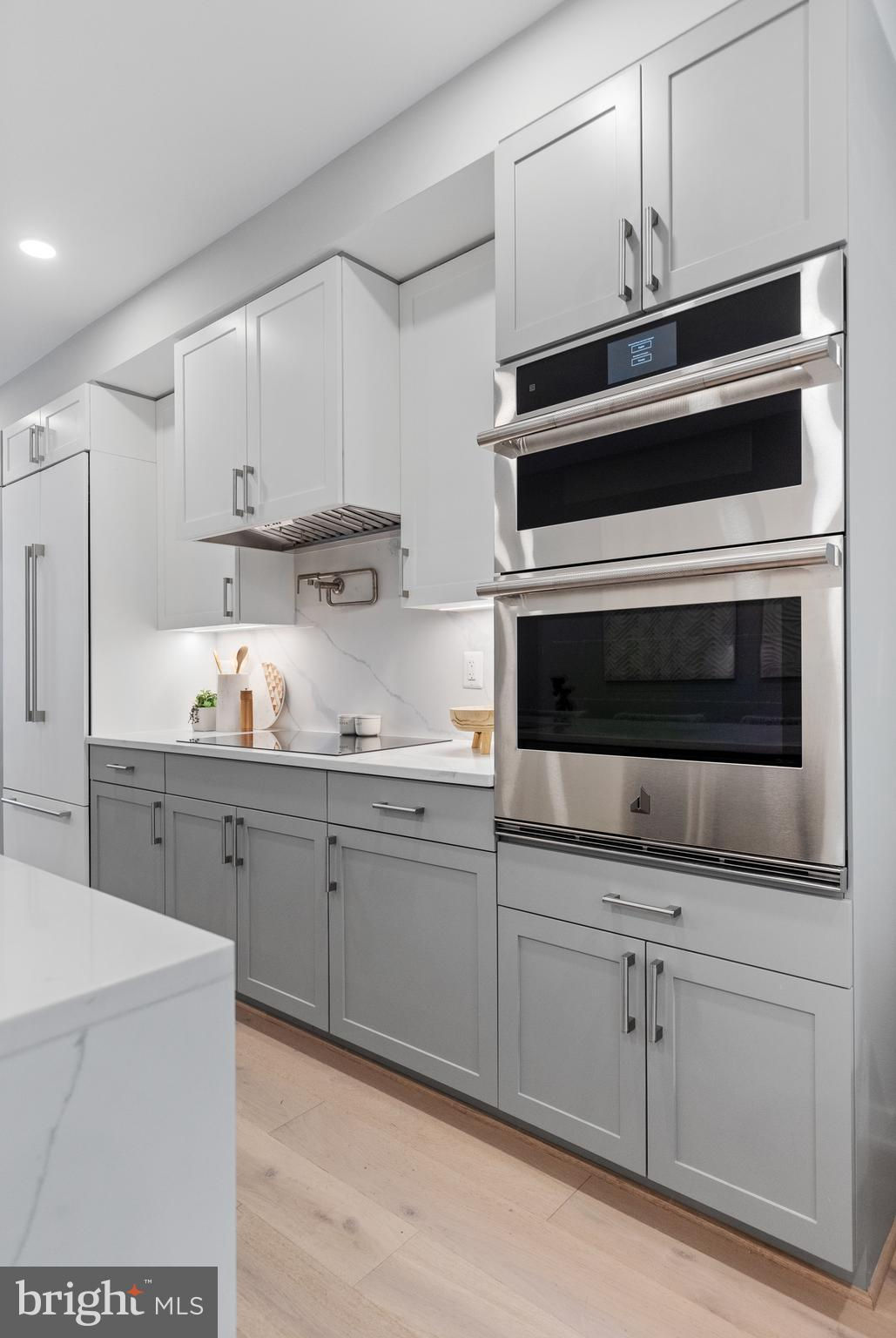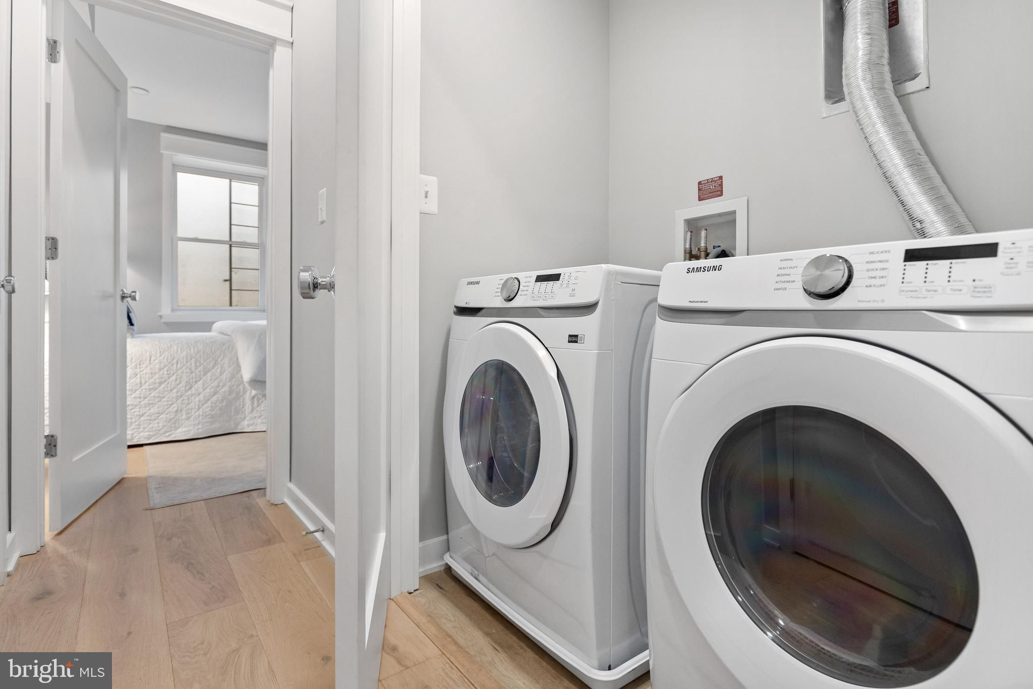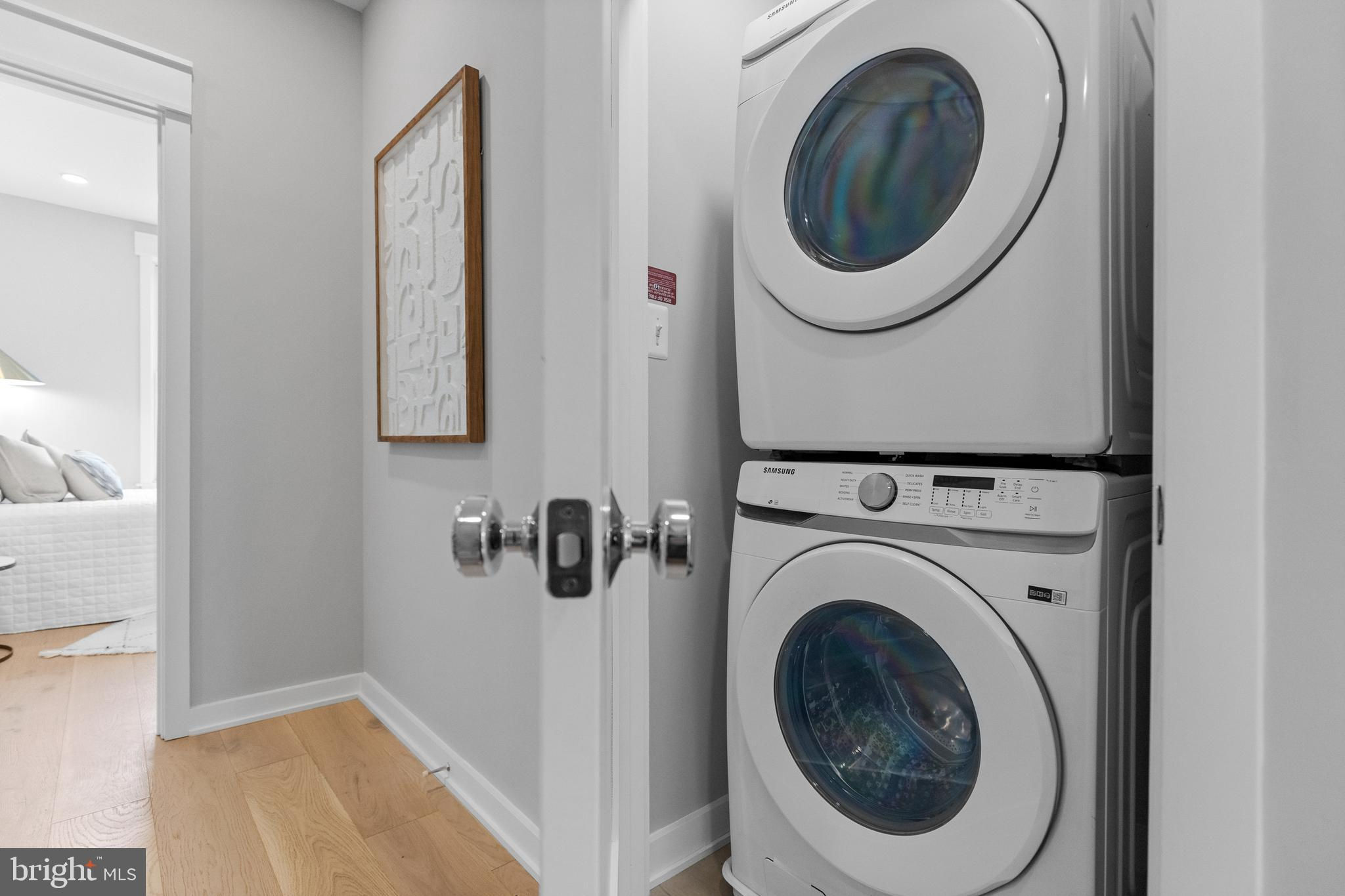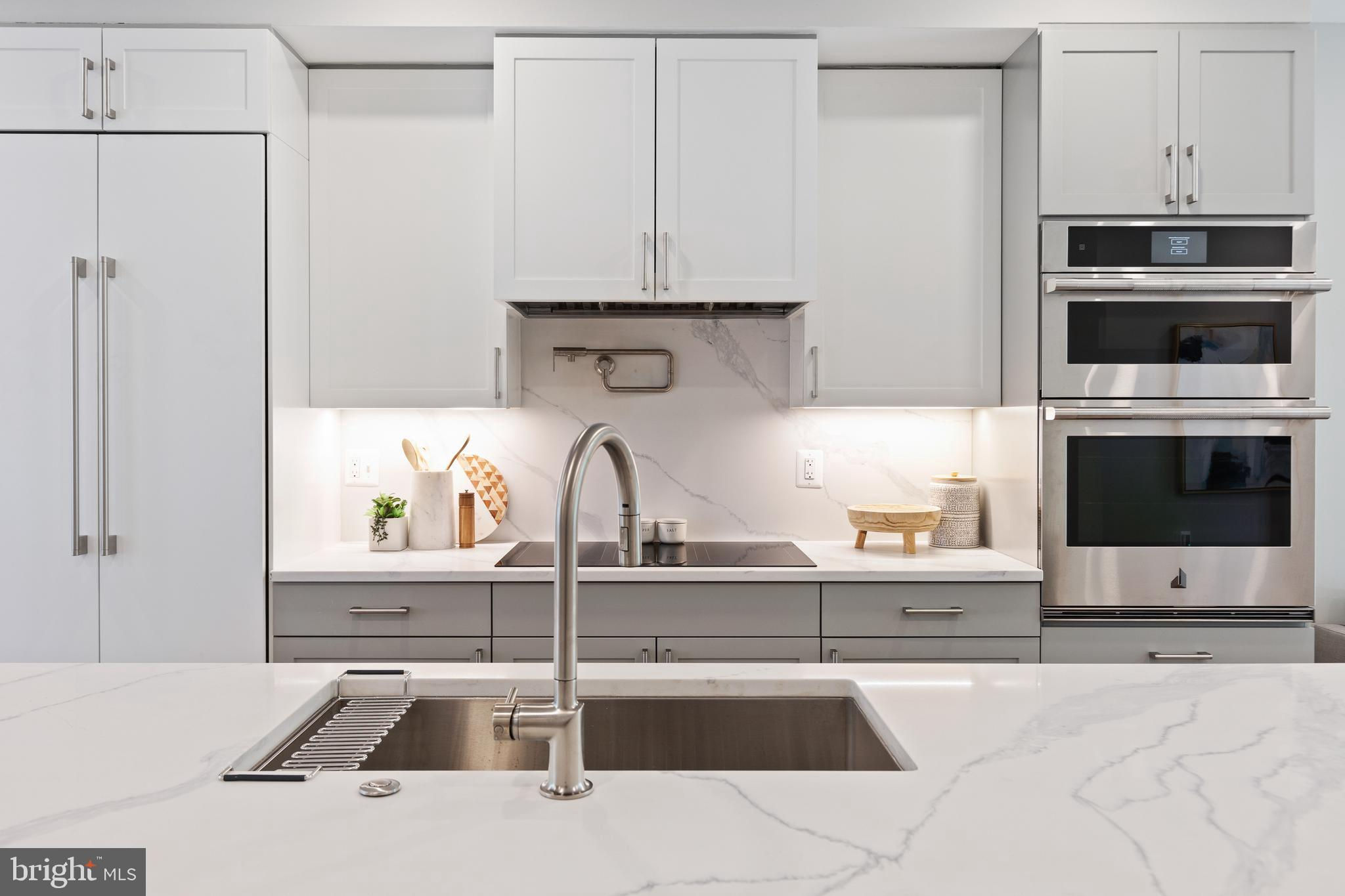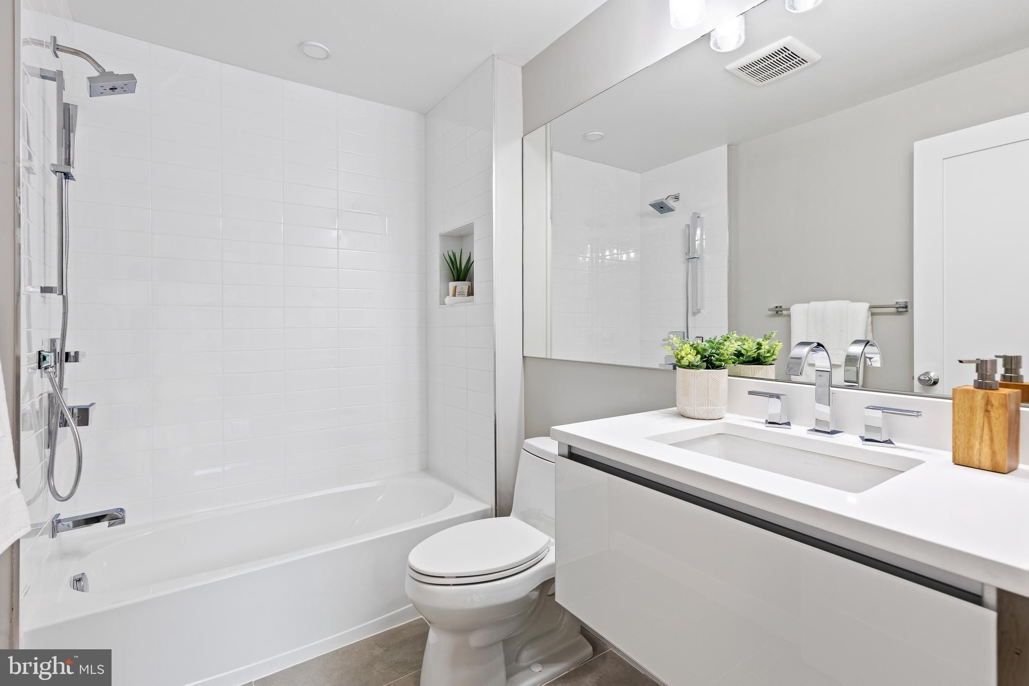 Welcome Home to Ebenezer Row, located at 406 D Street, this exquisite new construction spans an impressive 2,500 square feet across four levels, providing a perfect blend of privacy and spaciousness. The home features a modern layout with 5 bedrooms and 5.5 bathrooms, each thoughtfully designed with an en-suite bathrooms in all bedrooms, making it ideal for families or for hosting guests. This property offers dual-car parking—a notable convenience in its vibrant neighborhood. The architectural design is cutting-edge, equipped with state-of-the-art amenities and finishes, setting a new standard for luxurious urban living. Inside, the residence showcases top-tier Jenn Air appliances, including an induction cooktop that complements the culinary experience. The kitchen is a work of art, featuring bespoke J Suss cabinetry and a striking waterfall island at the heart of an open-plan layout, seamlessly integrating living and dining areas—perfect for both entertaining and relaxation. Comfort meets style in the spacious bedrooms, each fitted with elfa closet systems for maximum organization. The primary bathroom offers a tranquil retreat with a frameless shower and dual vanity, while the guest suites boast large tubs with mosaic tile finishes, providing a spa-like atmosphere. The lower level enhances living space with a large family room, a fully equipped wet bar, an additional laundry room, and a generously-sized bedroom with an en-suite bathroom. Every detail in this home is meticulously crafted, from the 9-foot ceilings that invite natural light, to the wide plank oak flooring with a matte finish, adding a touch of understated elegance. This property is not just a home, but a lifestyle choice, offering an unparalleled living experience in the heart of Washington, D.C., just moments away from Barracks Row, Eastern Market, and the Ballpark District. This is where modern amenities meet luxurious comfort, creating the ultimate urban sanctuary.