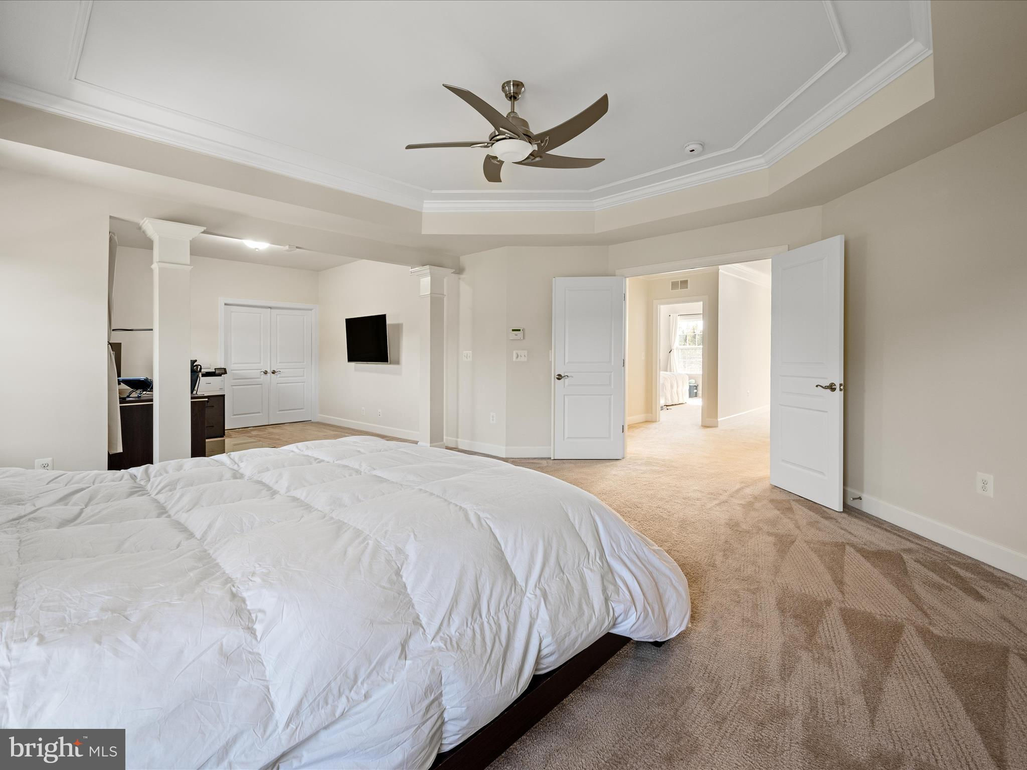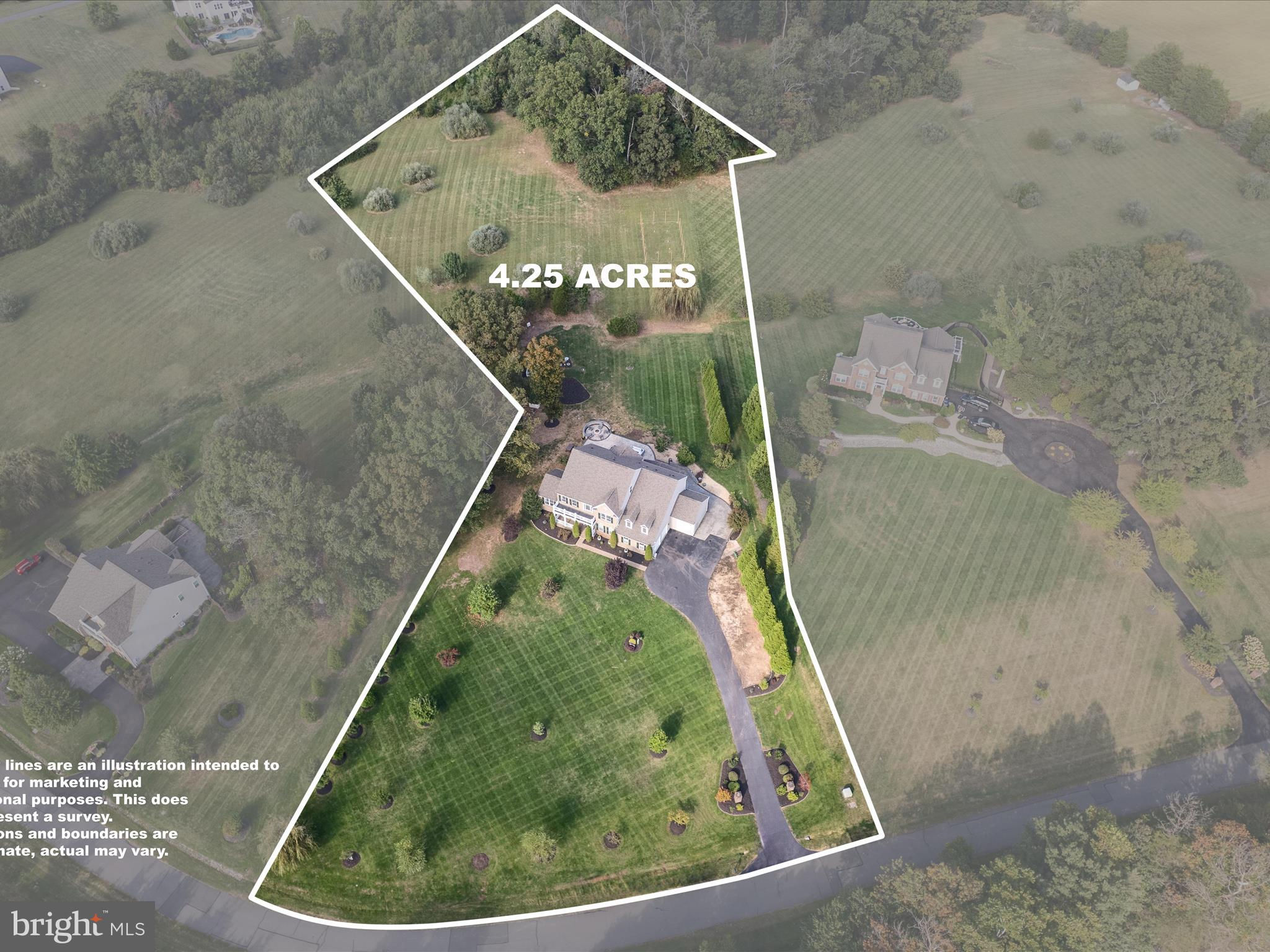 This gorgeous luxury estate home with 7200+ sq. ft on 4 levels sits in a beautifully landscaped 4.25 acre lot, in the heart of Loudoun County, minutes from Leesburg and convenient to all of Northern Virginia, DC and the DMV. With an abundance of green space, backing onto trees, set in the exclusive Huntleigh at Creighton Farms estates, this 5 bed, 6.5 bath, with additional living and sleeping space, and a bonus suite on the fourth floor, and an in-laws suite on the first floor, lets the tension of life ease away and you relax in your new home. Whether you are working from home, living with an extended family, raising children, or commuting into the capitol, this estate home has it all. Cook or cater in the chef's gourmet kitchen with granite countertops and backsplashes, a large center island and coffee bar, looking out through the sunroom. Warm yourself by the stone gas fireplace, enjoy morning coffee and evening sunsets on the patio. The formal dining room connects to a convenient butler's pantry, perfect for entertaining. The flow of the first floor is perfect for hosting guests or a quiet family evening, with a living room that opens to a bright and airy conversation nook, and large windows brig natural light and picturesque views of the surrounding greenery into the home. Additionally, the first floor includes a walk-in pantry, a mudroom and a first floor in-laws / guest suite with attached full bath, easy access for guests, yet separate from upper living area. The upper level offers four generous bedrooms and exquisite master bedroom, bathroom suite with his and hers walk in closets. This floor includes a separate laundry room with storage. The topmost floor includes a bonus room, ready for guests or an au-pair, as a bonus suite, complete with a full bath and open loft space. The basement level walks up to the back yard, includes tons of space for entertaining, media, exercise and hobbies, featuring an expansive main entertaining area, an exercise room, a hobby room, and storage . The backyard, which truly is an oasis designed for the ultimate relaxation and entertainment, includes a huge hot tub, fire pit, extensive hardscaping and custom patio. Play football, practice soccer, host an event or simply enjoy evenings by the fire pit. The oversized 3-car garage and extended driveway provide more than ample parking, The home has a recently placed three zoned HVAC, and supported by a Generac generator - never worry about outages.