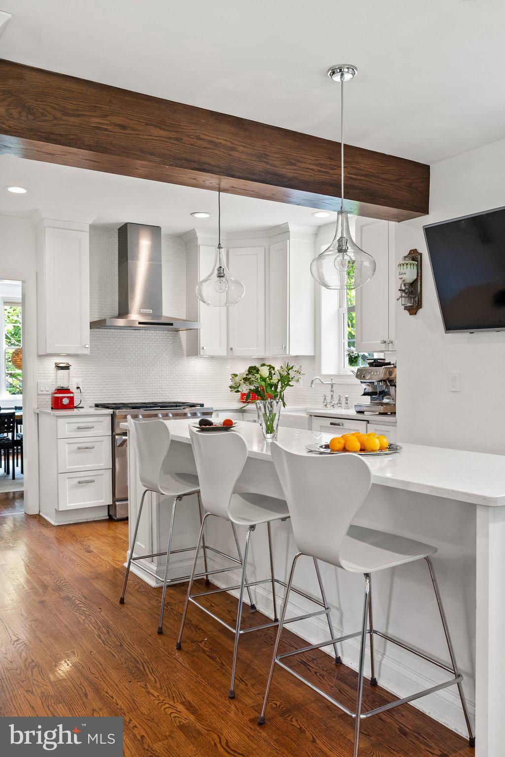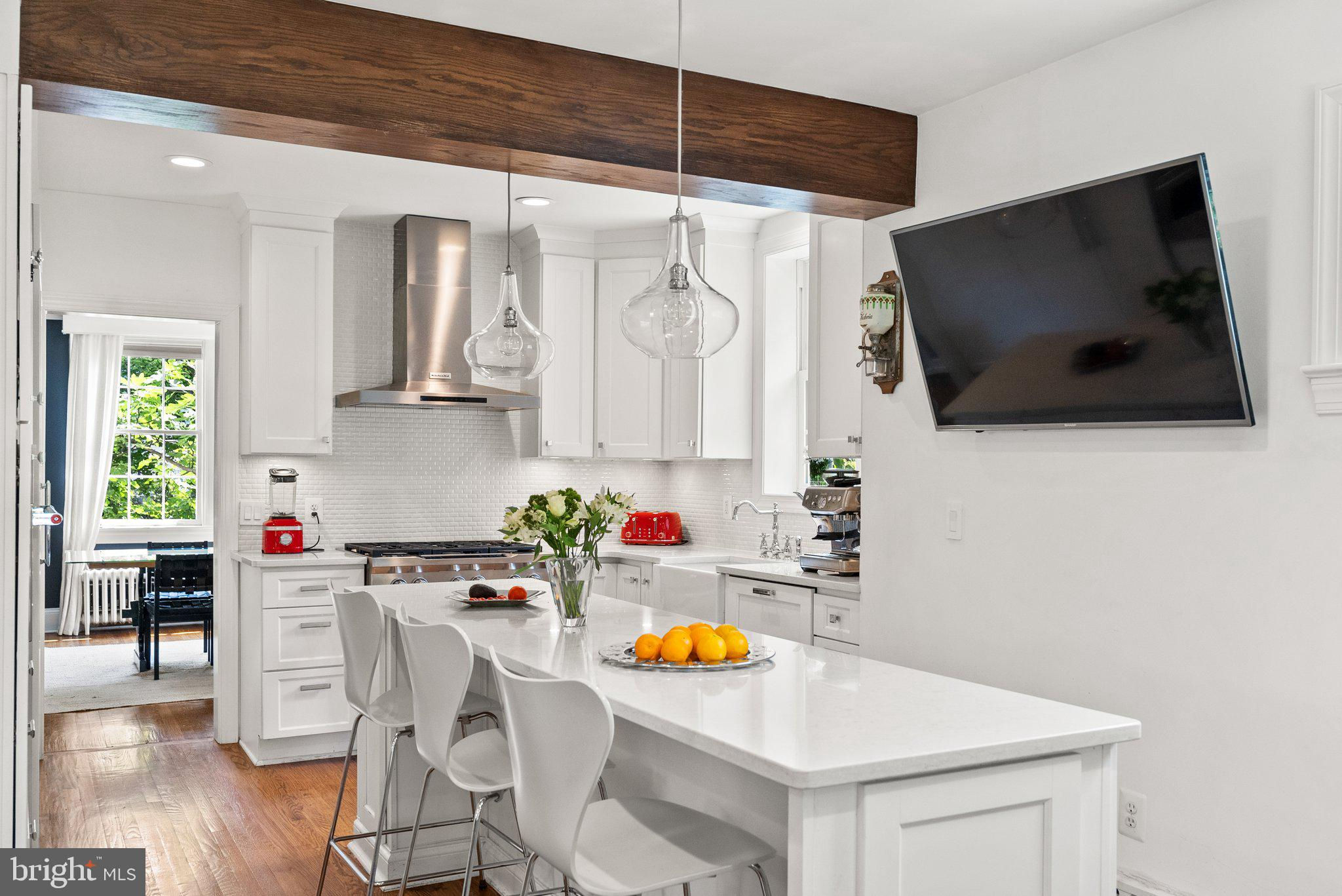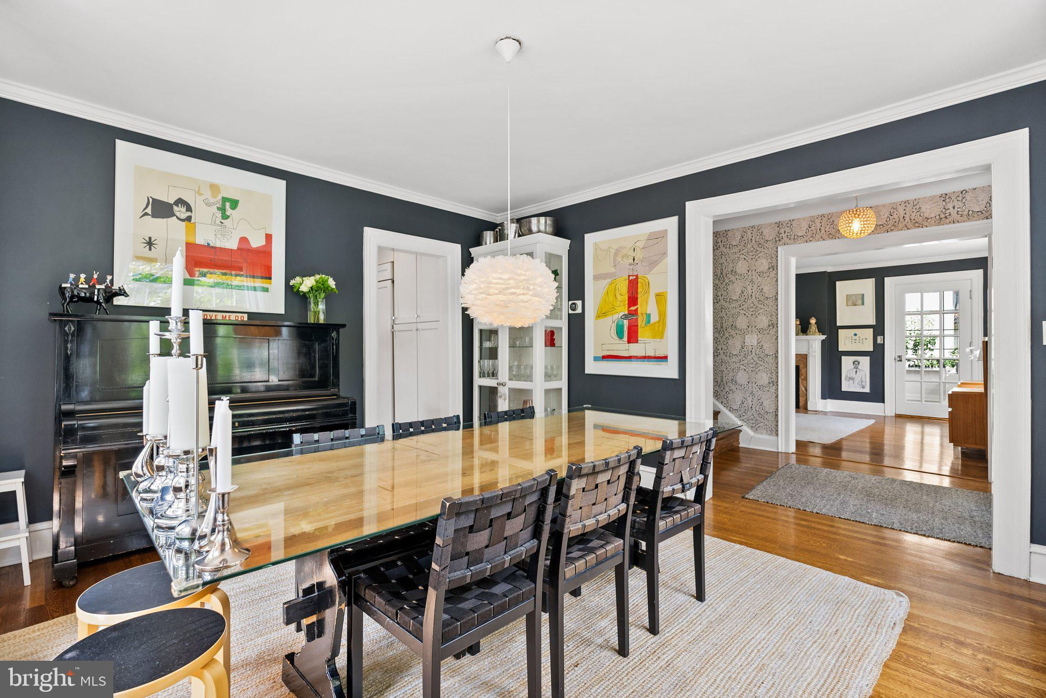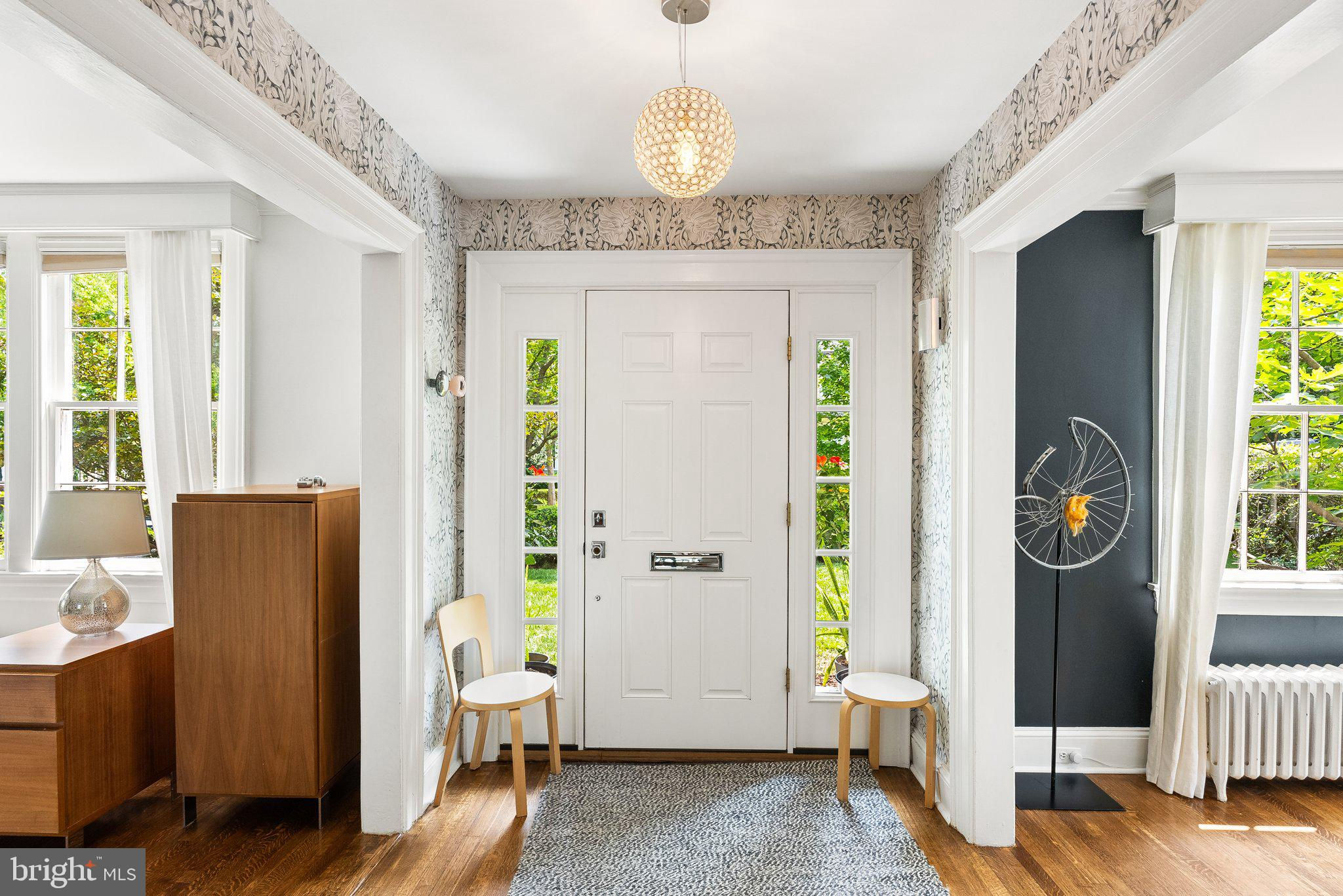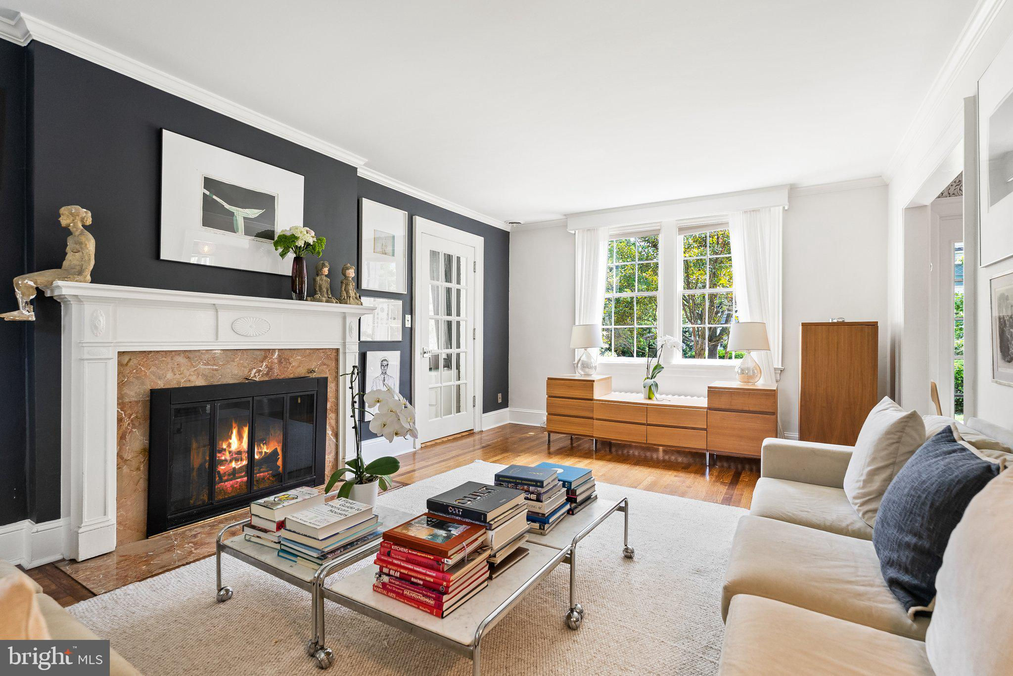 Elevated and elegant, this notable home in the Town of Chevy Chase is thoughtfully designed and beautifully renovated throughout. Brimming with curb appeal with a refined facade and landscaped gardens, this classic five-bedroom / three-and-one-half-bathroom brick Colonial offers the best of both urban and suburban living. Featuring tasteful details, such as hardwood floors, crown and decorative moldings, wood beams, wide doorways, and gorgeous windows, it allows for an abundance of natural light from all sides. Guests enter the gracious center-hall foyer, flanked by a formal living room and formal dining room. The living room is anchored by a fireplace with mantel and floor-to-ceiling bookshelves, while the bright adjacent sunroom is functional as an additional living space or home office. The heart of the home is the chef’s kitchen, highlighted by a center island breakfast bar and high-end appliances. The wood beams and statement light fixtures punctuate the space, with open flow to the family room and door to the back patio and deep backyard, which includes a fire pit -- all perfect for gatherings and entertaining. An updated powder room completes the main level. The second level boasts the gorgeous primary suite featuring a spacious balcony and a spa-like en suite full bath with dual sinks, and contemporary fixtures and finishes that add a dash of style to your morning routine. Two additional bedrooms, plus a bright, full bath with a convenient washer/dryer complete this level. The third level is composed of two additional bedrooms, another full bath, and attic storage. The expansive lower level provides ample room for any need -- use as an additional recreation space, an oversized game room, or future guest suite. There is also garage access, laundry, and ample storage. 4111 Rosemary Street benefits from parks, trails, and neighborhood amenities, offering an ideal balance of a quiet residential street and close urban proximity. This home offers it all, in a picture-perfect package. The Town of Chevy Chase is a vibrant residential enclave known for its well-maintained streets, architectural charm, and unparalleled convenience. Just north of the D.C. line, this historic community offers immediate access to downtown Bethesda, Friendship Heights, and Connecticut Avenue, with shops, cafes, and local institutions just moments away. The Town is recognized for its active municipal government and strong commitment to preserving quality of life for residents, from infrastructure upkeep to thoughtful zoning. With parks, trails, and neighborhood amenities like Olympia Cafe and La Ferme nearby, the Town of Chevy Chase offers an ideal balance of quiet residential streets and close urban proximity. Chevy Chase Elementary, Silver Creek Middle, and B-CC High School serve the area.
