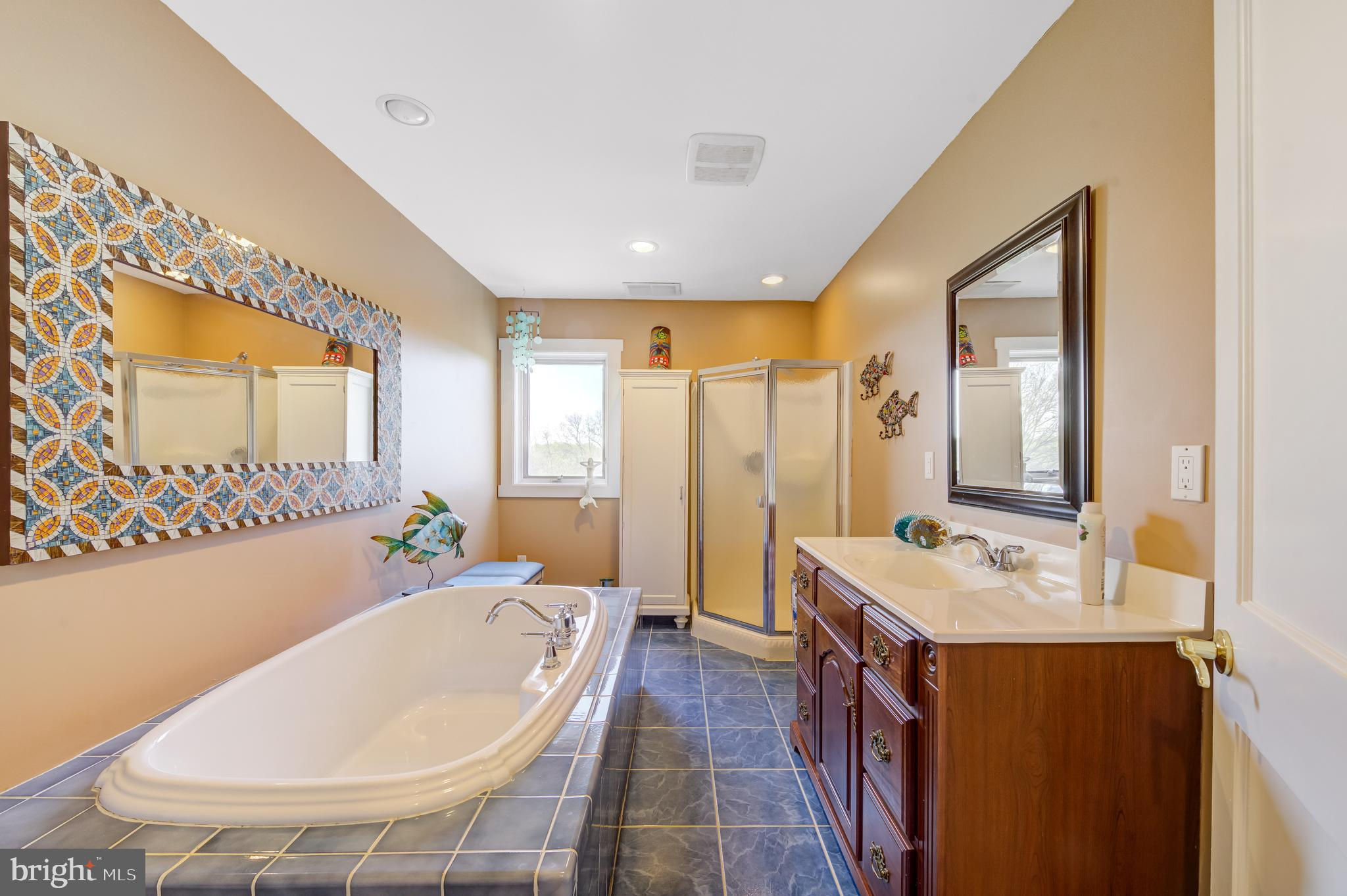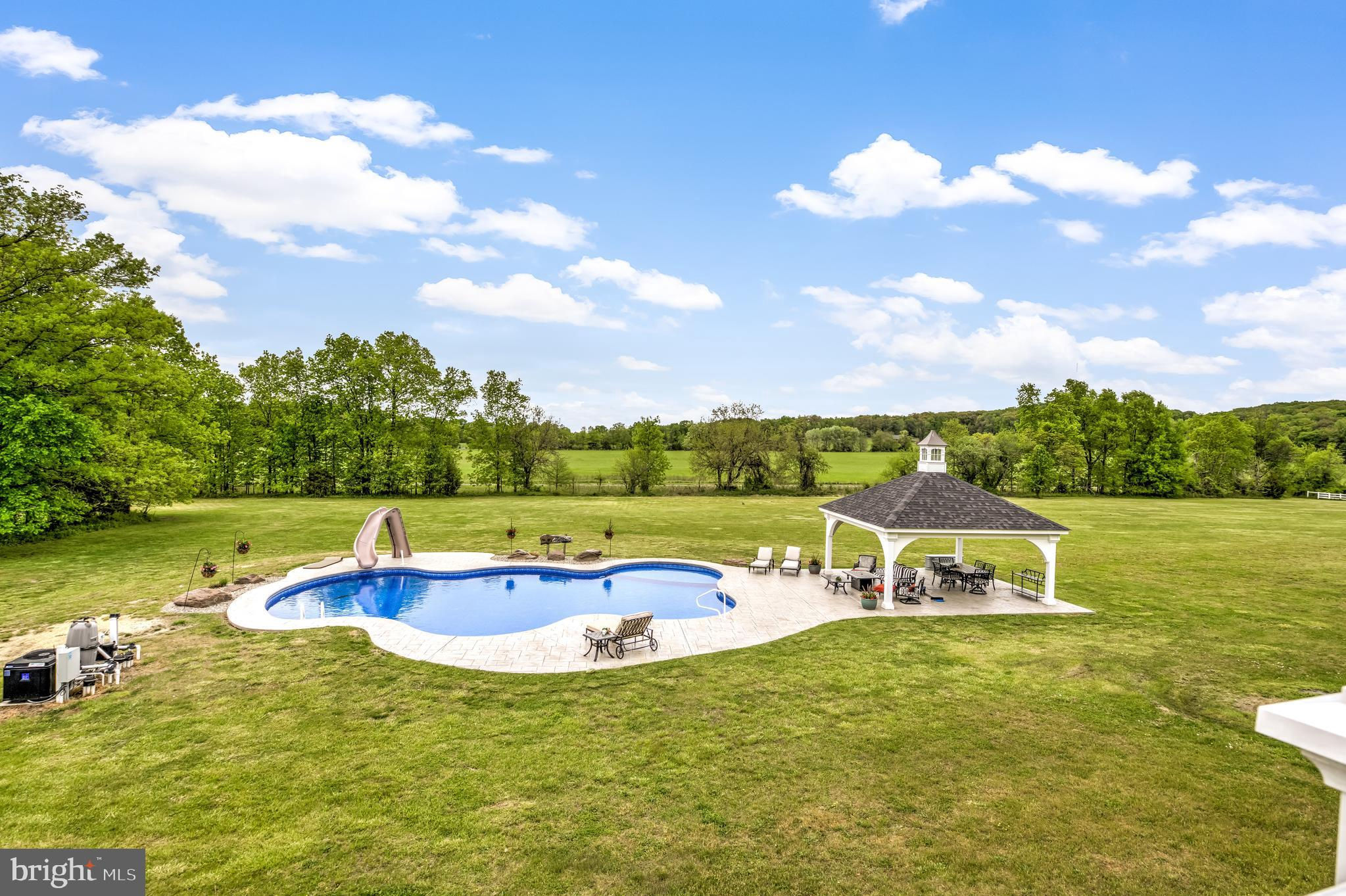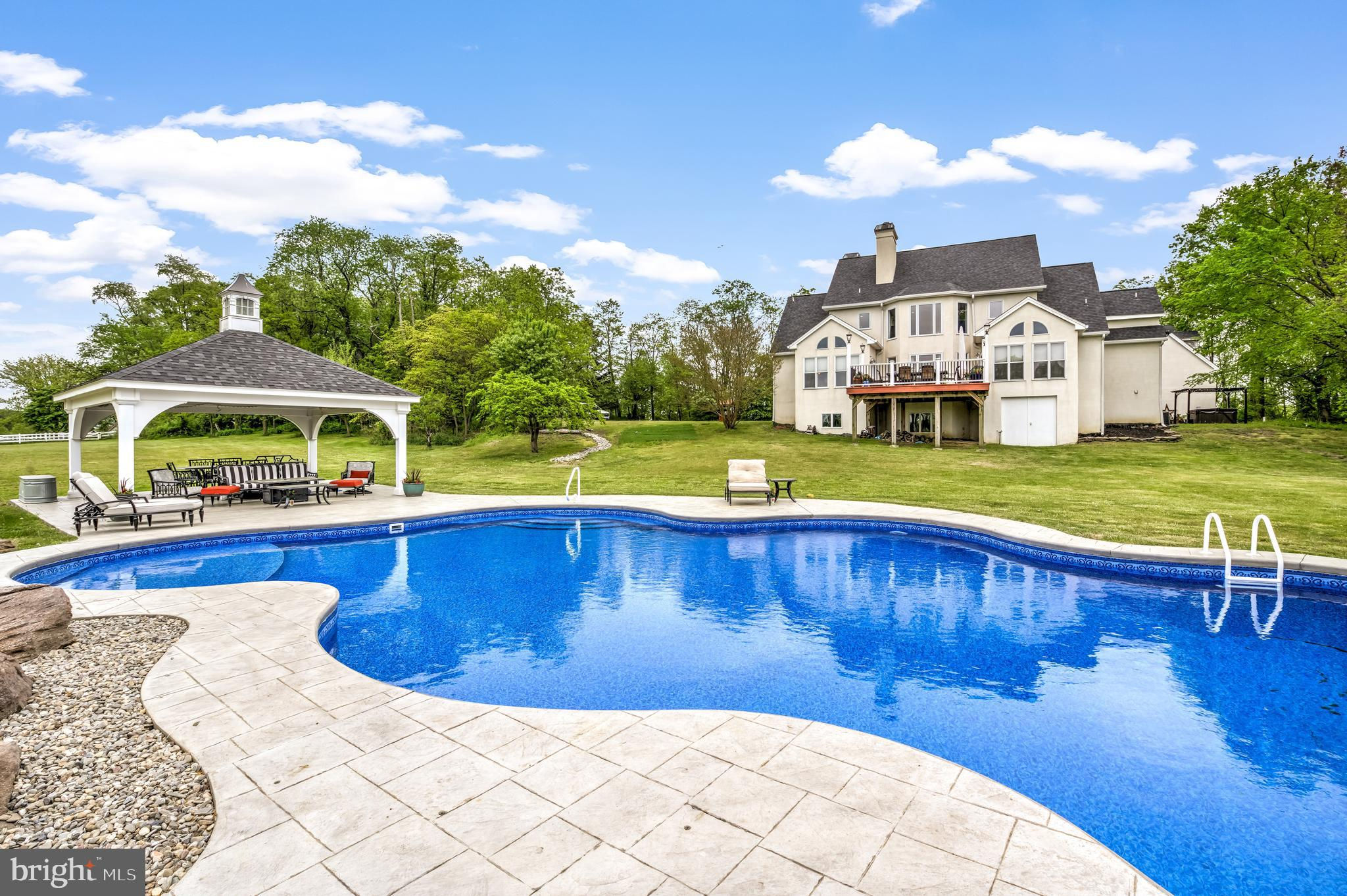 JUST REDUCED! Introducing an extraordinary property with over 38 acres of sprawling land located in Springfield Twp with unparalleled space & privacy AND complemented by stunning views of the surrounding landscape. Adjacent to the newly established Burlington County horse park with approximately 200 acres- a haven for equestrian enthusiasts and nature lovers alike. Step inside and discover the exquisite craftmanship of this custom-built home where every detail has been accounted for. This impressive residence boasts 5 bedrooms, 3 full baths, and 2 half baths, spread across spacious interiors designed for comfort and style. Entertain guests in the expansive 2 story great room, warmed by a rustic brick wood-burning fireplace with a brick oven! The gourmet kitchen is also equipped with top-of-the-line appliances, including a 6 burner Viking 60” commercial range! Walk out to the newer 20x20 deck overlooking the 50" heated pool and backyard oasis! Enjoy the convenience of radiant floor heating throughout the first level and the bathrooms on the second level, ensuring warmth during the colder months. The first level also boast a lavish primary suite complete with a spa-like full bath and a large walk-in closet. The remaining bedrooms are on the second level. Step outside to a resort-style backyard oasis featuring a 50-ft saltwater heated pool with a self-cleaning system and built-in sun deck. Relax in the hot tub with pergola and separate patio or retreat to the 20x20 pavilion by the pool, offering a perfect spot for outdoor entertaining. This property boasts a full walk-out basement with high ceilings, ideal for additional living space or recreational activities, and a detached oversized 2-car garage with additional storage for added convenience and an unfinished attic with high ceilings ready to be finished for additional living space! Recent upgrades include, new roof installed in 2023, newer AC units installed in 2019, providing efficient climate control year-round, as well as a comprehensive 2 Mega-Watt Solar System with battery backup, ensuring sustainability and energy independence. Experience the epitome of luxury living in this exceptional estate, where impeccable design, unparalleled amenities, and breathtaking surroundings converge to create a truly unparalleled retreat. This is a MUST SEE!