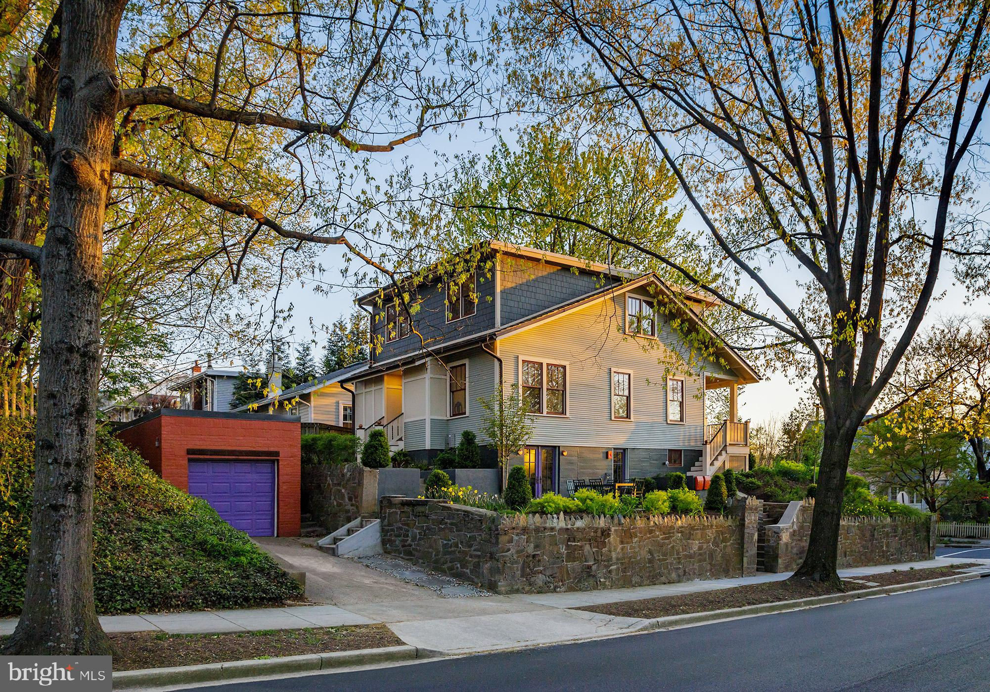 For Sale and For Rent. Here are interior square footage measurements provided by the Architect-Owner. Note that the total is higher than than that contained in the Bright MLS Tax Report. Buyers may verify. Gross Floor areas: Ground Floor 810 sf (terrace level) First Floor 951 sf [main level, not including the porch] 2nd Floor 854 sf TOTAL 2,615 gsf Sited on the crest of a hill on the high elevation of Tenleytown, this stunningly renovated Arts and Crafts masterpiece boasts magnificent views of trees, sunsets, the Tyson's Corner skyline, and a snippet of mountains! Every detail of the transformation was meticulously planned and overseen by the owner/architect. The property backs to one of the original farm houses of the area, and the corner lot allows for unimpeded sunlight. Gorgeous curated plantings, attractive lighting, and an automatic irrigation system make this no-maintenance yard a delight both day and night! The shady porch with swing adds to the enjoyment of this lofty vantage point. Terrace Level: Two sets of French doors from patio 1 of 2 invite you into the this "daylight walkout," completely separate unit--a suite consisting of two bedrooms (#5 and #6 of 6 total), spacious bath with shower and storage (#4 of 4 total), kitchen 1 of 2, living room and dining area open to kitchen, and washer dryer 1 or 2. First Level of main area of house: Living room, formal dining room, fabulous kitchen open to breakfast/tv room, kitchen exterior door to rear patio (2 of 2), bedroom (#1 of 6), and full bath (#1 of 4). Upper Level of main area of house: Primary bedroom (#2 of 6 total) with huge closets and en-suite primary bath (#2 of 4); two additional bedrooms (#3 and #4 of 6), and second bath upstairs (#3 of 4 total). Washer and dryer (2 of 2). Thorough soundproofing. Highly energy-efficient property, including windows and appliances! Janney Elementary 3 blocks, Tenley Library and Tenley Metro 4 blocks! Deal Middle School. Jackson Reed High School (with indoor Olympic-sized pool). Outdoor pool at Hearst Recreation Center. Restaurants and shops along Wisconsin Avenue and more in Spring Valley shopping center, just several blocks in either direction. Whole Foods, Target, Wegmans, Giant. Friendship Recreation Center/Turtle Park, with basketball and tennis courts, playing fields, tot lot, and community center is also just a few blocks away. Convenient living doesn't get any better than this. Welcome to the best of A.U. Park!