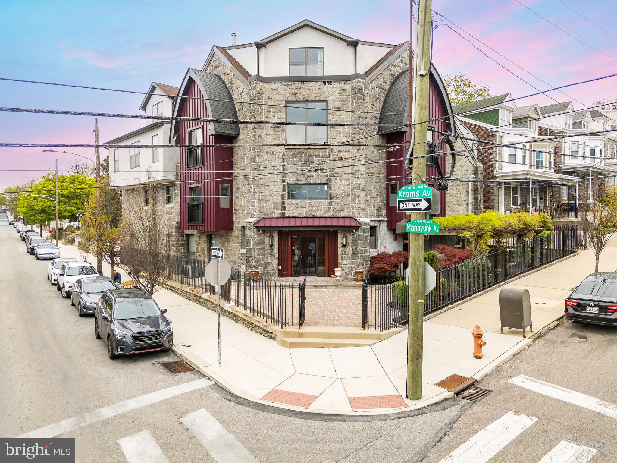 Cahill Arms Roxborough — this entirely unique multifamily investment property is loaded with original charm and modern conveniences. With seven (7) 1-2-3 bedroom apartments and a 1:1 parking ratio (7-car driveway), this is a rare investment opportunity, now available in one of Philly's fastest growing submarkets. An ideal unit matrix is composed of: three (3) 3bd units, two (2) 2bd units, two (2) 1bd units — ensuring supreme rentability in every market cycle. The NWPHL (Northwest Philly) location is prime — easy access to Schuylkill River Trail, shops, cafes, restaurants and bars along Ridge Avenue corridor, as well as the Main Street Manayunk district. This location is highly favored in the Greater Philadelphia rental marketplace as tenants seek out spacious and affordable rental accommodations in "semi-suburban" edge city locales — close enough to the urban core, yet tranquil enough for a laid-back/outdoorsy lifestyle. Easily accessible to all of Philadelphia's main arteries and districts, including I-76, I-476, City Avenue, Ridge Avenue, Main Street + Center City, University City, The Main Line, and the suburbs. The parcel commands attention with its prominent corner placement. The gated building is luxuriously laid out with spaciously oversized units, 10' ceilings, beautiful corridors, custom millwork, bi-level and tri-level units, french balconies, exposed Wissahickon schist (stone) and other high-end building material selections. The condo association is active. In-place rents are substantially below market, allowing new ownership to reset rents considerably with minimal capex to be performed — in addition to filling the remaining vacancies. A healthy stabilized rent roll should yield approx. $14,725/mo. Expenses are roughly ±$70k. NOI = ±$127,520.