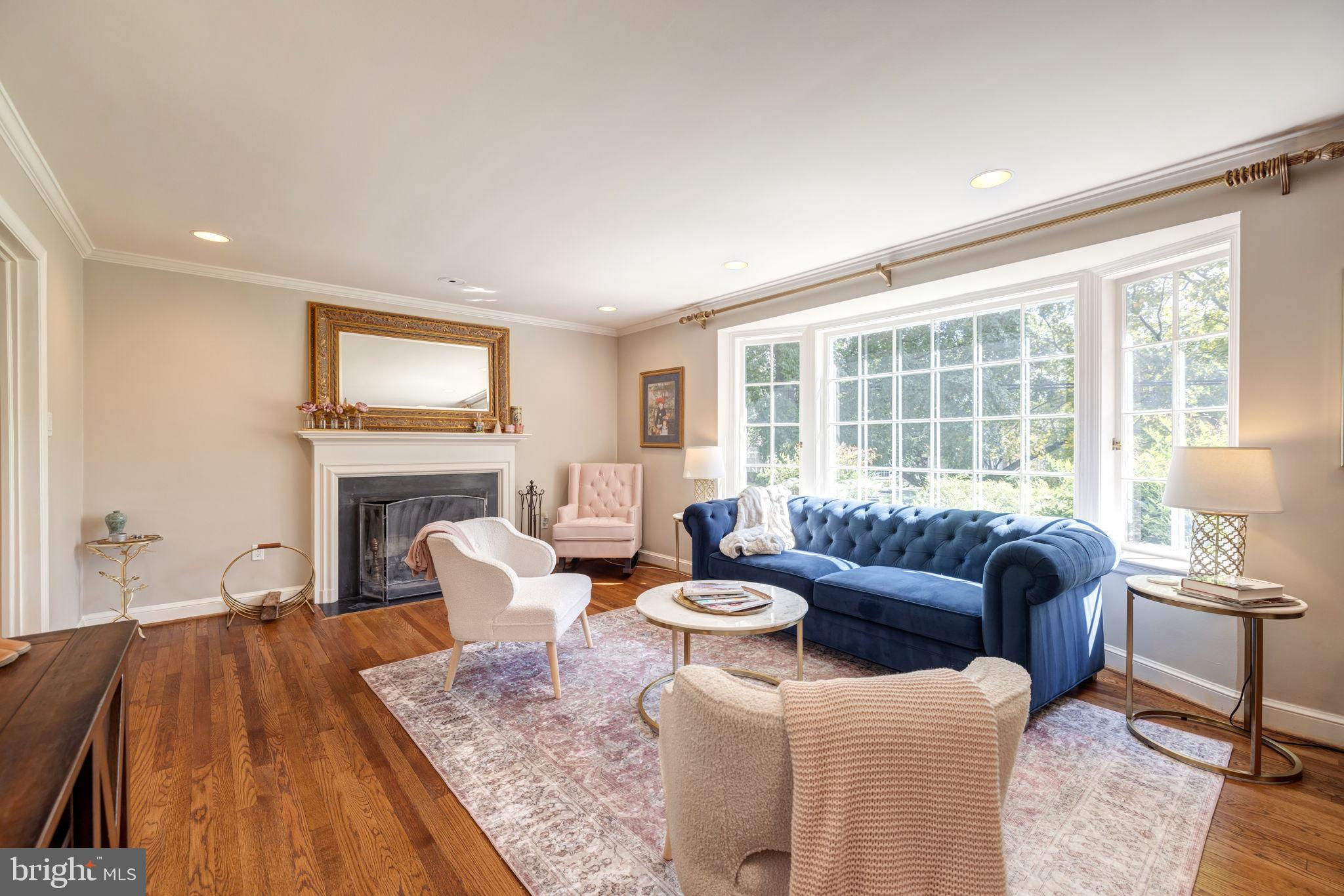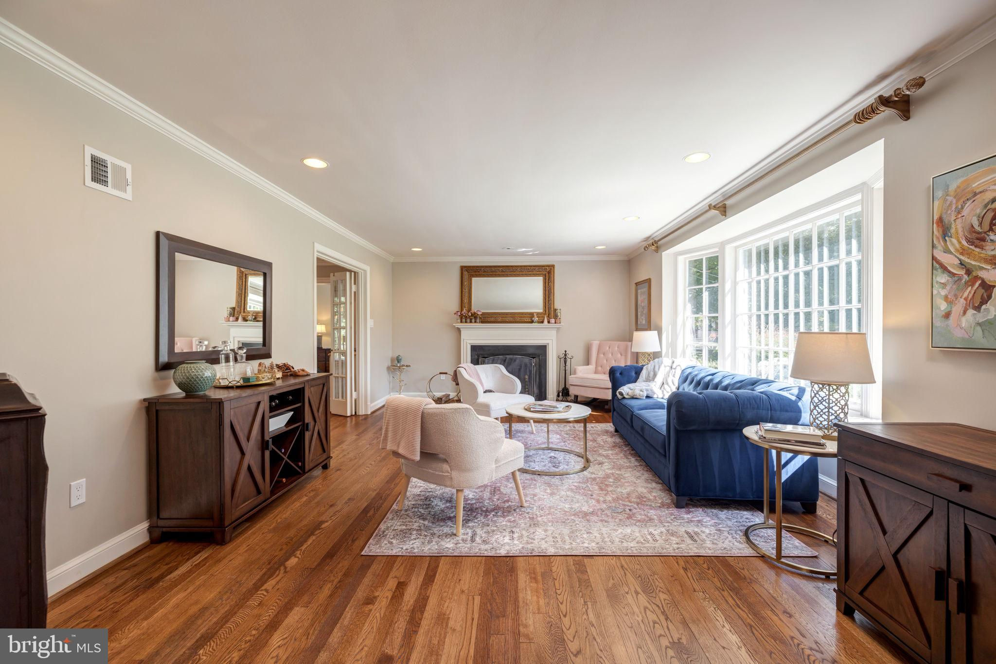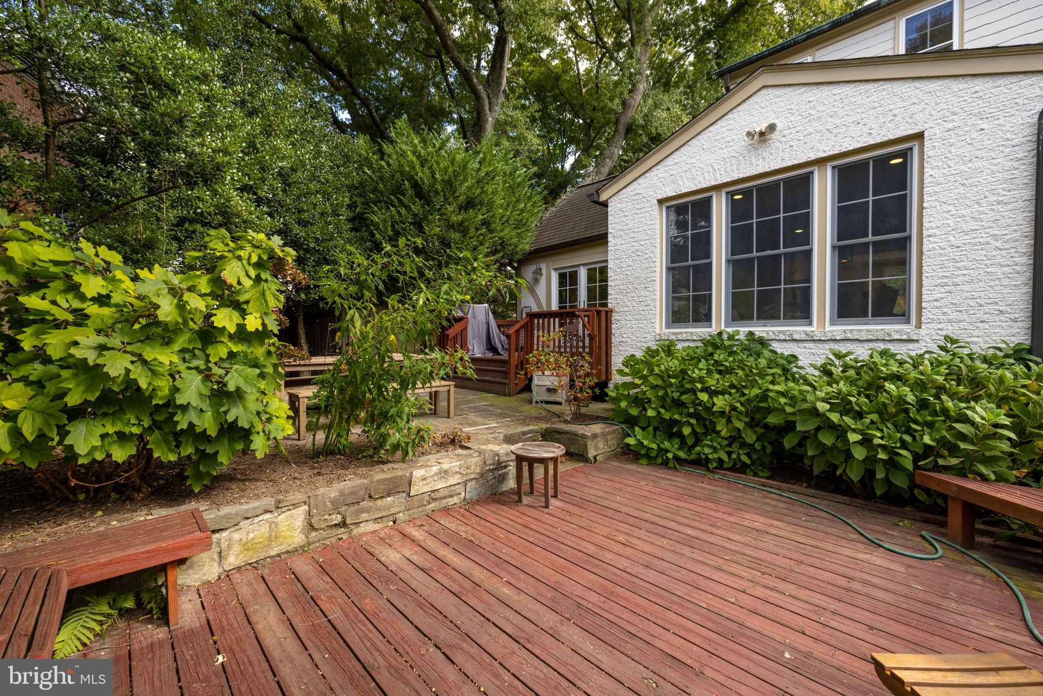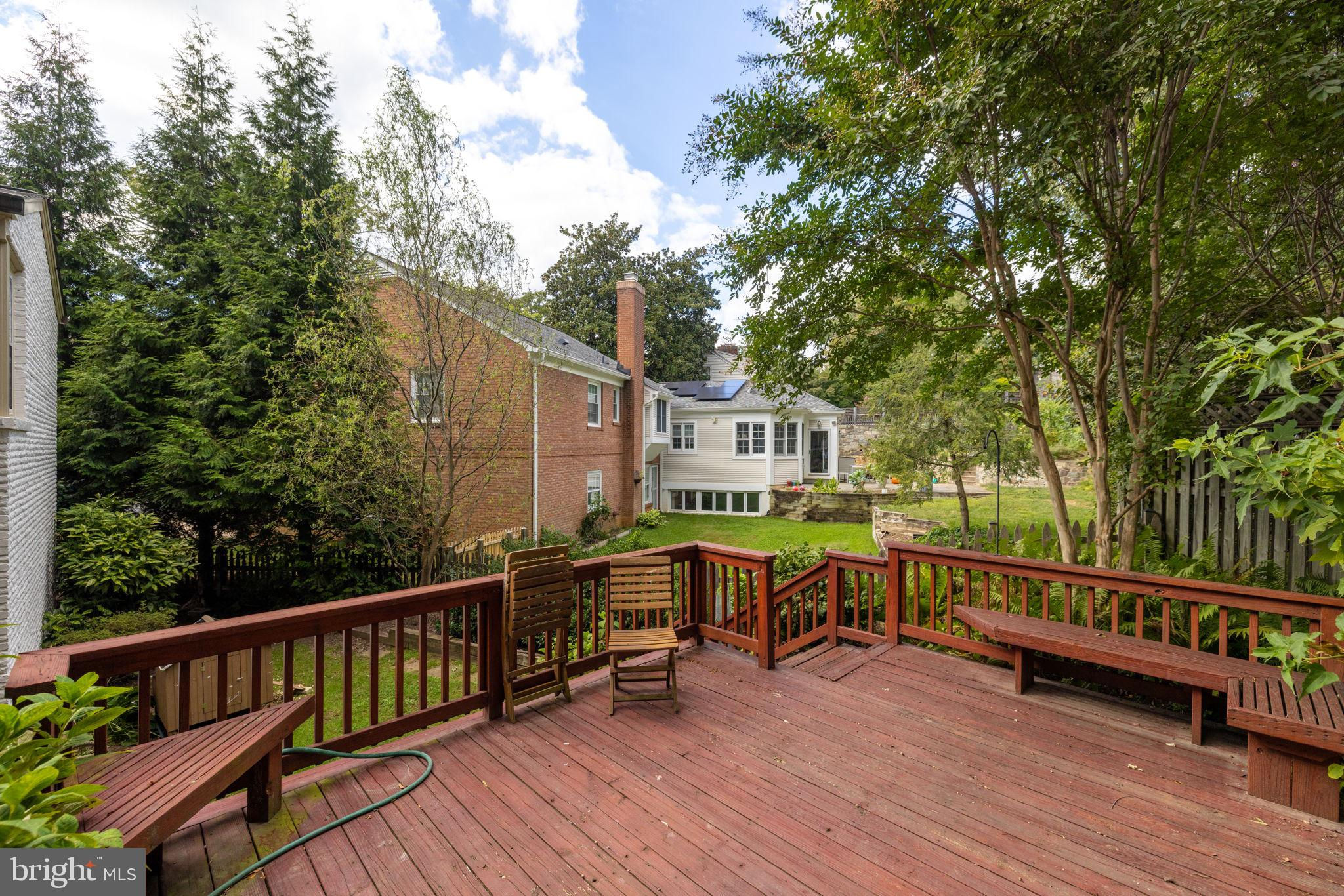 Nestled on a quiet, tree lined corner in wonderful Sumner, this updated, spacious and thoughtfully designed home offers over 4,500 square feet of light-filled space across three levels. Every room feels inviting with timeless finishes, beautiful millwork, and generous proportions that adapt easily to every stage in life. Main-Level Features: Hardwood floors throughout; gracious reception foyer; 21’ deep formal Living Room anchored by a gorgeous wood burning fireplace with brick surround and a large bay window; holiday dinner sized Dining Room with huge windows, built-in cabinets and French Doors to Deck; Great Room, bathed in light, with dramatic vaulted ceiling and French Doors to Deck; large, eat-in Kitchen with maple cabinetry, granite countertops, stainless steel appliances, loads of prep and storage space, a charming built-in Banquette for casual dining, built-in shelving and Bow windows let in a loads of natural light; renovated and tucked away Primary Suite with walk-in closet plus shelving, beautifully designed, marble Primary Bath with separate slipper tub, shower with full glass enclosure, dual vanity; large, 18’ wide Office/Library with French doors, beautiful built-ins and an en-suite Powder Room; tucked away coat closet Upper-Level Features: Four comfortable bedrooms with hardwood floors throughout; large Bedroom #2 with charming alcoves, recessed lighting, 2 skylights and wonderful closet space; Bedroom #2 with large window; whimsically updated Full Bath #2 with tub; Bedroom #3 with recessed lighting, walk-in access to huge Attic storage and Jack and Jill Full Bath #3 with tub shared with Bedroom #4; 4 large closets along the hallway Daylight Lower-Level Features: The fully renovated, daylight lower level was designed with flexibility in mind and is perfect for an in-law or au pair suite with its own exterior entrance, Bedroom #6 and renovated Full Bath #4. The lower level offers an expansive family room with a wood-burning fireplace and walks out to the backyard. A new Kitchenette with a stone topped wet-bar and full-sized refrigerator is ideal for entertaining or is a perfect part of the guest suite. Other Features: Assumable low interest rate VA loan for VA eligible Buyers; 2-zones (Dining Room and Great Room are one zone); .9 miles to Wood Acres ES; quick commute to DC, 495 and VA; easy access to Capital Crescent Trail; 1.5 miles to The Shops at Sumner Place (grocery, Starbucks, CVS, fine and casual dining)