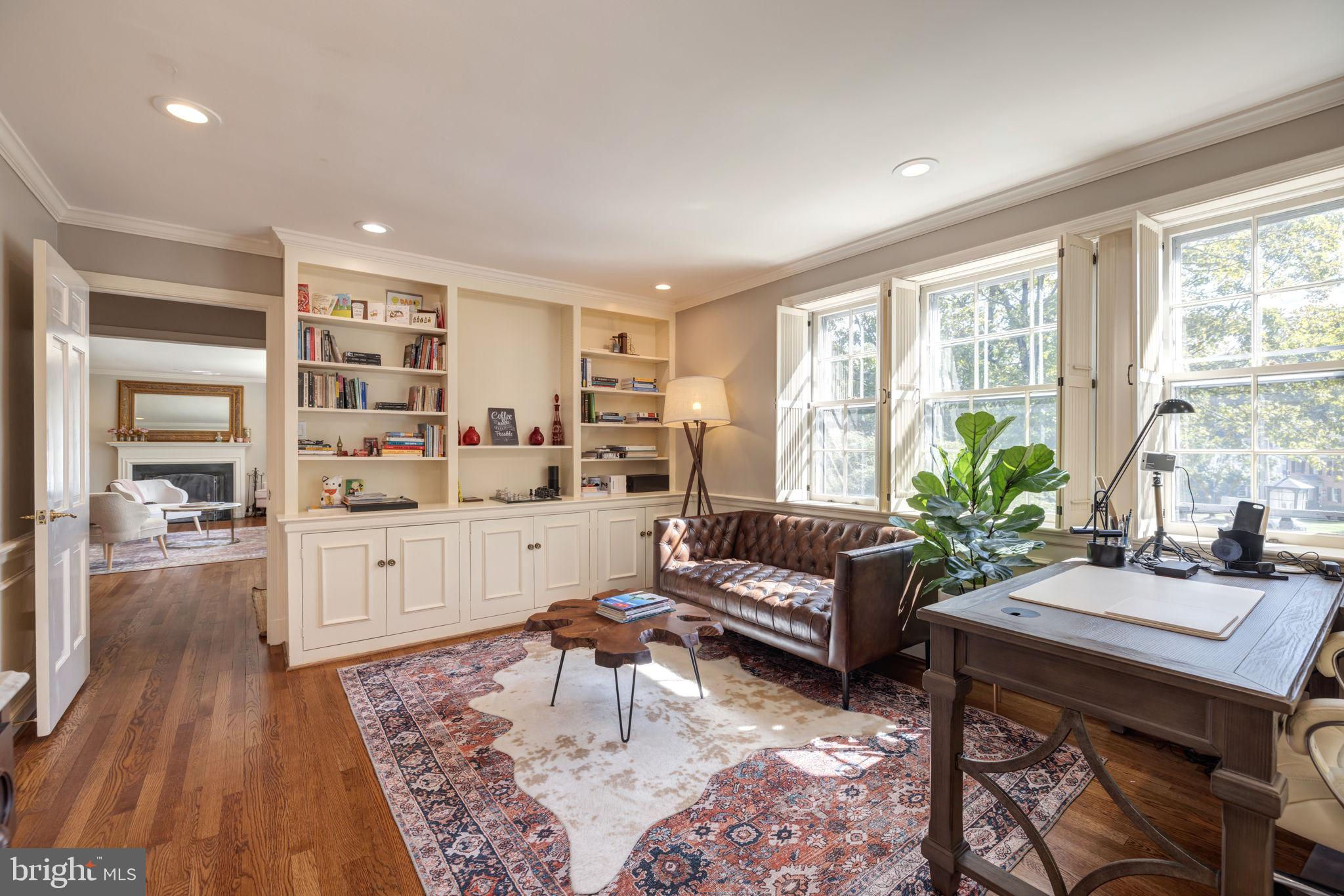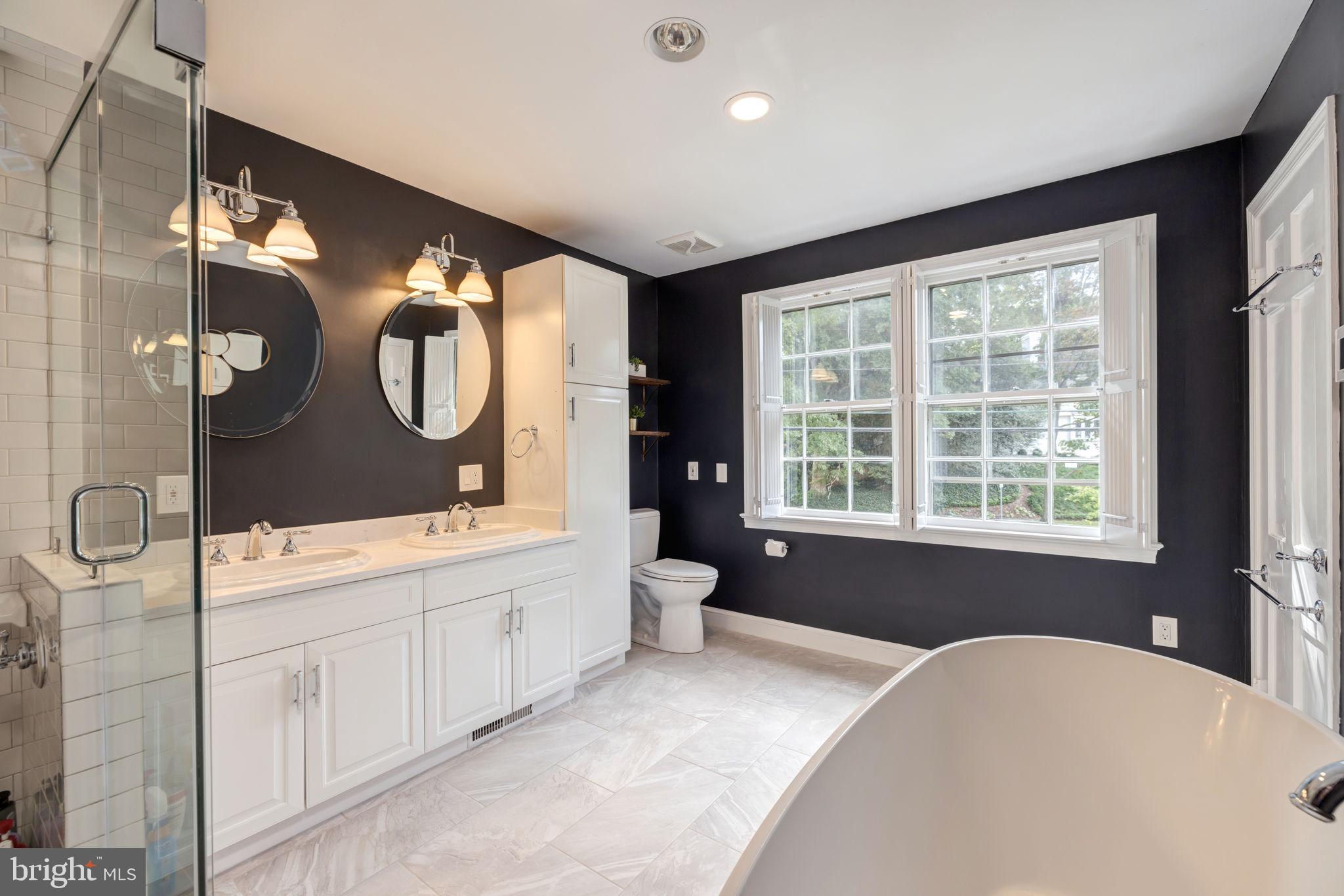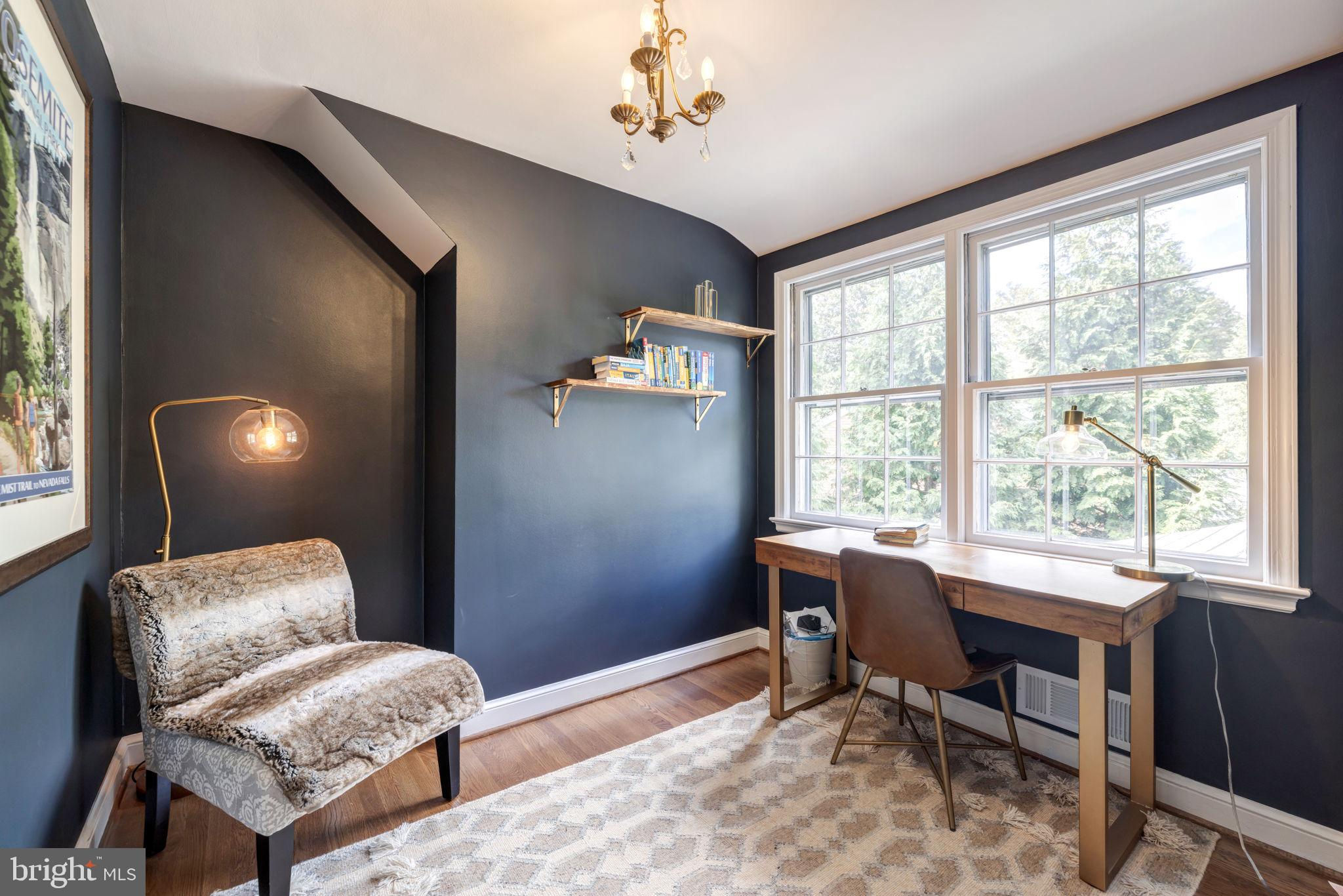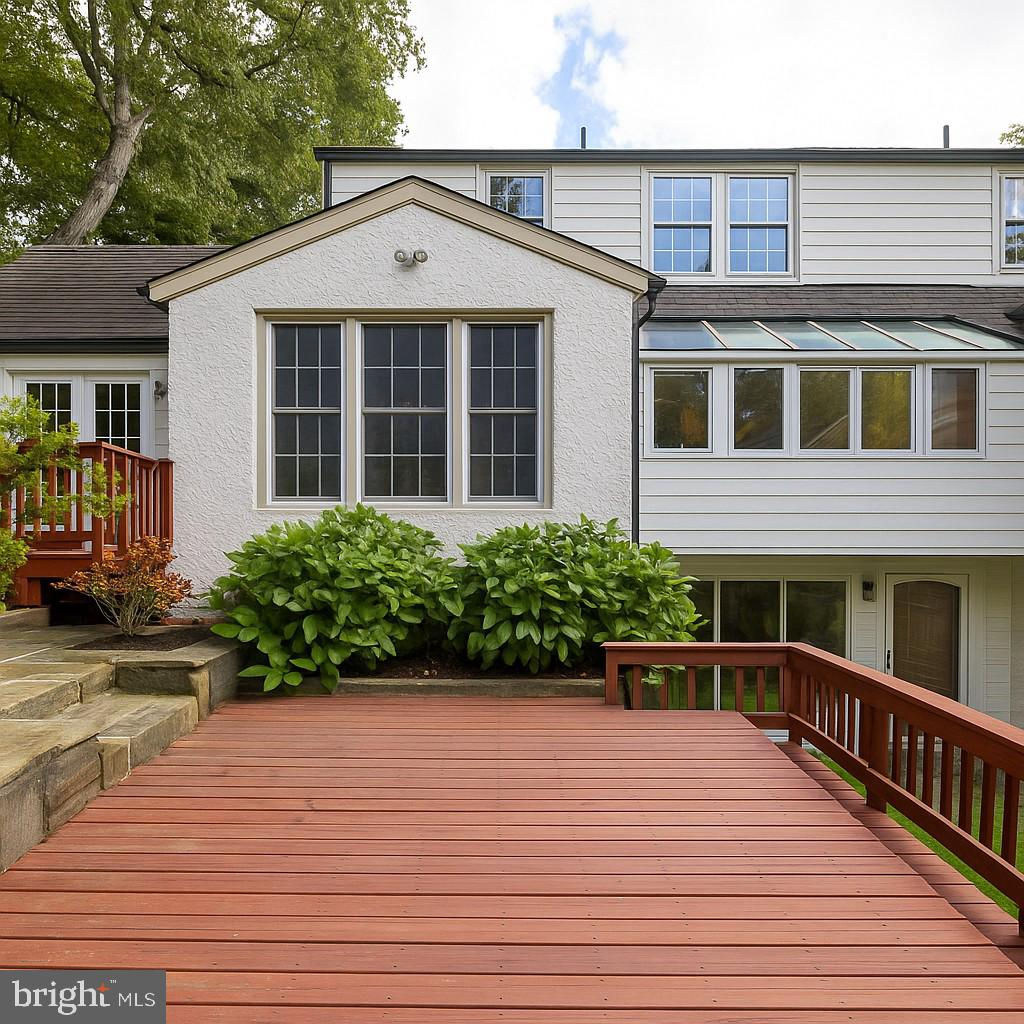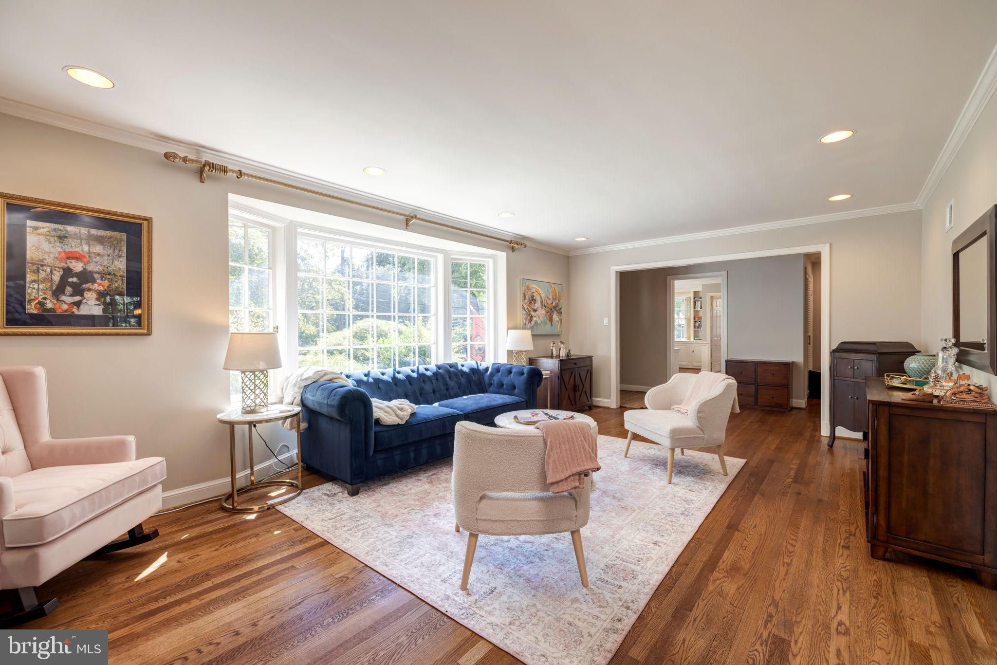 Nestled on a quiet, tree lined corner in wonderful Sumner, this updated, spacious and thoughtfully designed home offers over 4,500 square feet of light-filled space across three levels. Every room feels inviting with timeless finishes, beautiful millwork, and generous proportions that adapt easily to every stage in life. Main-Level Features: Hardwood floors throughout; gracious reception foyer; 21’ deep formal Living Room anchored by a gorgeous wood burning fireplace with brick surround and a large bay window; holiday dinner sized Dining Room with huge windows, built-in cabinets and French Doors to Deck; Great Room, bathed in light, with dramatic vaulted ceiling and French Doors to Deck; large, eat-in Kitchen with maple cabinetry, granite countertops, stainless steel appliances, loads of prep and storage space, a charming built-in Banquette for casual dining, built-in shelving and Bow windows let in a loads of natural light; renovated and tucked away Primary Suite with walk-in closet plus shelving, beautifully designed, marble Primary Bath with separate slipper tub, shower with full glass enclosure, dual vanity; large, 18’ wide Office/Library with French doors, beautiful built-ins and an en-suite Powder Room; tucked away coat closet Upper-Level Features: Four comfortable bedrooms with hardwood floors throughout; large Bedroom #2 with charming alcoves, recessed lighting, 2 skylights and wonderful closet space; Bedroom #2 with large window; whimsically updated Full Bath #2 with tub; Bedroom #3 with recessed lighting, walk-in access to huge Attic storage and Jack and Jill Full Bath #3 with tub shared with Bedroom #4; 4 large closets along the hallway Daylight Lower-Level Features: The fully renovated, daylight lower level was designed with flexibility in mind and is perfect for an in-law or au pair suite with its own exterior entrance, Bedroom #6 and renovated Full Bath #4. The lower level offers an expansive family room with a wood-burning fireplace and walks out to the backyard. A new Kitchenette with a stone topped wet-bar and full-sized refrigerator is ideal for entertaining or is a perfect part of the guest suite. Other Features: Assumable low interest rate VA loan for VA eligible Buyers; 2-zones (Dining Room and Great Room are one zone); .9 miles to Wood Acres ES; quick commute to DC, 495 and VA; easy access to Capital Crescent Trail; 1.5 miles to The Shops at Sumner Place (grocery, Starbucks, CVS, fine and casual dining)