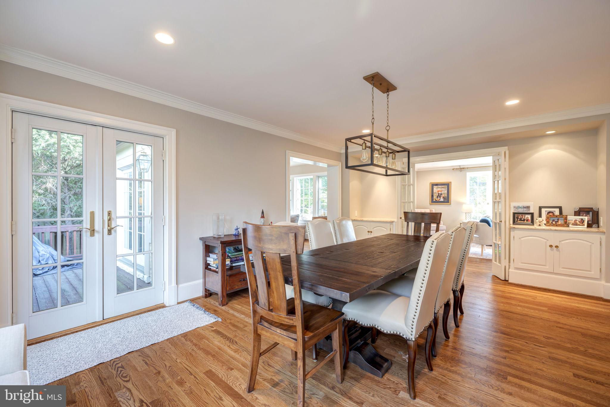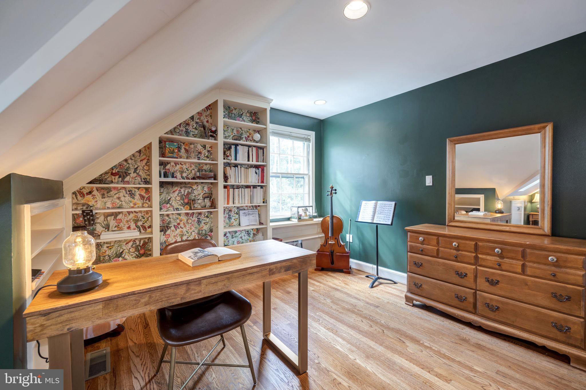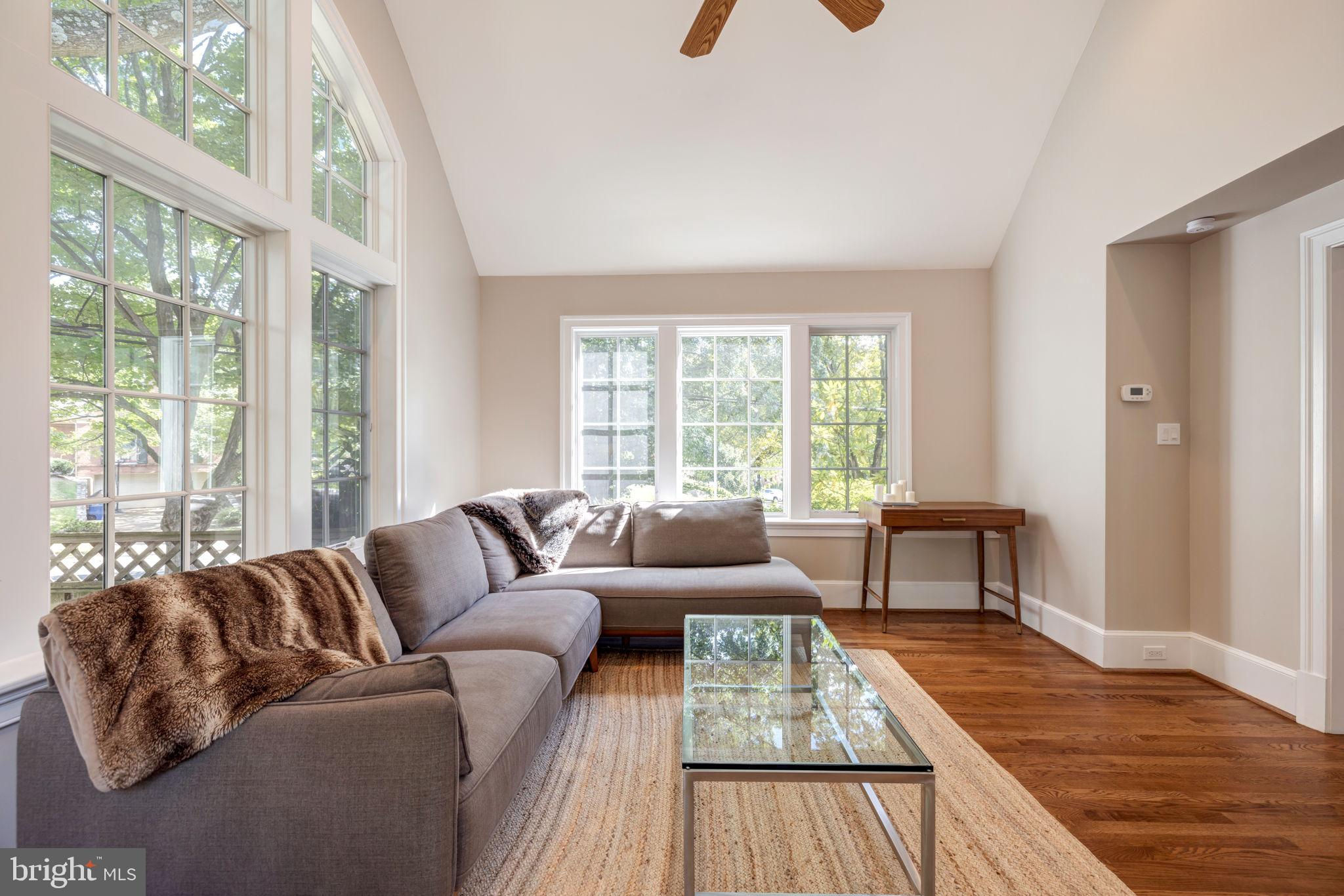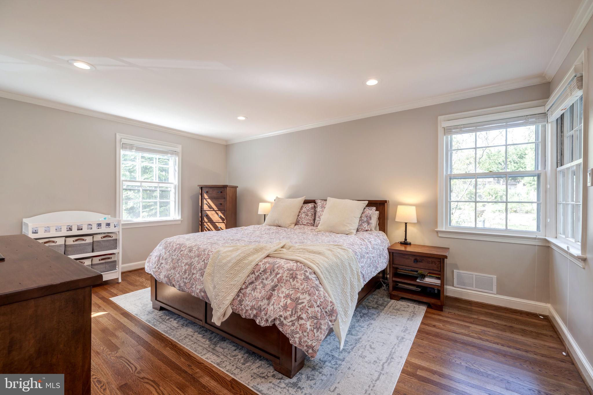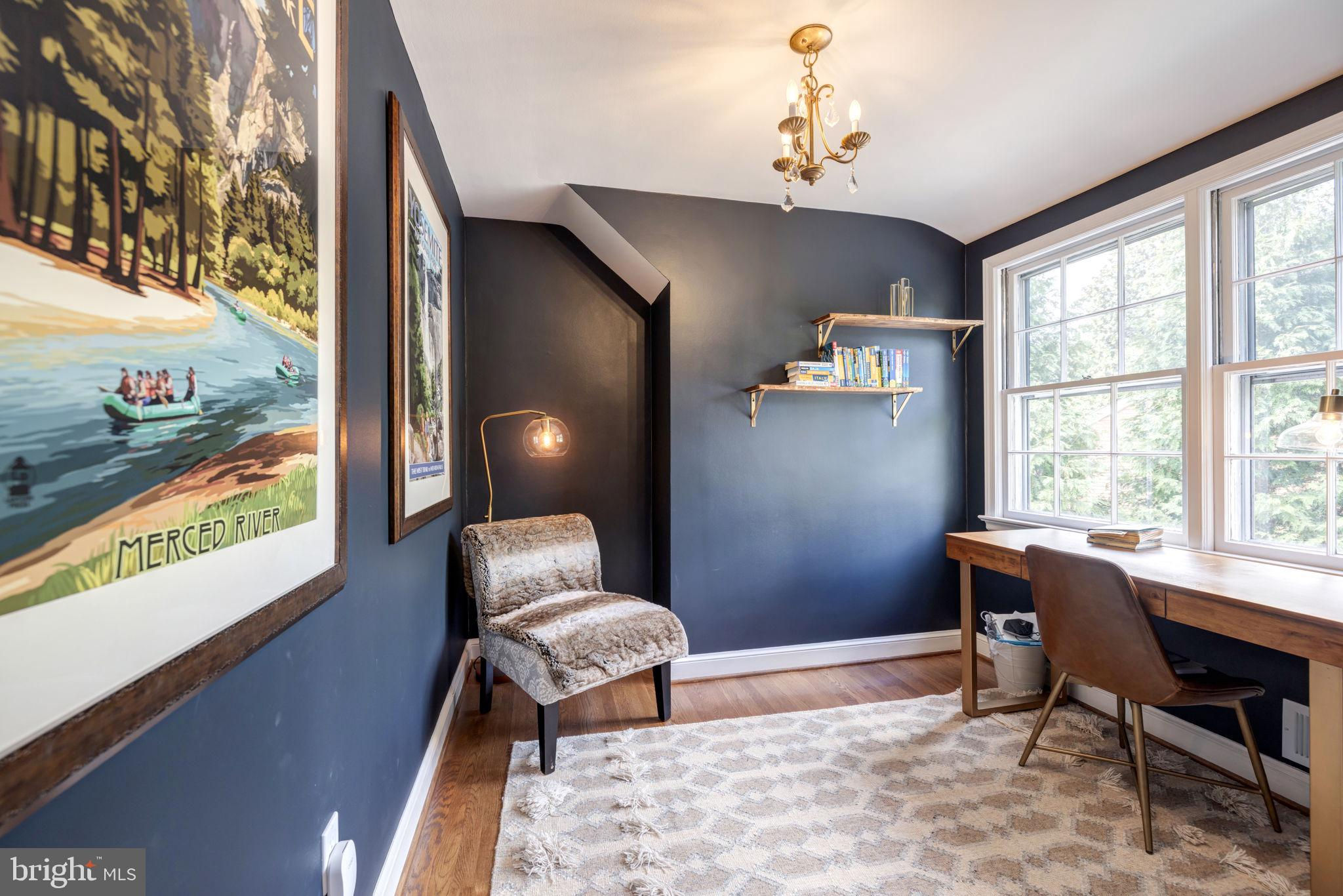 Nestled on a quiet, tree lined corner in wonderful Sumner, this updated, spacious and thoughtfully designed home offers over 4,500 square feet of light-filled space across three levels. Every room feels inviting with timeless finishes, beautiful millwork, and generous proportions that adapt easily to every stage in life. Main-Level Features: Hardwood floors throughout; gracious reception foyer; 21’ deep formal Living Room anchored by a gorgeous wood burning fireplace with brick surround and a large bay window; holiday dinner sized Dining Room with huge windows, built-in cabinets and French Doors to Deck; Great Room, bathed in light, with dramatic vaulted ceiling and French Doors to Deck; large, eat-in Kitchen with maple cabinetry, granite countertops, stainless steel appliances, loads of prep and storage space, a charming built-in Banquette for casual dining, built-in shelving and Bow windows let in a loads of natural light; renovated and tucked away Primary Suite with walk-in closet plus shelving, beautifully designed, marble Primary Bath with separate slipper tub, shower with full glass enclosure, dual vanity; large, 18’ wide Office/Library with French doors, beautiful built-ins and an en-suite Powder Room; tucked away coat closet Upper-Level Features: Four comfortable bedrooms with hardwood floors throughout; large Bedroom #2 with charming alcoves, recessed lighting, 2 skylights and wonderful closet space; Bedroom #2 with large window; whimsically updated Full Bath #2 with tub; Bedroom #3 with recessed lighting, walk-in access to huge Attic storage and Jack and Jill Full Bath #3 with tub shared with Bedroom #4; 4 large closets along the hallway Daylight Lower-Level Features: The fully renovated, daylight lower level was designed with flexibility in mind and is perfect for an in-law or au pair suite with its own exterior entrance, Bedroom #6 and renovated Full Bath #4. The lower level offers an expansive family room with a wood-burning fireplace and walks out to the backyard. A new Kitchenette with a stone topped wet-bar and full-sized refrigerator is ideal for entertaining or is a perfect part of the guest suite. Other Features: Assumable low interest rate VA loan for VA eligible Buyers; 2-zones (Dining Room and Great Room are one zone); .9 miles to Wood Acres ES; quick commute to DC, 495 and VA; easy access to Capital Crescent Trail; 1.5 miles to The Shops at Sumner Place (grocery, Starbucks, CVS, fine and casual dining)