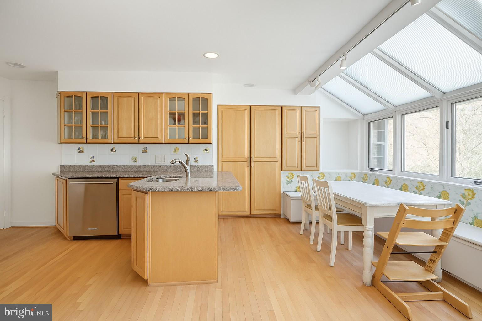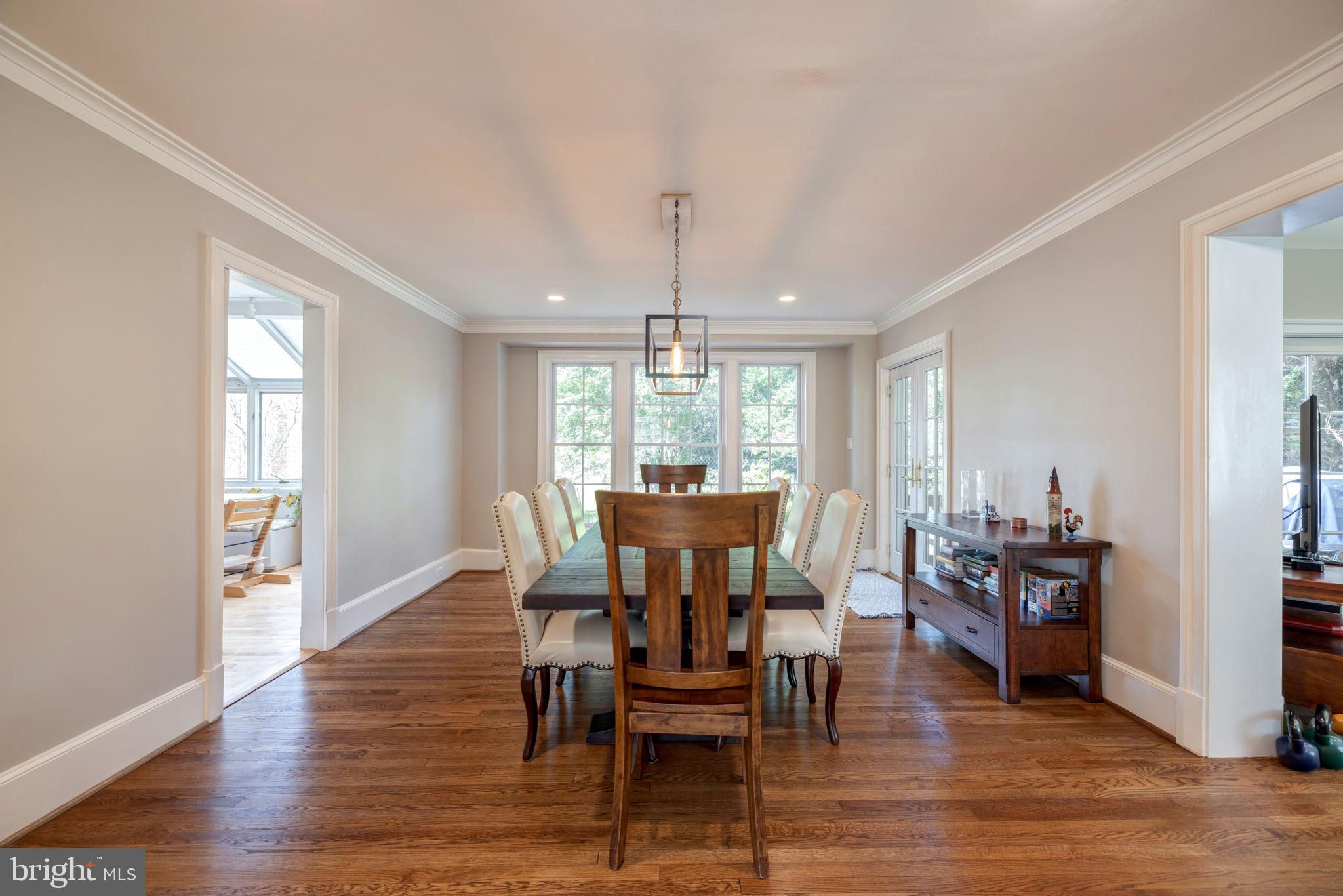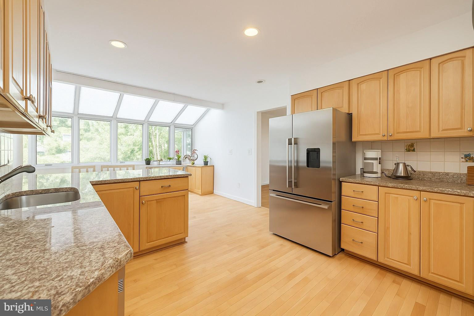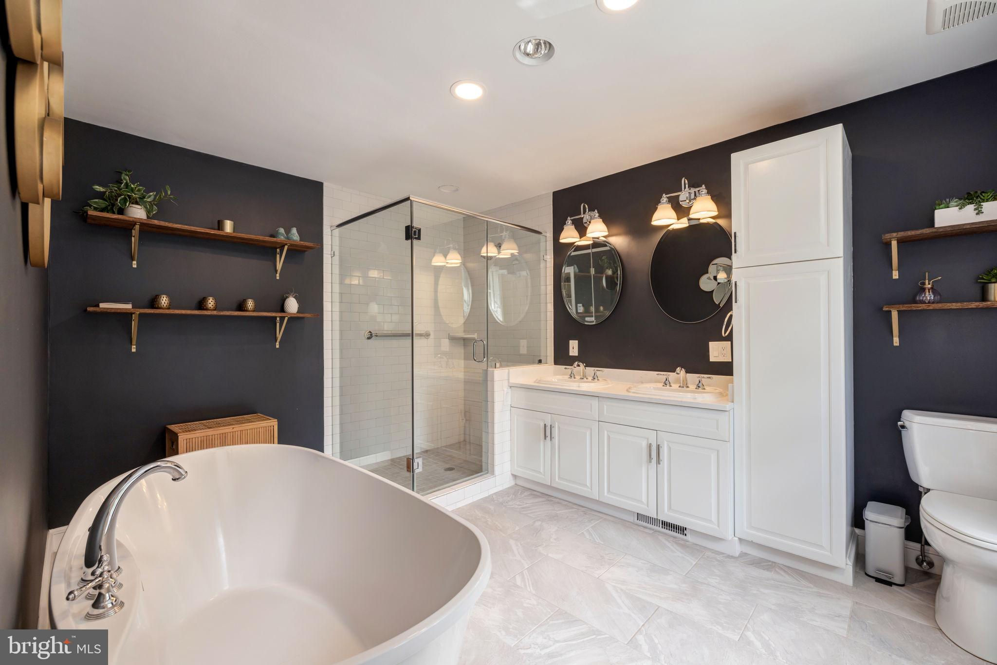Nestled on a quiet, tree lined corner in wonderful Sumner, this updated, spacious and thoughtfully designed home offers over 4,500 square feet of light-filled space across three levels. Every room feels inviting with timeless finishes, beautiful millwork, and generous proportions that adapt easily to every stage in life. Main-Level Features: Hardwood floors throughout; gracious reception foyer; 21’ deep formal Living Room anchored by a gorgeous wood burning fireplace with brick surround and a large bay window; holiday dinner sized Dining Room with huge windows, built-in cabinets and French Doors to Deck; Great Room, bathed in light, with dramatic vaulted ceiling and French Doors to Deck; large, eat-in Kitchen with maple cabinetry, granite countertops, stainless steel appliances, loads of prep and storage space, a charming built-in Banquette for casual dining, built-in shelving and Bow windows let in a loads of natural light; renovated and tucked away Primary Suite with walk-in closet plus shelving, beautifully designed, marble Primary Bath with separate slipper tub, shower with full glass enclosure, dual vanity; large, 18’ wide Office/Library with French doors, beautiful built-ins and an en-suite Powder Room; tucked away coat closet Upper-Level Features: Four comfortable bedrooms with hardwood floors throughout; large Bedroom #2 with charming alcoves, recessed lighting, 2 skylights and wonderful closet space; Bedroom #2 with large window; whimsically updated Full Bath #2 with tub; Bedroom #3 with recessed lighting, walk-in access to huge Attic storage and Jack and Jill Full Bath #3 with tub shared with Bedroom #4; 4 large closets along the hallway Daylight Lower-Level Features: The fully renovated, daylight lower level was designed with flexibility in mind and is perfect for an in-law or au pair suite with its own exterior entrance, Bedroom #6 and renovated Full Bath #4. The lower level offers an expansive family room with a wood-burning fireplace and walks out to the backyard. A new Kitchenette with a stone topped wet-bar and full-sized refrigerator is ideal for entertaining or is a perfect part of the guest suite. Other Features: Assumable low interest rate VA loan for VA eligible Buyers; 2-zones (Dining Room and Great Room are one zone); .9 miles to Wood Acres ES; quick commute to DC, 495 and VA; easy access to Capital Crescent Trail; 1.5 miles to The Shops at Sumner Place (grocery, Starbucks, CVS, fine and casual dining)
