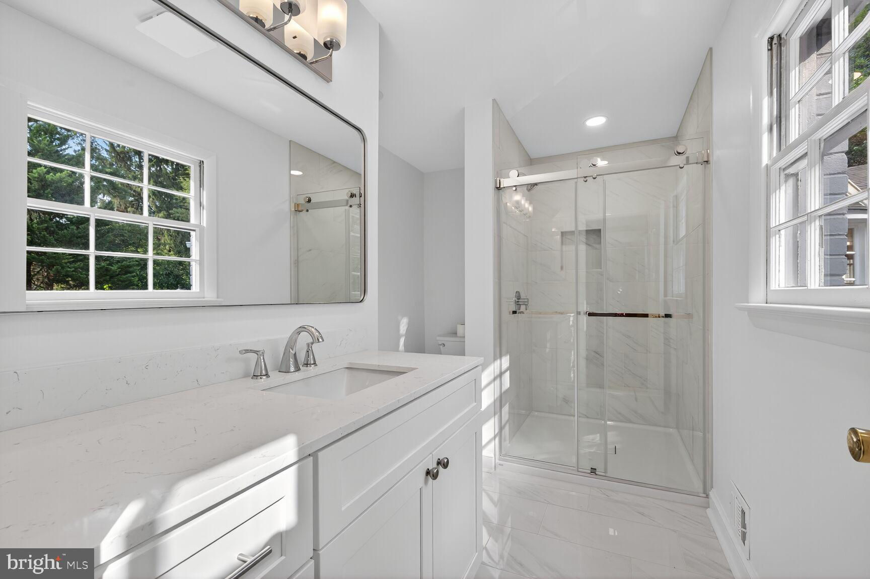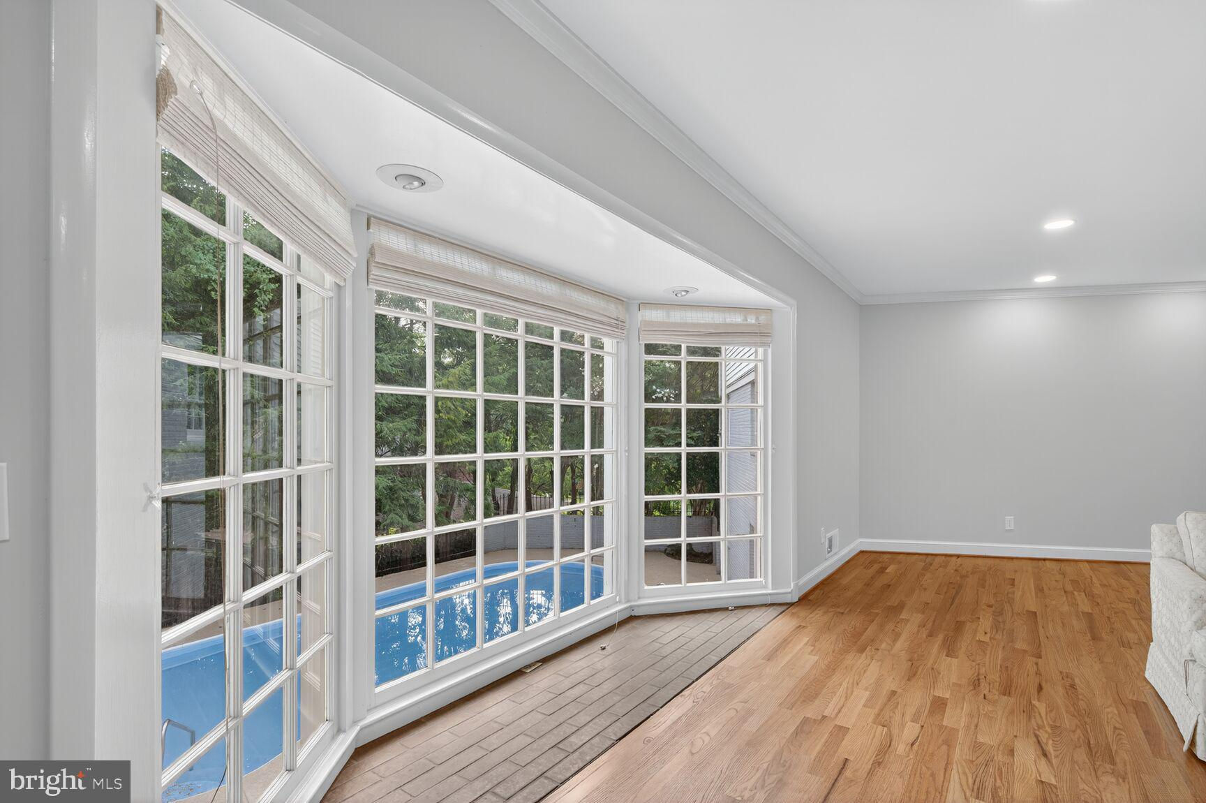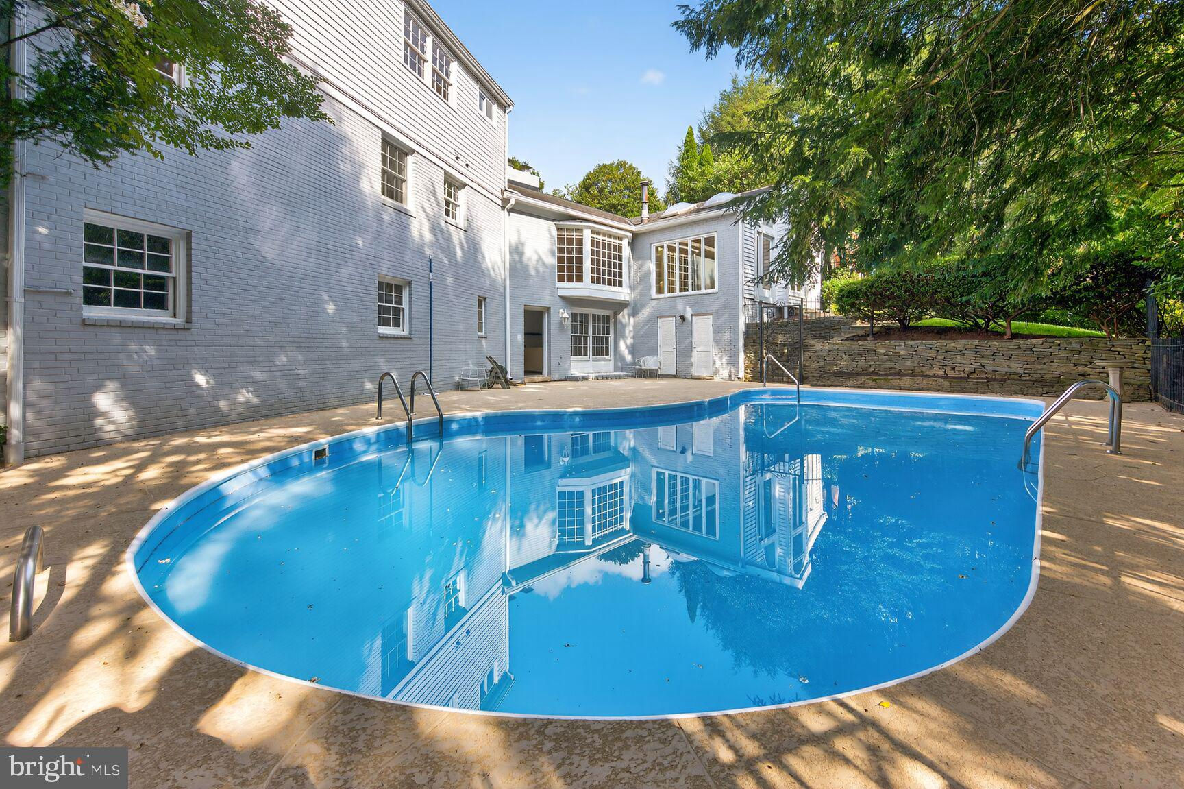 Exceptional mid-century modern home in Bethesda’s highly sought-after Fort Sumner neighborhood! This stunning custom-built 7/8-bedroom, 4-bath residence featuring a private pool, 3-car garage, and prime location just one mile from Washington, D.C. perfectly blends timeless mid-century architecture with modern updates and expansive living spaces filled with natural light. The main level boasts a spacious primary suite, two versatile bedrooms/offices, two new bathrooms, a large living room, elegant formal dining room, architect-designed sunroom, and a bright kitchen with adjoining breakfast room and a cozy family room. Off the kitchen and dining room, step out to a stunning flagstone patio, perfect for outdoor entertaining or relaxing private gatherings. Upstairs, discover four generous bedrooms, a beautifully renovated full bathroom, and a large walk-in attic offering ample storage. The lower level is an entertainer’s dream with a large recreation room featuring a fireplace, wet bar, and a gym, a bedroom/den, full bath, laundry room with laundry chute, and direct access to the pool and garage. This versatile layout offers a great opportunity for multi-generational living or formal and informal entertaining. The oversized 3-car garage, a major upgrade in this neighborhood, offers unmatched scale, storage, and space for vehicles or hobbies. With refinished hardwood floors throughout, three fully updated bathrooms, fresh paint in every room and recessed lighting, this home offers exceptional quality and style. Just steps from parks, tennis courts, and playgrounds, a short walk to the Capital Crescent Trail and minutes to Georgetown, downtown Bethesda, key commuter routes, and Reagan National and Dulles airports, this beautiful home combines style, space, and an ideal location. Don’t miss this rare opportunity to own a true Fort Sumner gem!