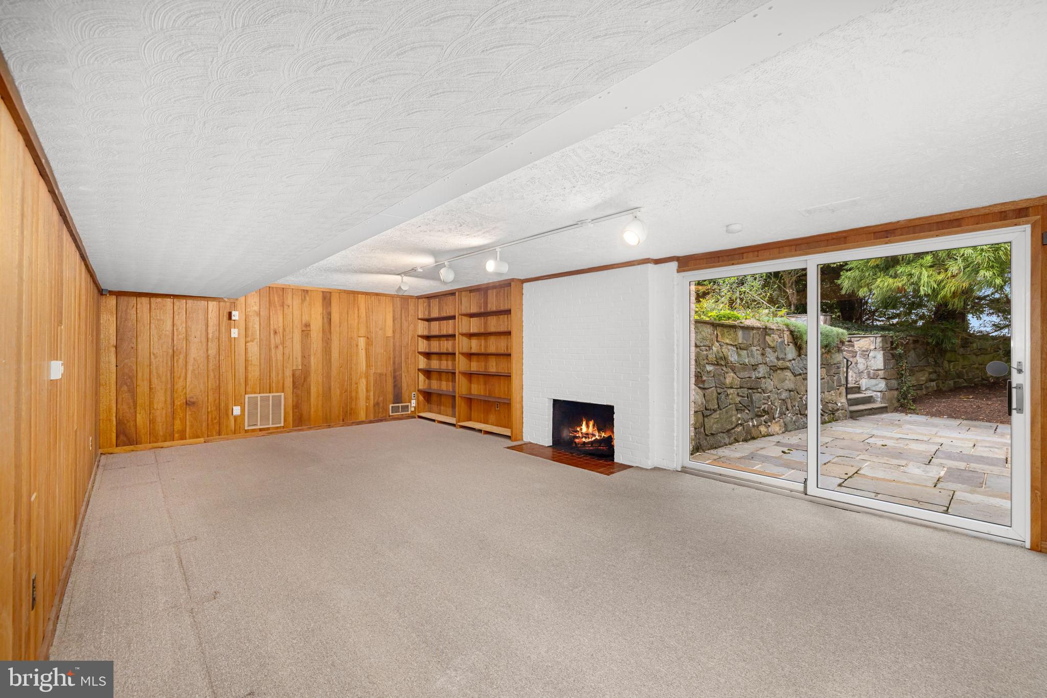 Welcome to this timeless 5-bedroom, 4.5-bathroom 1960s Mid-Century Modern brick residence, privately secluded on Pembroke Terrace in the heart of Bethesda. || The home interior retains its architectural pedigree with clean lines, expansive picture and ribbon windows, sliding glass doors, warm masonry, natural wood finishes, and a seamless indoor/outdoor connection. || Set on a 16,256-sf lot, the residence is framed by period-appropriate mature trees, curated gardens, and extensive hardscaping. Flagstone terraces extend the home’s geometry into the landscape, creating private spaces for morning coffee and evening gatherings. || The inviting foyer offers a sightline straight to the rear gardens, welcoming you inside. The living room features warm wood paneling and a floor-to-ceiling stone wood-burning fireplace. Living and dining rooms flow together and share sliding doors to the upper stone terrace. The spacious renovated kitchen adjoins a light-filled, wood-paneled morning room with a raised-hearth brick gas fireplace and sliding doors to the upper terrace. The connection between these spaces is ideal for year-round entertaining. A powder room is discreetly tucked off the foyer. || Secluded in the east wing are the primary bedroom with ensuite bath and bedrooms 2 and 3, with a shared hallway bath 2. || The upper level offers a bright 570-sf pitched-roof studio/bedroom 4 and hallway bath 3 plus 1,700-sf of storage. || Hardwood floors throughout these levels. || The lower-level family room features warm wood paneling, a large brick wood-burning fireplace, and sliding doors opening to the lower terrace and gardens. Additionally, the lower level includes bedroom 5 with views of the rear gardens, hallway bath 4, a full second kitchen, laundry room, gym area, utility room, more storage, and access to the oversized 2-car garage. || This highly desirable Bethesda neighborhood provides the perfect blend of privacy and convenience—just minutes from downtown Bethesda, Metro, the Capital Crescent Trail, and DC. This is a rare opportunity to customize a preserved piece of mid-century modern architecture!