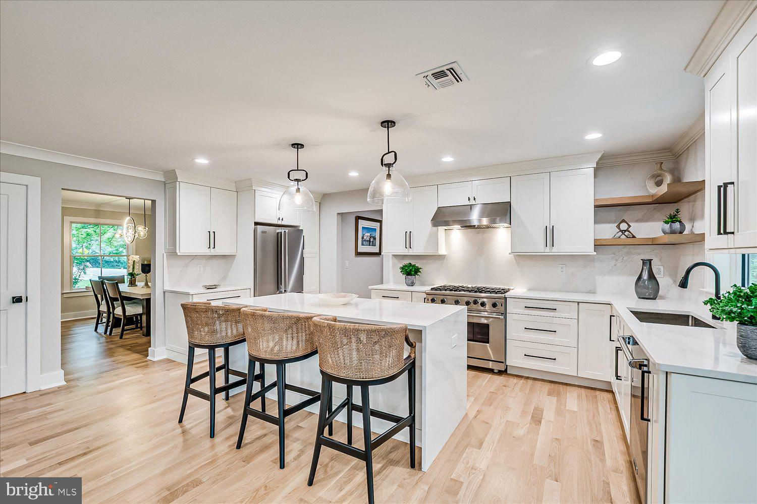 Everything is new is this beautifully reconstructed home in a picturesque Princeton neighborhood, includes 10-year HOW warranty. 569 Riverside Drive is a stunning showcase of thoughtful design, luxurious finishes, and superior craftsmanship—inside and out. From the moment you arrive, the curb appeal is undeniable: handsome stonework, professional landscaping, and a welcoming covered entry set the stage, while mature trees blend beautifully with fresh plantings and hardscaping that was completed with no expense spared. Step inside to discover hardwood floors throughout, crown molding and recessed lighting, and stylish designer fixtures that lend elegance to every space. The foyer opens to a formal dining room on the left, while straight ahead, the expansive great room and kitchen invite effortless entertaining and everyday comfort. A gas fireplace with marble surround anchors the great room, and a window-lined breakfast area with sliding doors opens to the patio, where a ceiling fan offers a cooling breeze—perfect for al fresco meals. At the heart of the home, the gourmet kitchen is both beautiful and functional. A waterfall quartz center island serves as a show stopping centerpiece, surrounded by white cabinetry, quartz counters and backsplash, a Viking stainless steel appliance package, and a Sharp drawer microwave built into the island. A hallway off the garage includes a convenient cubby system for jackets, shoes, and backpacks, while a private first-floor office overlooks the fully fenced backyard—ideal for remote work or quiet study. Upstairs, the primary suite is a serene retreat with a double tray ceiling, two custom walk-in closets, and a luxurious en suite bath complete with marble floors, a dual-sink vanity, an oversized shower with multiple shower heads, and a freestanding soaking tub that steals the show. Three additional bedrooms—all with custom closet systems—include one with its own en suite bath, and two that share a well-appointed hall bath. A second-floor laundry room adds everyday convenience. The finished basement expands the living space even further with daylight windows, recessed lighting, and a full bath—a flexible area ready to become your media room, gym, playroom, or guest suite. Please Note: When 569 Riverside Drive was constructed, it was built with a standalone accessory dwelling unit (ADU) This beautiful ADU home enjoys its own fully fenced yard and private driveway, with a shared driveway apron where the two driveways meet the roadway. This listing is for the main home only. If you are interested in purchasing the ADU for multi-generational living, guest accommodations or potential rental income, please see MLS #NJME2066110 for more information.