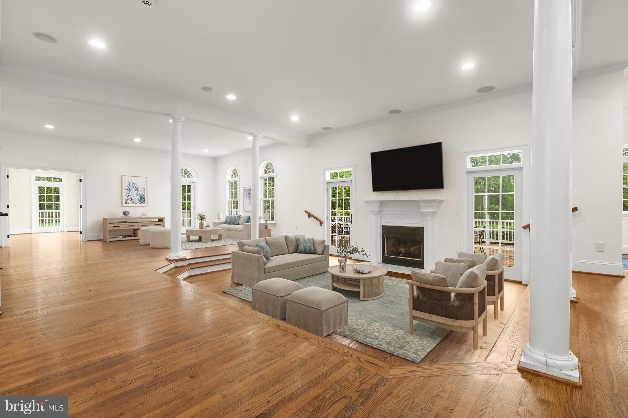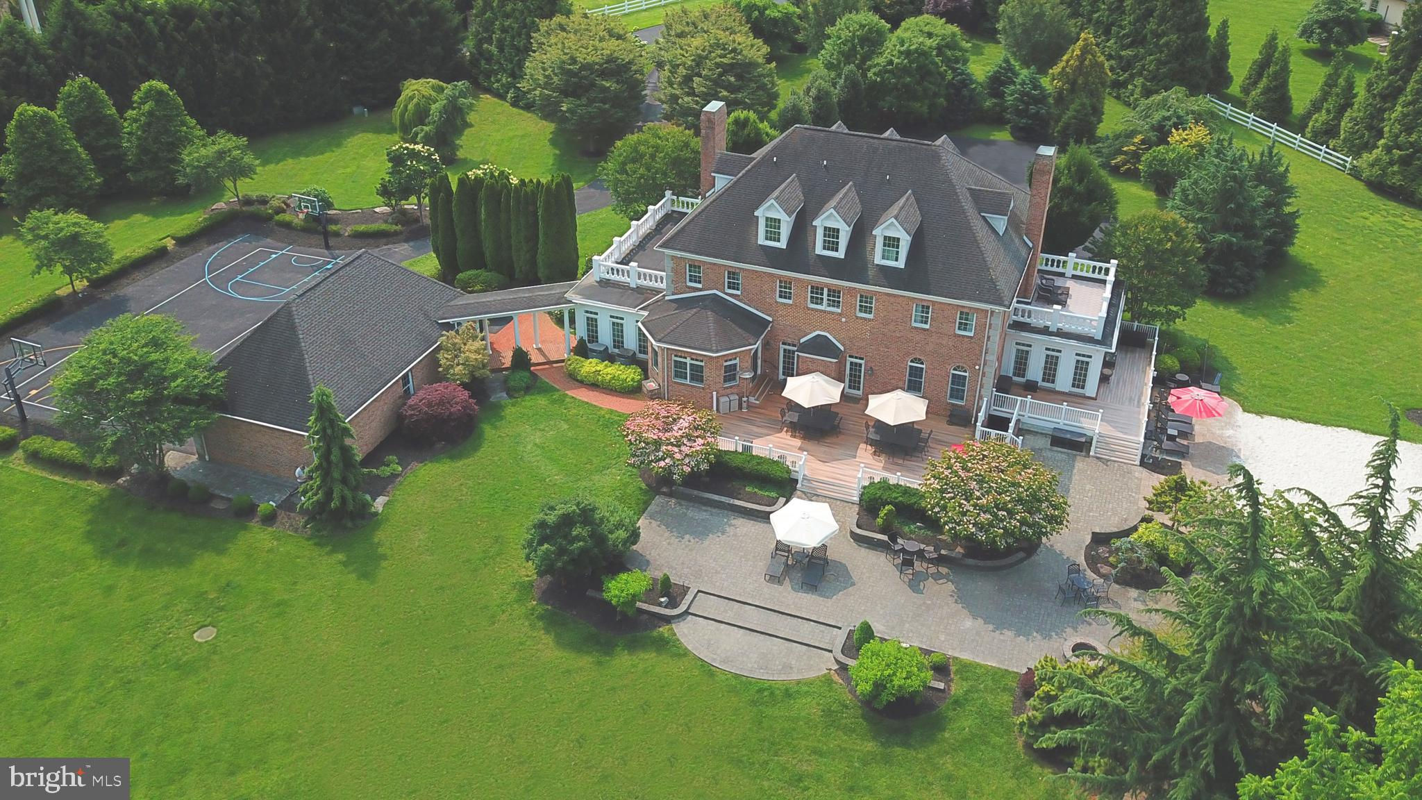 Welcome to this exceptional 8-bedroom, 5 full and 2 half-bath Federal-style estate nestled on private gated 4-acre lot in the exclusive Timberline Park community. Designed with timeless architecture, offering unmatched space and privacy, this distinguished property is the ultimate retreat for refined living. Step into the two-story foyer with elegant ceramic tile flooring and a dramatic dual curved staircase that sets the tone for the home. The main level is thoughtfully designed for both elegance and everyday convenience with seamless flow of formal and casual living spaces. At the heart of the home is a gourmet kitchen featuring stainless steel appliances, white cabinetry, Corian countertops, and a generous island with breakfast bar - perfect for entertaining or preparing meals with ease. Adjacent to the kitchen is a light-filled breakfast nook and an inviting sunken family room with a gas fireplace, creating a warm atmosphere. The formal living room and dining room provide spaces for entertaining guests, while a spacious den and bright sunroom offer multiple options for relaxation or creative use. A private office with built-ins and attached half bath is ideal for remote work or study. A first floor bedroom with beautifully remodeled bathroom with a walk-in shower adds function and accessibility to the main level, while the well-appointed mudroom with built-in storage ensures a tidy and organized entry from the garage or outdoors. Every detail—from rich hardwood flooring and custom trim work—elevates the comfort and sophistication of this level. The primary suite is a true sanctuary, complete with sitting room, dual walk-in closets for optimal storage and organization. The spa-inspired ensuite bath boasts a walk-in shower with a rain shower head, built-in bench, and recessed niche, as well as a soaking garden tub, and private water closet. Two additional generously sized bedrooms and two full bathrooms, add convenience for family or guests. A dedicated laundry room is also located on this level, strategically positioned for everyday ease. You'll find durable and stylish luxury vinyl plank flooring in upper levels, providing the look of hardwood with added resilience—ideal for both beauty and practicality. The third level features both space and character, with a full bathroom, four well-sized bedrooms with dormer windows that infuse the rooms with natural light and architectural charm. The finished basement is an extension of the home's versatility, offering an impressive array of spaces. A spacious recreation room featuring a gas fireplace and functional wet bar complete with white cabinetry, granite countertops, a stainless-steel refrigerator, and built-in microwave—perfect for hosting gatherings or creating the ultimate in-home lounge. For movie nights or game days, retreat to the dedicated media room, while the game room impresses with stained concrete floors, a second gas fireplace, and plenty of space for billiards, ping pong, or arcade-style fun. This level includes 3 multiple flexible-use spaces that can easily adapt to your lifestyle—whether as a bedroom, gym, playroom, craft space, or second home office. A half bathroom, large storage room, and walkout stairs leading directly to the rear deck, makes indoor-outdoor living easy. A spacious composite deck offers low-maintenance and style for outdoor dining or lounging. With steps leading to an expansive paver patio framed by retaining walls add dimension and structure to the landscape. A built-in firepit awaits evening gatherings under the stars. Professionally landscaped grounds surround the space with lush greenery, offering both beauty and privacy. For added fun, the backyard features a sand court, perfect for beach-style games, and a basketball court that doubles as extra parking for larger gatherings. Backyard has the ability to add a swimming pool. Additional highlights include a detached 4-car garage with new insulated garage doors.