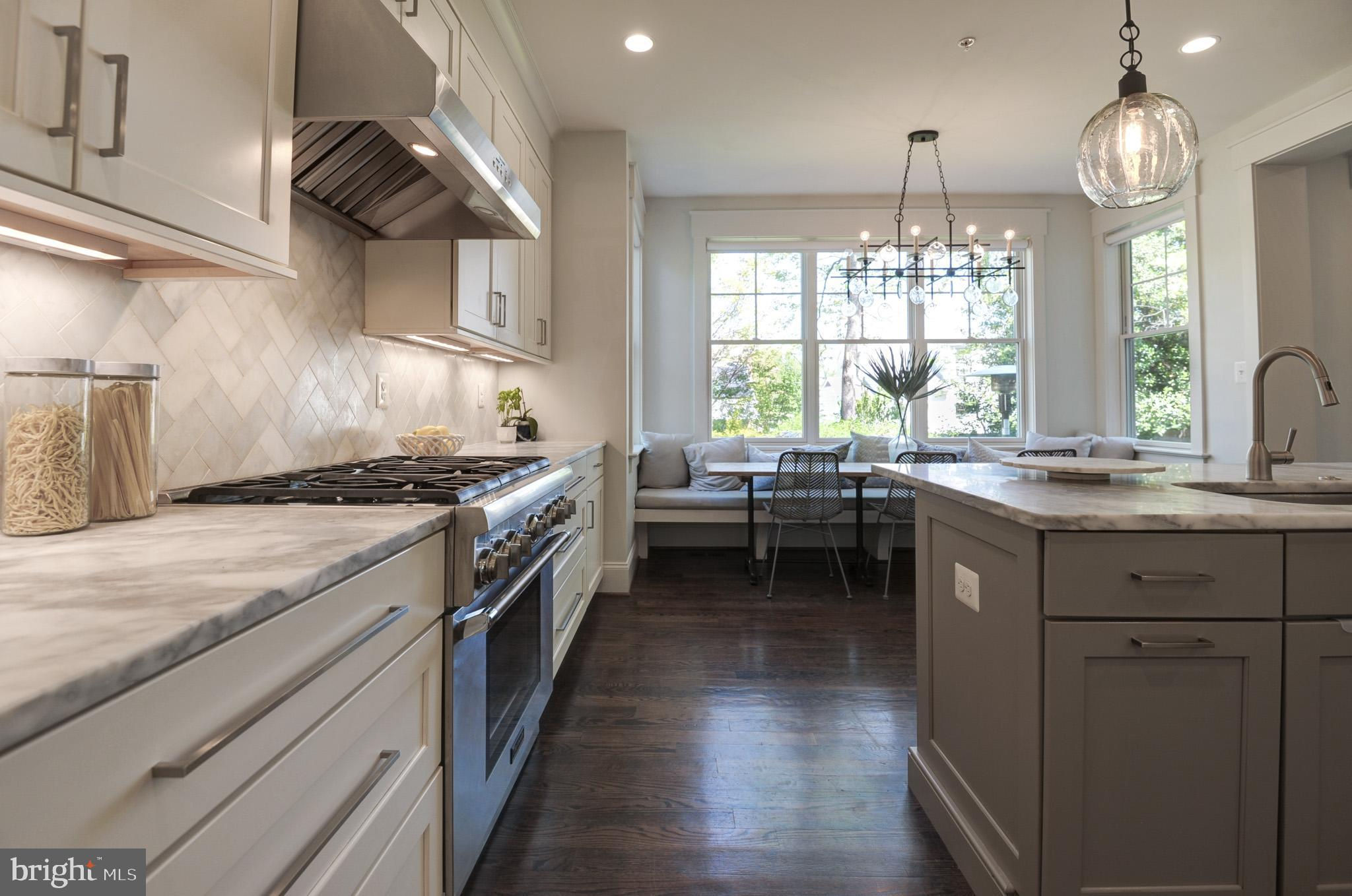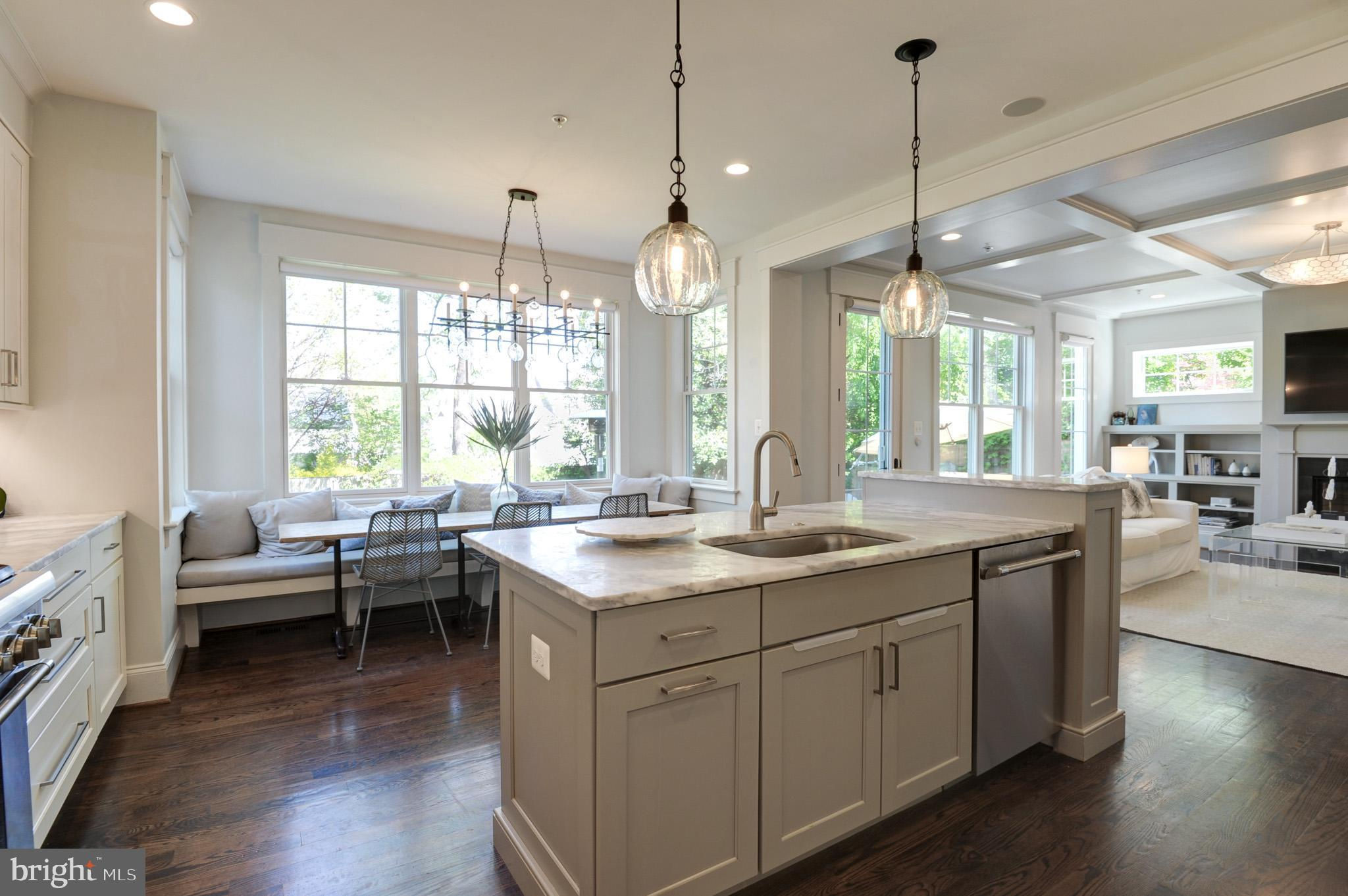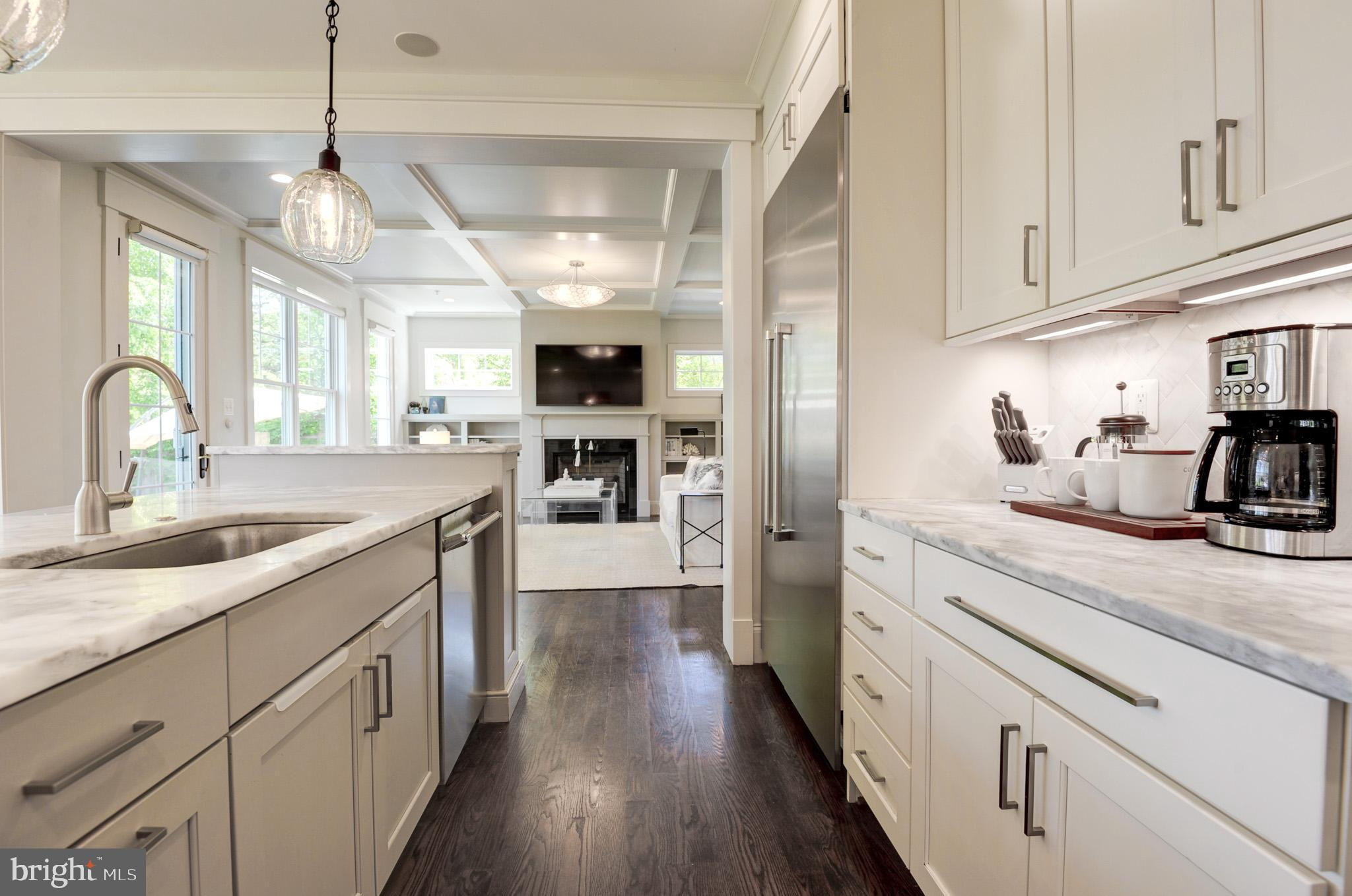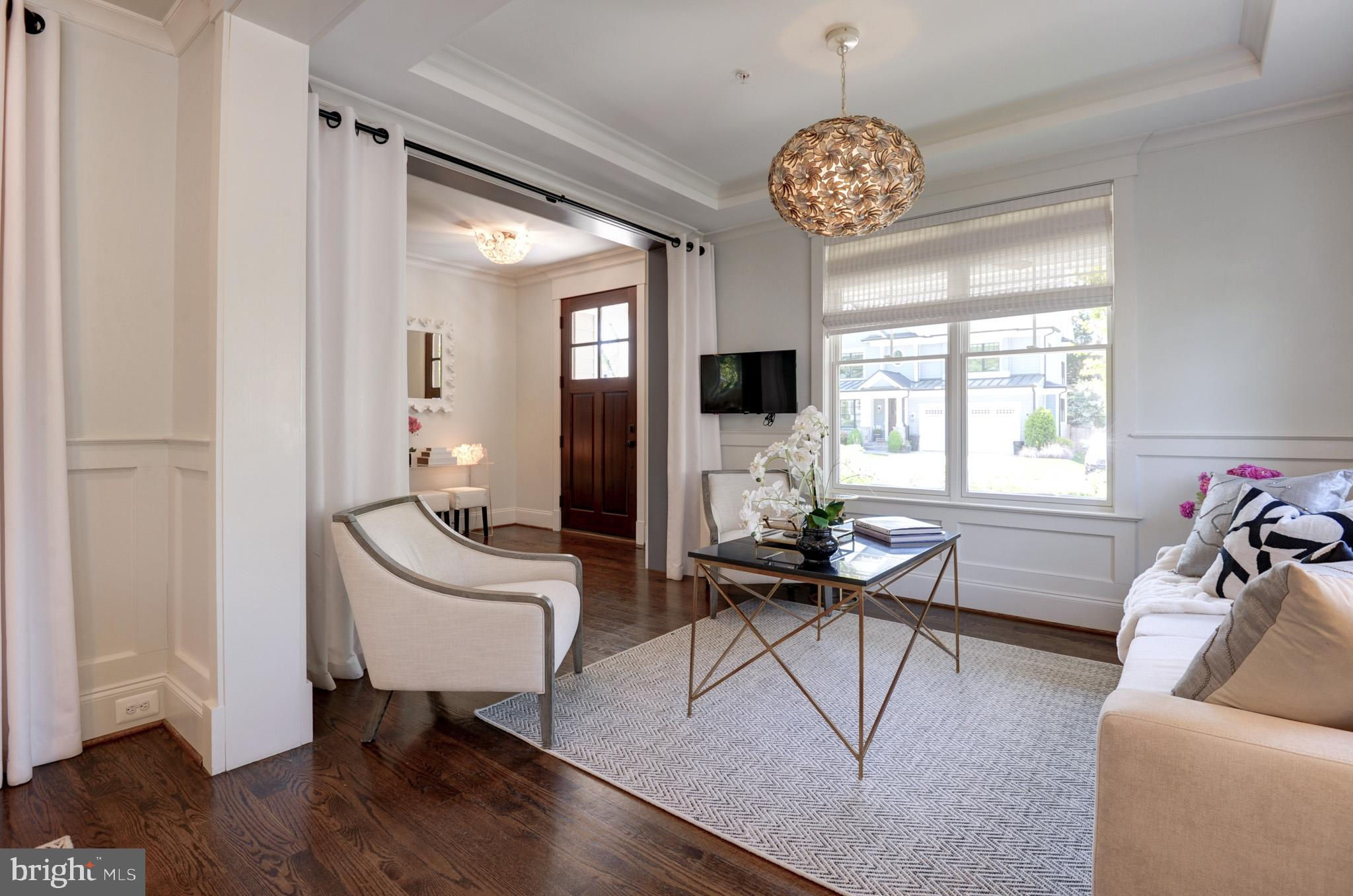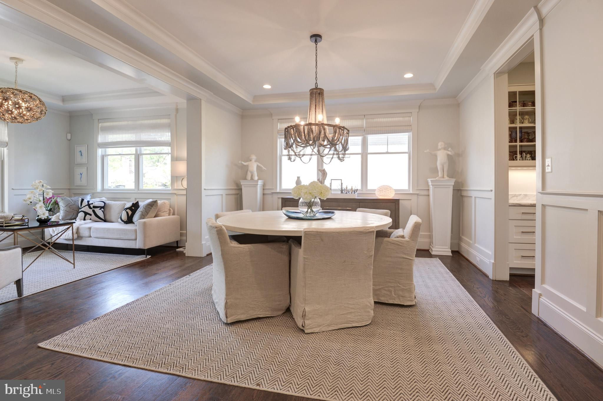 Experience the epitome of bespoke craftsmanship and timeless elegance at 6009 Walton Rd, a meticulously designed Arts & Crafts style home nestled within the coveted Wyngate neighborhood of Bethesda, Maryland. Custom-built in 2015, this architectural gem by Claude C. Lapp Architects, LLC seamlessly blends modern luxury with classic charm, offering a harmonious retreat for the discerning homeowner. From the moment you approach the property, the attention to detail is evident. The charming façade is adorned with intricate architectural elements, and lush landscaping exudes curb appeal. Enter through the inviting entrance, where warm hues of wood and stone create a welcoming ambiance. The interior spaces are thoughtfully designed to optimize comfort and functionality, emphasizing open-concept living and entertaining. Expansive windows bathe the home in natural light, highlighting the rich textures of hardwood floors, custom millwork, and designer finishes throughout. The heart of the home lies in the gourmet kitchen, a culinary masterpiece equipped with state-of-the-art stainless steel appliances, white custom cabinetry, and a center island that doubles as a gathering space for entertaining. Adjacent, a sunlit breakfast area offers a comfortable spot to enjoy morning coffee while overlooking the tranquil backyard oasis. The main level also features gracious living and dining areas, perfect for formal gatherings or intimate soirées, and a comfortable family room with a gas fireplace, ideal for relaxing evenings at home. The home office is bright and private for a quiet retreat. Upstairs, the luxurious master suite awaits, boasting a serene sanctuary complete with a spa-like bath, oversized shower, dual vanities, and a separate sitting room/second office. Three generously sized bedrooms, two with a shared bath and one with its en-suite bath, provide ample space. A separate laundry room with a window, sink, and full-size washer and dryer. The lower level provides a fully finished basement down the open staircase. It offers more entertaining spaces, including an enormous recreation room, another bedroom with a full bathroom, ample storage, and an optional exercise room. A private paradise awaits, with a beautifully landscaped fenced-in yard and expansive patios in the front and backyards, perfect for al fresco dining and entertaining year-round. A spacious attached two-car garage also offers a wall organizer with ample storage space. Conveniently located in the sought-after Wyngate neighborhood, this exquisite residence offers easy access to top-rated schools, parks, shopping, dining destinations, and major commuter routes for effortless travel throughout the Washington, D.C. metropolitan area. Schedule your tour today!