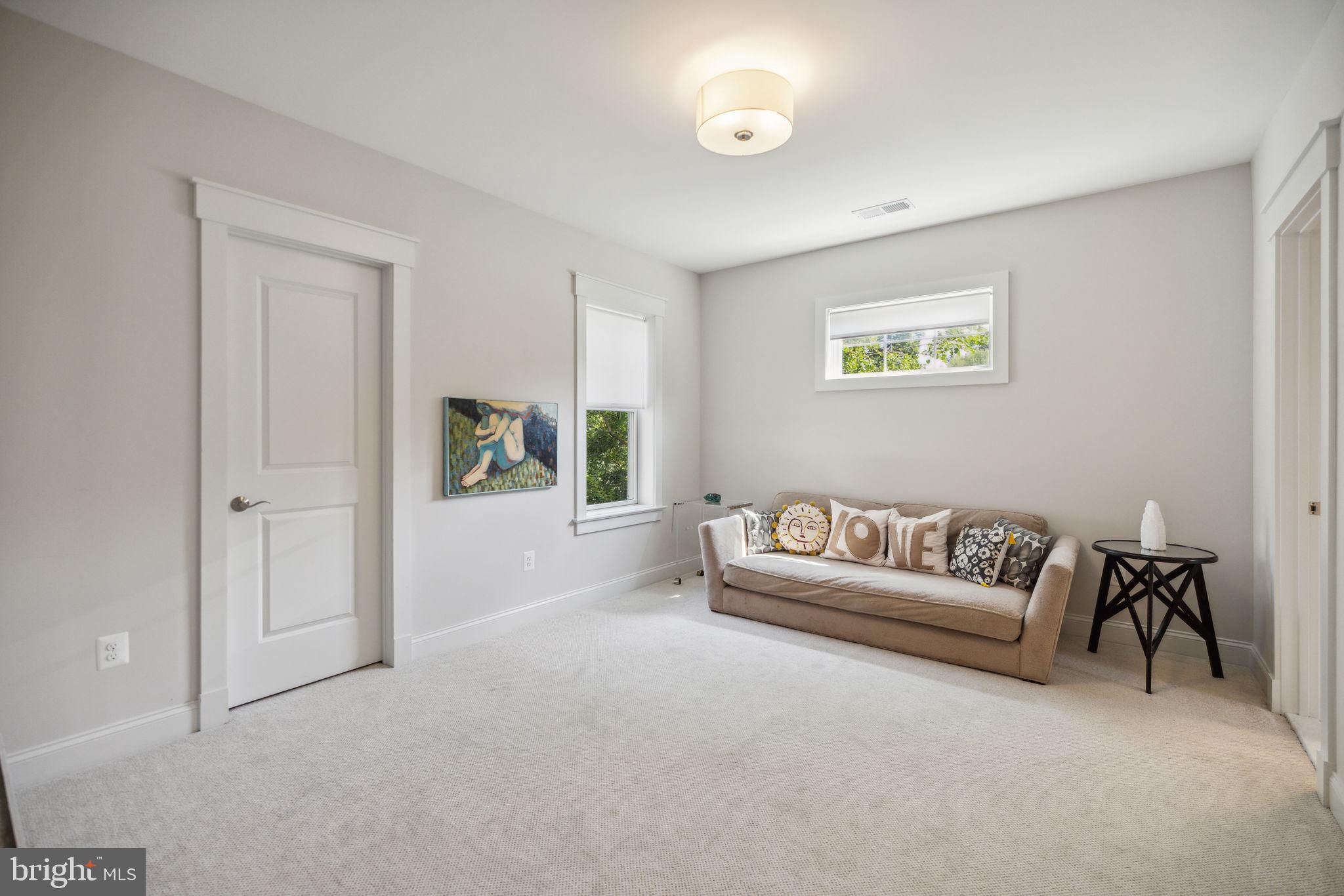 Tucked onto a quiet tree-lined street behind a picket fence, this beautifully detailed residence exemplifies the timeless appeal of Arts-and-Crafts-style architecture. Flowering wisteria vines, lush landscaping, and an inviting flagstone porch extend a warm welcome to the 5 bedroom/4.5 bath home, which is arranged over 3 levels. Enhanced with custom millwork, high ceilings, rich hardwoods, and stunning window arrays, the floorplan is saturated with sunlight. Carefully curated lighting fixtures and window treatments perfectly complement the casually elegant living spaces, which include a living room, a spacious dining room, and a kitchen designed for entertaining. Appointed with both a walk-in and a butler’s pantry, the kitchen features classic white cabinets, muted natural stone surfaces, a large island, and professional-series Thermador appliances. A long banquette lines a wide window in the breakfast area and overlooks the backyard. Ideal for day-to-day living or gatherings, the adjacent family room features a gas fireplace flanked by built-ins and opens to a patio and the fully fenced backyard. A mudroom adjoins the two-car garage, and the main level also includes a private home office and powder room. Upstairs there are 4 spacious bedrooms, 3 full baths and the laundry room. A welcome sanctuary, the primary suite features an expansive bedroom area, his-and-hers walk-in closets, and a luxurious spa-like bath with a soaking tub, oversize shower and dual vanities. Just off the primary suite is a sitting room or second home office space…offering the flexible design that every buyer welcomes. Three additional bedrooms include two with a Jack-and-Jill bath and one with a private full bath. The lower level is finished to the same exacting standards, with a bedroom opening to another full bath, a fitness room, and a large storage space. The oversized recreation room has home theater seating, a game table and a lounge area, offering every option for football games with friends, movie nights, or quiet family time. This home has easy access to downtown Bethesda, NIH, excellent public and private schools and all of the attractions and events that the nation’s capital offers. For the buyer seeking turn-key luxury living in one of Bethesda’s most popular neighborhoods, this one checks every box!