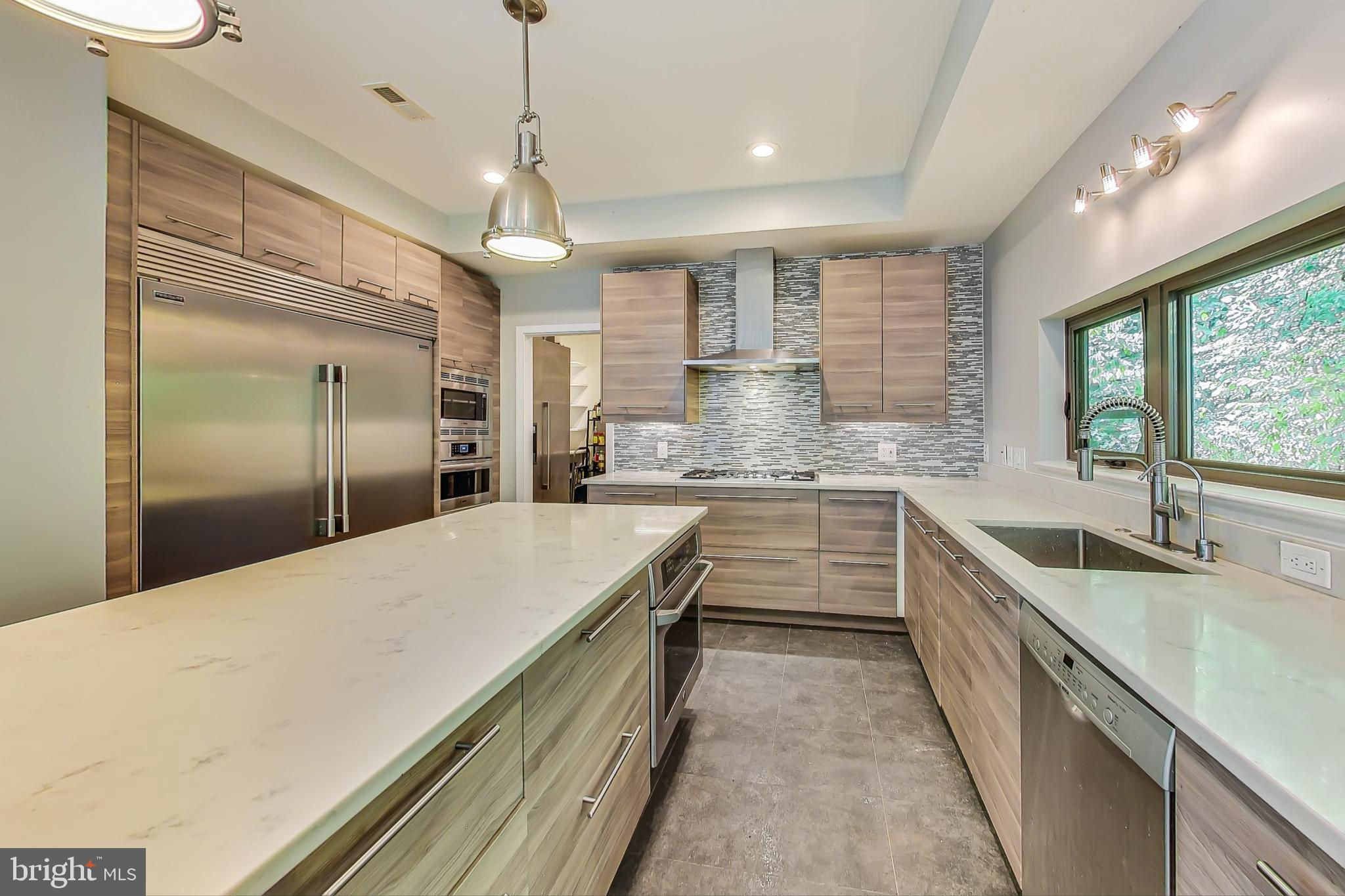 This remarkable residence boasts over 7,200 square feet, including nearly 5,000 square feet of beautifully finished living space, providing ample room for family and guests. The beautifully landscaped front yard features a charming pathway leading to a wide staircase, inviting you into this stunning home. Upon entering, you are greeted by an impressive foyer with two-story windows that flood the space with natural light, creating a bright and airy ambiance. The open design invites you to look down into the lower level, enhancing the feeling of spaciousness. A sleek metal railing beautifully complements the architectural lines, while a stunning fireplace serves as a focal point, adding warmth and elegance to the entryway. Flowing seamlessly from the foyer, the main level features high ceilings and expansive living areas. The gorgeous living space overlooks a striking fireplace, creating an inviting atmosphere for relaxation and entertainment. The immaculate kitchen is a chef’s paradise, featuring a spacious island, high-end appliances, dual wall ovens, and a colossal column fridge/freezer, along with a generously sized walk-in pantry. Adjacent to the kitchen, the family room is bathed in natural light, offering three walls of windows, a cozy gas fireplace, and direct access to the expansive deck—perfect for entertaining or unwinding. The main level also includes a convenient bedroom with an en-suite bath and walk-in closet, along with two additional sizable bedrooms and a stylish full bathroom featuring dual sinks, a separate shower, and a luxurious tub. As you ascend to the upper level, a spacious sitting area welcomes you, complete with a door leading to a private balcony—ideal for savoring your morning coffee. The luxurious master suite features a generous walk-in closet and a private bathroom with a soaking tub, plus access to another large private balcony. Two additional well-appointed bedrooms, each with walk-in closets and custom shelving, share an updated hall bathroom. The lower level offers a fun and inviting rec room with soaring 2-story ceilings and a stunning wood-burning fireplace, perfect for cozy evenings. This level also includes a full bathroom, a laundry room, and a storage room, along with access to the 2-car garage. With over 1,000 sq. ft. of high-ceilinged storage space, the possibilities for finishing or additional use are endless. The property also features a fenced side vegetable garden, perfect for gardening enthusiasts or those looking to enjoy fresh produce right from home. Located in the highly sought-after Whitman school district, this home offers easy access to River Road, 495, and a variety of restaurants and shopping options. This residence perfectly balances contemporary style and comfort, making it an ideal retreat for any family! Don’t miss your chance to call this exquisite property yours!