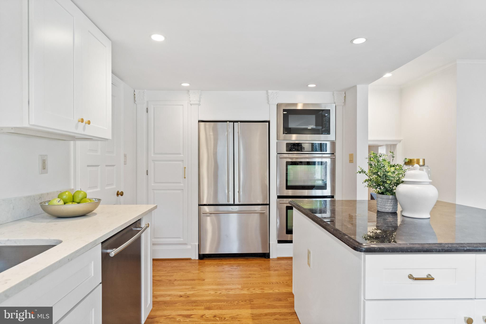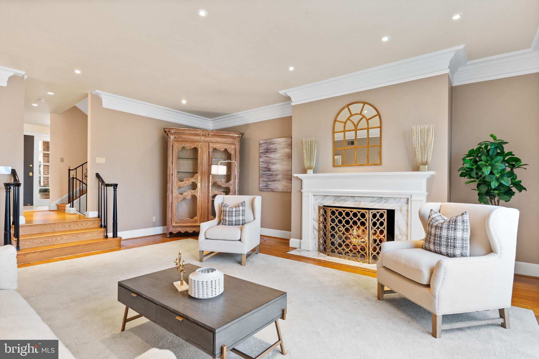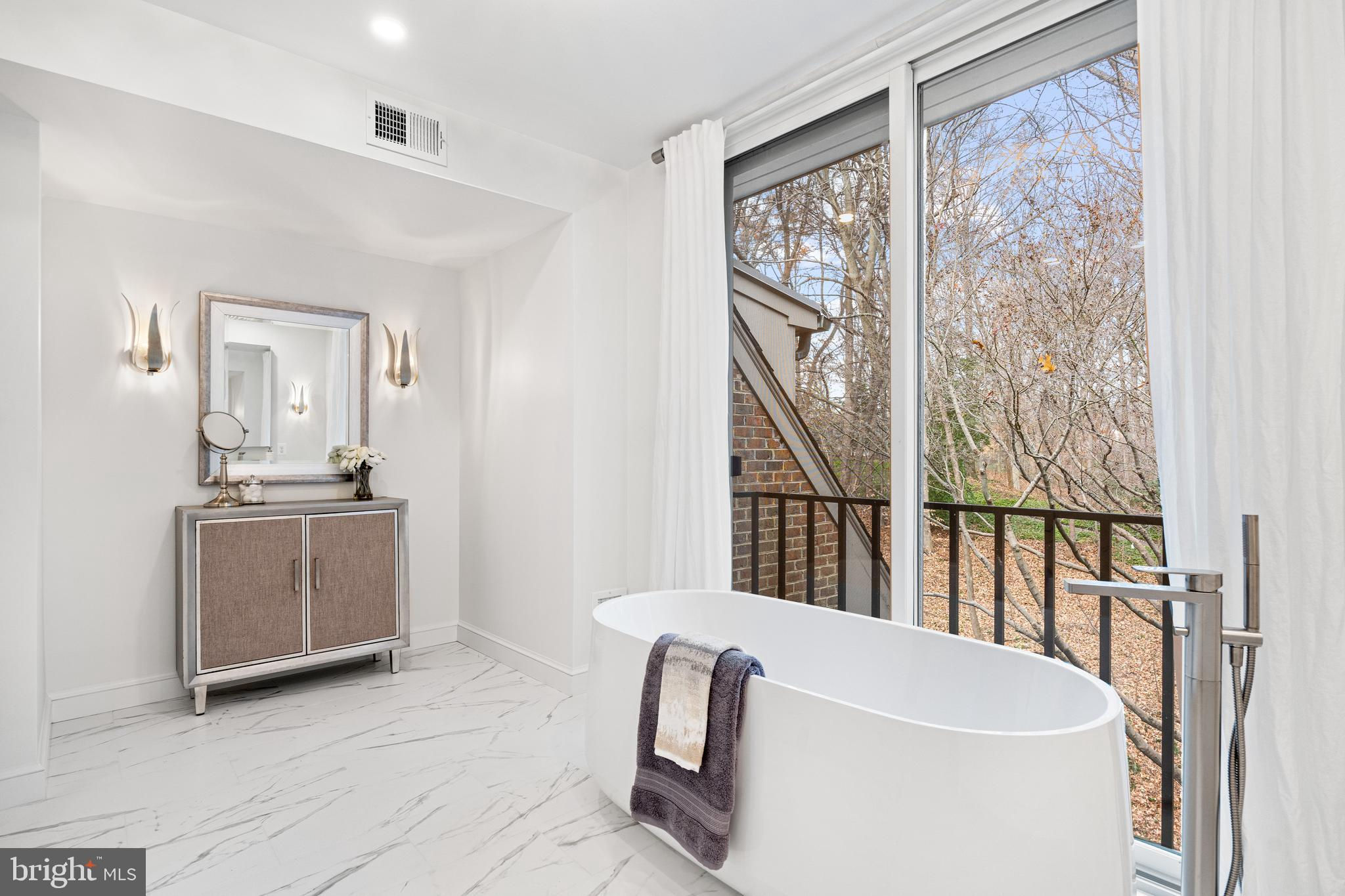 MAJOR PRICE IMPROVEMENT! Just completed - new kitchen and baths throughout! Positioned within an exclusive enclave of just eight homes within Merrywood on the Potomac, this spacious townhome residence provides both luxurious amenities and a location which is unmatched just minutes to downtown Washington. A private courtyard introduces the main entrance which yields to a gracious entry hall. Just beyond, a dramatic living room with soaring ceilings centers on a fireplace and serene views overlooking the rear garden and the protected natural landscape adjoining the famed Merrywood estate. A large dining room easily accommodates 12-14 guests, and the adjoining kitchen provides space for a breakfast area with direct access to the front courtyard garden. Upstairs, the spacious primary suite enjoys the same unobstructed views to the natural landscape. Multiple closets, a fireplace, and a walk-in dressing room adjoin the glamorous primary bath which was fully renovated to the highest standards. Two additional bedrooms on this level feature renovated en-suite baths. Upstairs, a spacious suite with high ceilings, built-in library shelves, and a full, renovated bath complete the upper floors. The lower level yields more surprises with a sun-filled recreation room which opens to the rear garden and expansive stone terrace. Built-in wine cabinets provide climate-controlled storage for 240 bottles. A fifth bedroom, full renovated bath, large laundry room, Furnace/Storage room with walkout stair to the kitchen garden complete this level. The floor plan also provides space future elevator service to all levels if so desired. A separate, two-car garage includes a spacious 600 SF loft with window, which can easily be finished to create a home office, art studio, or exercise room. Rarely does a townhouse residence of this scale and location become available. With a rich heritage tracing back to the iconic Merrywood Estate, the sophisticated residence presents the ideal opportunity for turnkey living just minutes from the Nation’s Capital.