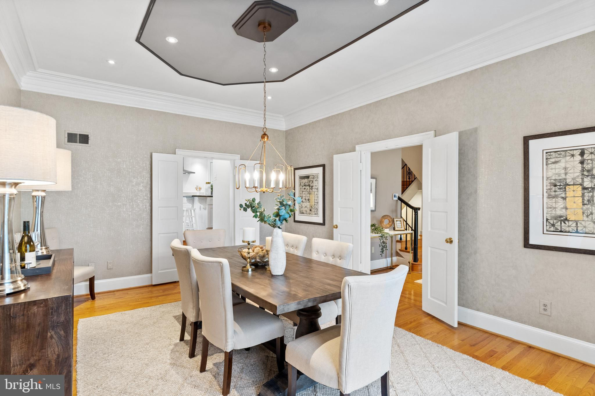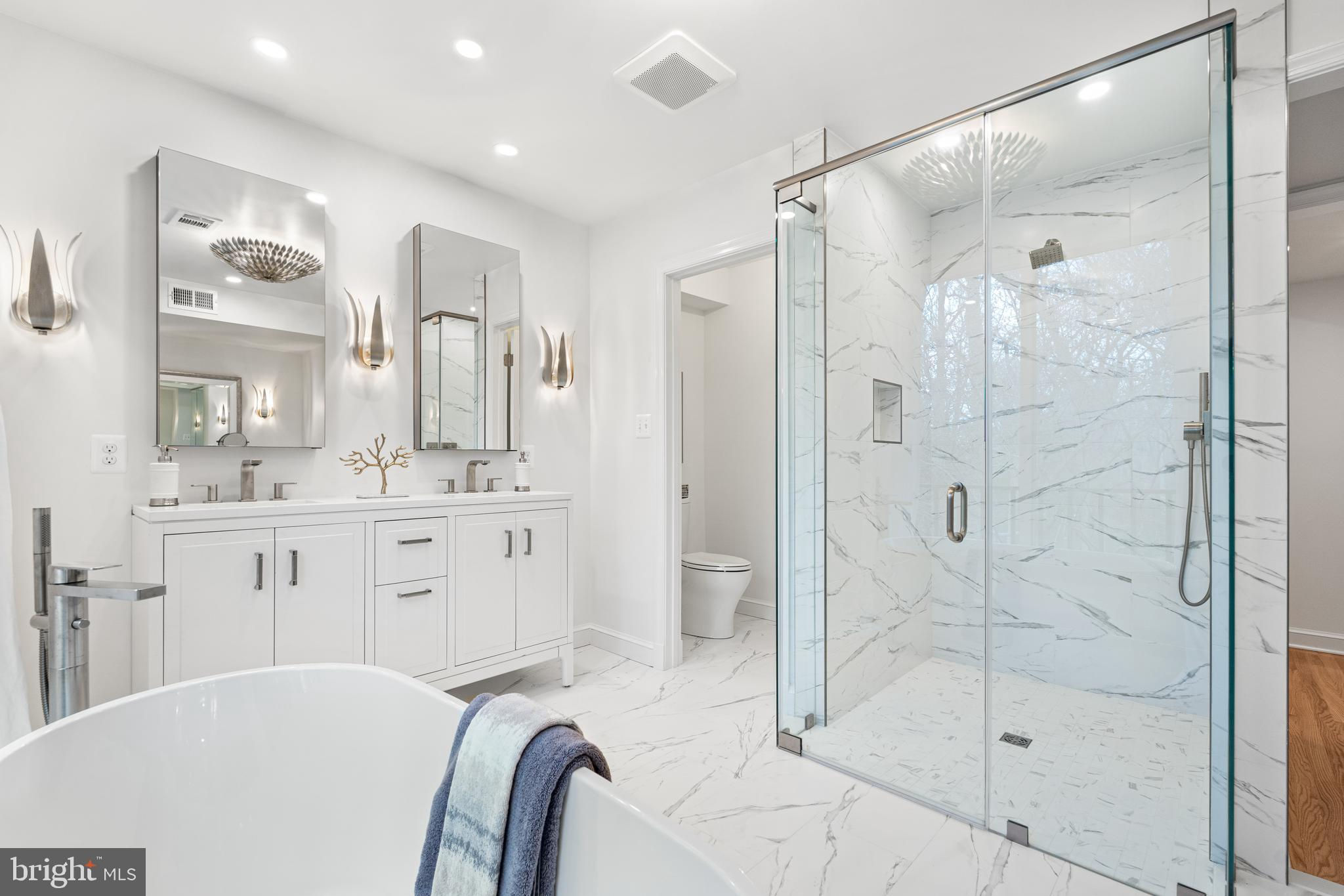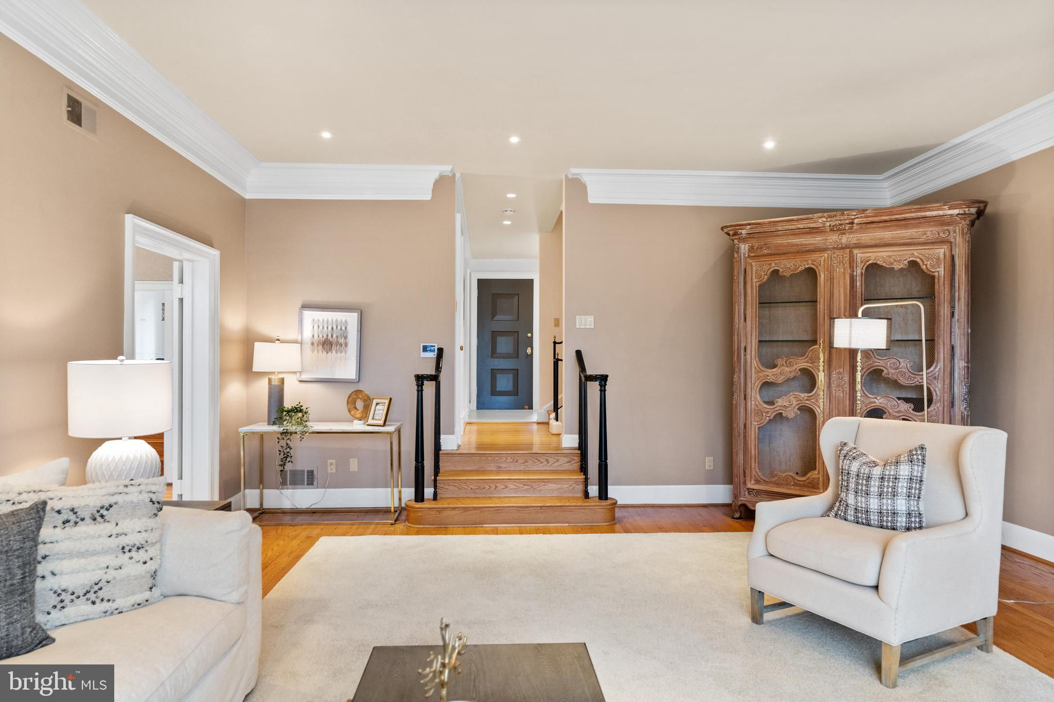 MAJOR PRICE IMPROVEMENT! Just completed - new kitchen and baths throughout! Positioned within an exclusive enclave of just eight homes within Merrywood on the Potomac, this spacious townhome residence provides both luxurious amenities and a location which is unmatched just minutes to downtown Washington. A private courtyard introduces the main entrance which yields to a gracious entry hall. Just beyond, a dramatic living room with soaring ceilings centers on a fireplace and serene views overlooking the rear garden and the protected natural landscape adjoining the famed Merrywood estate. A large dining room easily accommodates 12-14 guests, and the adjoining kitchen provides space for a breakfast area with direct access to the front courtyard garden. Upstairs, the spacious primary suite enjoys the same unobstructed views to the natural landscape. Multiple closets, a fireplace, and a walk-in dressing room adjoin the glamorous primary bath which was fully renovated to the highest standards. Two additional bedrooms on this level feature renovated en-suite baths. Upstairs, a spacious suite with high ceilings, built-in library shelves, and a full, renovated bath complete the upper floors. The lower level yields more surprises with a sun-filled recreation room which opens to the rear garden and expansive stone terrace. Built-in wine cabinets provide climate-controlled storage for 240 bottles. A fifth bedroom, full renovated bath, large laundry room, Furnace/Storage room with walkout stair to the kitchen garden complete this level. The floor plan also provides space future elevator service to all levels if so desired. A separate, two-car garage includes a spacious 600 SF loft with window, which can easily be finished to create a home office, art studio, or exercise room. Rarely does a townhouse residence of this scale and location become available. With a rich heritage tracing back to the iconic Merrywood Estate, the sophisticated residence presents the ideal opportunity for turnkey living just minutes from the Nation’s Capital.