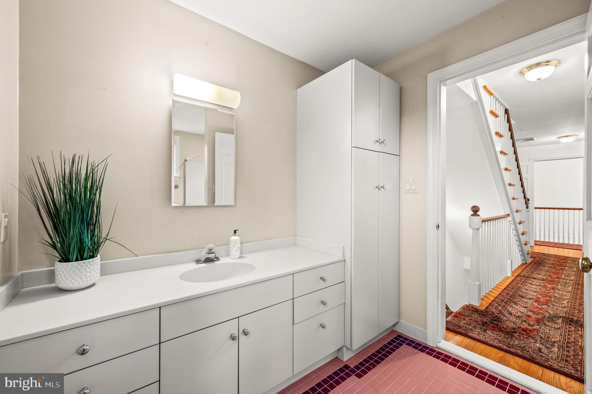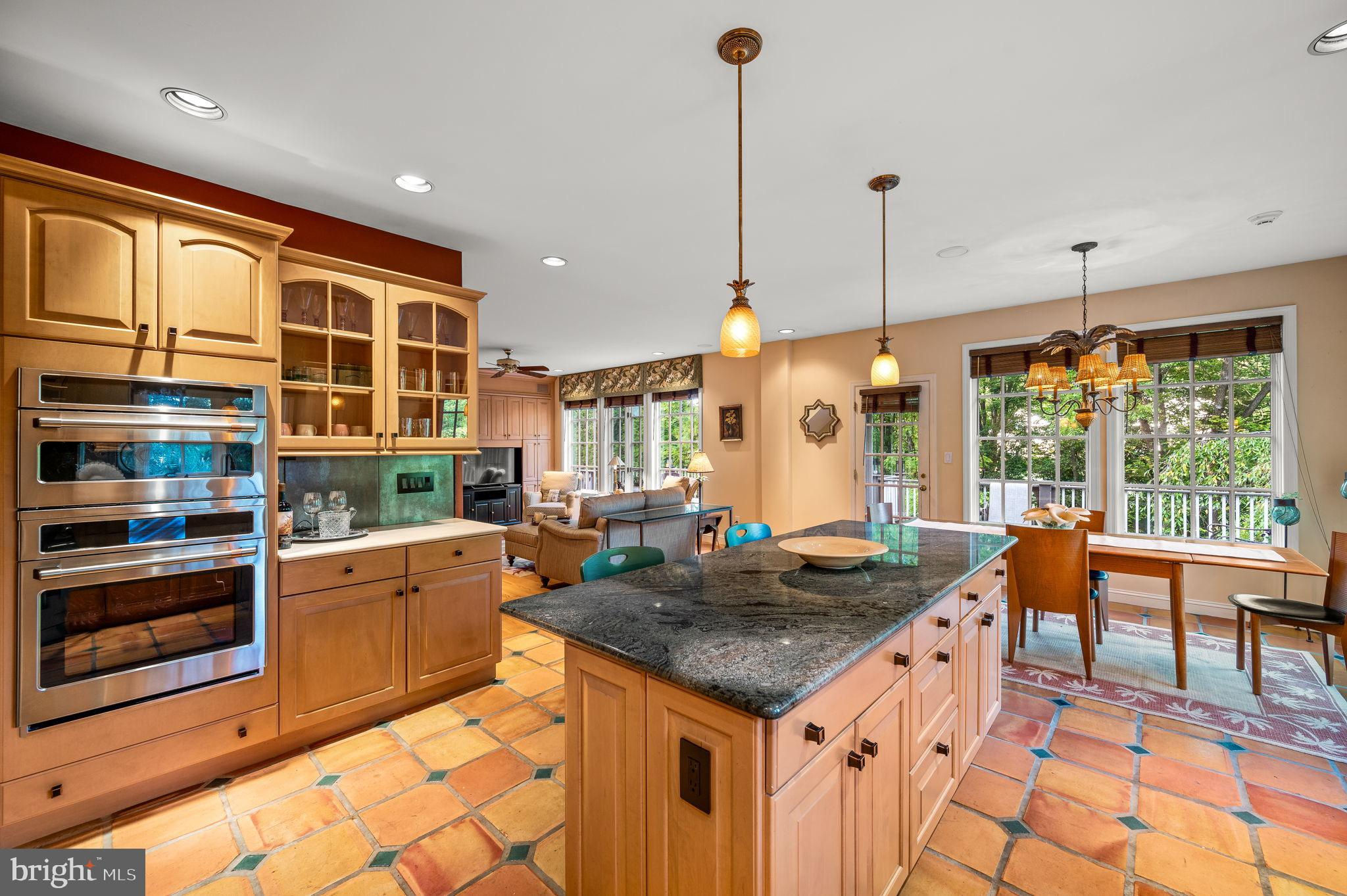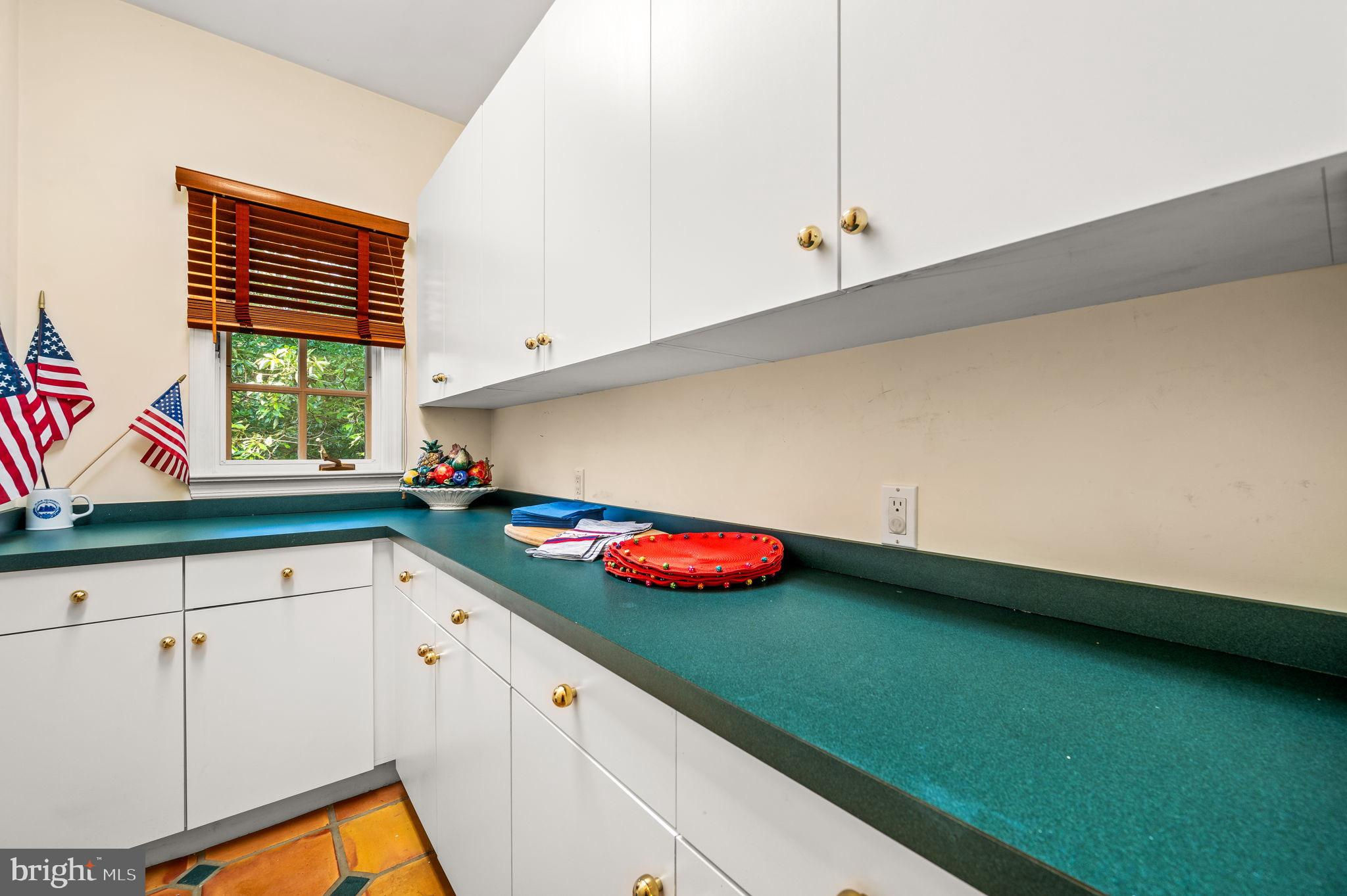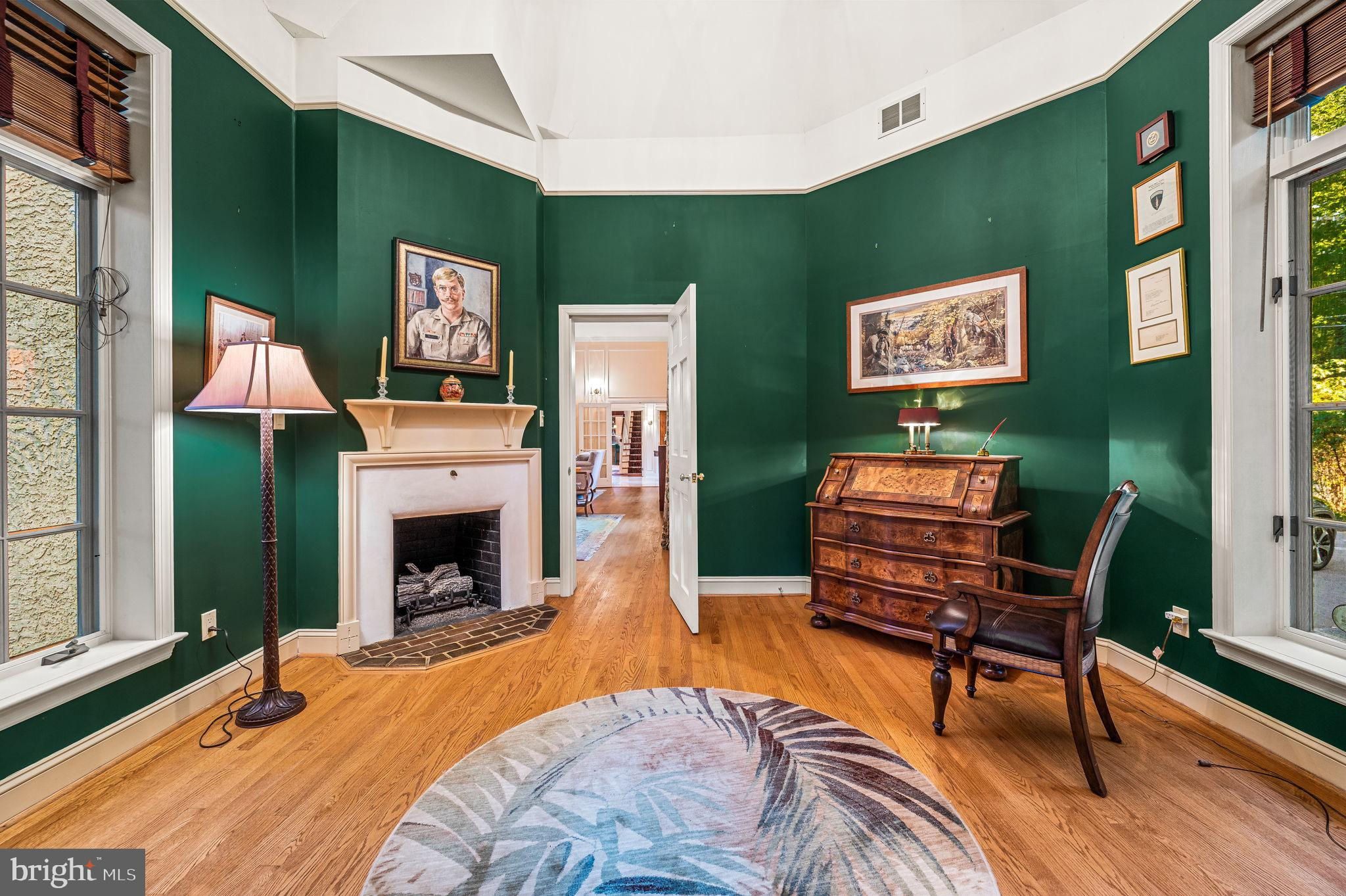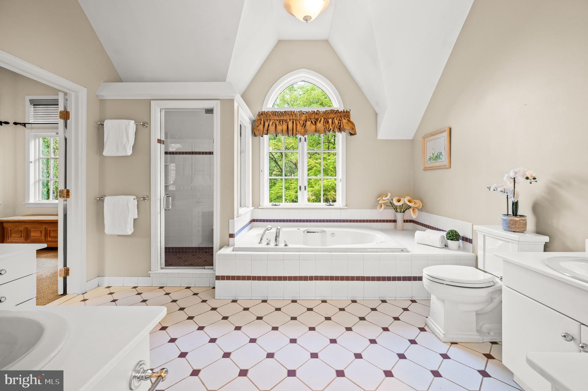 Impressive Tudor estate located on the quiet little segment of Old Gulph Road in a prestigious neighborhood on a picturesque 1.1-acre lot overlooking Mill Creek in Northside Bryn Mawr. Designed by Peter Batchelor and built by E. Allen Reeves in 1993, this architectural gem earned the Merit Shop Award of Excellence for superior craftsmanship and design. Arriving via the inviting circular driveway, you are greeted by the elegant front facade with stone and brick details. Enter through the grand wood front door,flanked by side panels and a transom, into a majestic center hall featuring marble floors, picture frame and crown molding, brass sconces, and a sweeping staircase with a large picture window and impressive chandelier. The grand center hall leads to the main areas of the home through double French doors. The spacious living room offers two large seating areas and a bay window overlooking the beautifully landscaped rear grounds—ideal for a piano. It includes an elegant crystal ceiling fixture, hardwood floors, crown and picture frame molding, and an exquisite gas fireplace with a marble surround and detailed mantel. A single French door leads to a cozy turret-shaped study with built-in bookcases, cabinetry, and a corner gas fireplace. On the opposite side of the center hall is the formal dining room, featuring a triple bay window, crown molding, chair rail, hardwood floors, and a butler's swing door leading to the kitchen. The stunning kitchen boasts a large center island with granite countertops, custom maple cabinetry, a tile backsplash, a bronze nickel sink and faucet, and striking pendant lighting. Top-of-the-line appliances include a newer Cafe by GE smart wall oven with convection, a separate microwave, a Thermador gas range with six burners, a Sub-Zero refrigerator and freezer, and an instant hot water dispenser. The kitchen opens to a charming breakfast area with door to the expansive wraparound deck and a comfortable family room with hardwood floors, an enclosed iron gas fireplace, built-in bookcases, a flat-screen TV, and a magnificent built-in fish tank. A large rear coat closet, a separate pantry room with cabinetry, and a private powder room with marble flooring and a Kohler pedestal sink complete this area. The second floor features a sizable primary suite with an inviting sitting area, arched ceiling, and a circular stained glass window at the top of the staircase. The primary bedroom includes a cathedral ceiling, a gas fireplace with a traditional wood mantel and brass sconces, a ceiling fan, and triple bay windows. The attached primary bath offers cathedral ceilings, double vanities, a glass door shower with windows, a large jacuzzi tub, and access to a dressing area with two large customized walk-in closets. The second floor also includes two generously sized bedrooms with ample closet space and a spacious hall bath with a tub and shower, vanity, and built-in cabinetry. A staircase from the rear hall leads to the third floor, which features two cozy bedrooms and a hall bath with a tub and shower combination. The finished daylight walkout lower level offers additional living space with a large recreation room, a door to the outside patio and rear grounds, a separate au pair suite with a full bath and stall shower (which could also serve as a home office), and a large laundry room with built-in cabinetry and sink. This level also provides access to the three-car garage. This exquisite home is offered at an exceptional price and is just minutes from the Bryn Mawr train station and the town of Bryn Mawr, known for its shopping and restaurants.