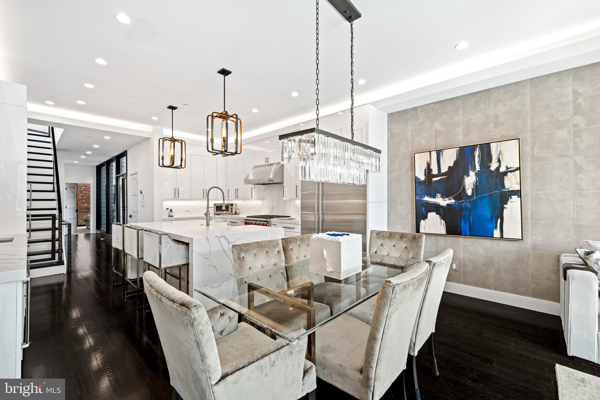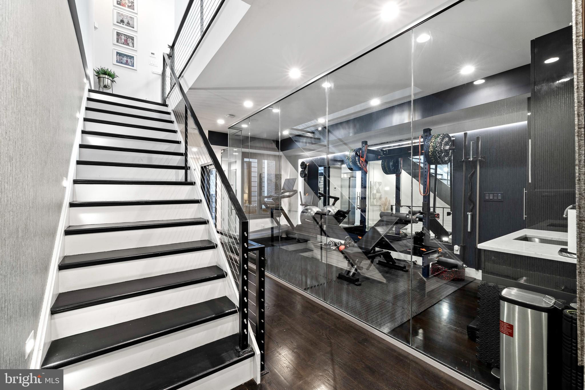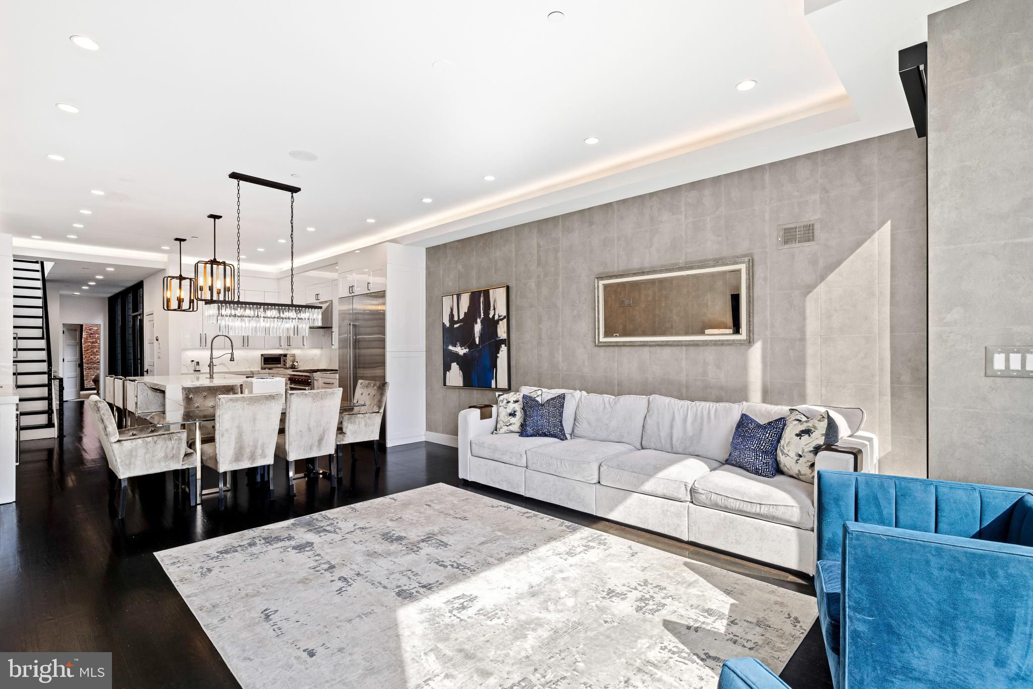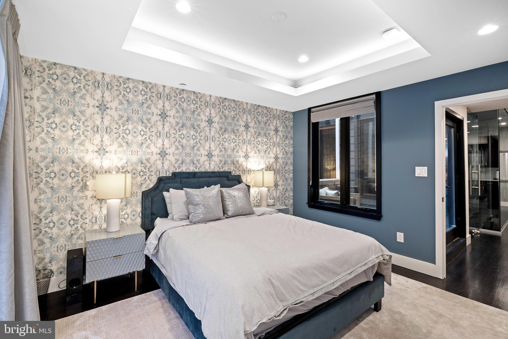 Indulge in the epitome of urban sophistication with this exquisite luxury townhome. Nestled in the heart of Northern Liberties, this meticulously crafted residence seamlessly blends modern elegance with unparalleled comfort. Every detail has been meticulously curated to elevate your lifestyle, with seamless indoor-outdoor flow and panoramic views, this townhome offers the ultimate retreat for those accustomed to the finest things in life. This stunning home has 4 years remaining on the tax abatement and offers 4-bedrooms, each with an en-suite bath and walk-in closest, a luxurious gourmet kitchen with a large kitchen island with waterfall quartz countertop, solids stone backsplash, Sub-Zero refrigerator & freezer, Wolf 6 burner stove, pantry with coffee bar, second sink & beverage fridge. A custom-designed home gym (easily convertible to a private office) includes a kitchenette for ultimate convenience. The 5-stop elevator ensures effortless access to every floor, while the heated 4-car garage complete with an EV charger and workstation caters to both luxury and functionality. A state-of-the-art Russound surround sound system with 12 speaker zones envelops the home in immersive audio, while the first-floor bedroom is pre-wired for a 5.1 surround sound theater experience and also includes a bespoke meditation area with backlit onyx stone and gold leaf ceiling. The floor-to-ceiling windows have custom electric Hunter Douglas blinds and provide an abundance of natural light to stream through accentuating the exquisite white oak flooring and illuminating the spacious interiors. Ascend to the rooftop deck with Trex decking, cable ready and speaker system to savor breathtaking views of the city skyline, the perfect backdrop for entertaining or unwinding in style. Your peace of mind is ensured with comprehensive Xfinity security, hardwired interior/exterior cameras, and a Nest/Google Home-integrated network video recorder. This townhome is a sanctuary of modern luxury, designed for those who appreciate the finer things in life.