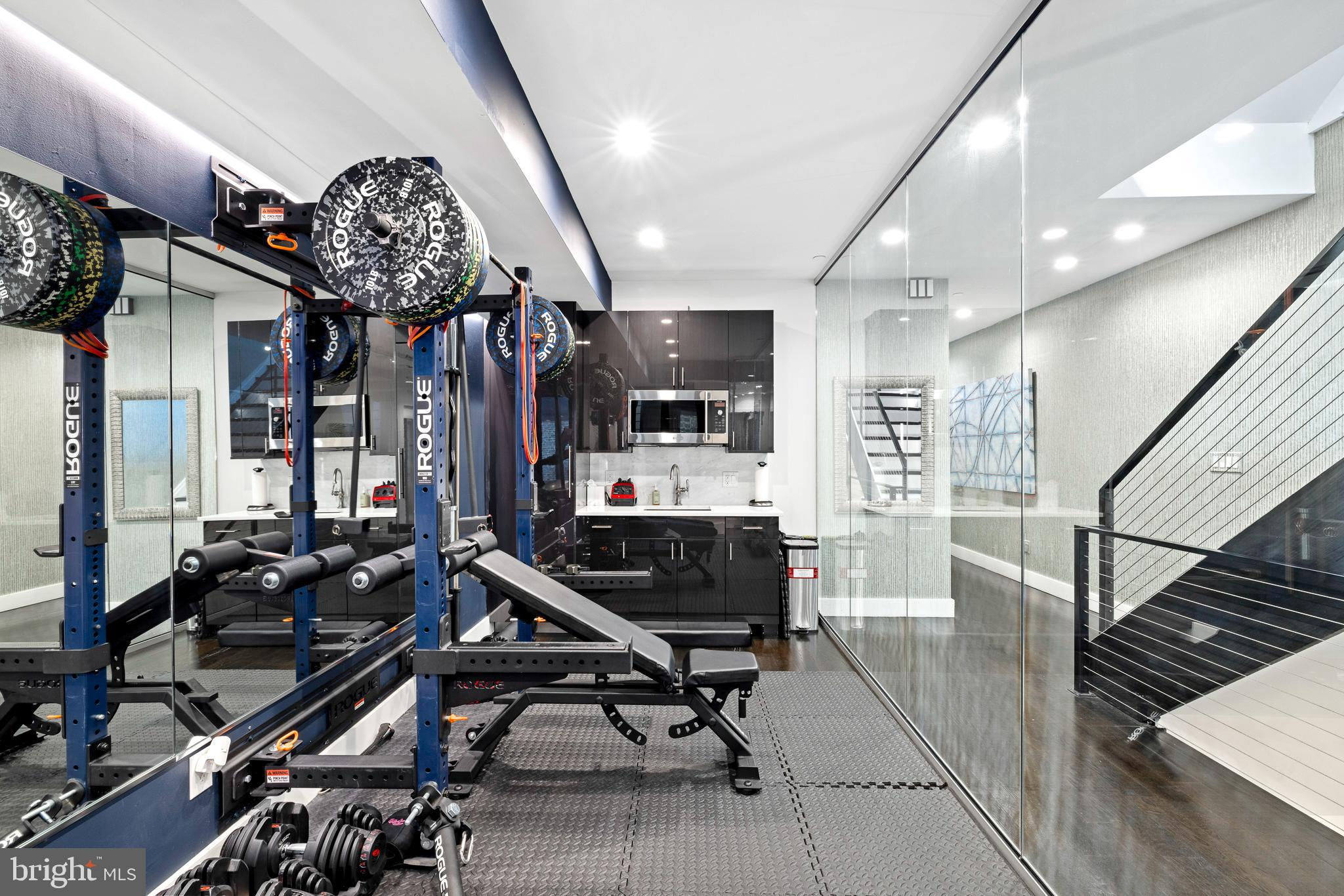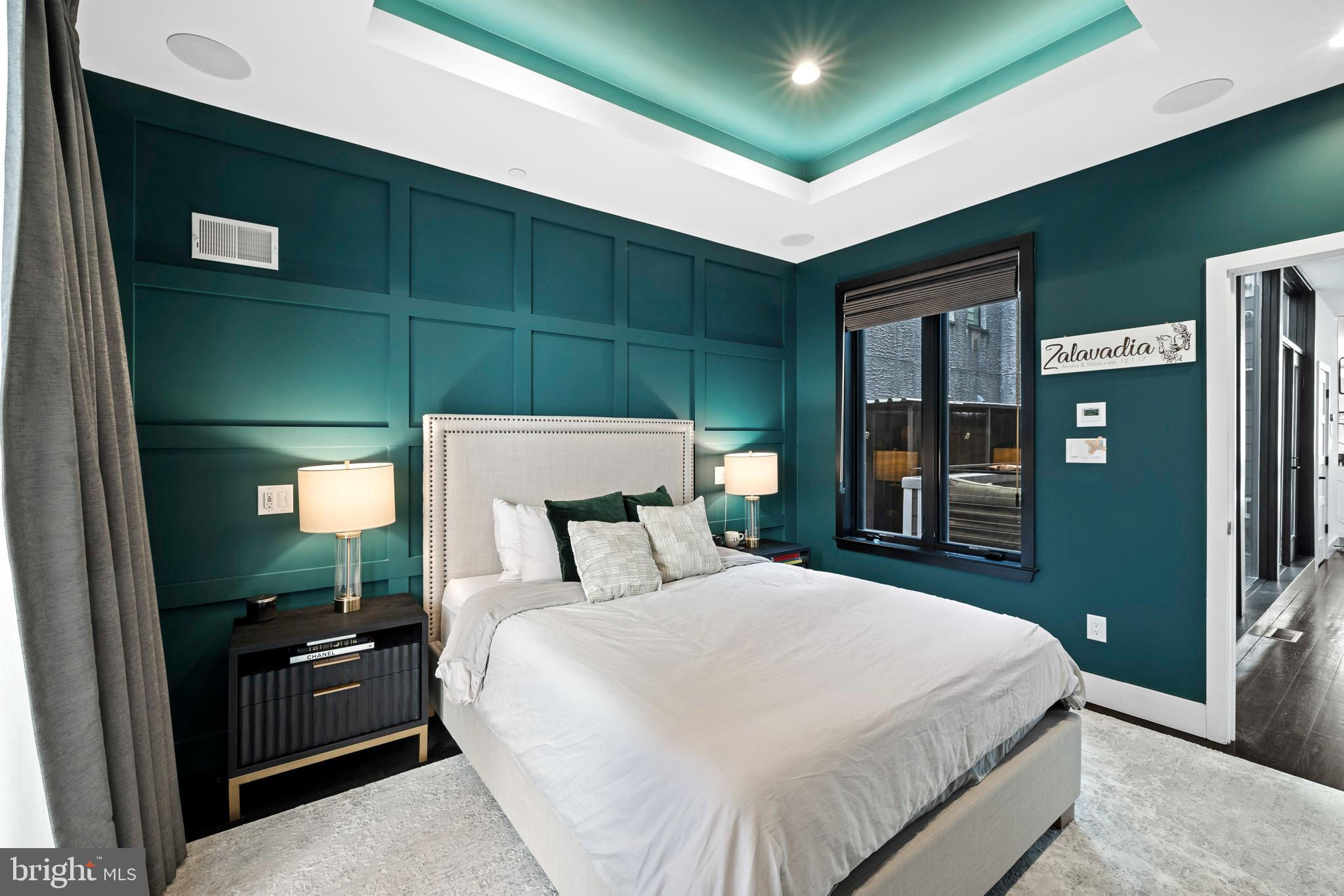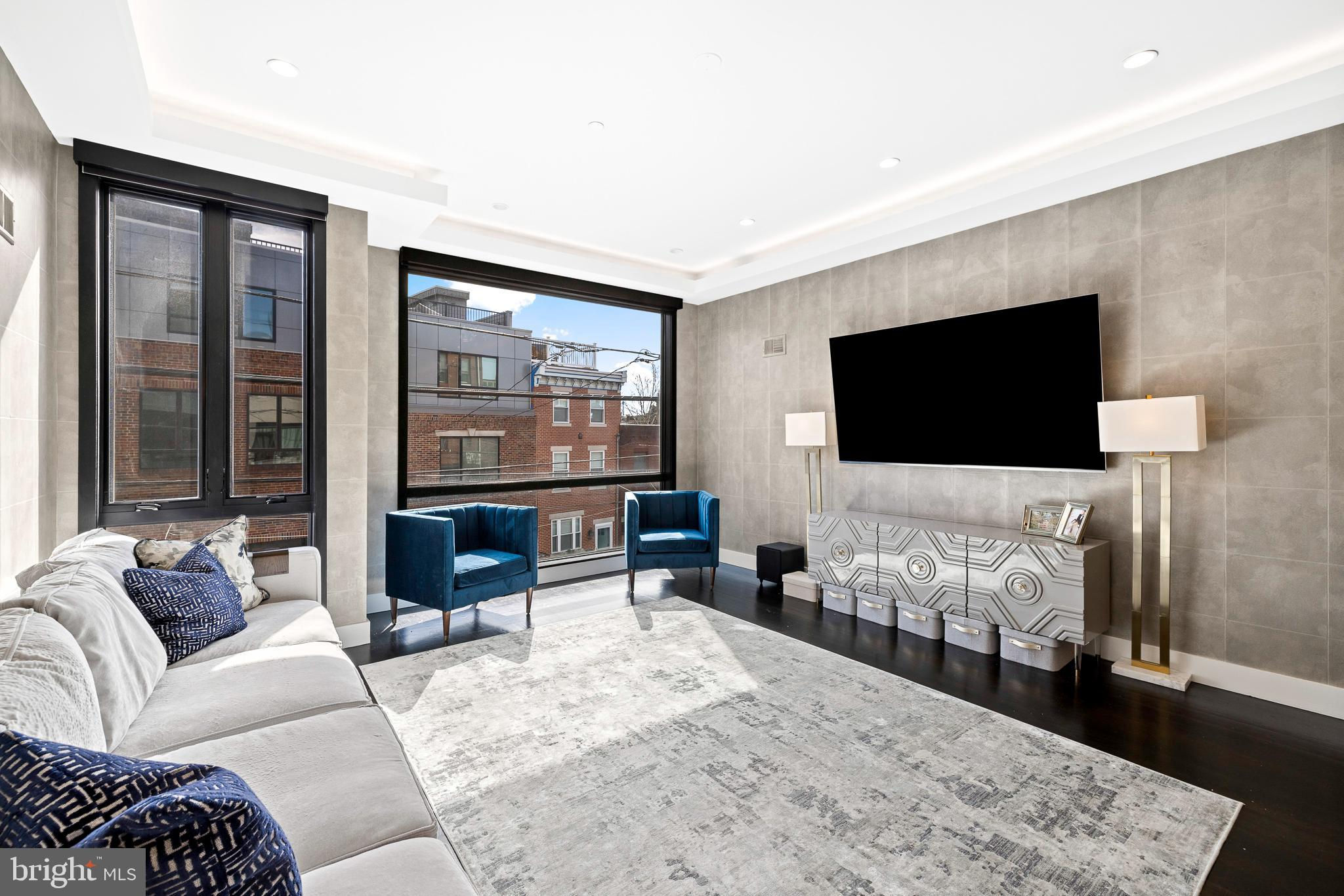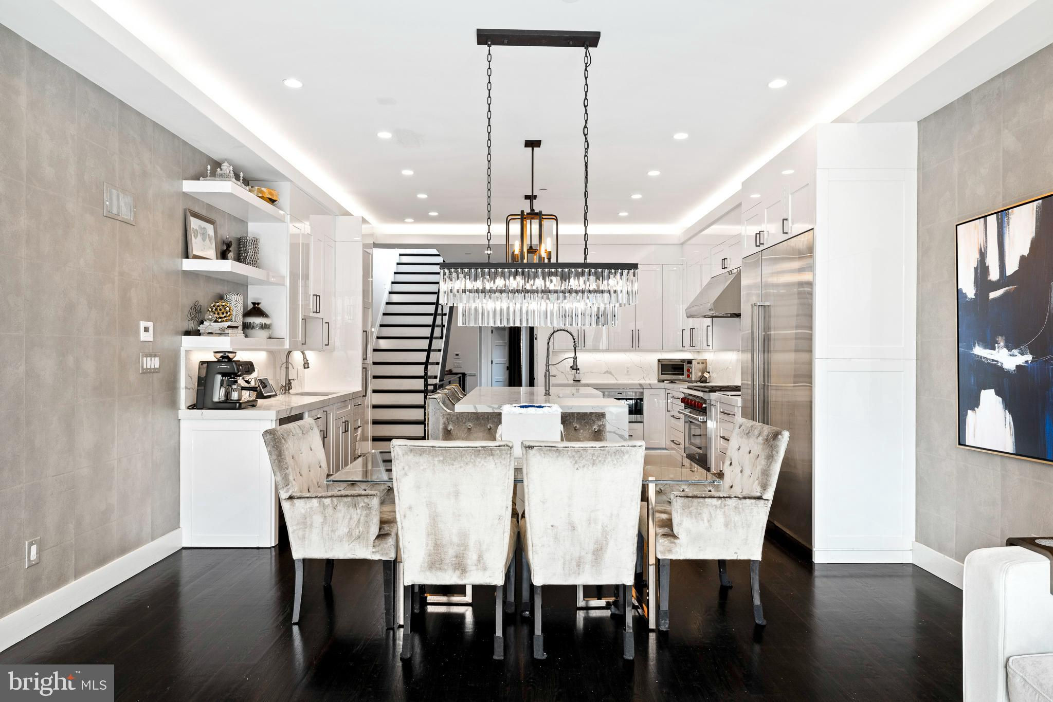 Indulge in the epitome of urban sophistication with this exquisite luxury townhome. Nestled in the heart of Northern Liberties, this meticulously crafted residence seamlessly blends modern elegance with unparalleled comfort. Every detail has been meticulously curated to elevate your lifestyle, with seamless indoor-outdoor flow and panoramic views, this townhome offers the ultimate retreat for those accustomed to the finest things in life. This stunning home has 4 years remaining on the tax abatement and offers 4-bedrooms, each with an en-suite bath and walk-in closest, a luxurious gourmet kitchen with a large kitchen island with waterfall quartz countertop, solids stone backsplash, Sub-Zero refrigerator & freezer, Wolf 6 burner stove, pantry with coffee bar, second sink & beverage fridge. A custom-designed home gym (easily convertible to a private office) includes a kitchenette for ultimate convenience. The 5-stop elevator ensures effortless access to every floor, while the heated 4-car garage complete with an EV charger and workstation caters to both luxury and functionality. A state-of-the-art Russound surround sound system with 12 speaker zones envelops the home in immersive audio, while the first-floor bedroom is pre-wired for a 5.1 surround sound theater experience and also includes a bespoke meditation area with backlit onyx stone and gold leaf ceiling. The floor-to-ceiling windows have custom electric Hunter Douglas blinds and provide an abundance of natural light to stream through accentuating the exquisite white oak flooring and illuminating the spacious interiors. Ascend to the rooftop deck with Trex decking, cable ready and speaker system to savor breathtaking views of the city skyline, the perfect backdrop for entertaining or unwinding in style. Your peace of mind is ensured with comprehensive Xfinity security, hardwired interior/exterior cameras, and a Nest/Google Home-integrated network video recorder. This townhome is a sanctuary of modern luxury, designed for those who appreciate the finer things in life.