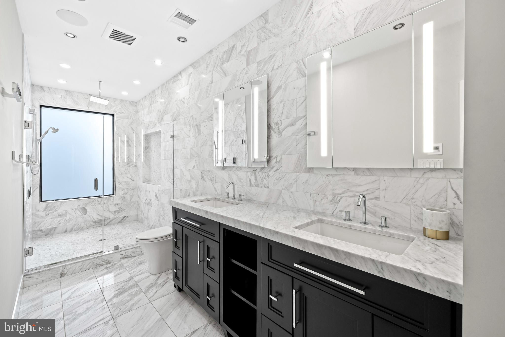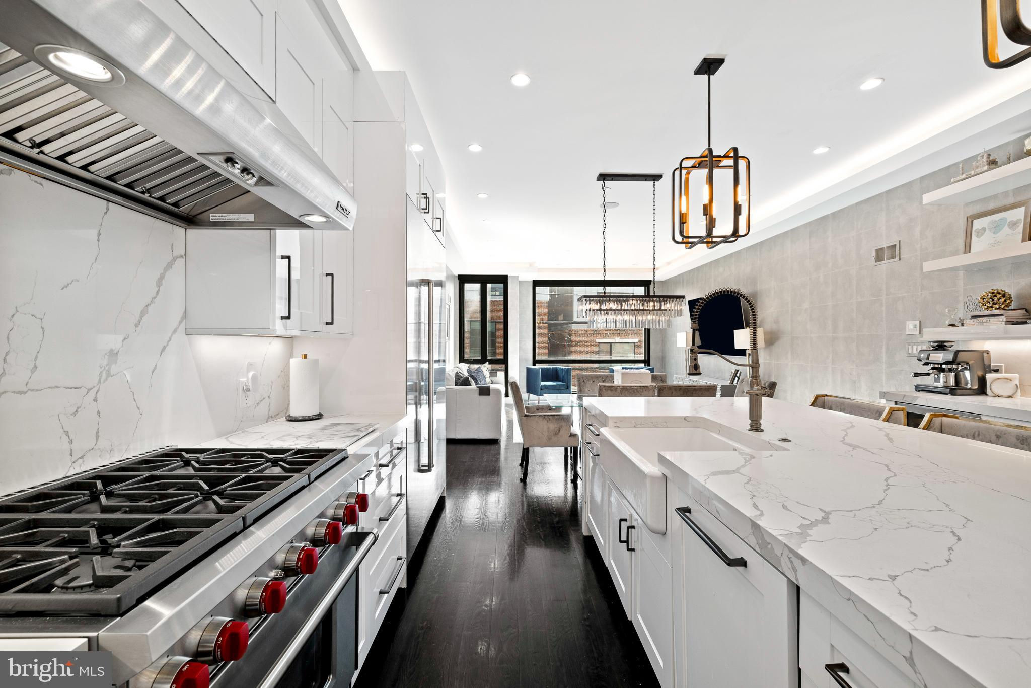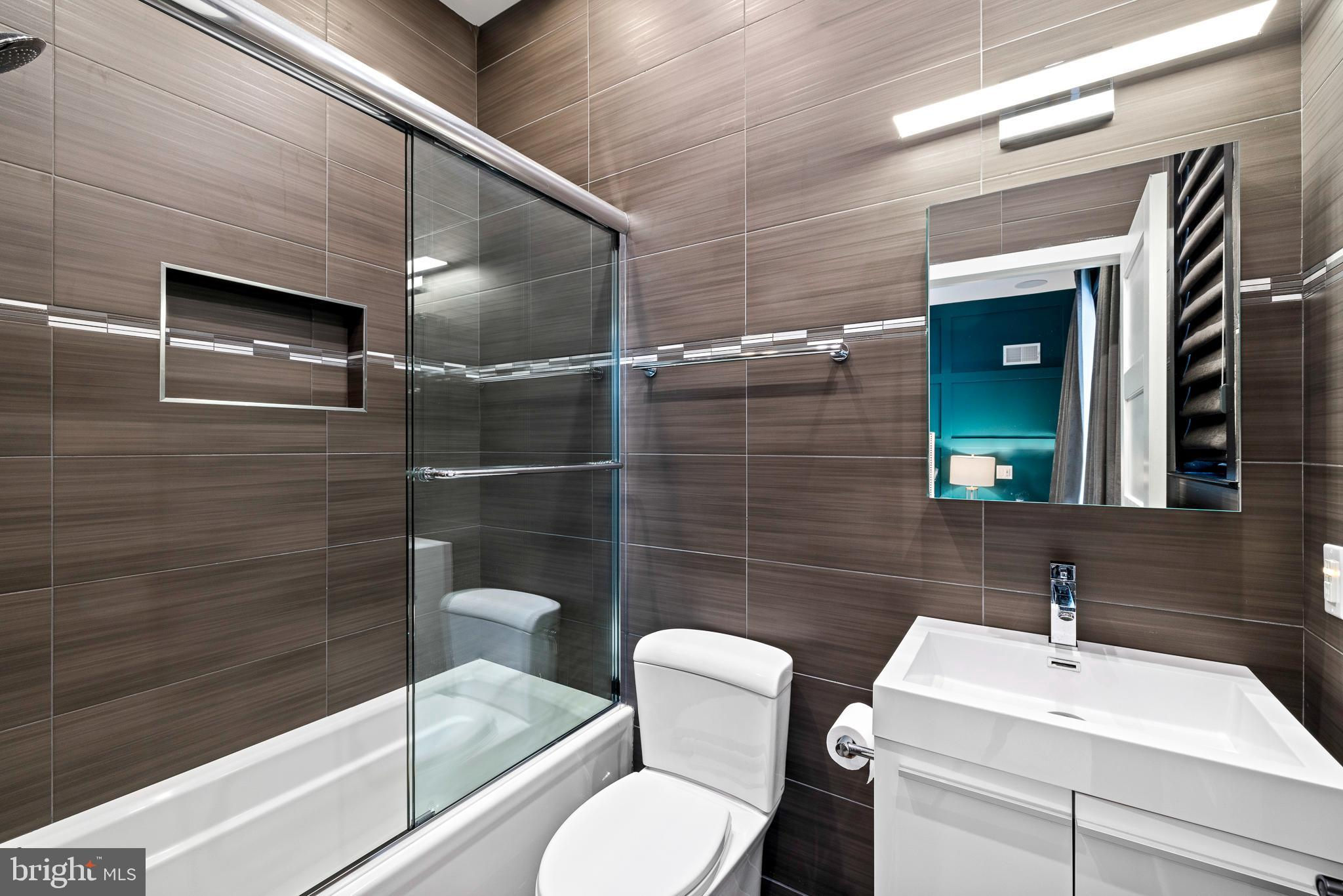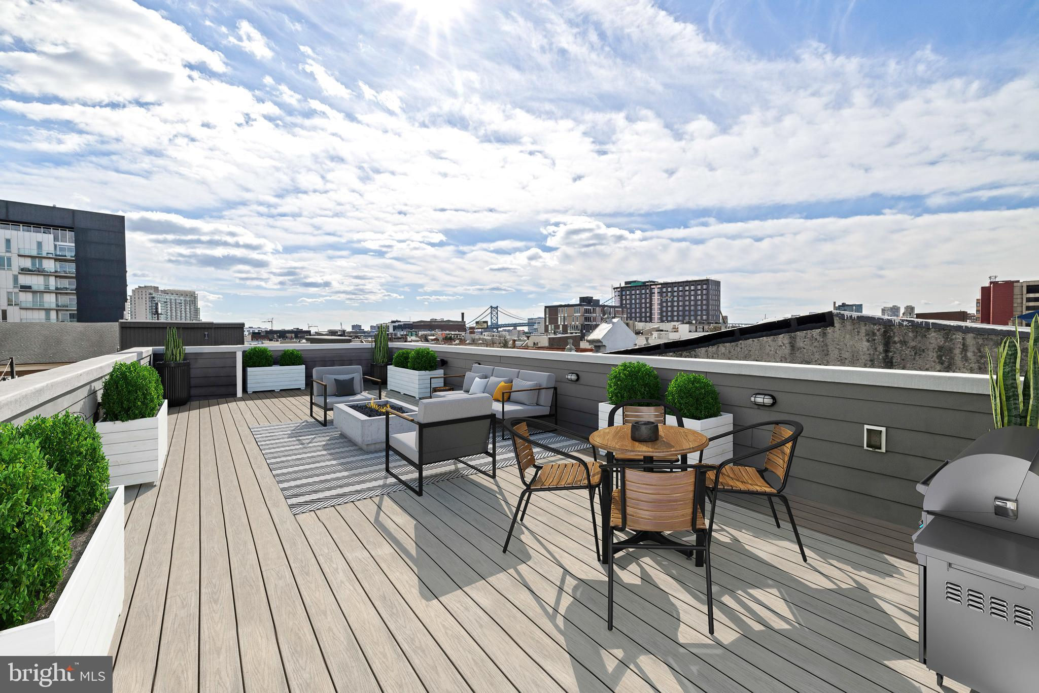Indulge in the epitome of urban sophistication with this exquisite luxury townhome. Nestled in the heart of Northern Liberties, this meticulously crafted residence seamlessly blends modern elegance with unparalleled comfort. Every detail has been meticulously curated to elevate your lifestyle, with seamless indoor-outdoor flow and panoramic views, this townhome offers the ultimate retreat for those accustomed to the finest things in life. This stunning home has 4 years remaining on the tax abatement and offers 4-bedrooms, each with an en-suite bath and walk-in closest, a luxurious gourmet kitchen with a large kitchen island with waterfall quartz countertop, solids stone backsplash, Sub-Zero refrigerator & freezer, Wolf 6 burner stove, pantry with coffee bar, second sink & beverage fridge. A custom-designed home gym (easily convertible to a private office) includes a kitchenette for ultimate convenience. The 5-stop elevator ensures effortless access to every floor, while the heated 4-car garage complete with an EV charger and workstation caters to both luxury and functionality. A state-of-the-art Russound surround sound system with 12 speaker zones envelops the home in immersive audio, while the first-floor bedroom is pre-wired for a 5.1 surround sound theater experience and also includes a bespoke meditation area with backlit onyx stone and gold leaf ceiling. The floor-to-ceiling windows have custom electric Hunter Douglas blinds and provide an abundance of natural light to stream through accentuating the exquisite white oak flooring and illuminating the spacious interiors. Ascend to the rooftop deck with Trex decking, cable ready and speaker system to savor breathtaking views of the city skyline, the perfect backdrop for entertaining or unwinding in style. Your peace of mind is ensured with comprehensive Xfinity security, hardwired interior/exterior cameras, and a Nest/Google Home-integrated network video recorder. This townhome is a sanctuary of modern luxury, designed for those who appreciate the finer things in life.