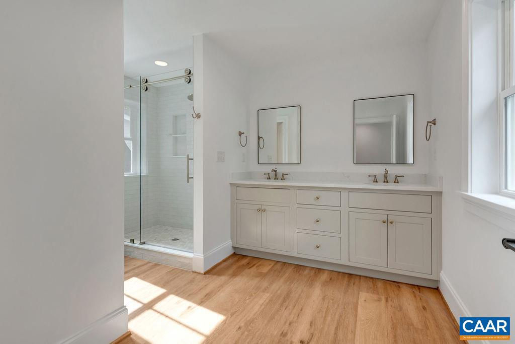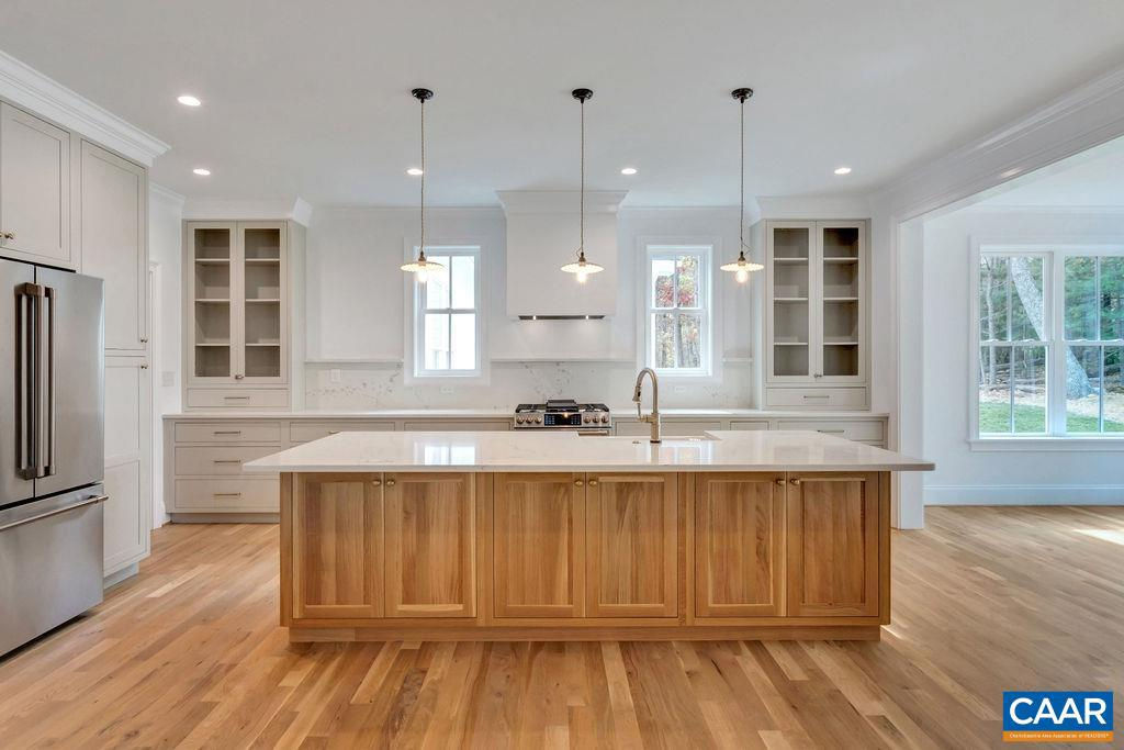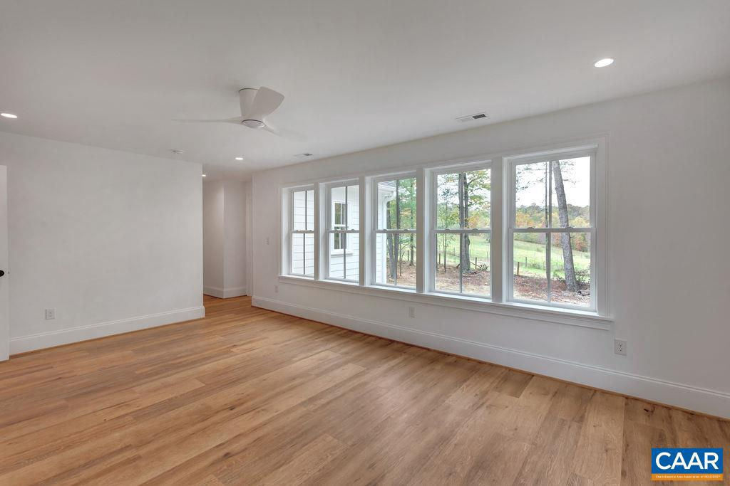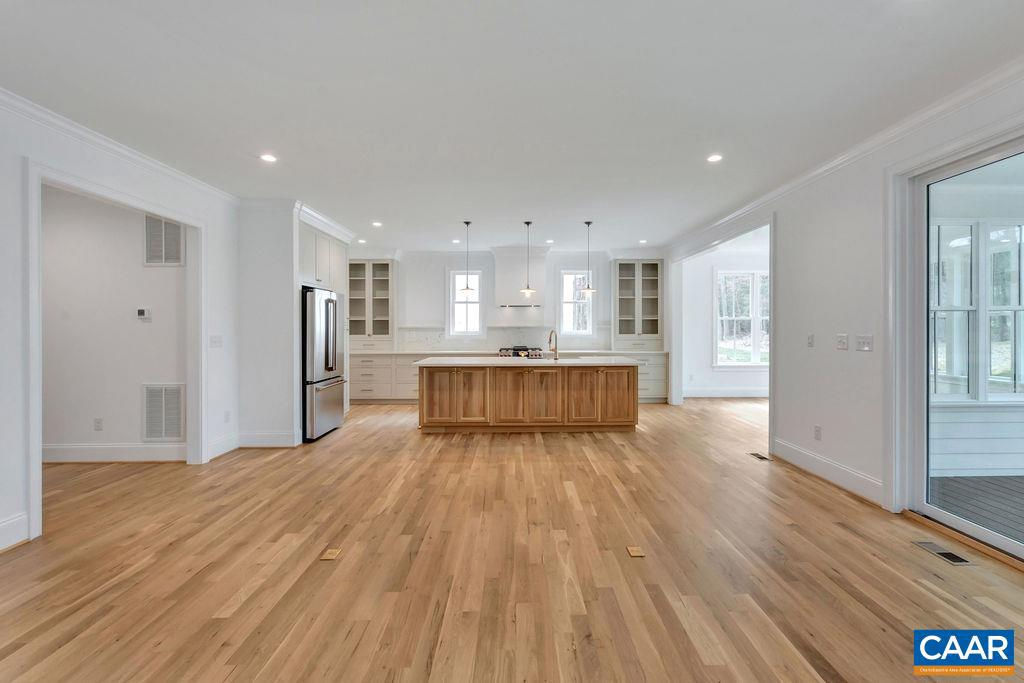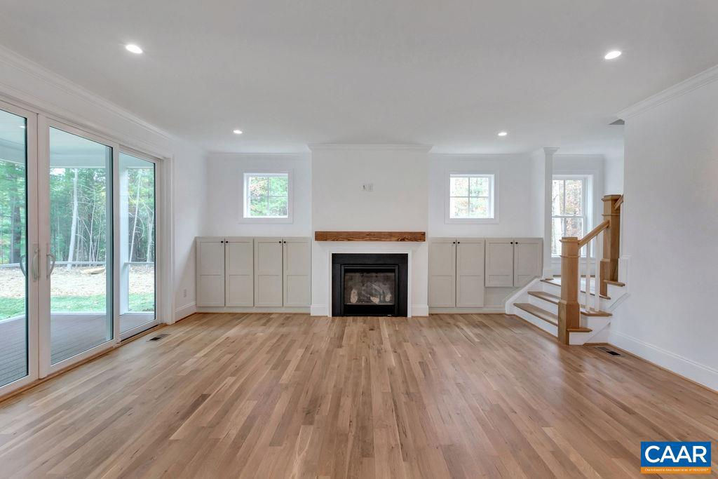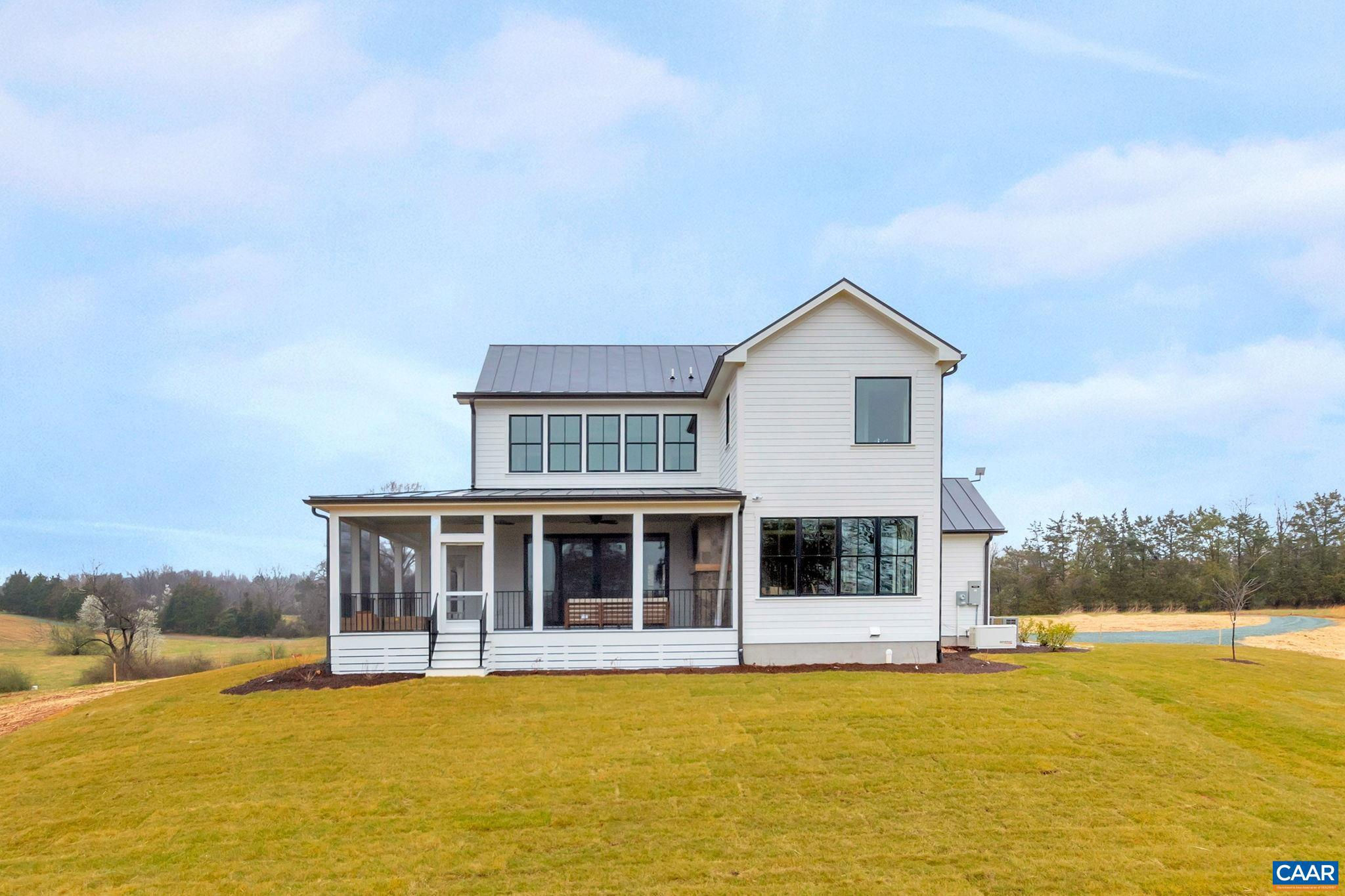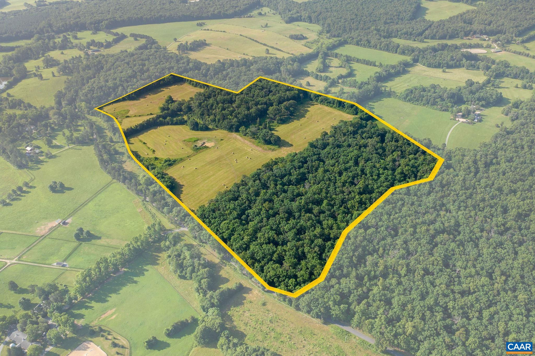A classic 4 BR Virginia farmhouse TO BE BUILT on 76.99 acres with pastoral views, gently rolling fields and privacy-enhancing hardwood forests ? surrounded by Southern Albemarle?s top equestrian farms & estates in conservation easement. Under 25 mins to UVA and downtown Cville. Located along a scenic, paved country road lined with mature hardwoods and classic black board fencing, the property is comprised of two parcels. The first is a 54-acre tract featuring approx. 34 acres of gently rolling open fields with a wooded core. The second is a 22-acre parcel of mature hardwood forest. This property's natural beauty and privacy offer the perfect setting for a family compound. With extensive road frontage, there's flexibility for multiple access points?ideal for a main residence, guest cottage, barn apt, or addl farm structures. The primary building site is gently elevated and tucked behind a grove of mature oak trees, offering the potential for a shaded lawn with sweeping panoramic views. A second site, accessible via graveled Glendower Rd, is a picturesque 9-acre cottage or barn location. Less than 10 mins to James River public boat launch. A wonderful country property that makes it easy to extend the weekend or work from home.,Granite Counter,Wood Cabinets,Fireplace in Living Room