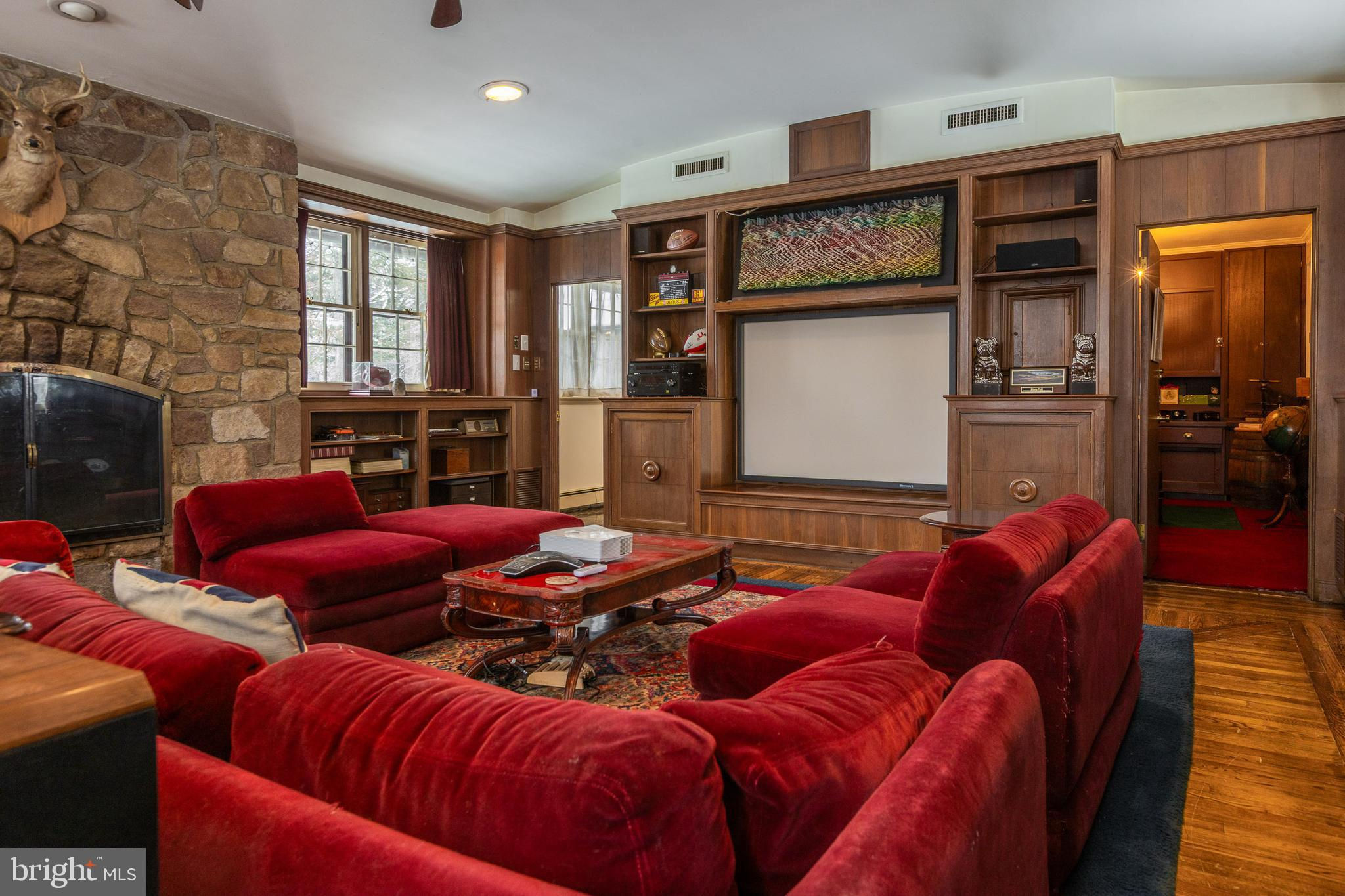 Experience the best of both worlds at Pheasant Run—a storybook Tudor Revival estate that pairs refined architecture with livable charm. Designed in 1921 by famed Philadelphia architect Horace Trumbauer, this 10,000+ sq ft compound was originally crafted as the working dairy barn for the Ronaele Estate. Transformed into a private residence in the 1950s, the estate now balances grandeur and comfort in equal measure. The main house showcases timeless craftsmanship—Mercer tile mosaics, vaulted beamed ceilings, and a grand ballroom anchored by a crystal chandelier—while offering today’s comforts, including a private spa suite, a separately accessed upper-level (Turret) apartment, and a “disco lounge” tucked beneath the hayloft. Across the drive, the original 2-bedroom manager’s cottage offers flexibility for guests, work, or creative pursuits—still echoing its historic roots, now updated for modern living. Surrounded by 2.48 acres of private grounds, Pheasant Run also features a heated pool, outdoor pavilion, gardens, and a 0.8-mile private looped drive—perfect for bike rides, dog walks, or evening strolls. Formal when you want it to be. Casual when life calls for it. Pheasant Run isn’t just architecturally significant—it’s soulful, flexible, and truly one-of-a-kind.