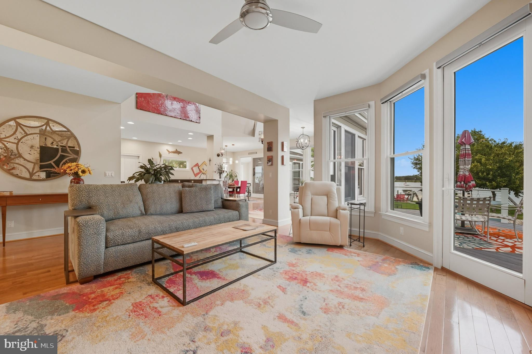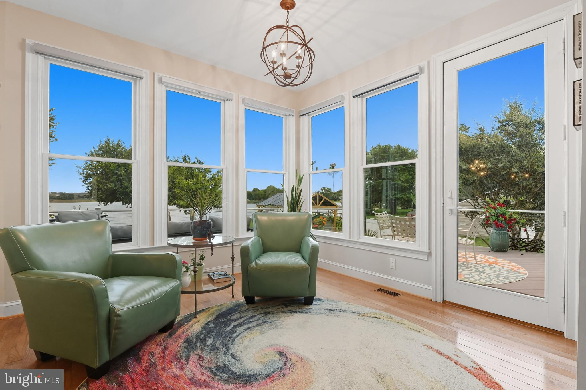 Beautiful contemporary with soaring ceilings, hardwood floors and wall of glass looking out to the waterfront pool and sweeping views of Broad Creek. Protected water, yet a quick trip to the Bay. Home includes the open floorplan everyone wants. New three season sunroom poolside is great for cracking crabs. First floor office can be used as a bedroom, with a full bath just around the corner. The main level flows out effortlessly to extensive decking overlooking the large pool and new gazebo. Pavers take you down to the waterfront firepit and out to a freshly decked dock that includes boat lift, two jet ski lifts and a nice seating area. Large primary bedroom has great water views and a scrumptious primary bath remodeled just this year. The Primary isn't just a bedroom; it's a suite of rooms that also includes an office; huge walk-in closet and waterfront balcony. The laundry is on the second level for convenience, and the other bedrooms are all generous in size. Bay City Community offers two waterfront parks, one with a boat ramp, picnic area and kayak rack. The other has a tot lot and open areas with magnificent views of the Bay and Bay Bridge. It's a great getaway, yet close to everything you need!