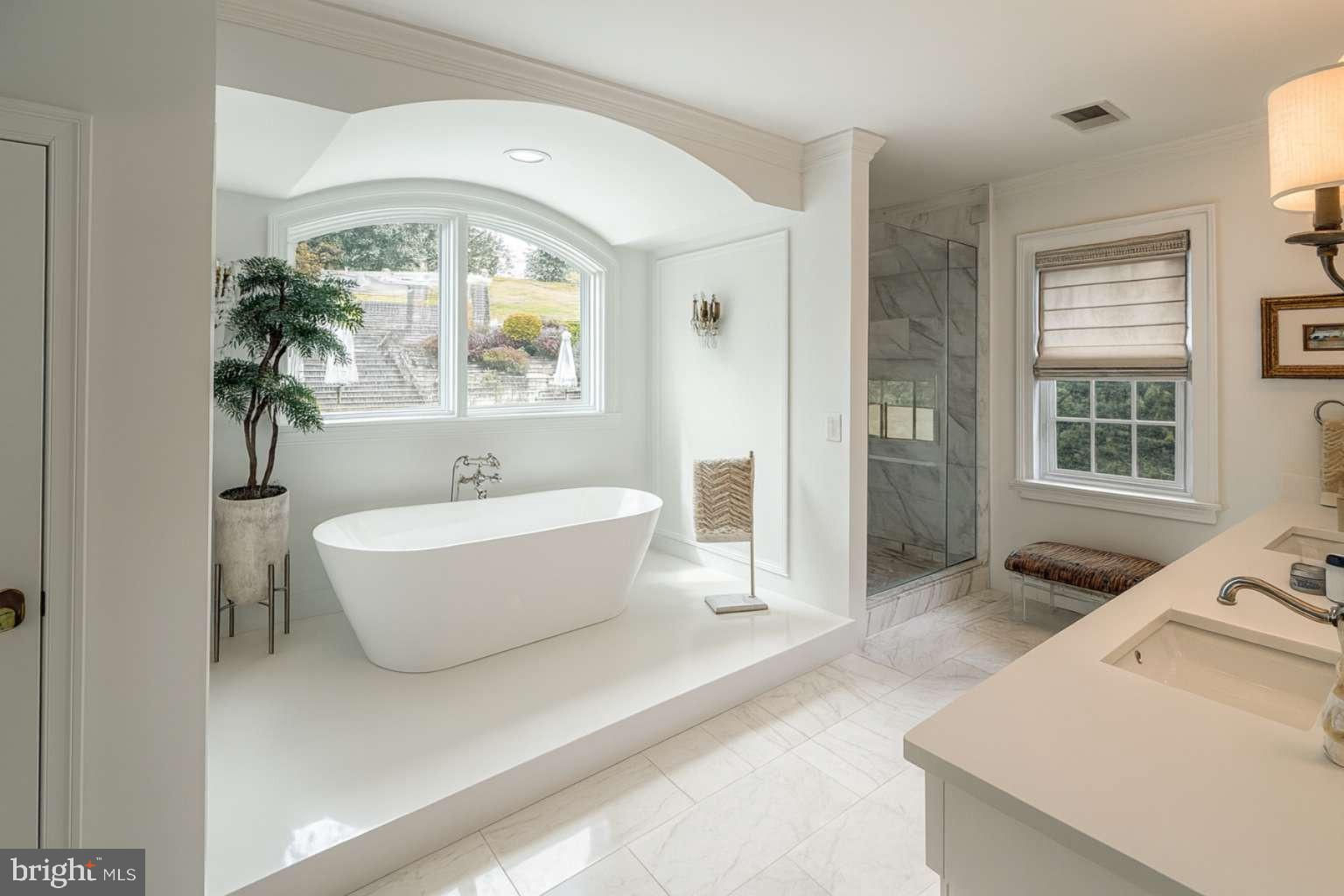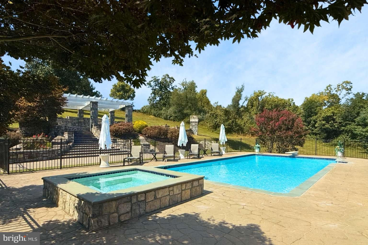 This extraordinary 5-bedroom, 6-bathroom estate sits on 14.44 acres across two parcels—5.0 acres on the front lot and 9.44 acres with the residence—just minutes from Winchester, Virginia. Designed for both everyday living and elegant entertaining, this home combines timeless style with modern luxury. Inside, hardwood floors and soaring ceilings enhance open, light-filled spaces. The recently renovated kitchen is a chef's dream, featuring a 48-inch Wolf gas range with six burners and infrared griddle, GE Monogram appliances including a pebble ice maker, and a striking quartz waterfall island with coordinating backsplash. Throughout the home, Visual Comfort chandeliers, recessed lighting, and brass Emtek hardware add refinement, while radiant floor heating on the first level ensures year-round comfort. A private gym, spacious bedrooms, and a serene primary suite elevate everyday living. All bathrooms have been updated within the last four years and now feature quartz vanity countertops. This property is made for all seasons, with three indoor fireplaces, four outdoor stone fireplaces, and a heated pool with hot tub. Expansive stone and concrete hardscaping, a hardwired exterior sound system, and professional landscape lighting create an inviting backdrop for entertaining. Practical updates include a new HVAC system (2021), a new septic system (2023), and a custom Aegis Technologies security system with exterior cameras. An attached 3-car garage plus a detached 3-car garage provide abundant parking and storage. Located just 8 minutes from Winchester Medical Center and downtown Winchester shopping, dining, and commuter routes, this home offers the perfect balance of seclusion and convenience. Don't miss the opportunity to own one of Winchester's most distinctive properties!
