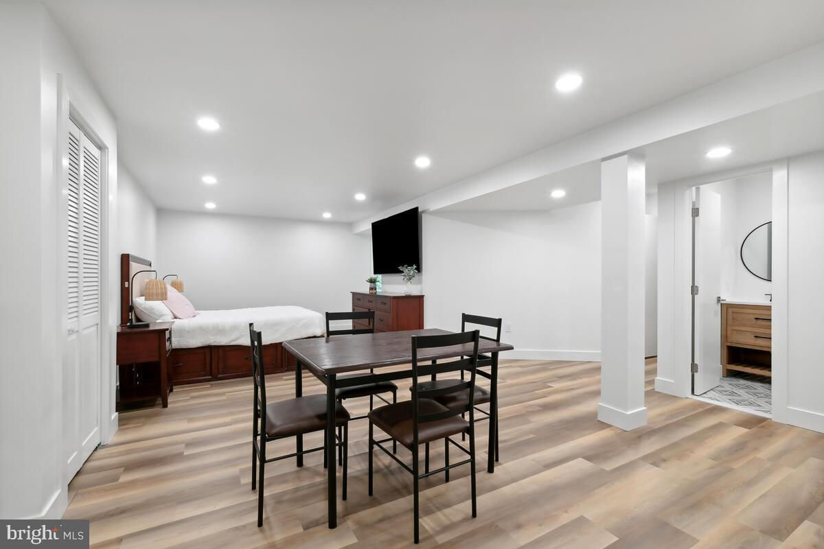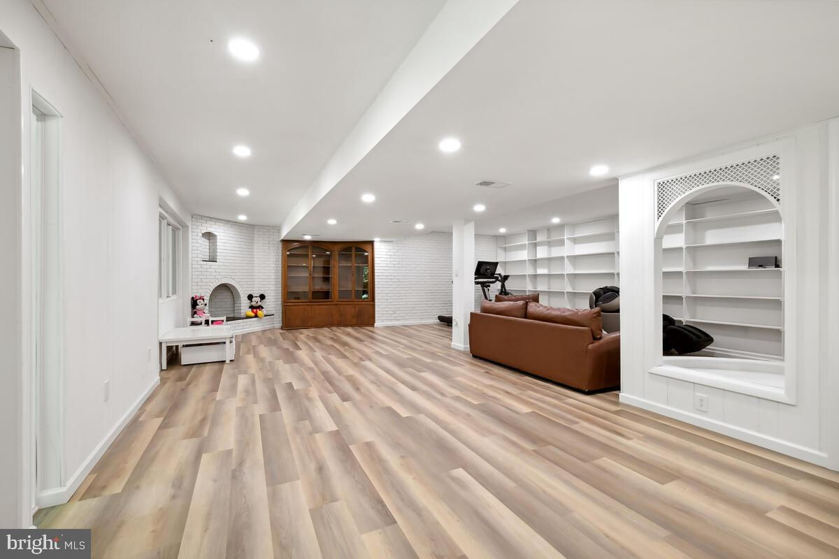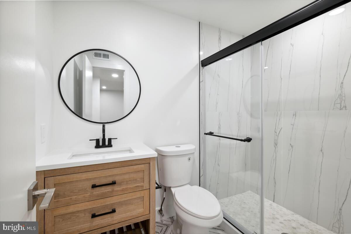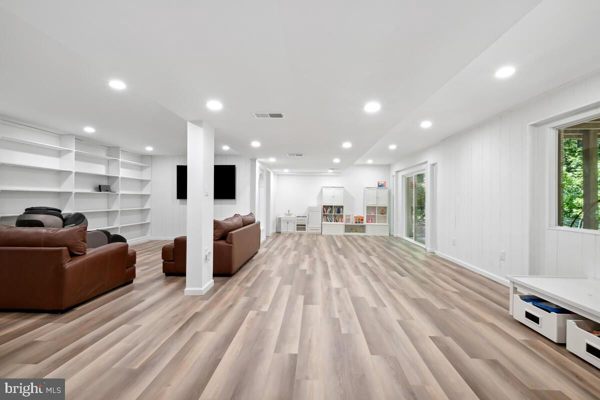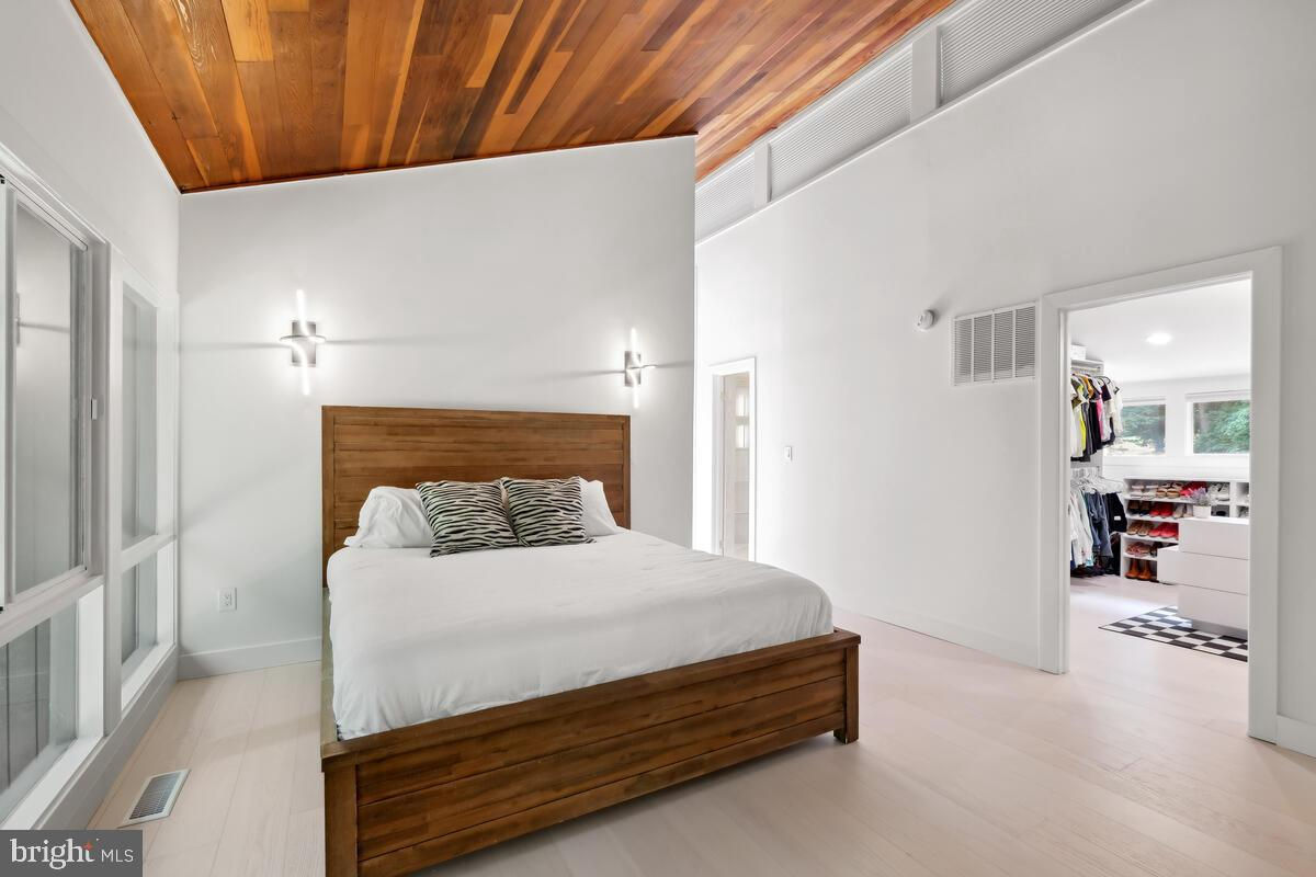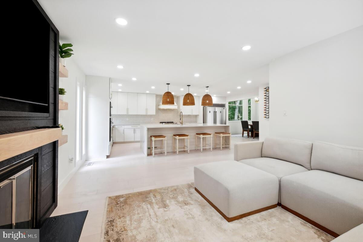 Welcome to 8509 Timber Hill Lane in Potomac, a true mid-century modern home nestled in the wooded setting of East Gate of Potomac. This stunning residence is situated on one of the best lots in the neighborhood, backing up to 110 acres of Buck Branch Stream Valley Park, offering breathtaking views of nature from your private balcony. All mechanicals in the house are less than one year old, ensuring modern efficiency and reliability. As you step inside, you are greeted by a gracious two-story entry foyer, filled with natural light and accented by a custom cable railing system. The main level boasts a large family room, a spacious dining room with two-story ceiling views of the wooded forest, a spacious den, a convenient laundry room, and a gorgeous powder room finished with mid-century appointments. The chef's dream kitchen is equipped with all new appliances, including luxury brand Forno microwave, oven, stove, two dishwashers, and an oversized commercial-grade refrigerator and freezer—all under manufacturer’s warranties. This kitchen is a masterpiece with a custom quartz waterfall center island, golden accented backsplash, counters, and range hood, and mid-century-like wicker medallion lights. Throughout the home, you'll find wide plank hardwood flooring, a custom backsplash, gold accents, upgraded lighting, and high-end finishes. The large primary suite is a luxurious retreat, featuring two spacious walk-in closets—one with a center island and chandelier, perfect for a fashion lover with room for 150 pairs of shoes. The suite also boasts soaring ceilings, providing an airy and elegant space. Additionally, the home includes two fireplaces, perfect for cozy evenings, and custom millwork that adds a touch of sophistication. The fully finished lower level is designed for multigenerational living, offering an expansive space with a private suite that includes a convenient kitchenette and a walkout to a private rear yard that backs to the woods. This level also provides dual zone heating and air conditioning for optimal comfort. Situated conveniently near the newly renovated Cabin John Village Shopping Center and Montgomery Mall, this home offers easy access to major roads, highways, and airports. It is just minutes to Bethesda national parks and so much more. 8509 Timber Hill Lane is a rare gem for those who appreciate the elegance and simplicity of mid-century modern style. This home is truly a work of art, offering a perfect blend of modern amenities and timeless design.